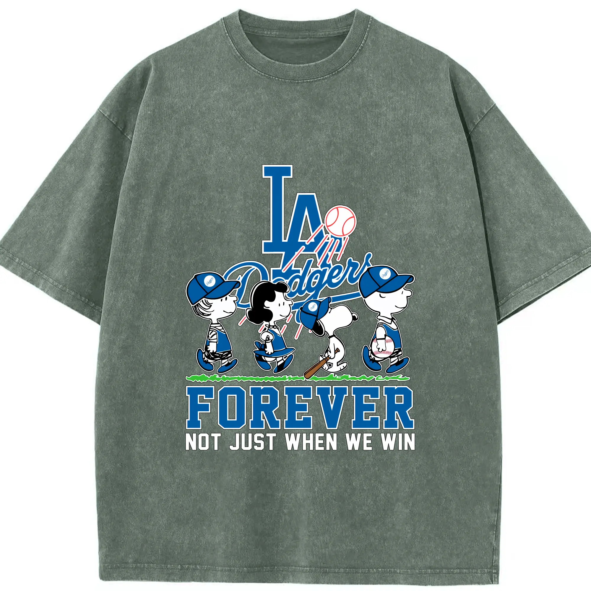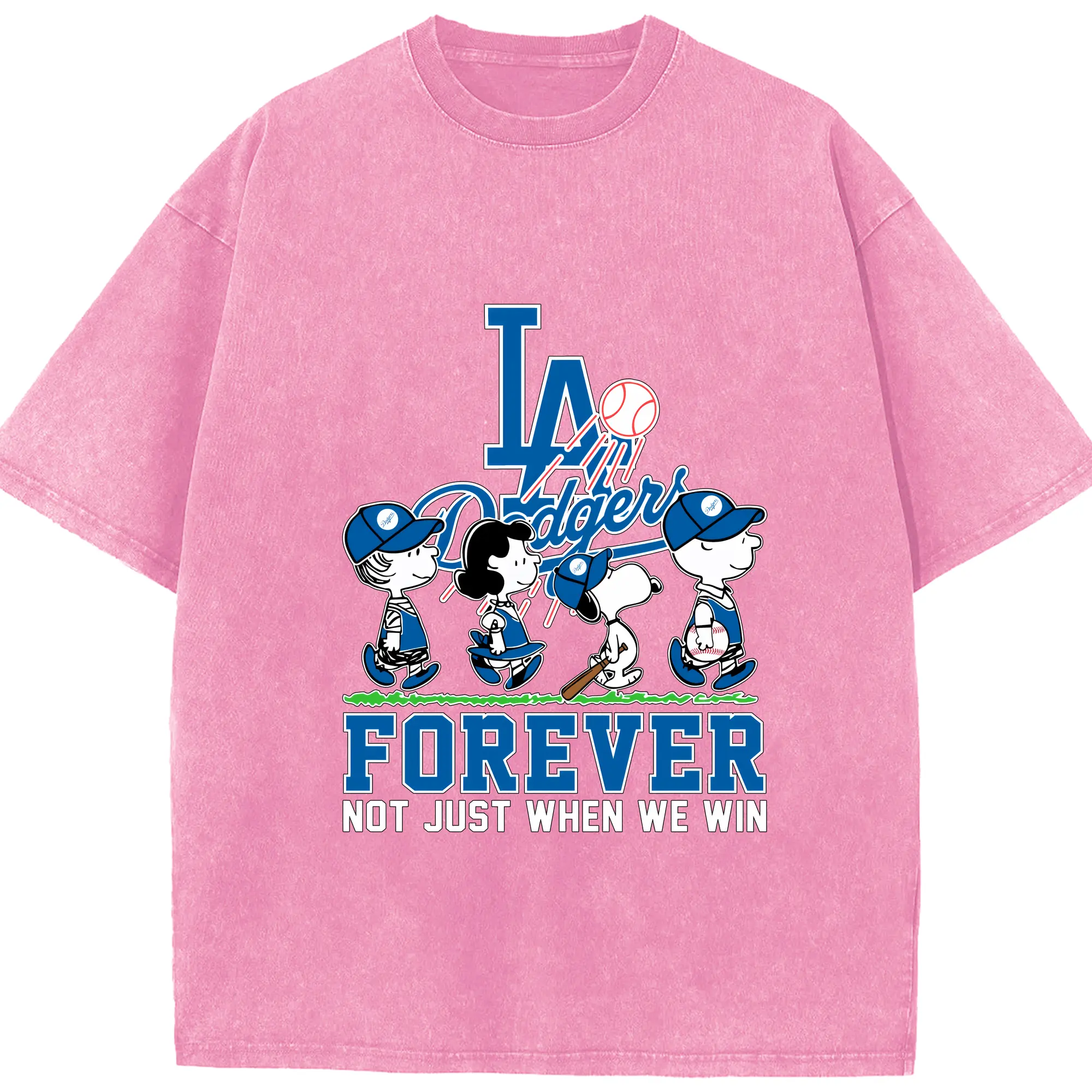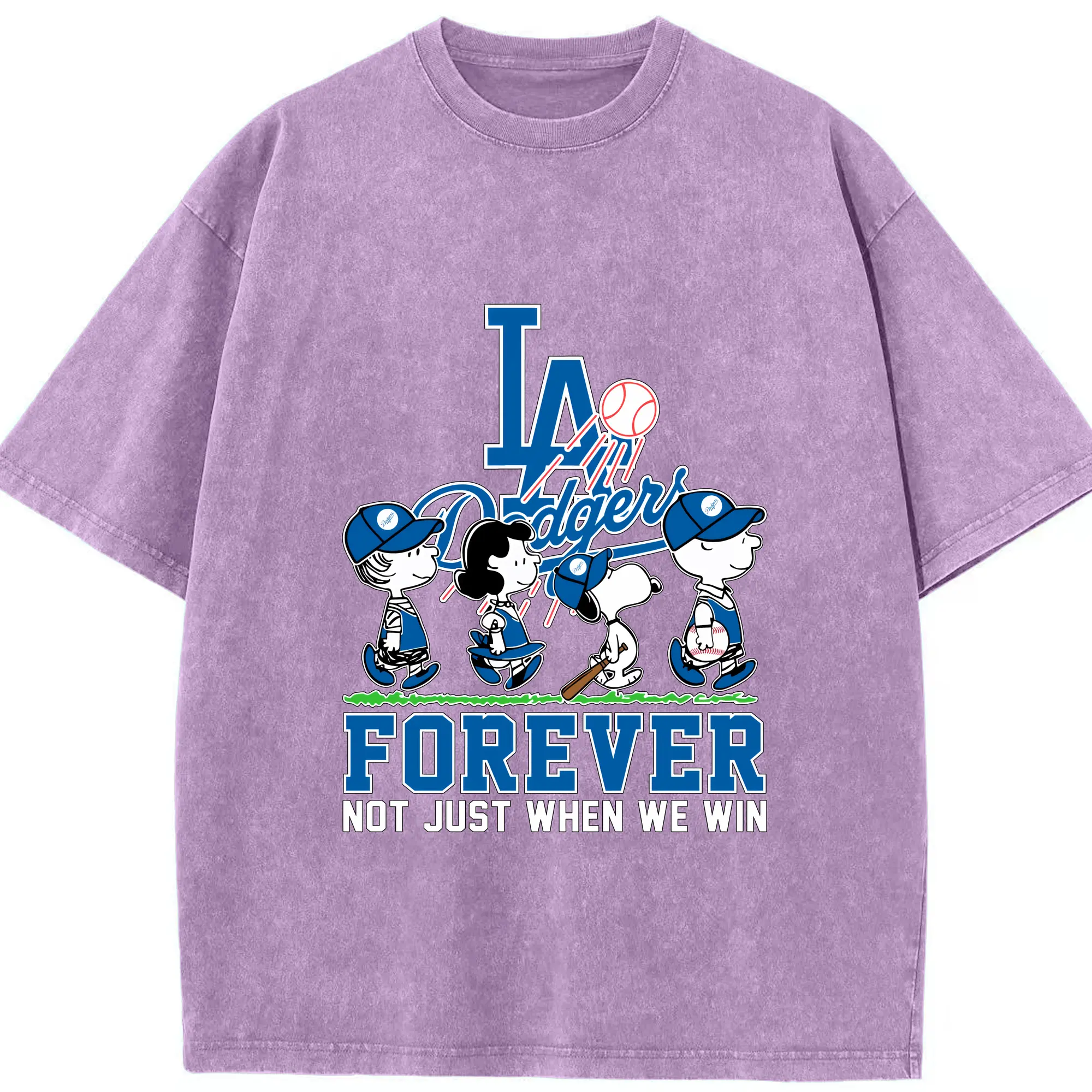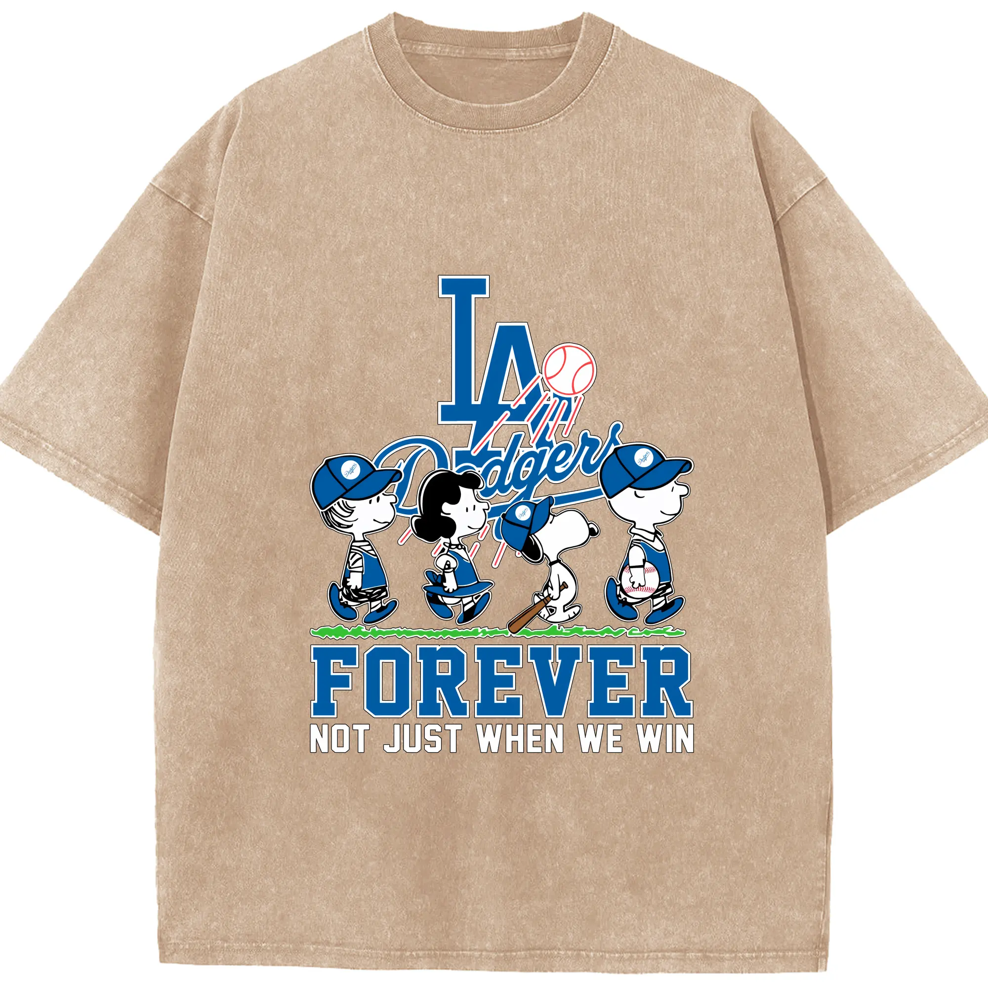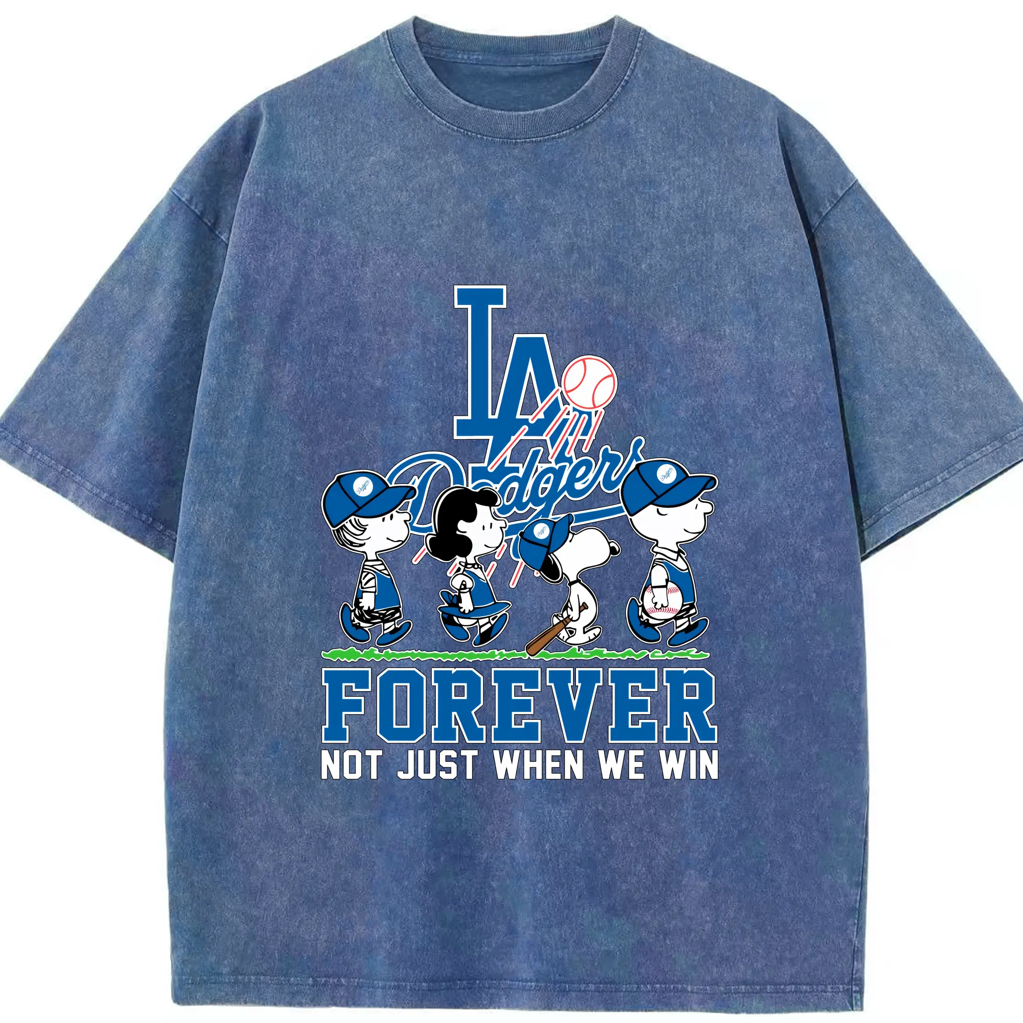 Los Angeles Dodgers Baseball Forever Not Just When We Win - Washed Vintage Look 230g Cotton Oversized T-Shirt With Front Heat Transfer Print – Soft, Lightweight, Stylish Fit – Comfortable Casual Wear For Sports & Everyday Use