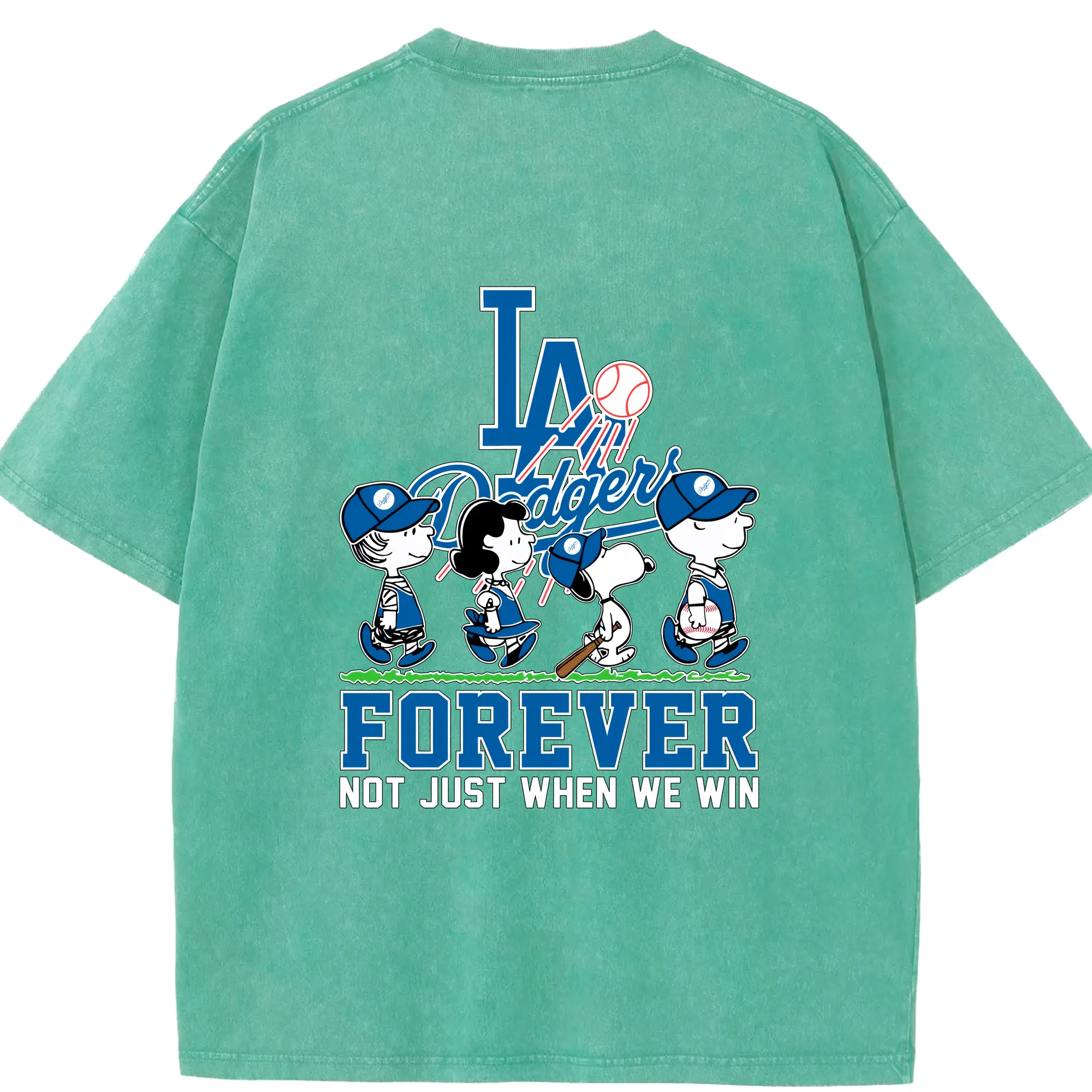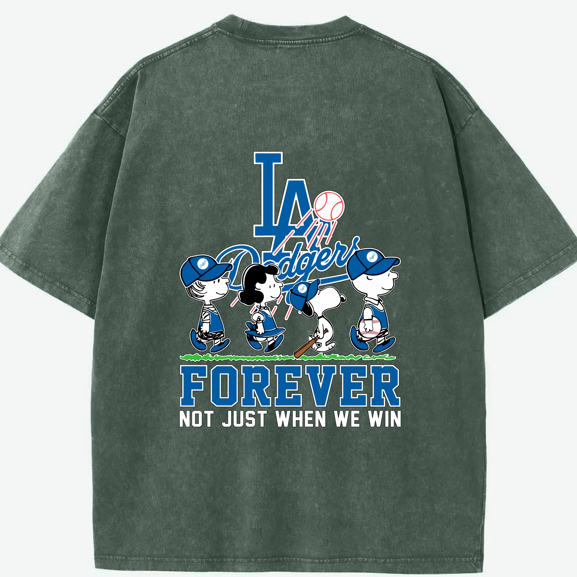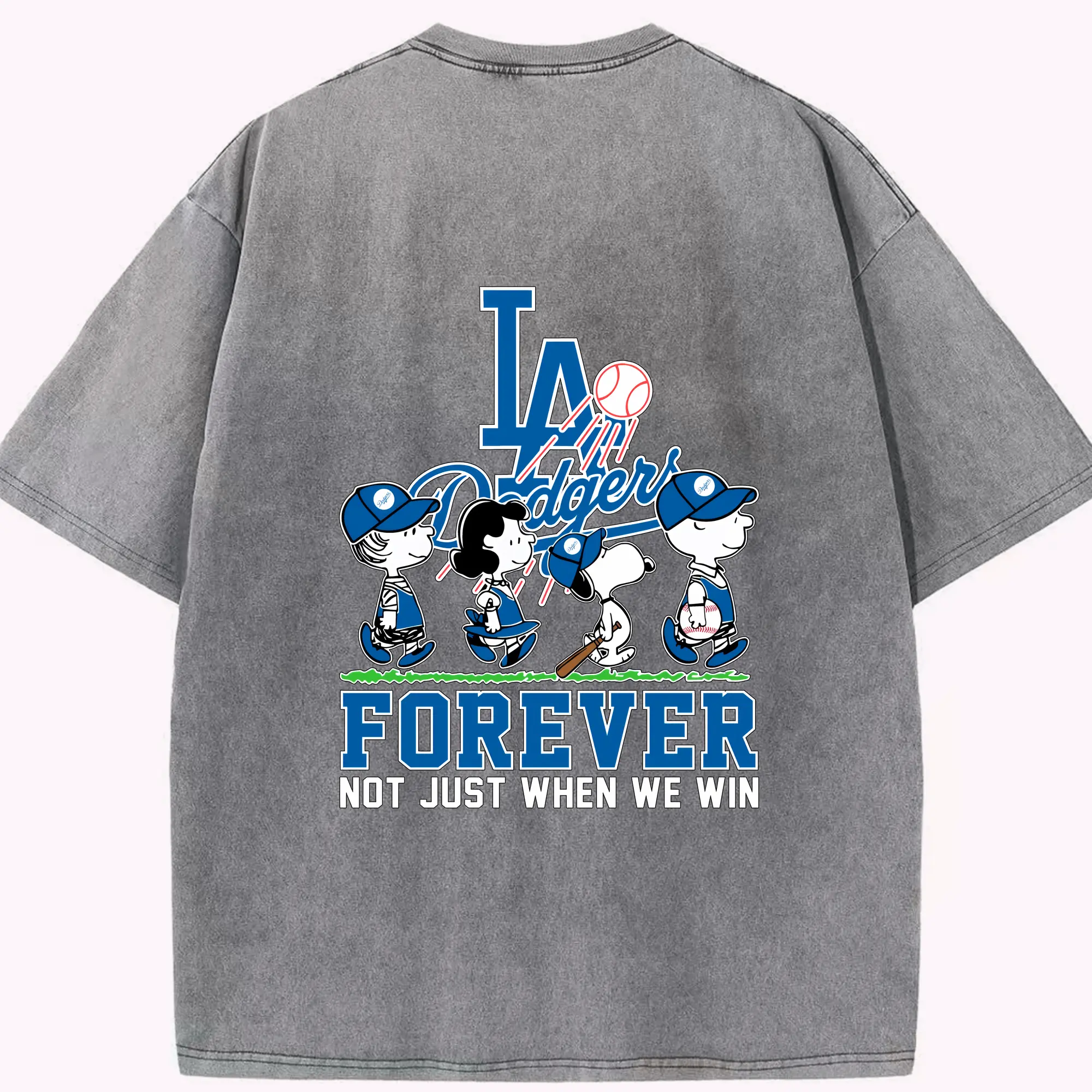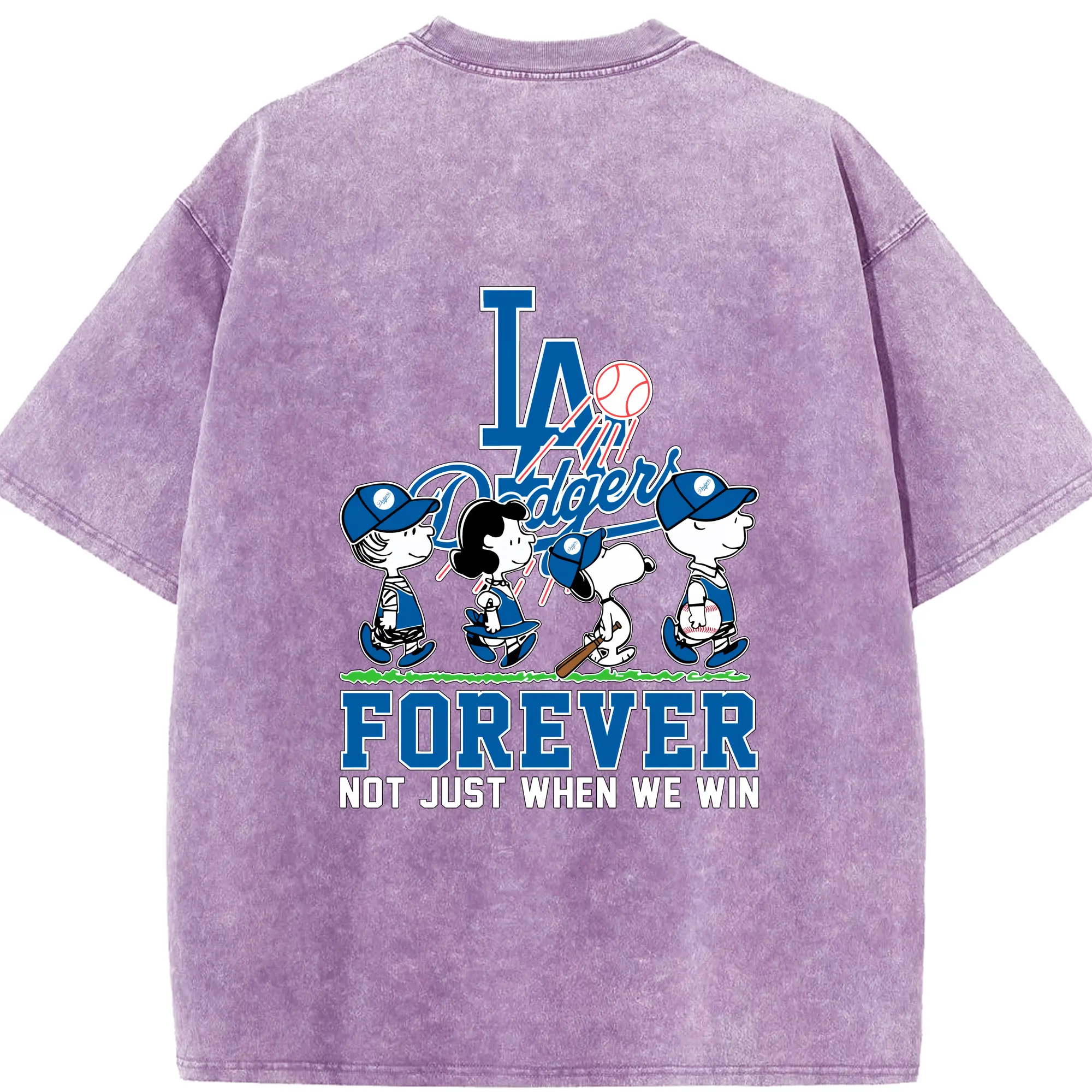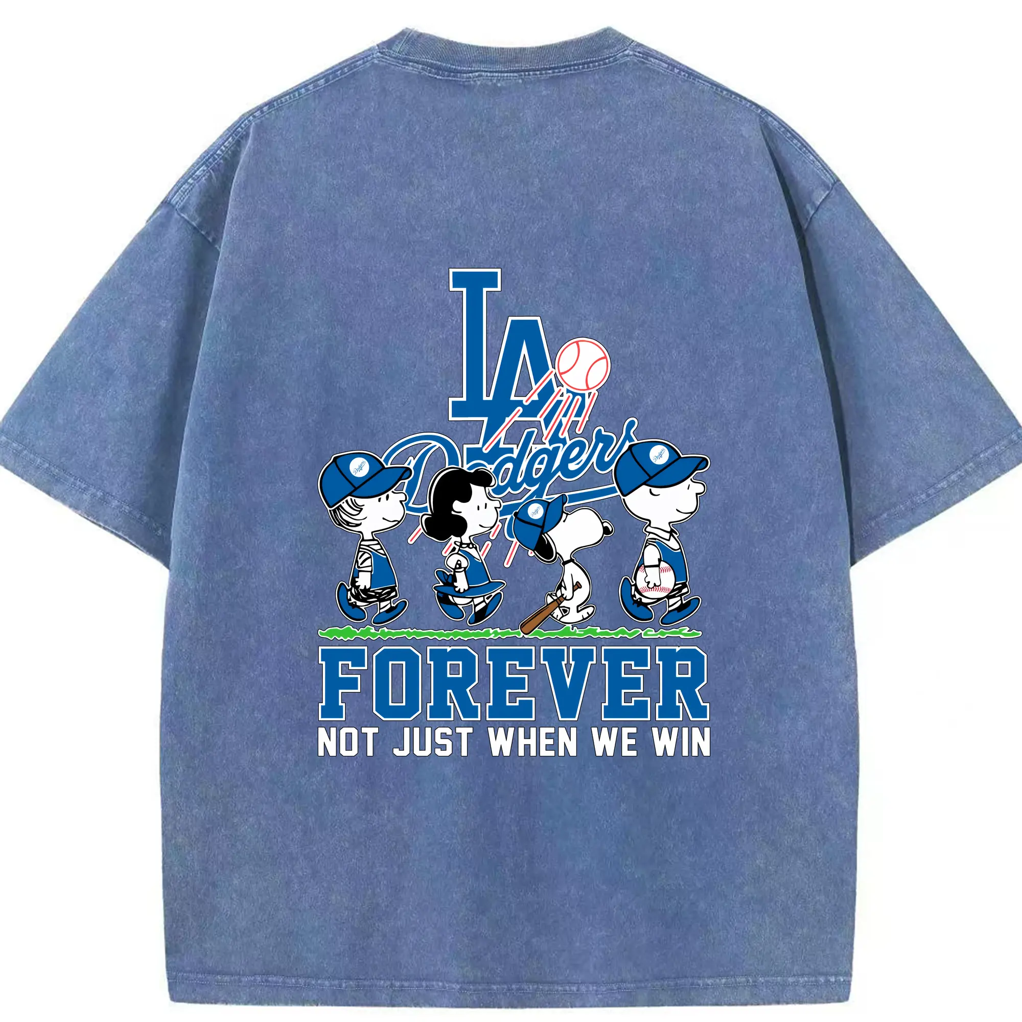 Los Angeles Dodgers Baseball Forever Not Just When We Win - Washed Vintage 230g Cotton Oversized T-Shirt With Back Heat Transfer Print – Soft, Lightweight & Stylish – Comfortable Casual Wear For Sports & Everyday Use