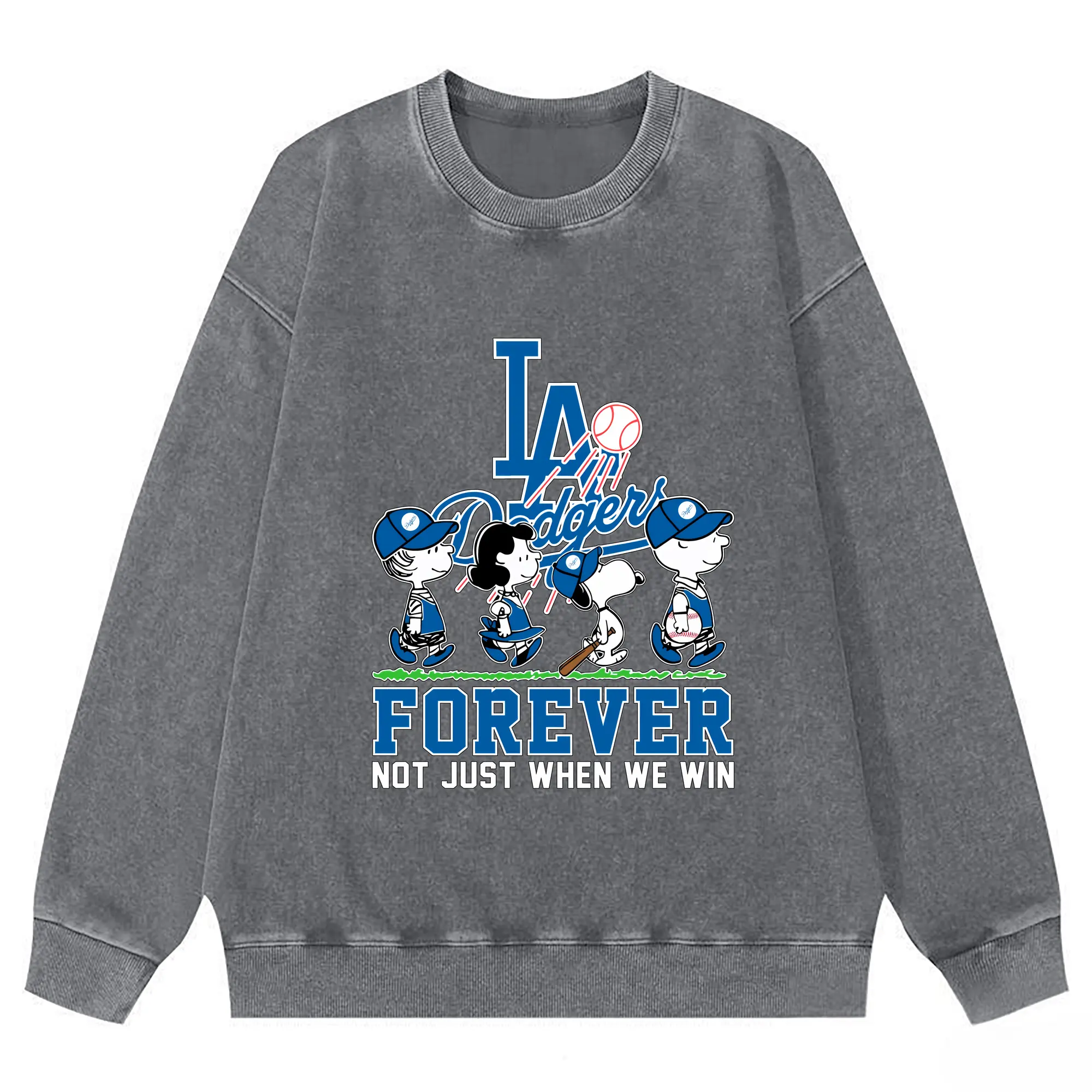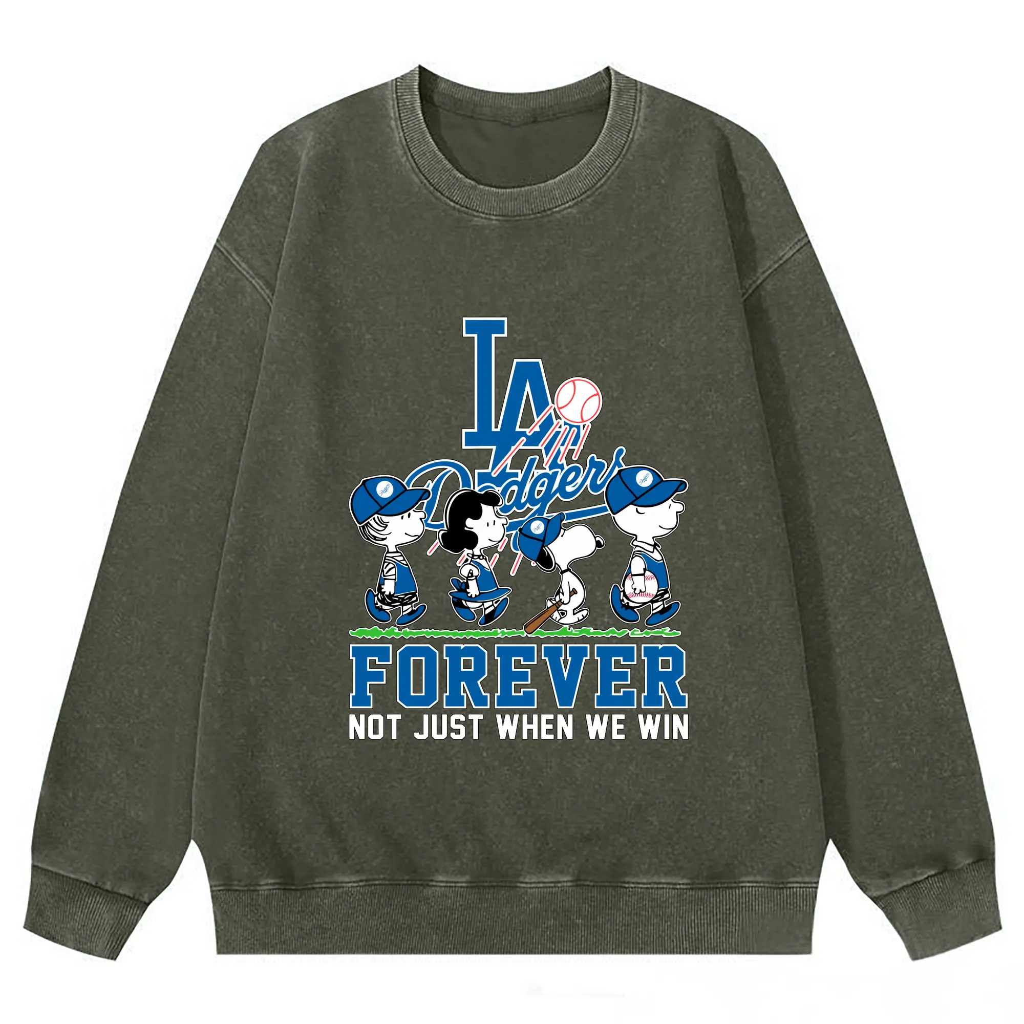Los Angeles Dodgers Baseball Forever Not Just When We Win - Washed Wax-Dyed Vintage Crewneck Sweatshirt – 80% Cotton, 20% Polyester – Soft, Durable & Stylish – Ideal For Sports, Casual & Everyday Wear