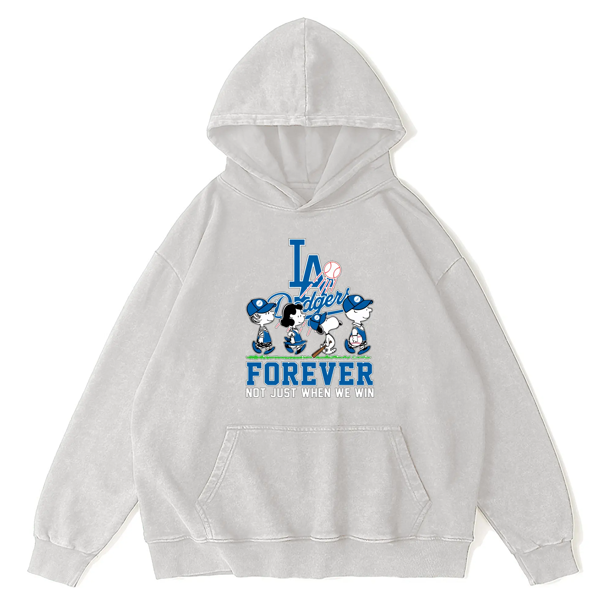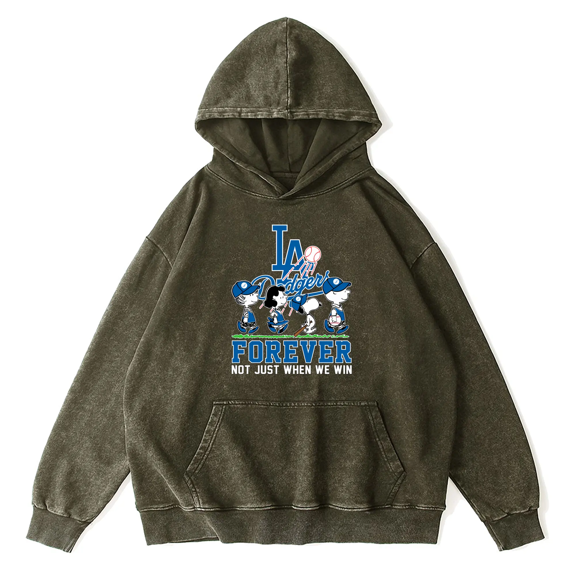 Los Angeles Dodgers Baseball Forever Not Just When We Win - Vintage Washed Wax-Dyed Hoodie – 80% Cotton, 20% Polyester – Soft, Durable & Stylish – Perfect For Sports, Casual & Everyday Wear