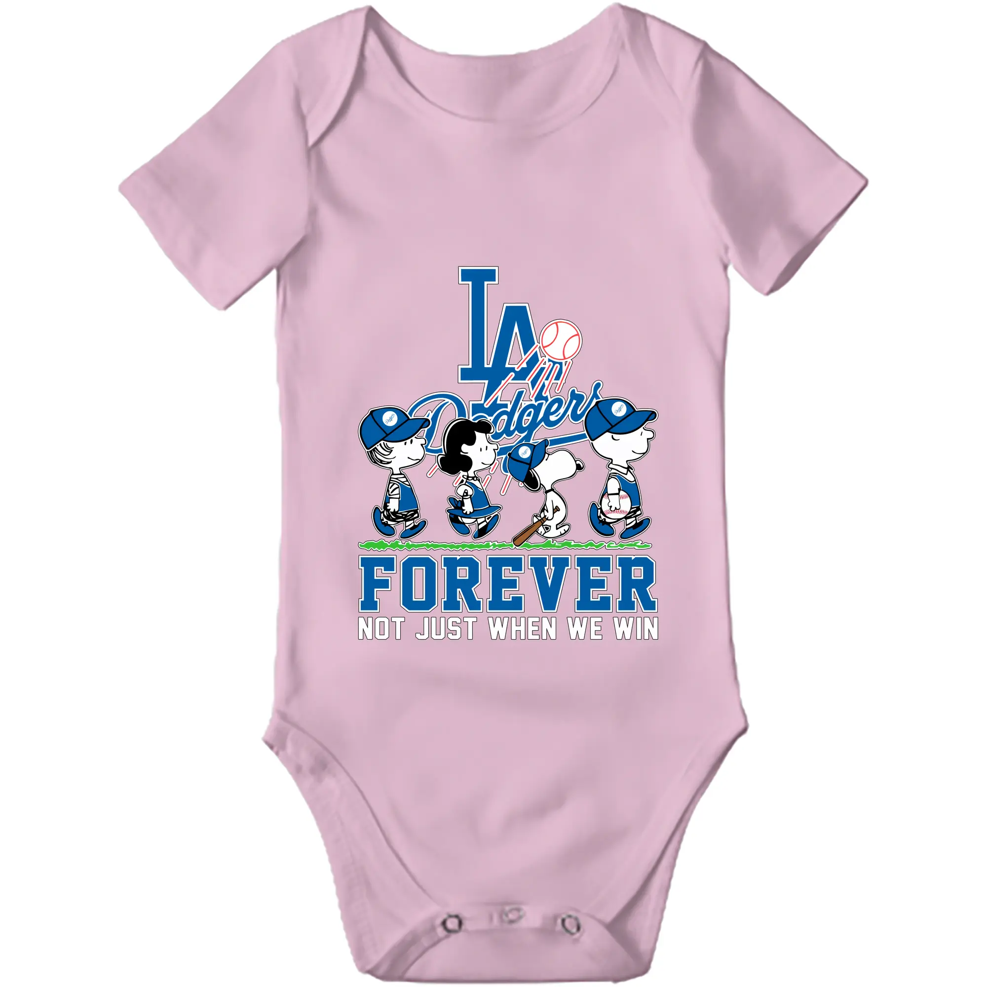 Los Angeles Dodgers Baseball Forever Not Just When We Win - Baby Short Sleeve Romper – 100% Cotton Soft & Breathable Digital Print Onesie With Easy Snap Closure And Envelope Shoulder – Comfortable For Daily Wear & Travel