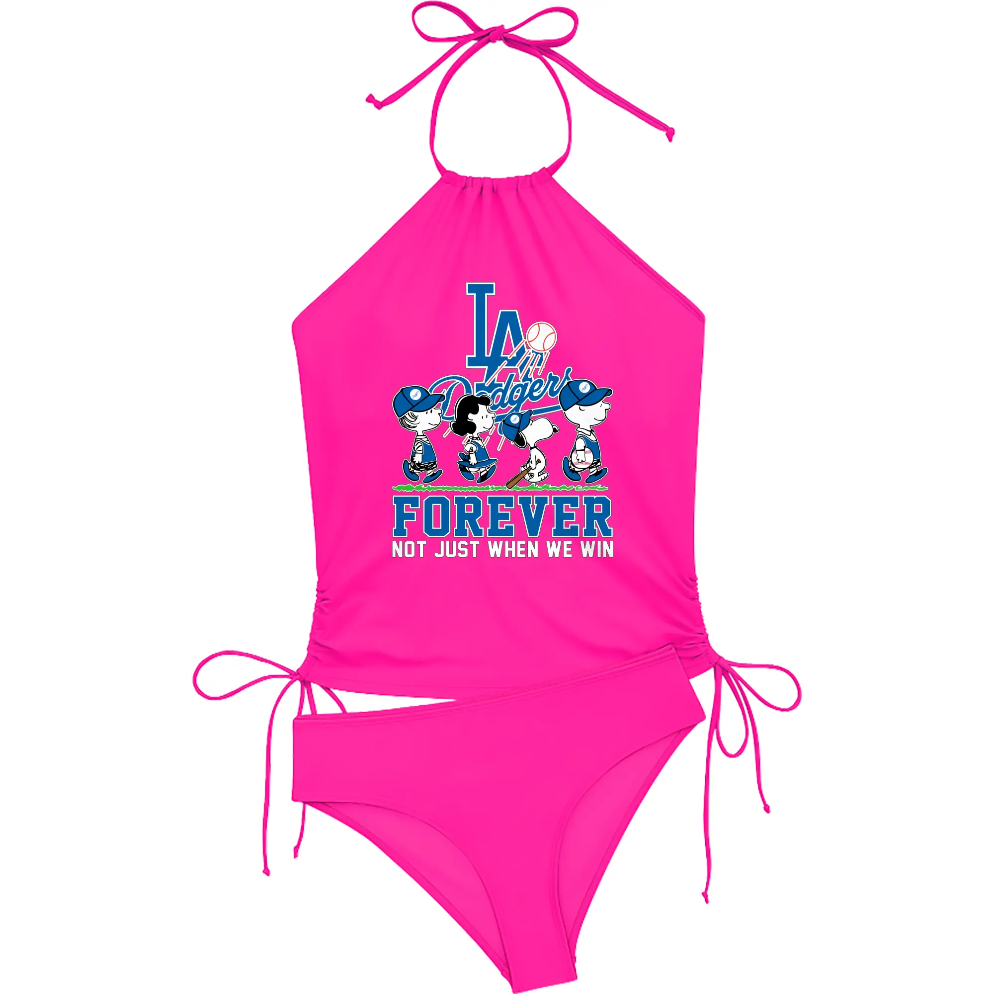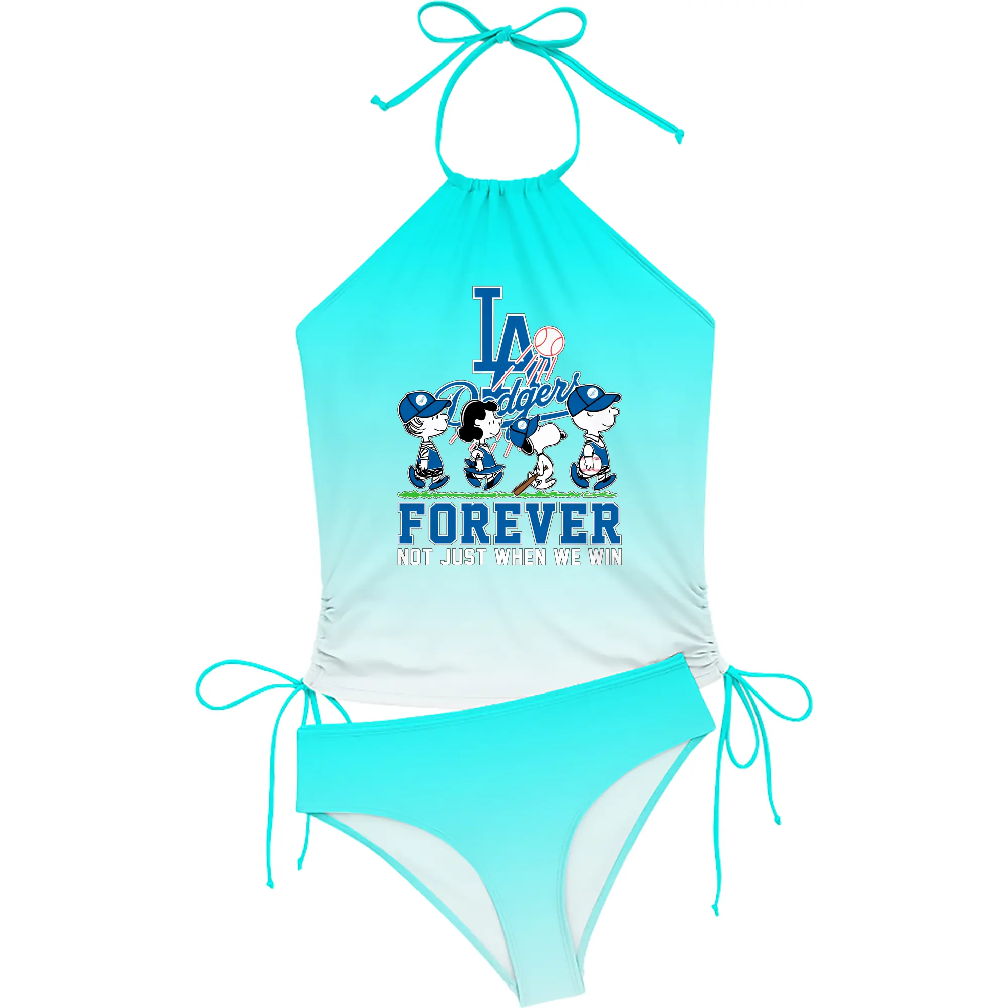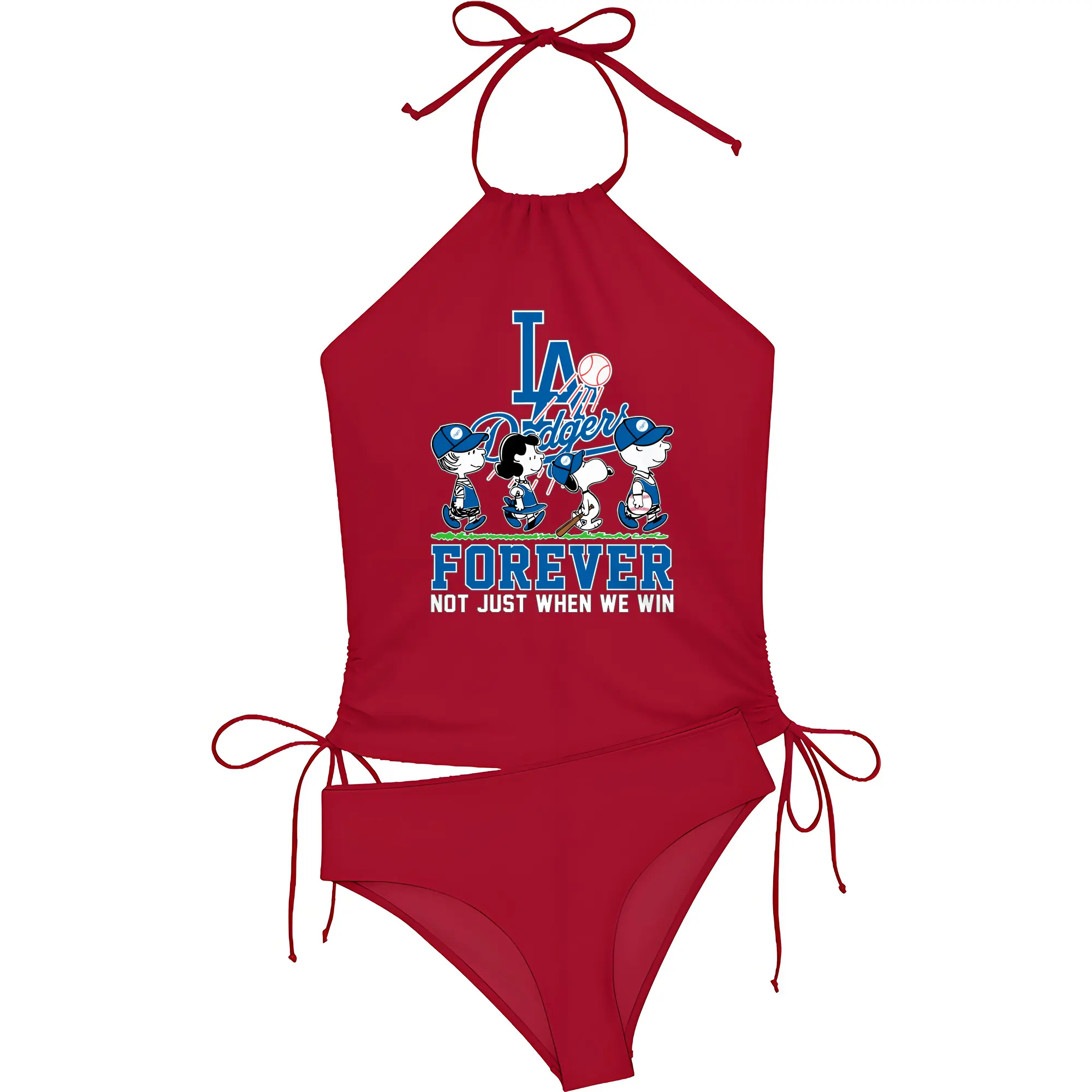 Los Angeles Dodgers Baseball Forever Not Just When We Win - Women's Heat Transfer Printed Two-Piece Bikini Set – Sexy One-Shoulder Top & Triangle Bottom, Soft Nylon-Spandex – Perfect for Beach, Pool & Vacation