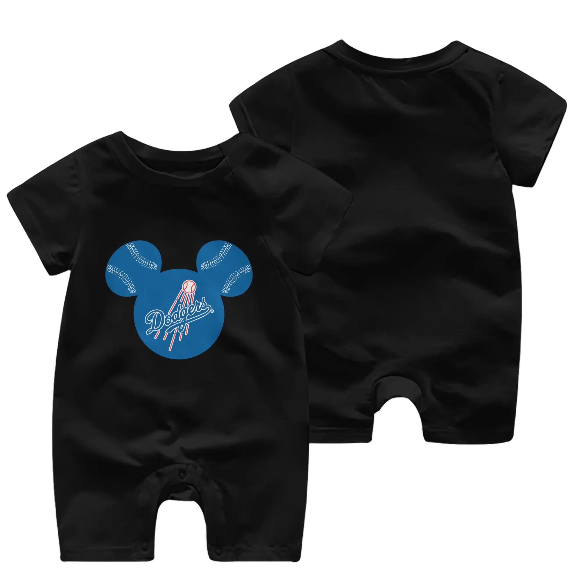 Los Angeles Dodgers Baseball Mickey Mouse - Baby Short Sleeve Onesie – 100% Cotton Soft & Breathable Digital Print Romper – Double-Sided Print, Snap Closure For Easy Diaper Changes – Comfortable For Boys & Girls
