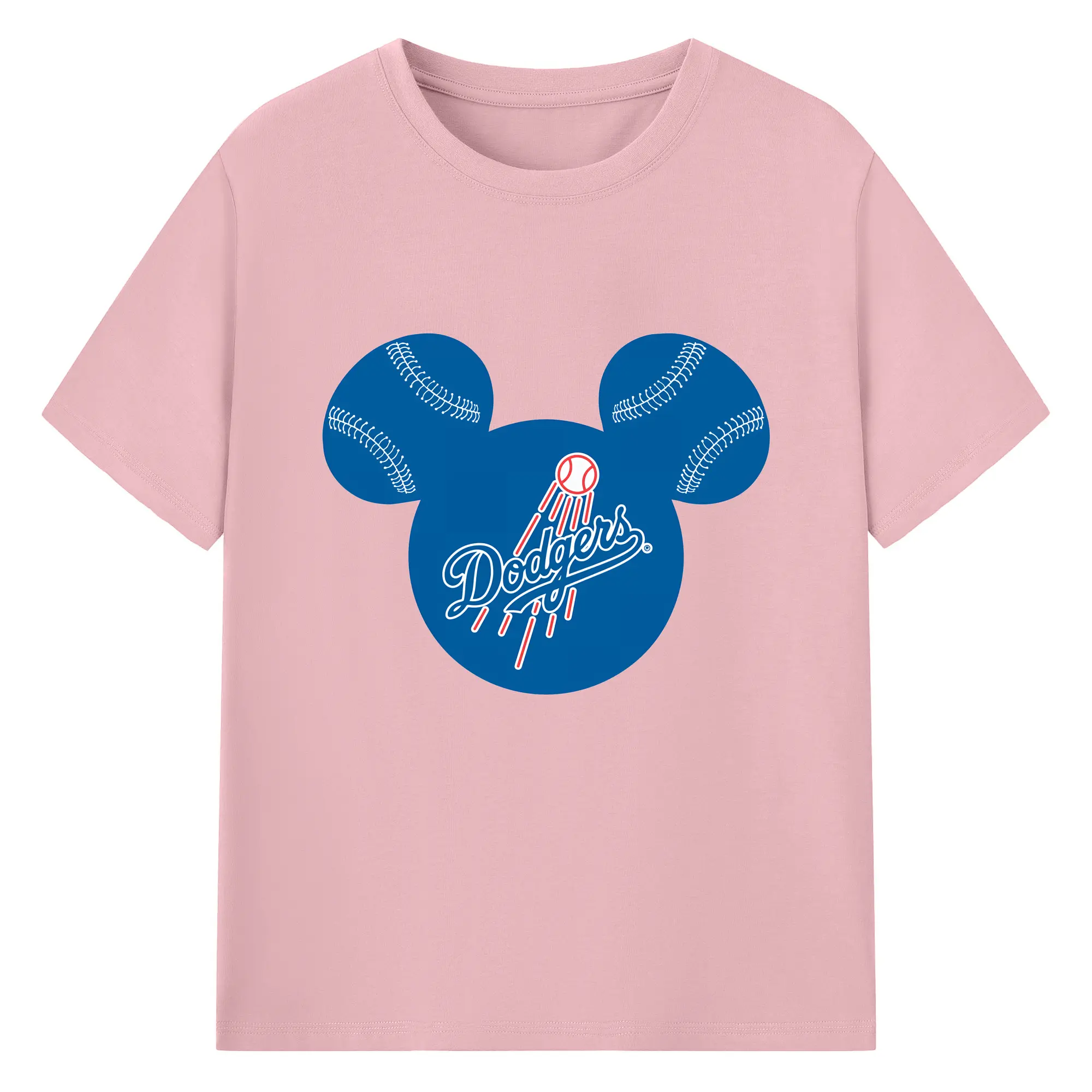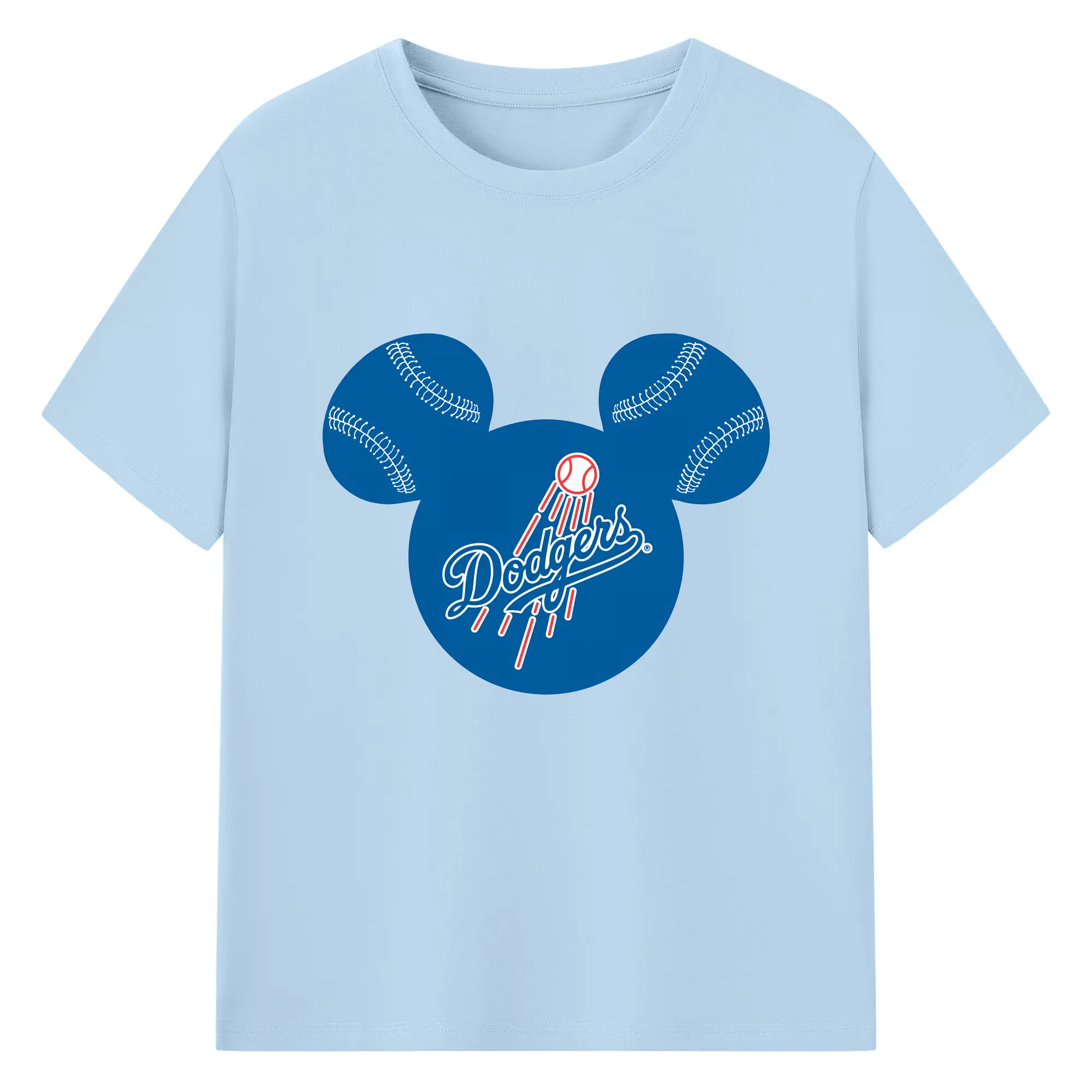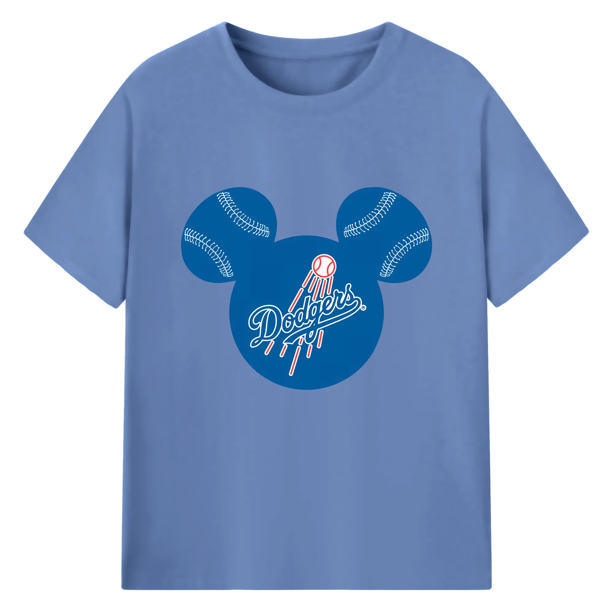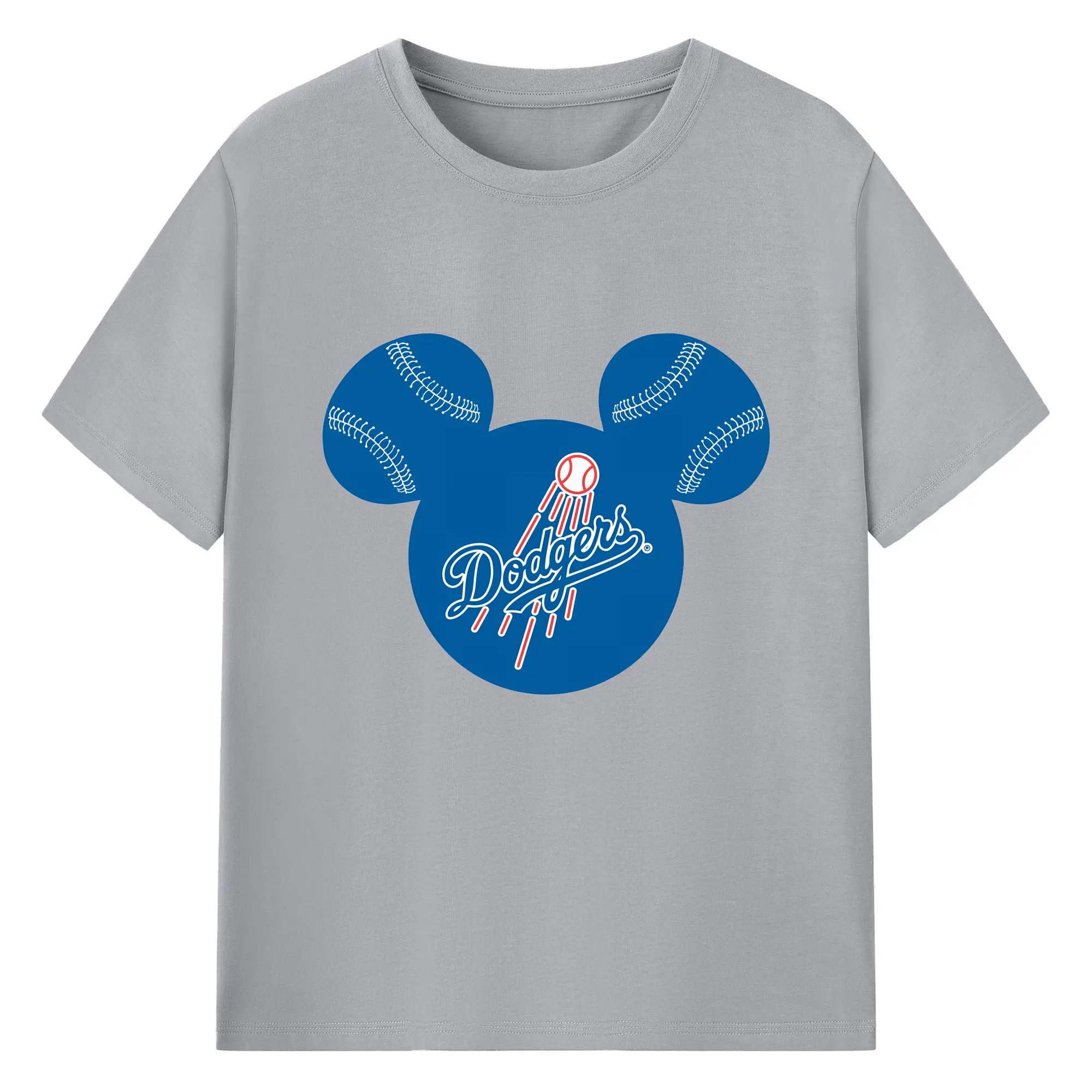Los Angeles Dodgers Baseball Mickey Mouse - 180g Cotton T-Shirt With Front Heat Transfer Print – Soft, Lightweight, Fitted Design – Comfortable Casual Wear For Sports & Everyday Use