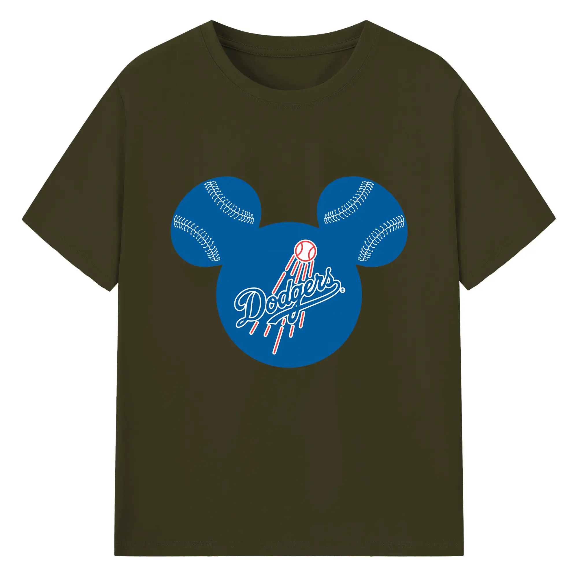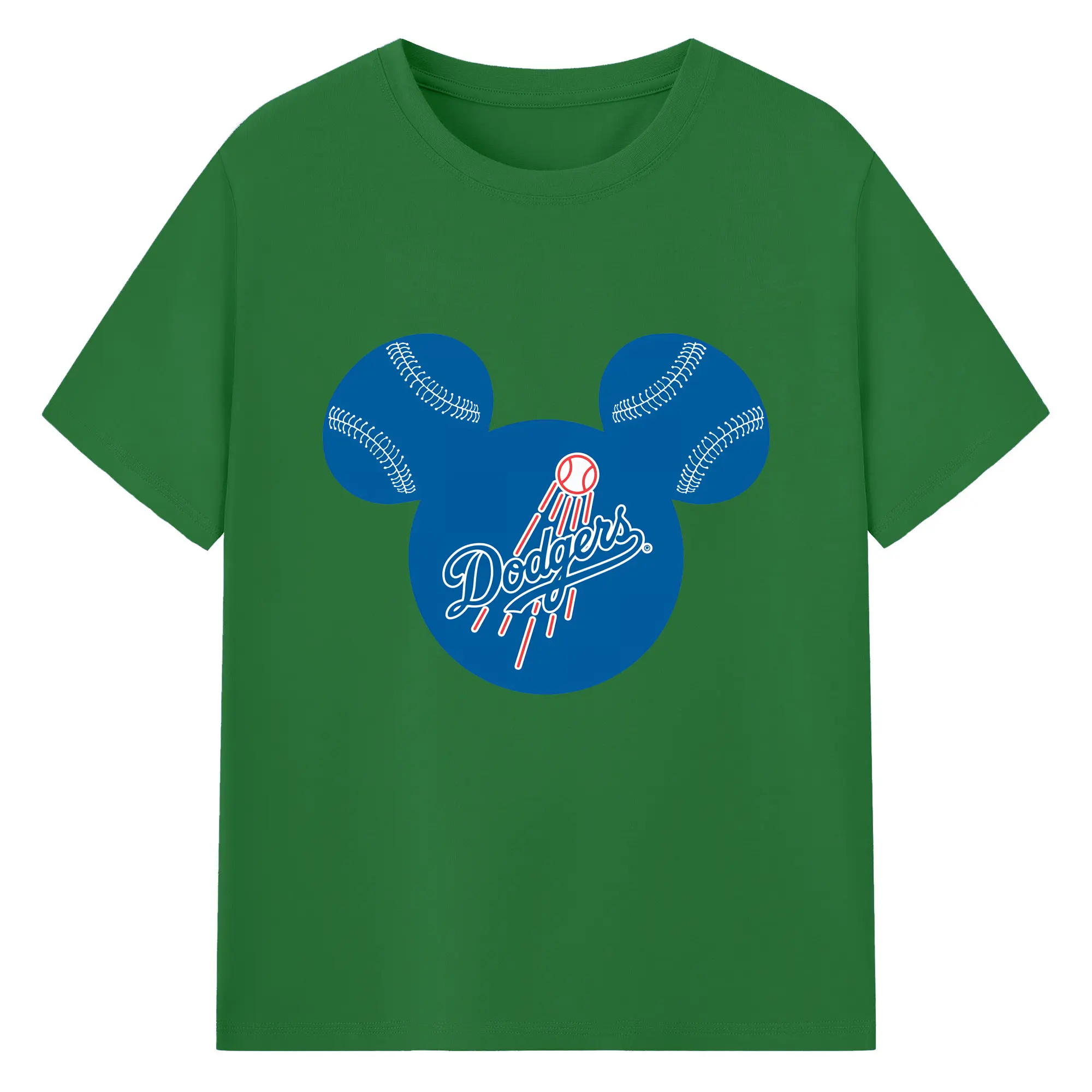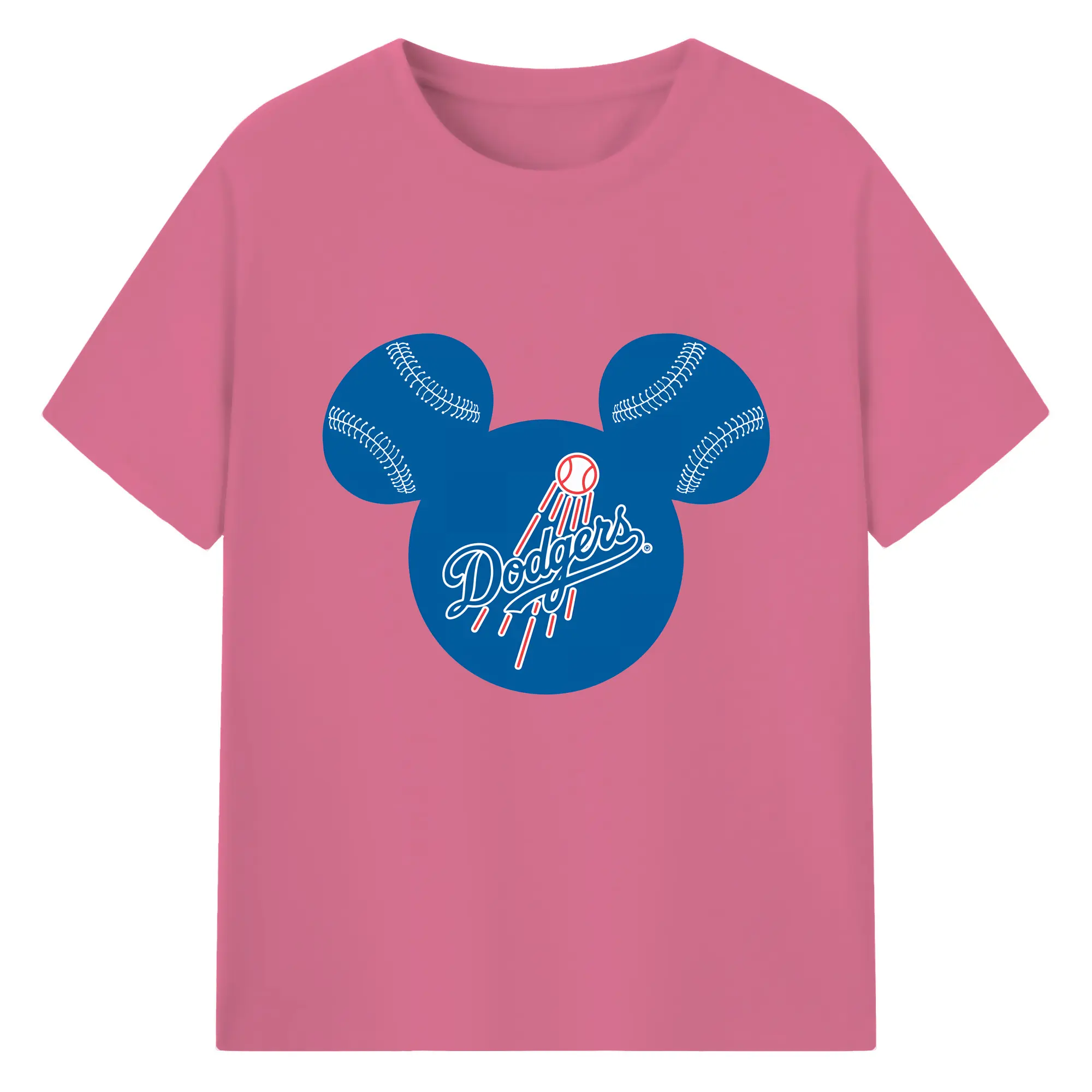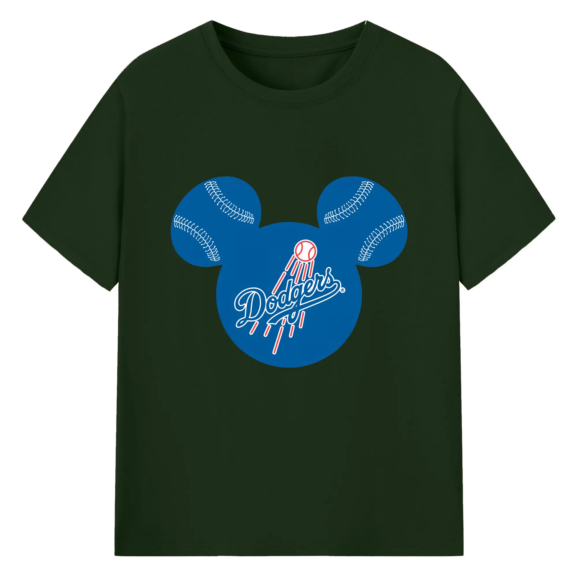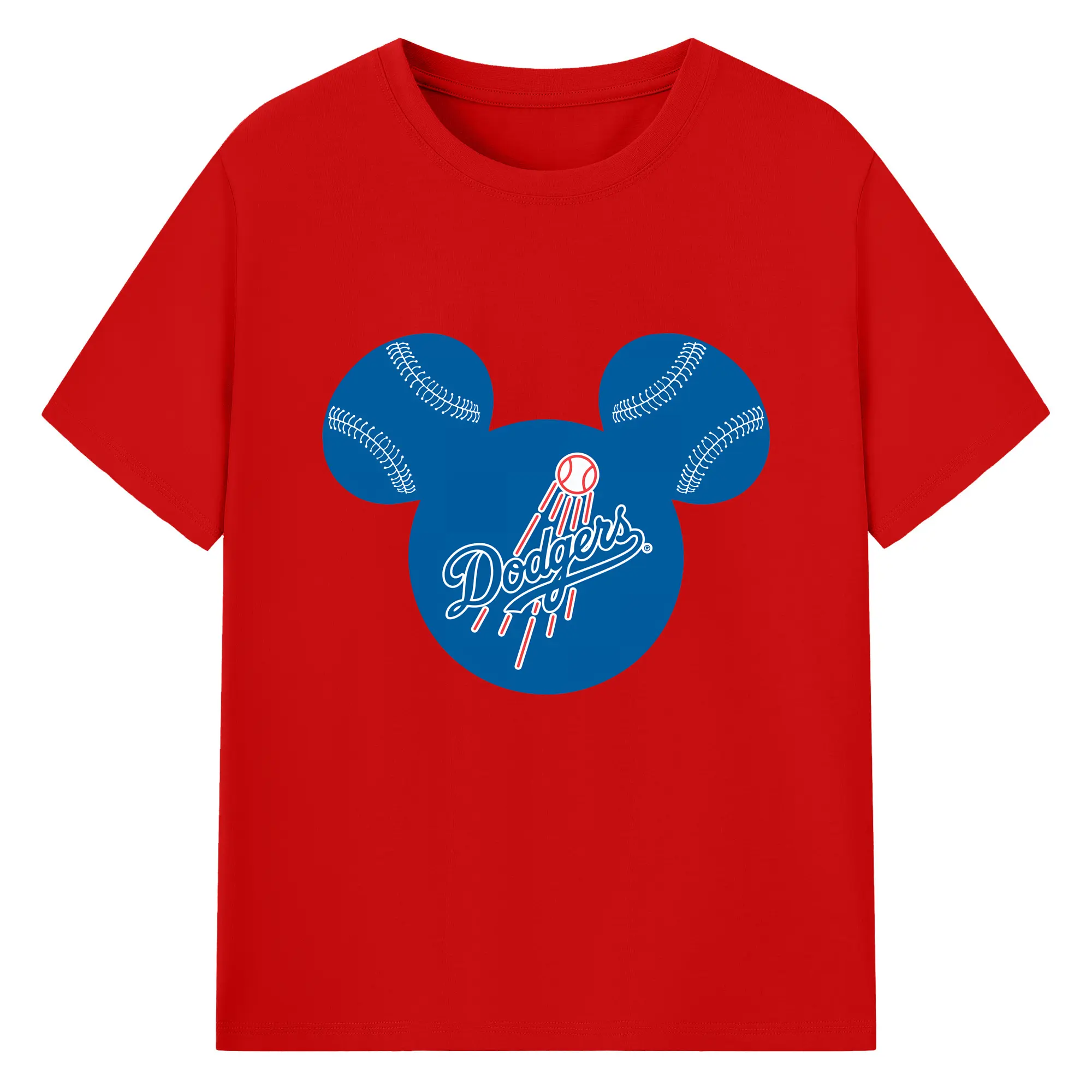 Los Angeles Dodgers Baseball Mickey Mouse - 180g Cotton T-Shirt With Front Heat Transfer Print – Soft, Lightweight, Fitted Design – Comfortable Casual Wear For Sports & Everyday Use