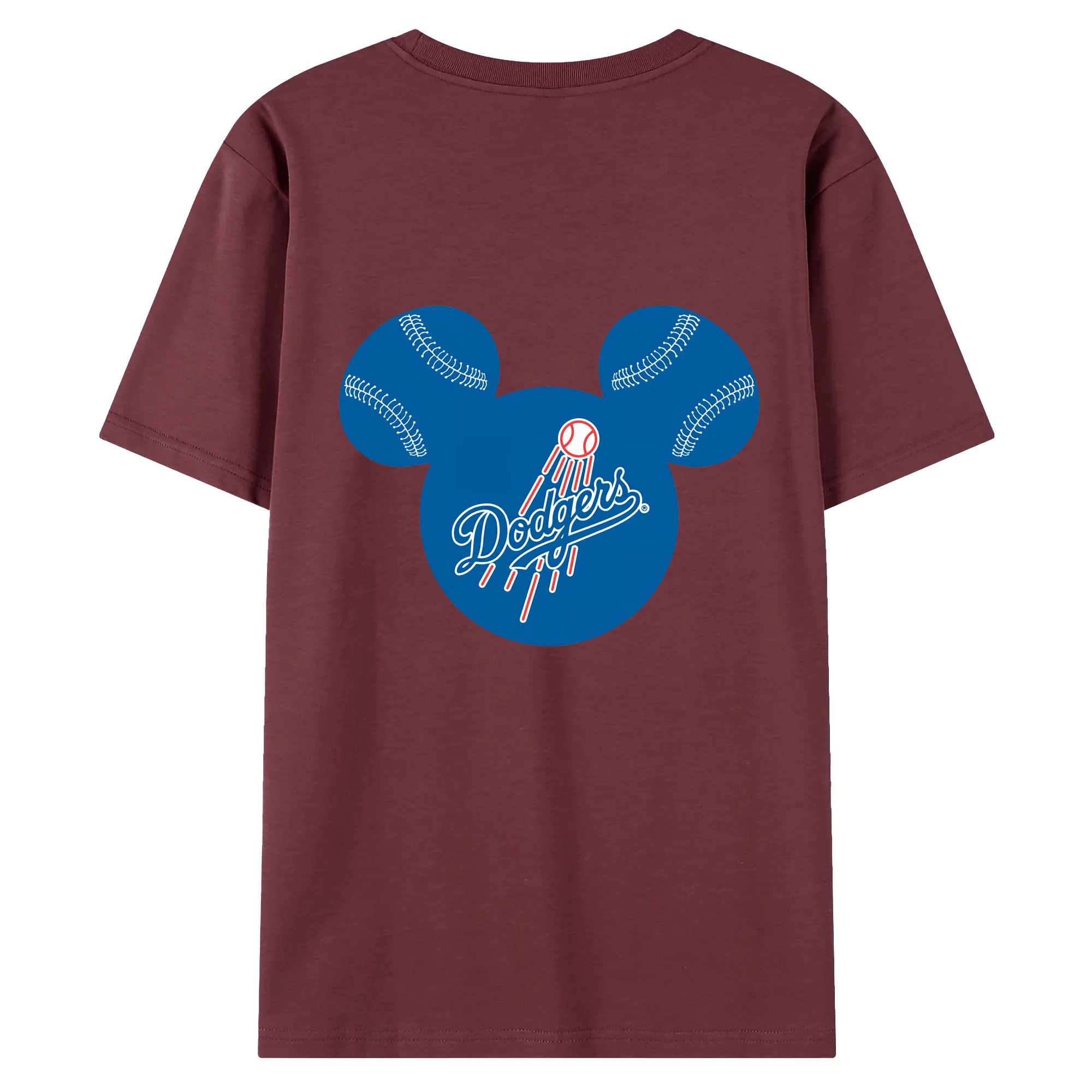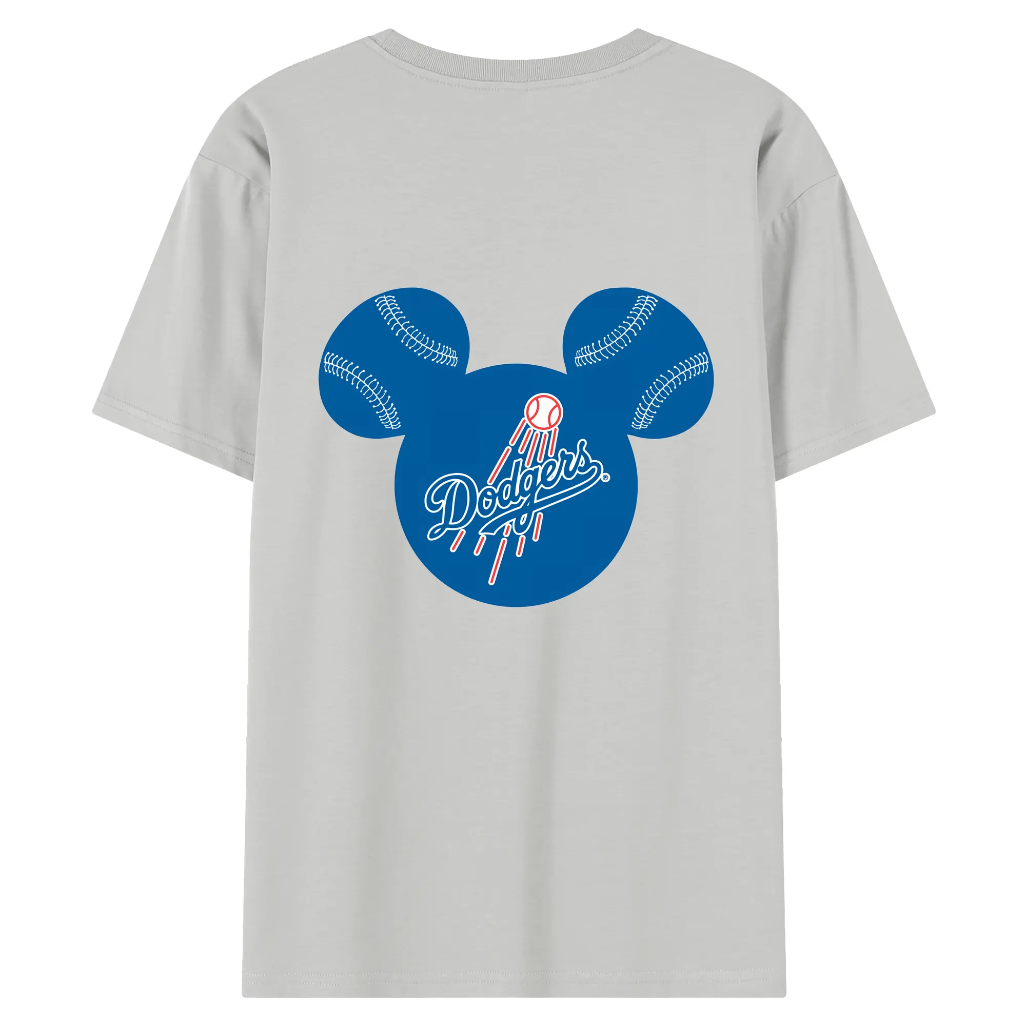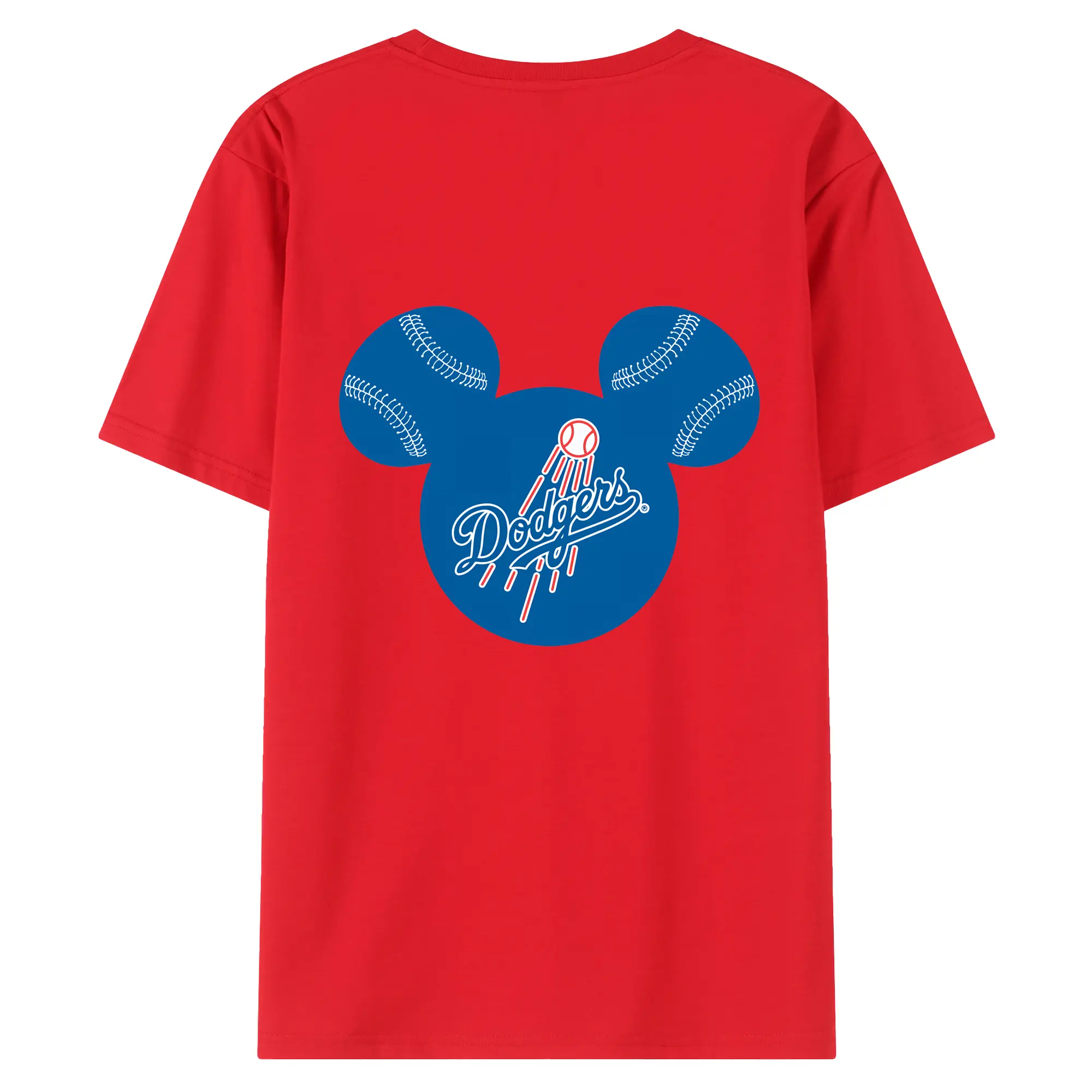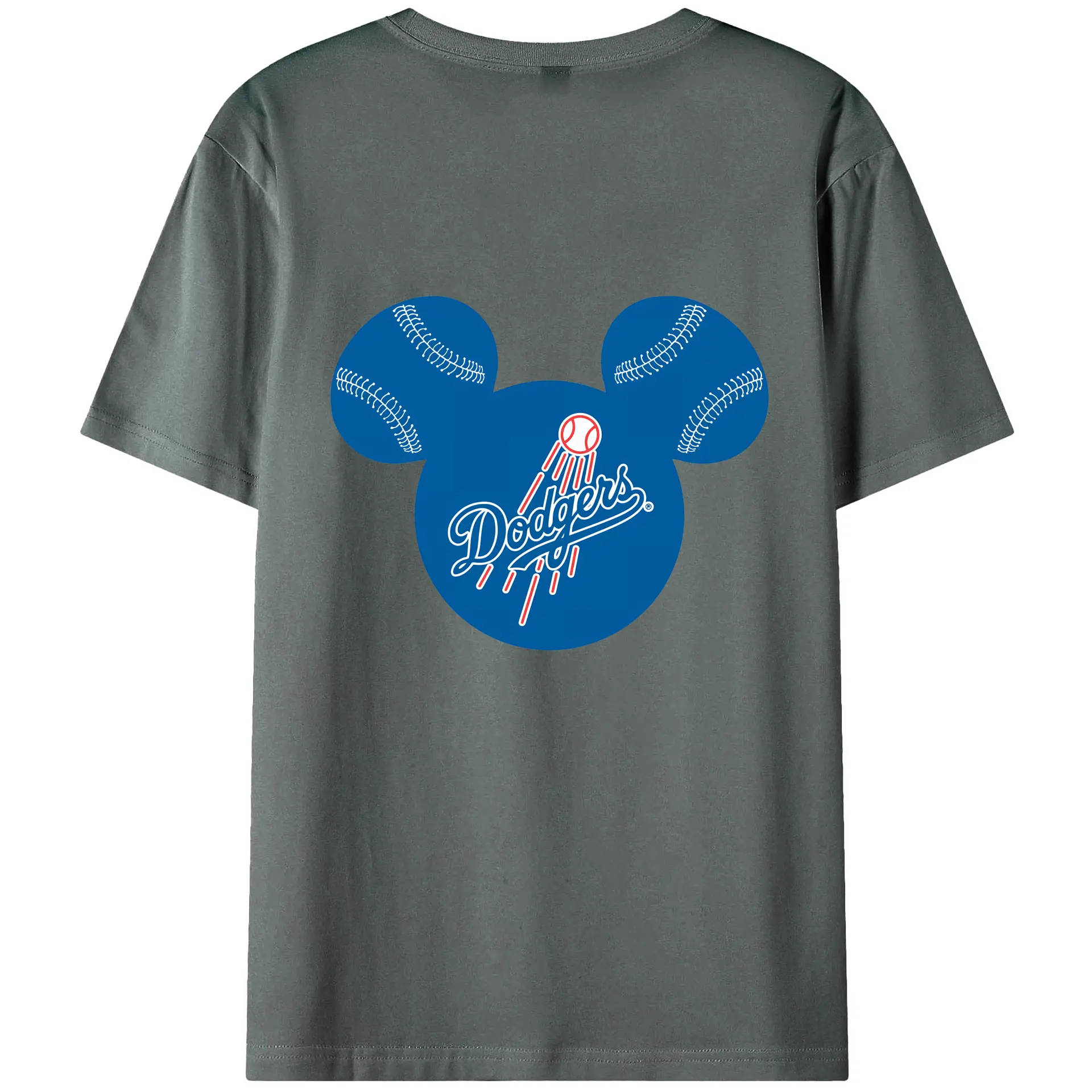 Los Angeles Dodgers Baseball Mickey Mouse - 180g Combed Cotton T-Shirt With Back Heat Transfer Print – Soft, Lightweight, Fitted Design – Stylish Casual Wear For Sports & Everyday Use