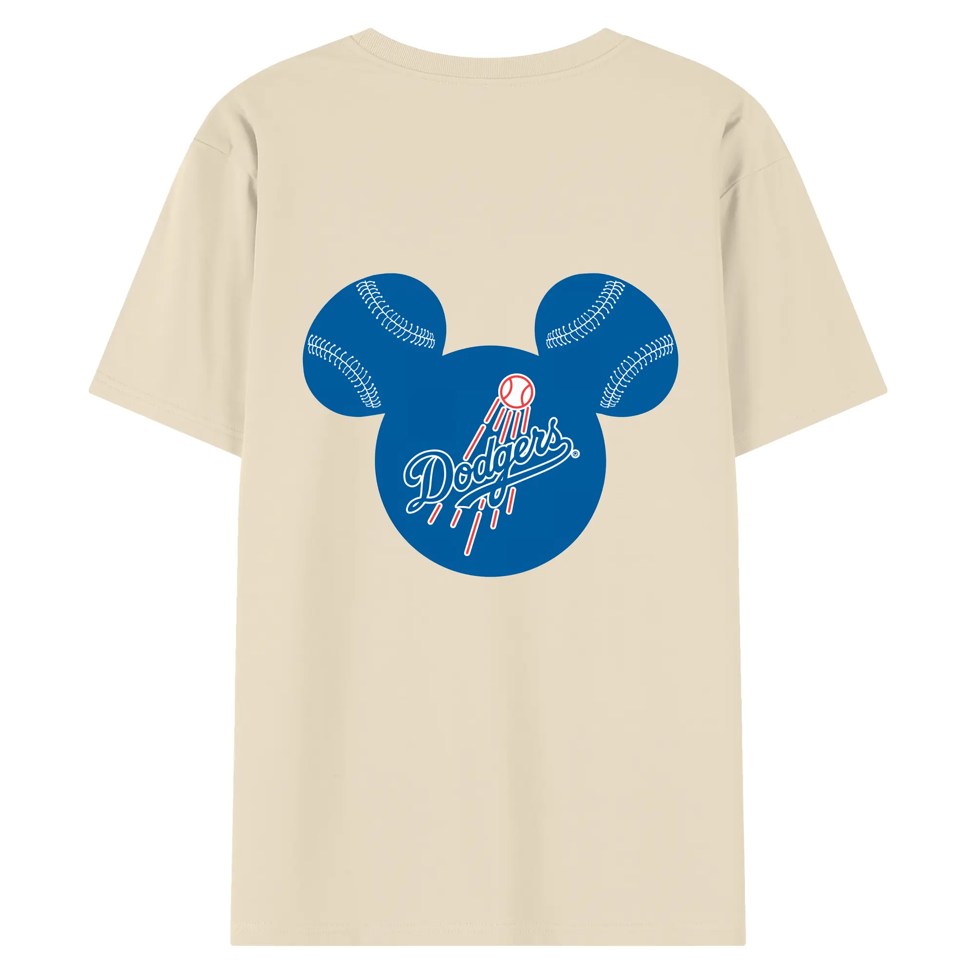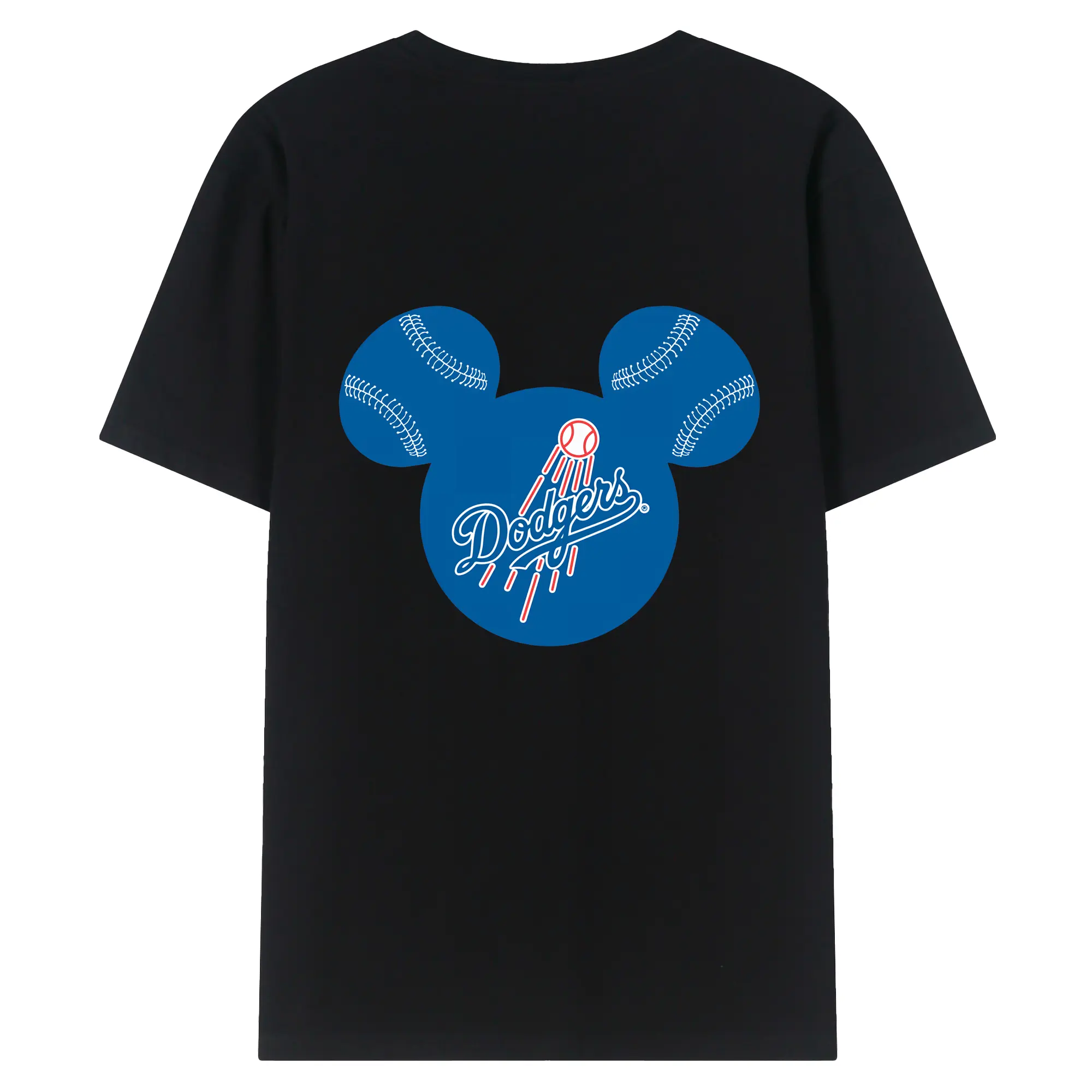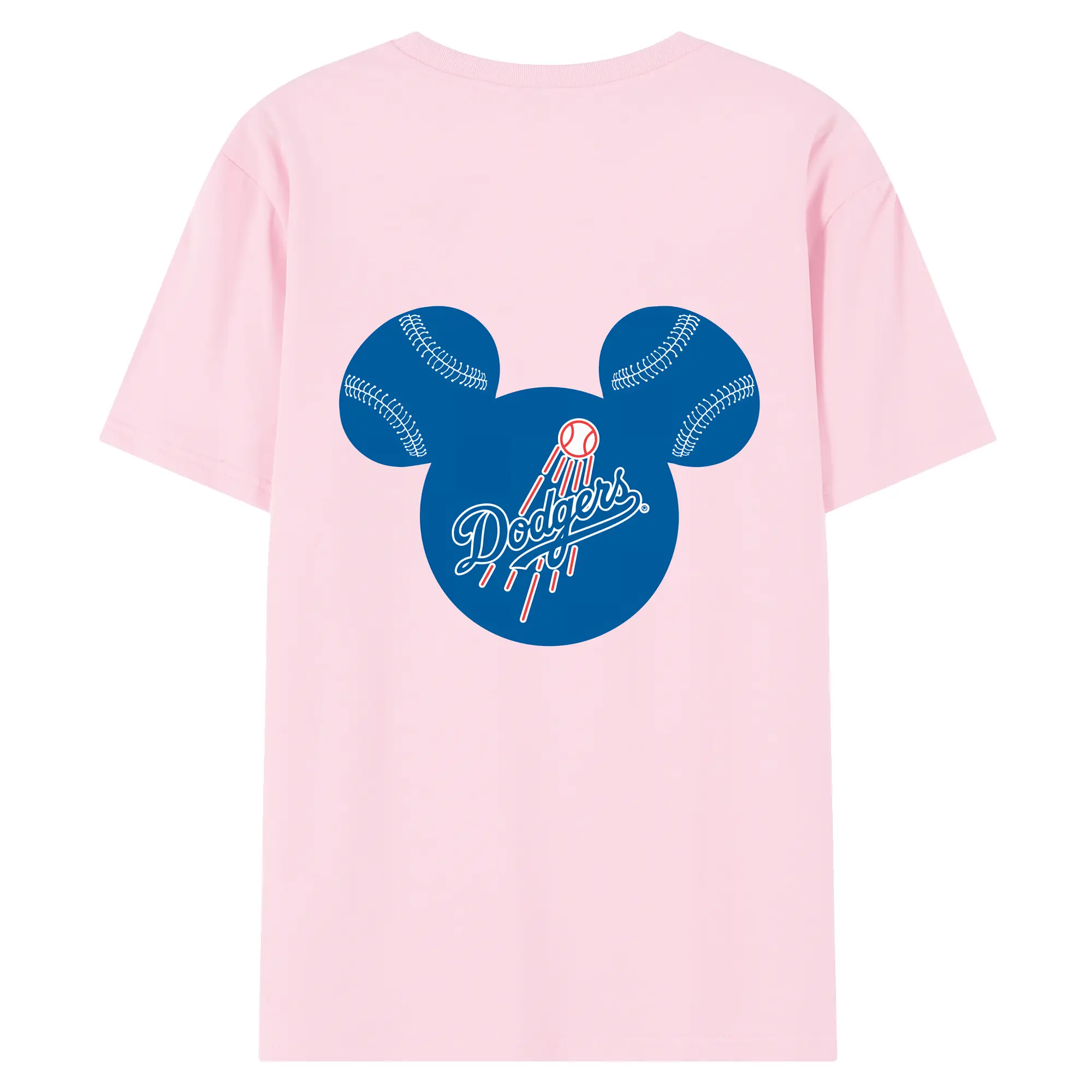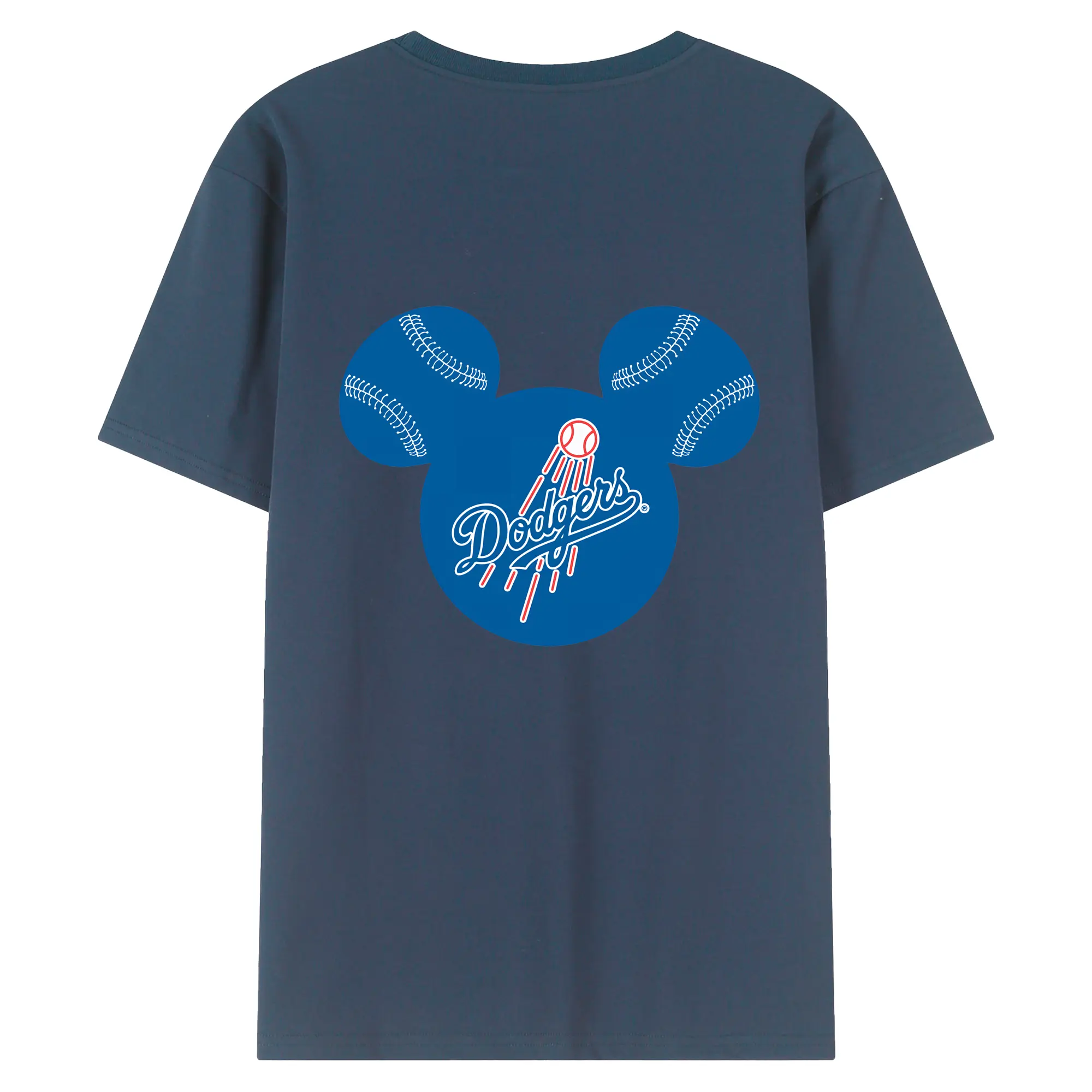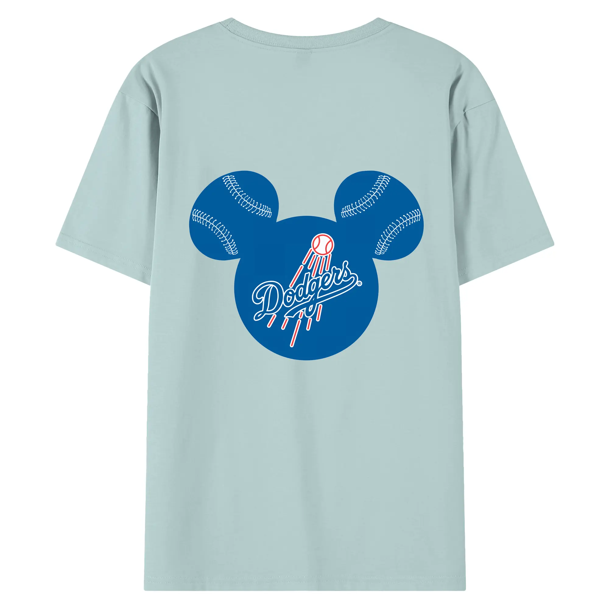Los Angeles Dodgers Baseball Mickey Mouse - 180g Combed Cotton T-Shirt With Back Heat Transfer Print – Soft, Lightweight, Fitted Design – Stylish Casual Wear For Sports & Everyday Use