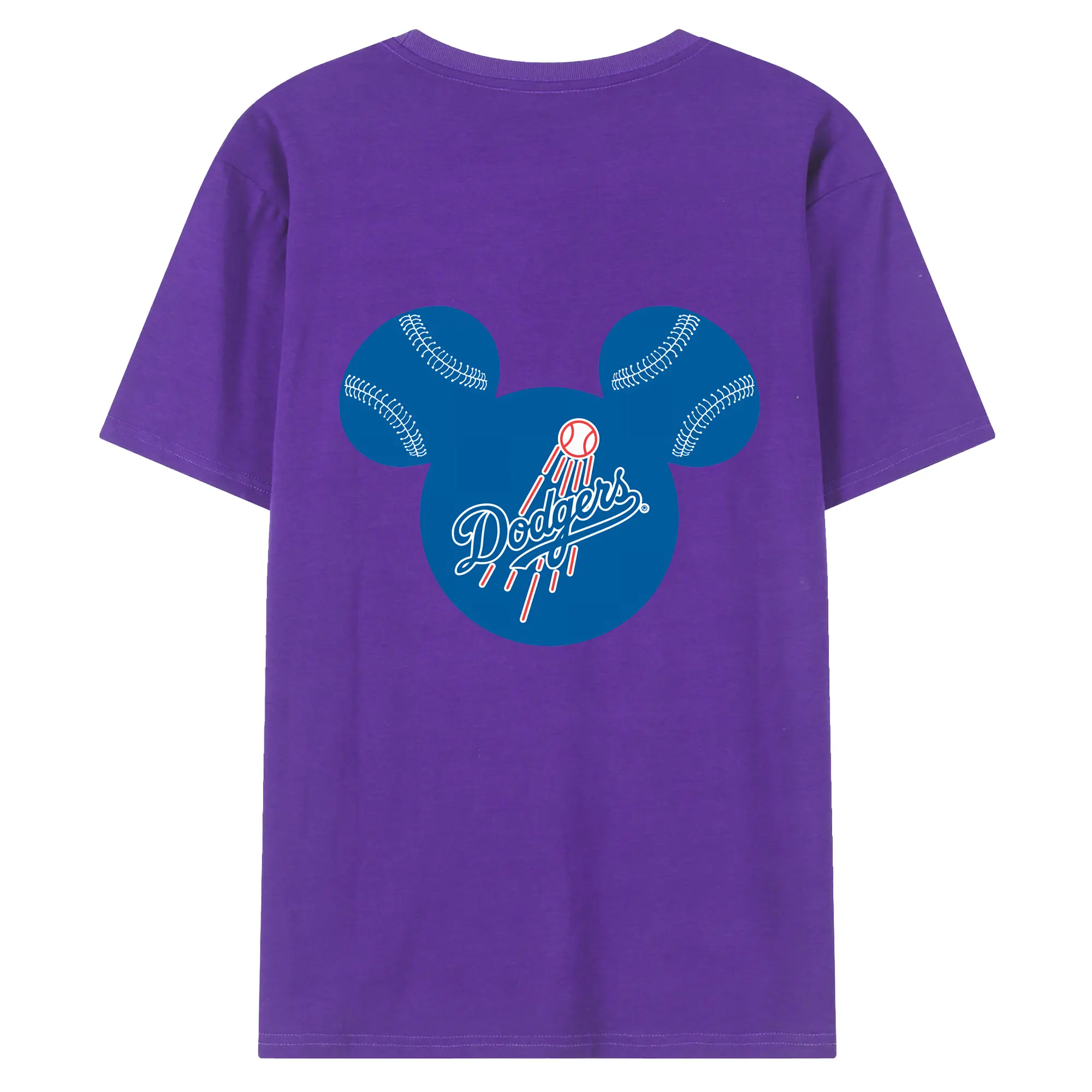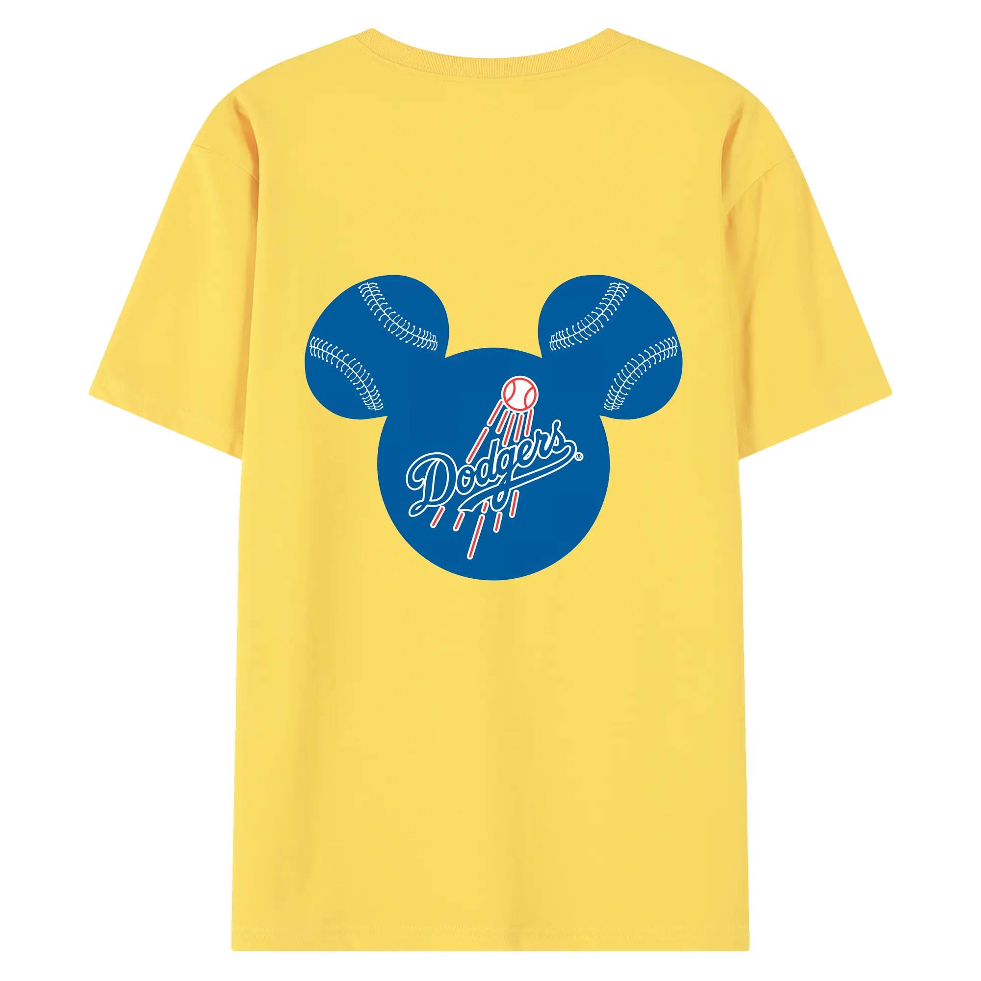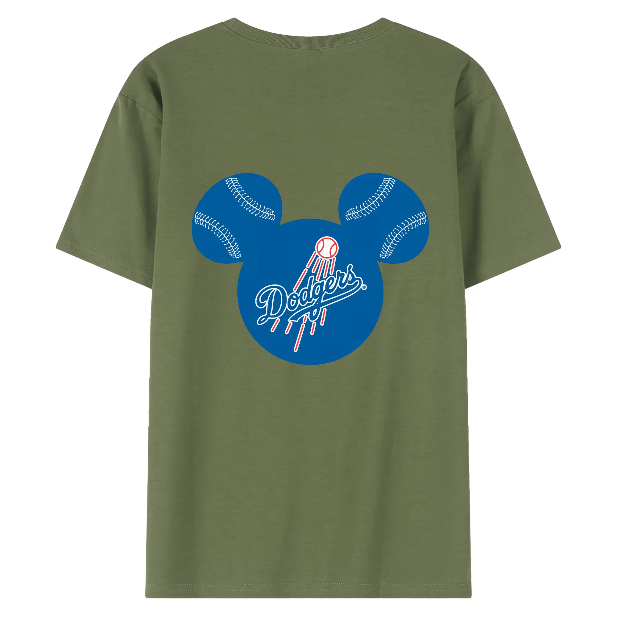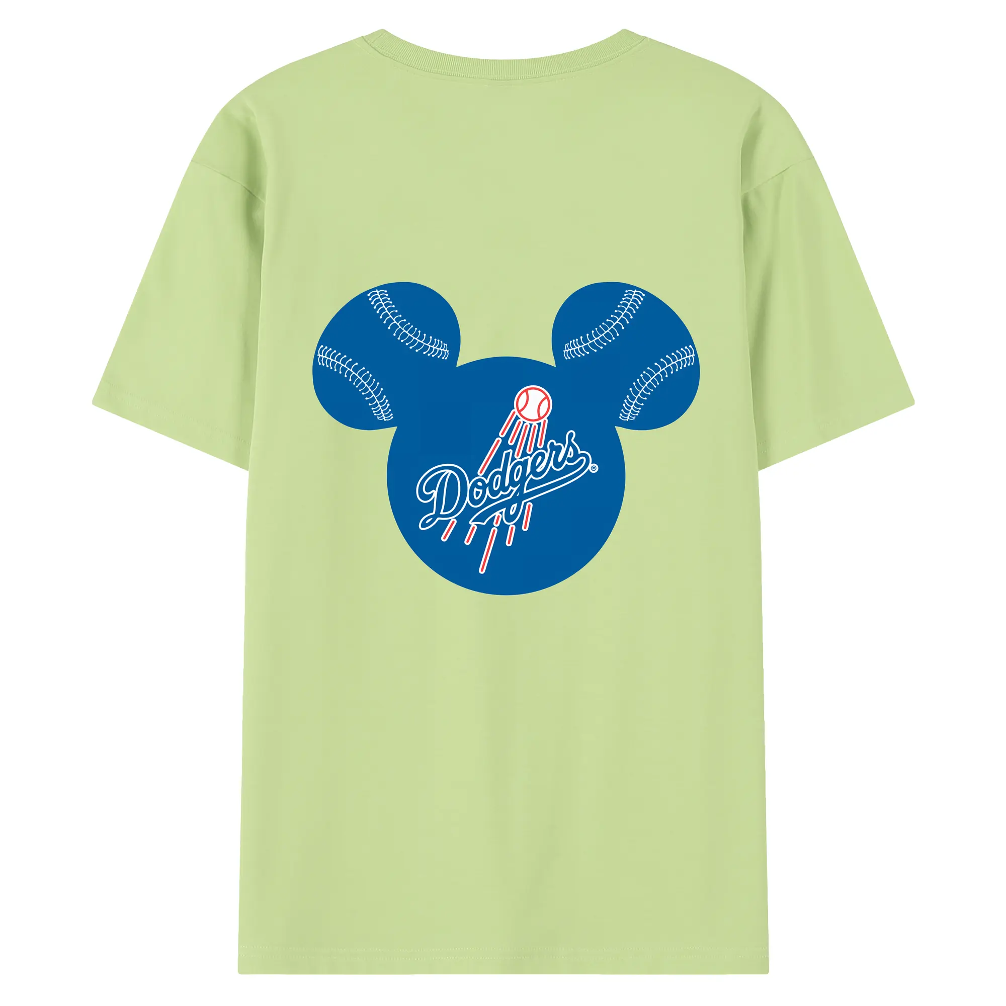 Los Angeles Dodgers Baseball Mickey Mouse - 180g Combed Cotton T-Shirt With Back Heat Transfer Print – Soft, Lightweight, Fitted Design – Stylish Casual Wear For Sports & Everyday Use