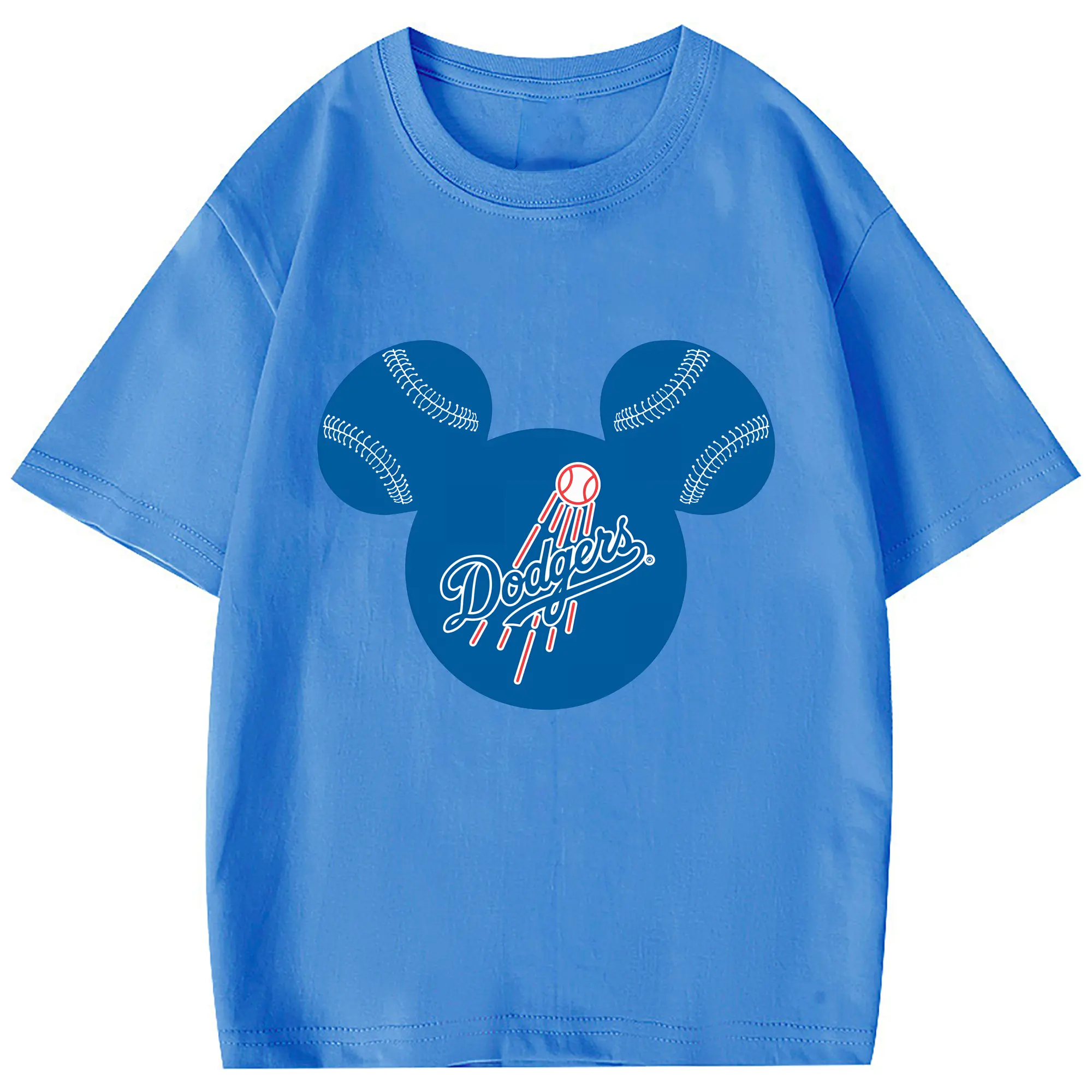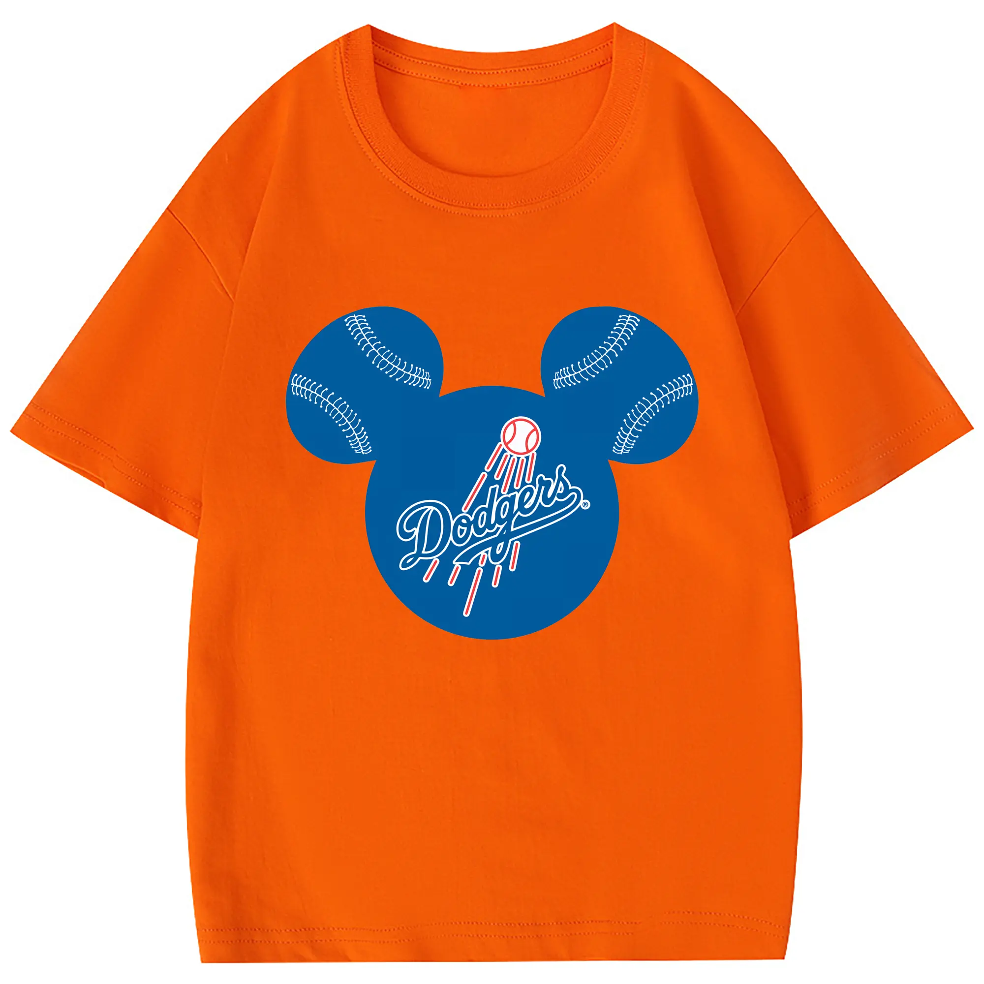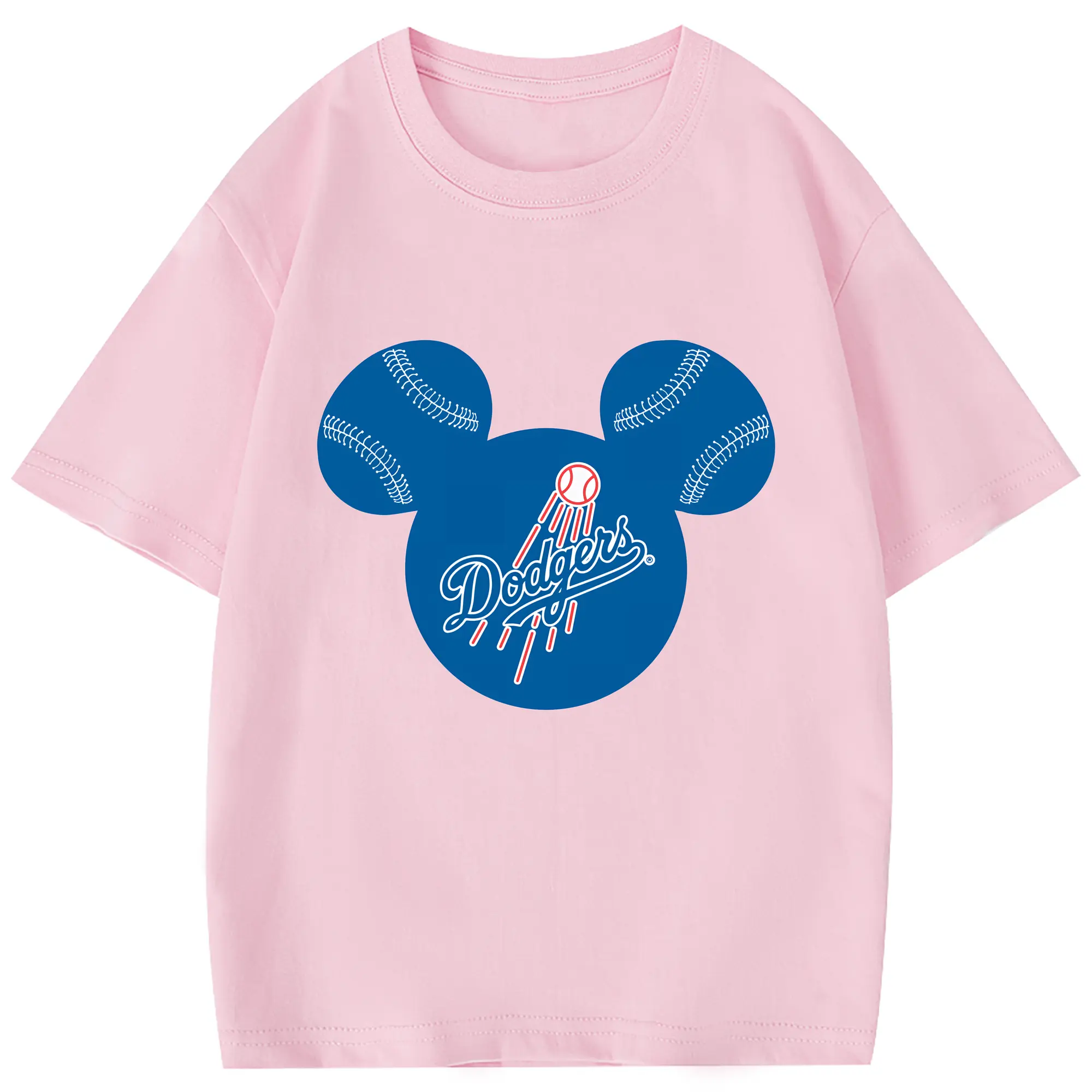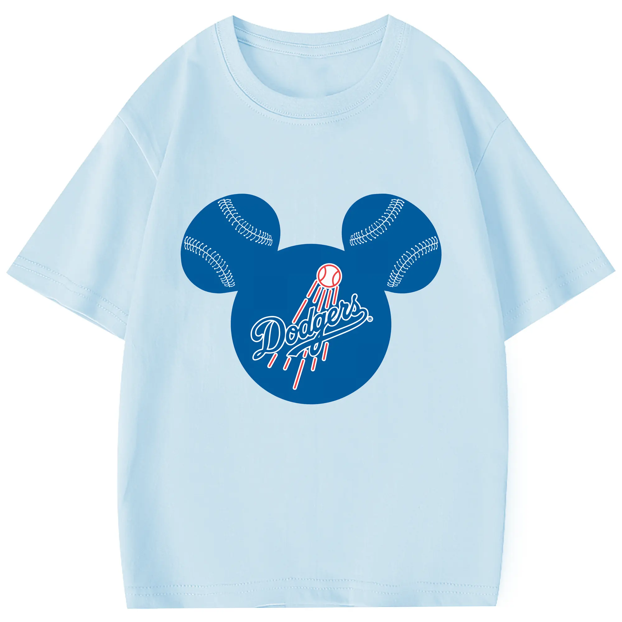 Los Angeles Dodgers Baseball Mickey Mouse - Combed Cotton Kids T-Shirt 180g With Front Heat Transfer Print – Soft, Lightweight, Side-Seamed Design – Stylish And Comfortable Casual Wear For Everyday Activities
