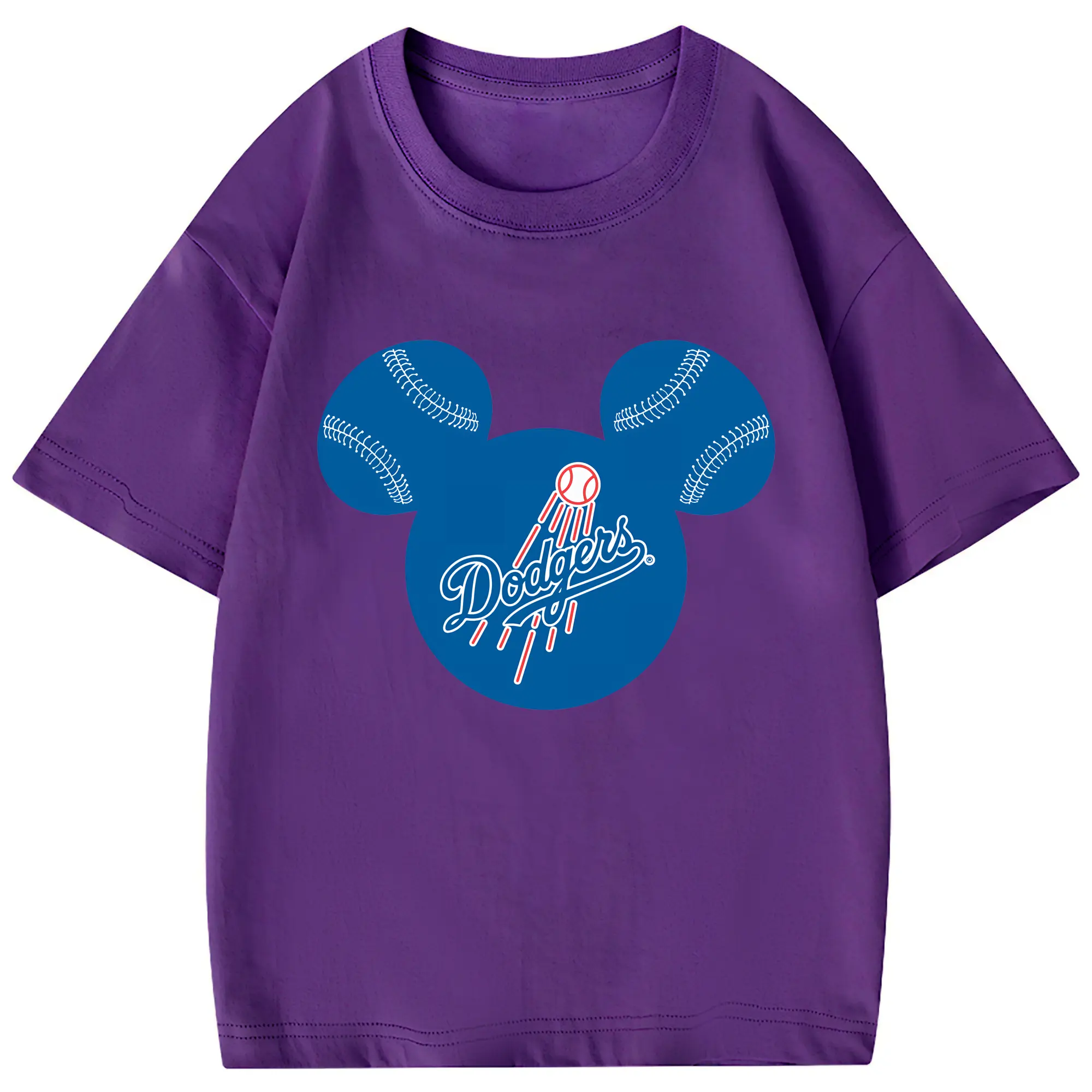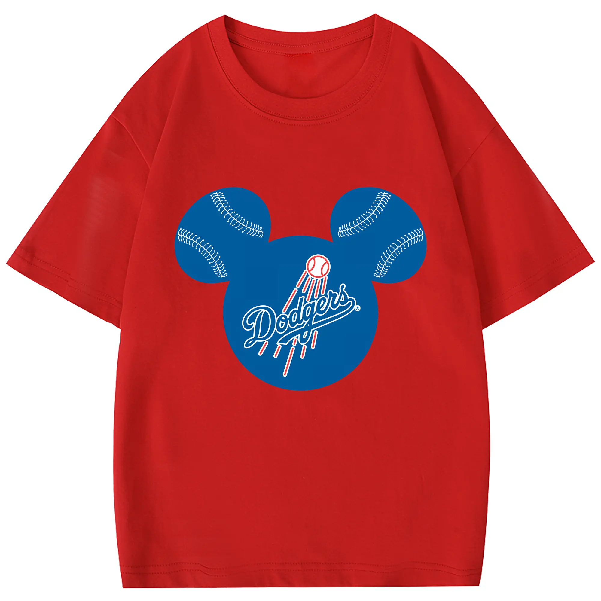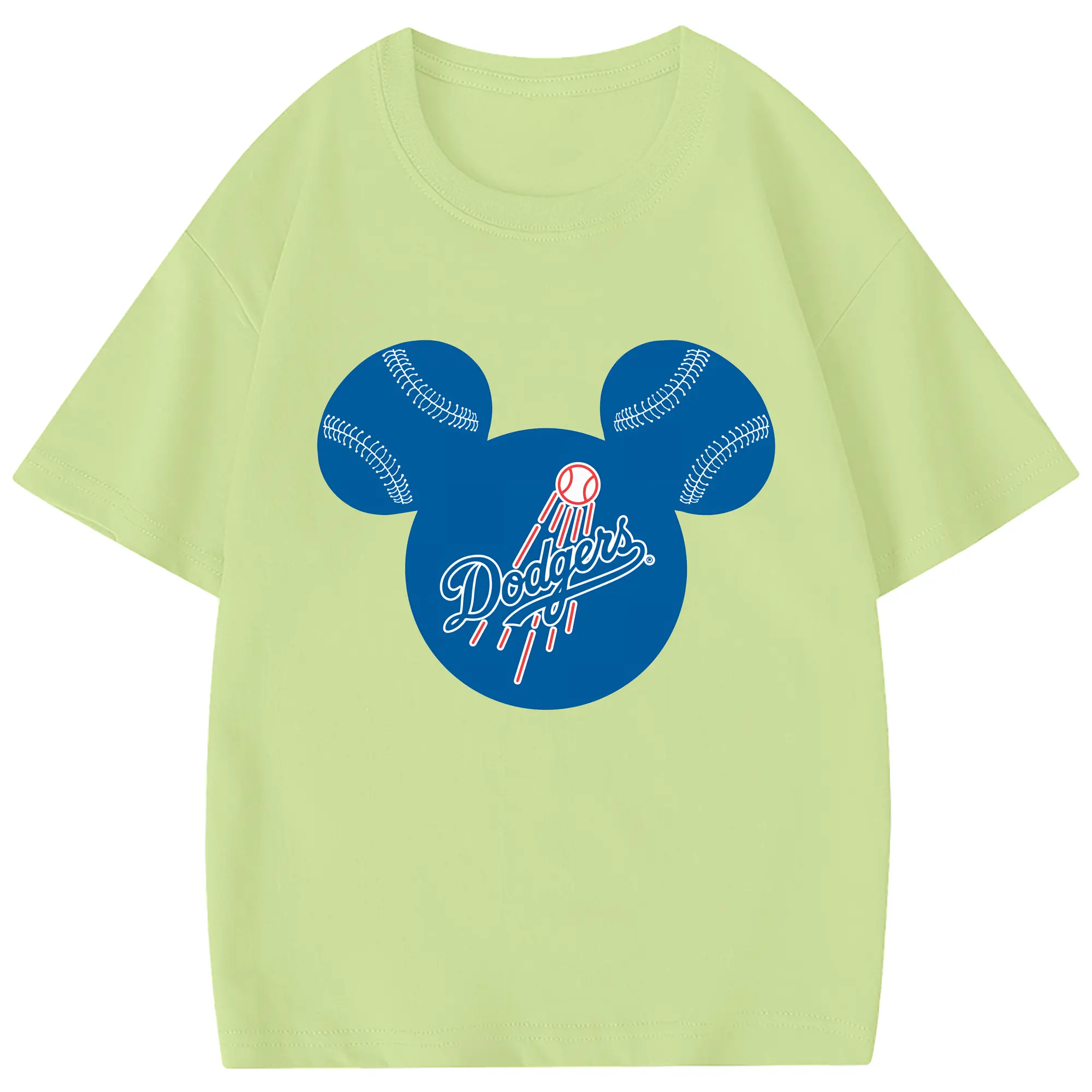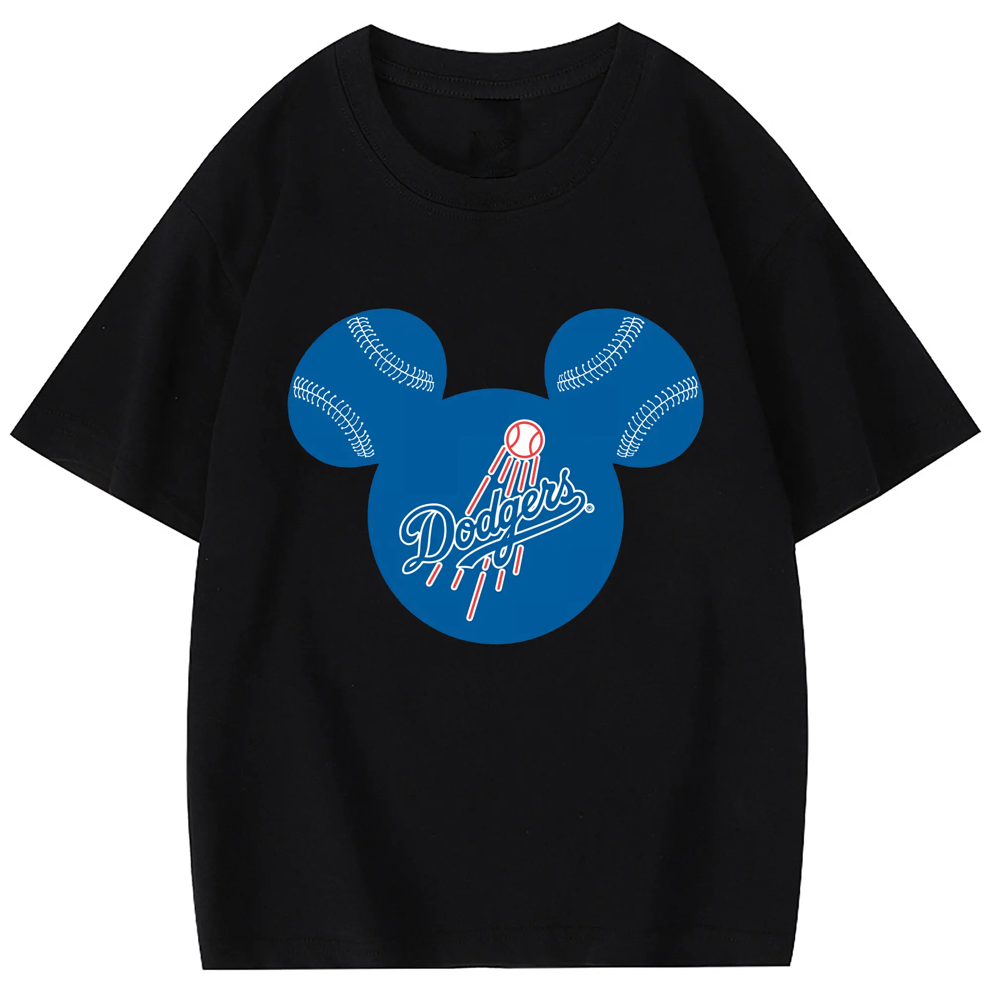Los Angeles Dodgers Baseball Mickey Mouse - Combed Cotton Kids T-Shirt 180g With Front Heat Transfer Print – Soft, Lightweight, Side-Seamed Design – Stylish And Comfortable Casual Wear For Everyday Activities