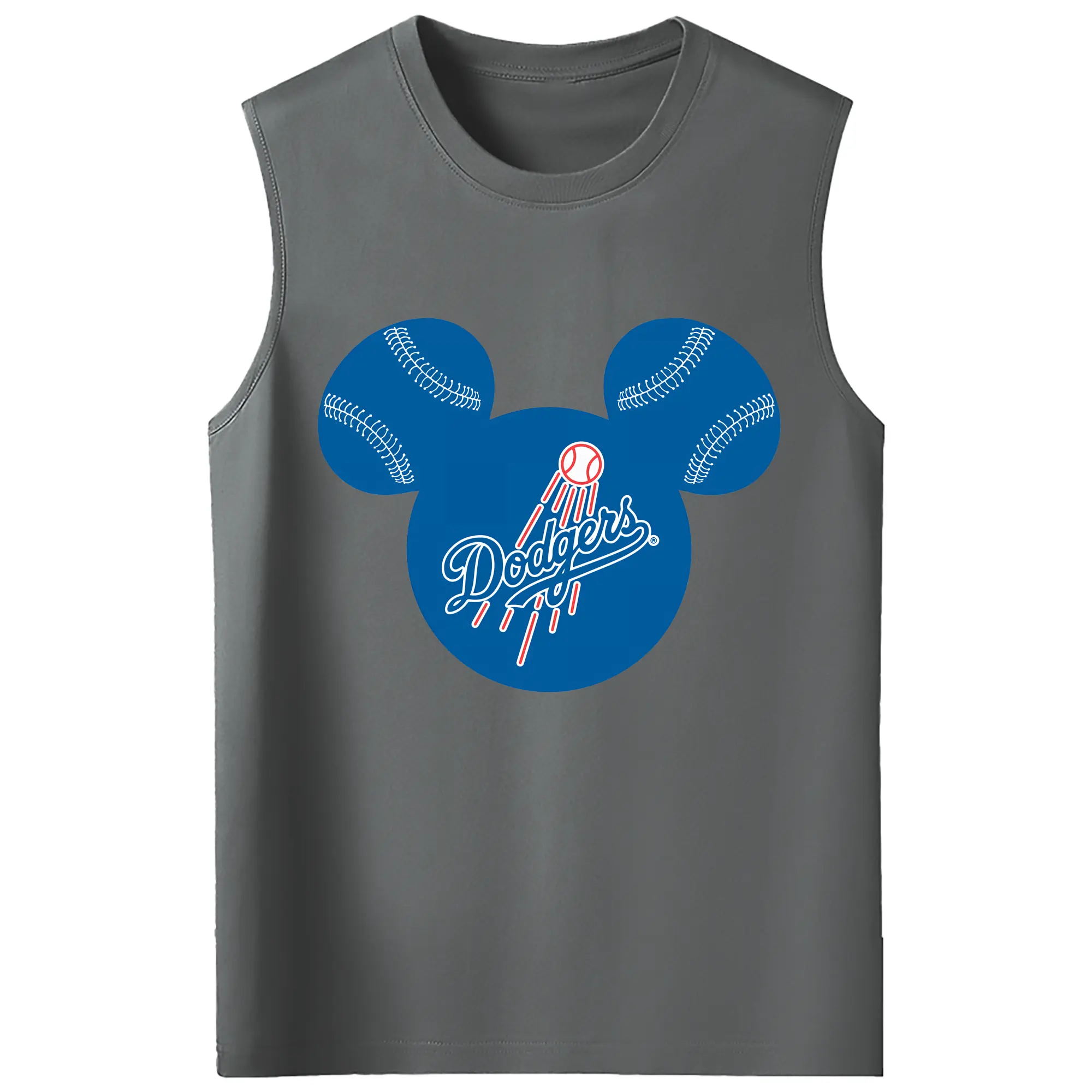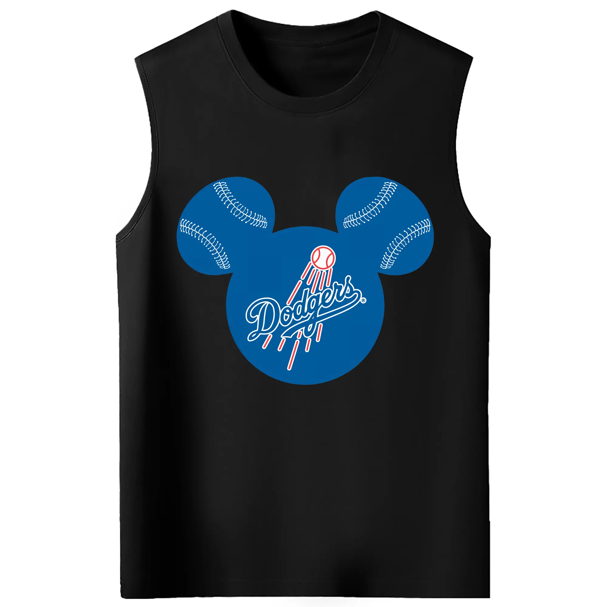 Los Angeles Dodgers Baseball Mickey Mouse - 210g Combed Cotton Tank Top With Front Heat Transfer Print – Soft, Lightweight, Fitted Design – Stylish & Comfortable Casual Wear For Sports & Everyday Use