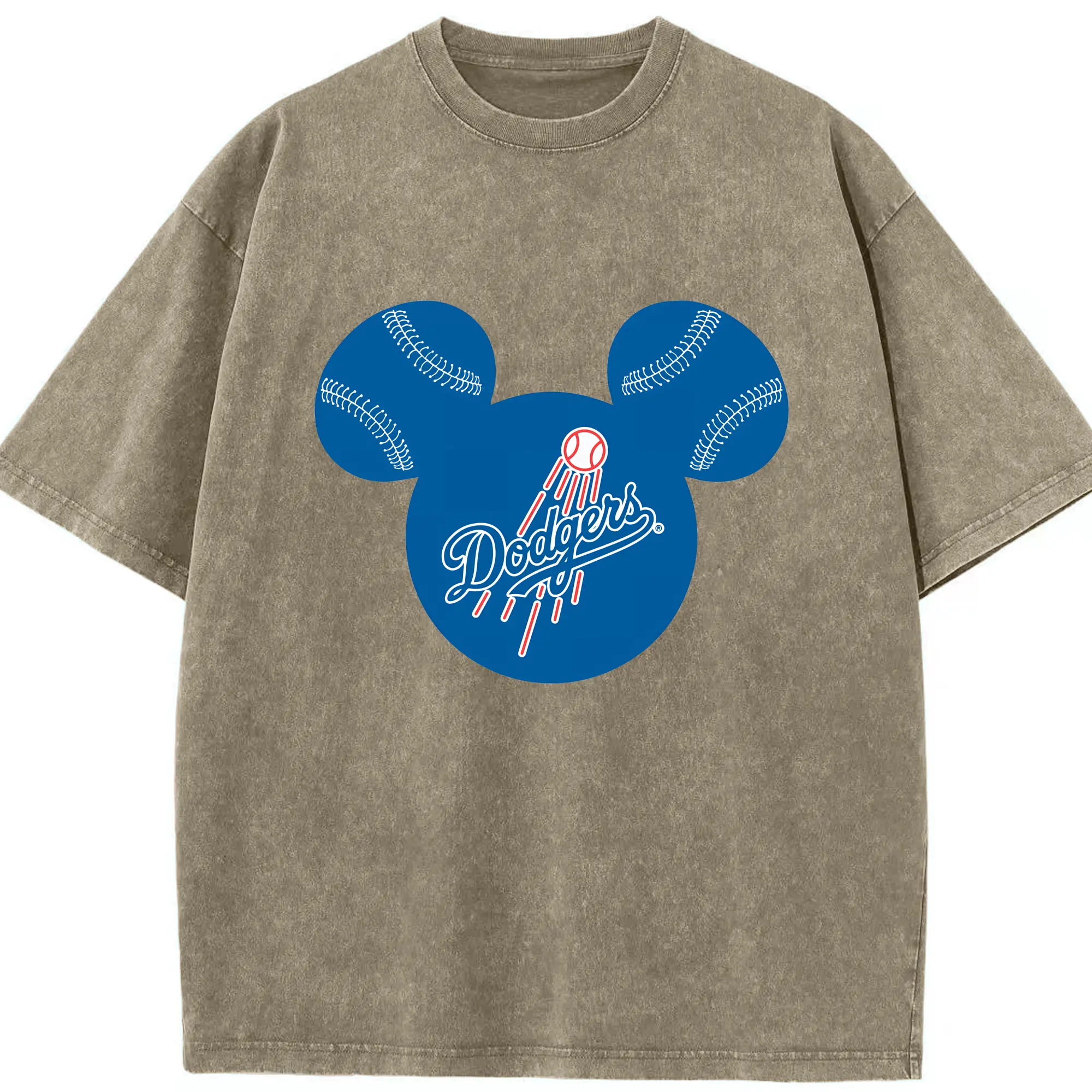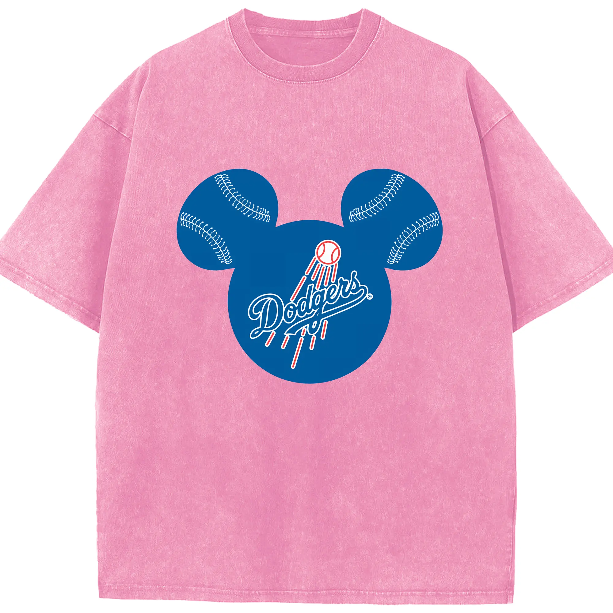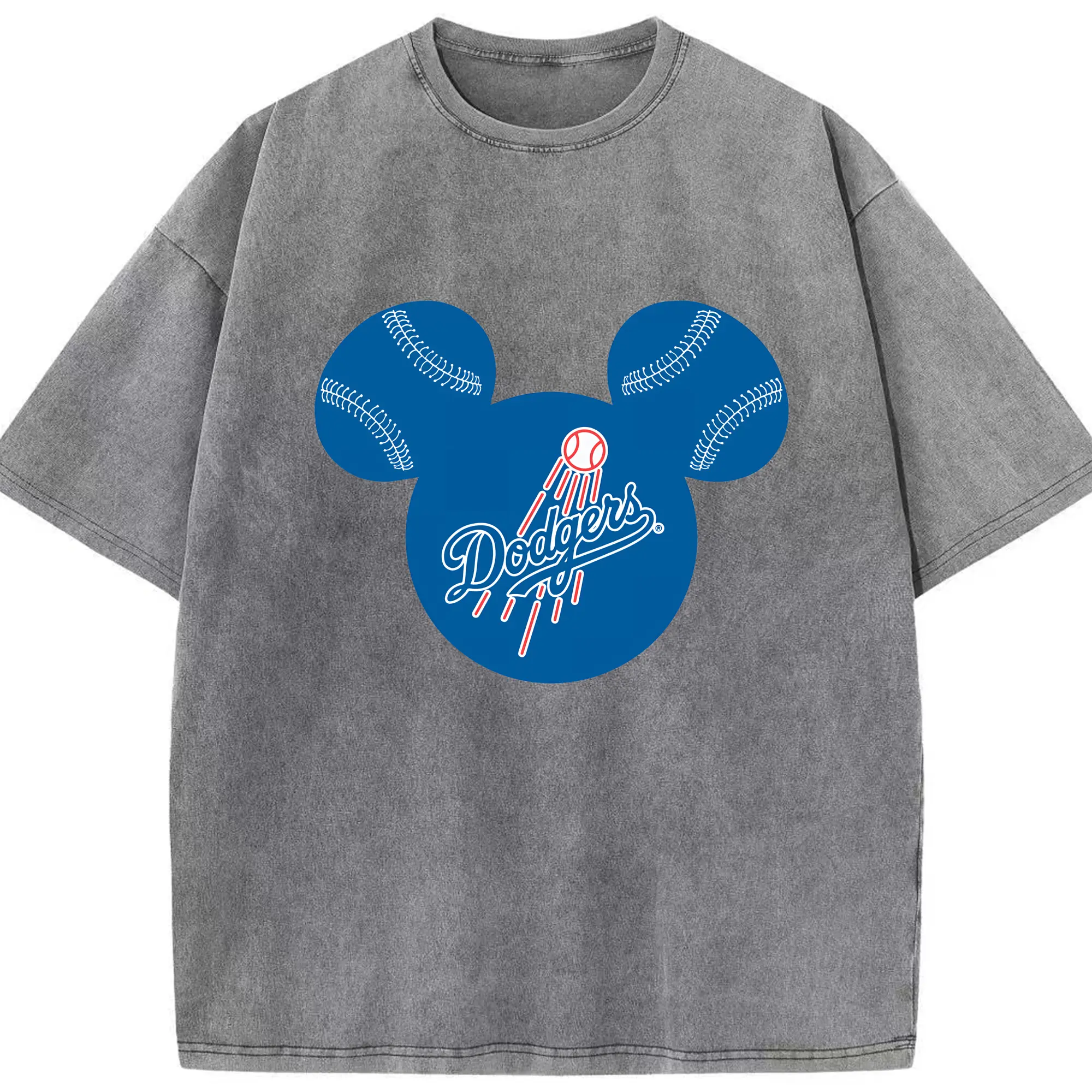 Los Angeles Dodgers Baseball Mickey Mouse - Washed Vintage Look 230g Cotton Oversized T-Shirt With Front Heat Transfer Print – Soft, Lightweight, Stylish Fit – Comfortable Casual Wear For Sports & Everyday Use