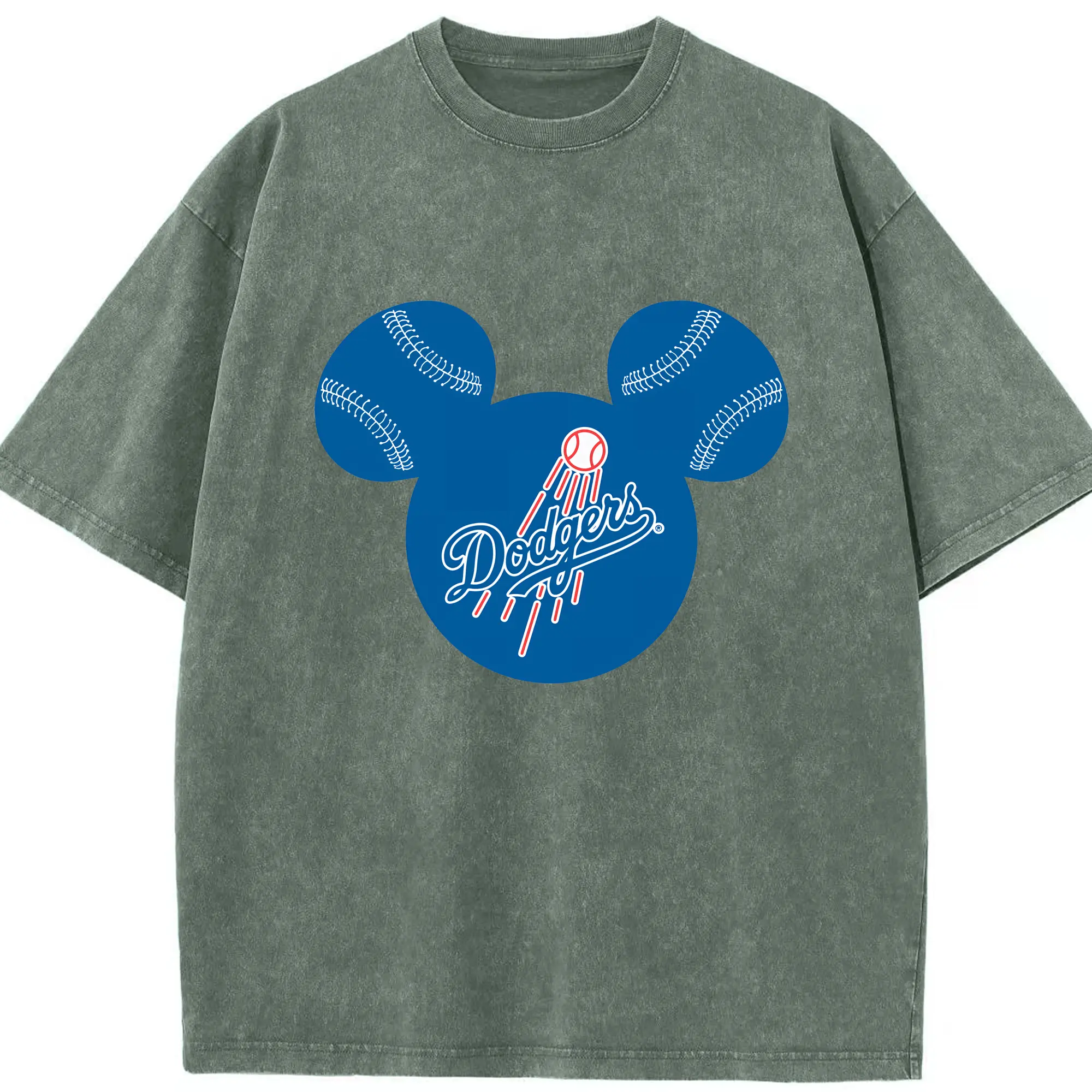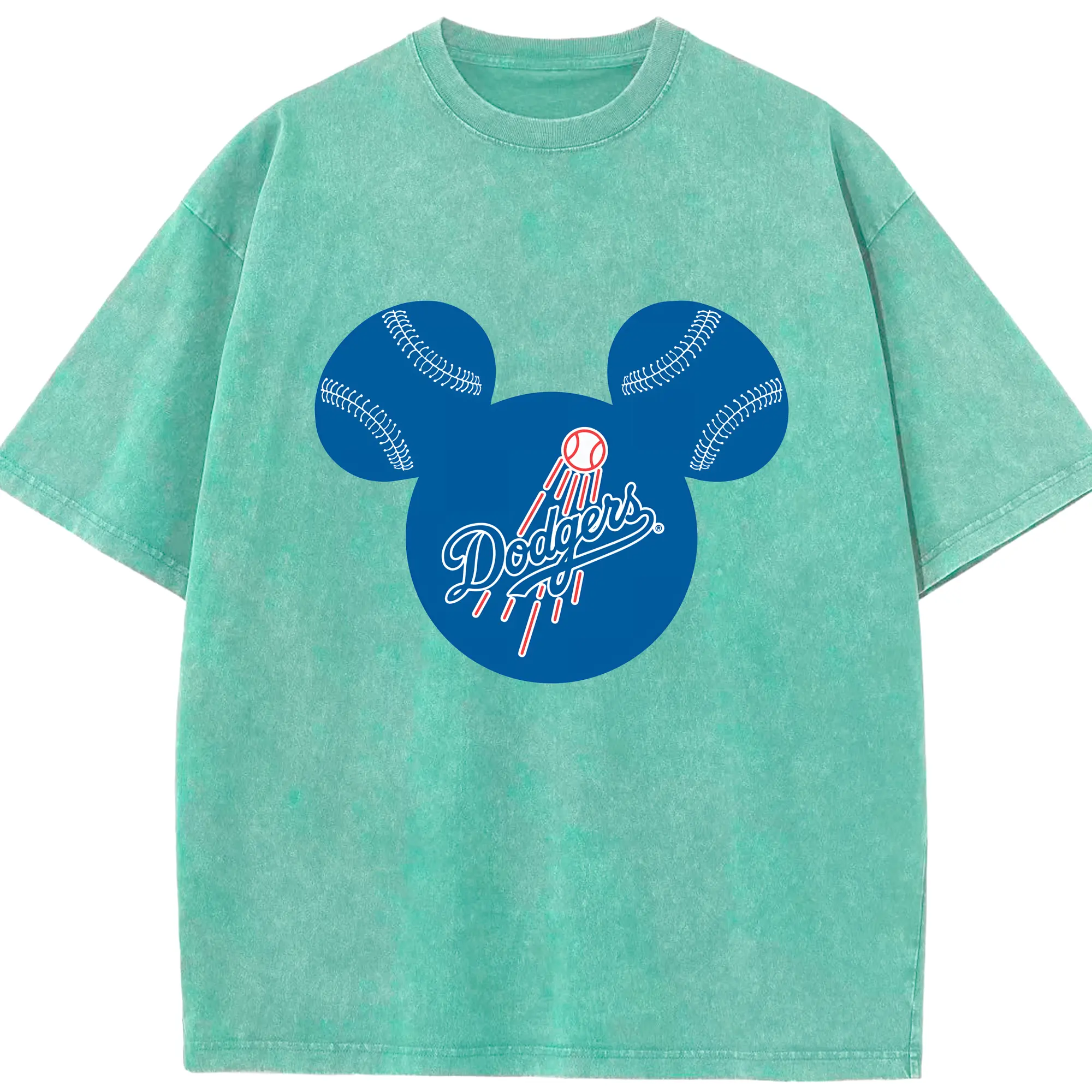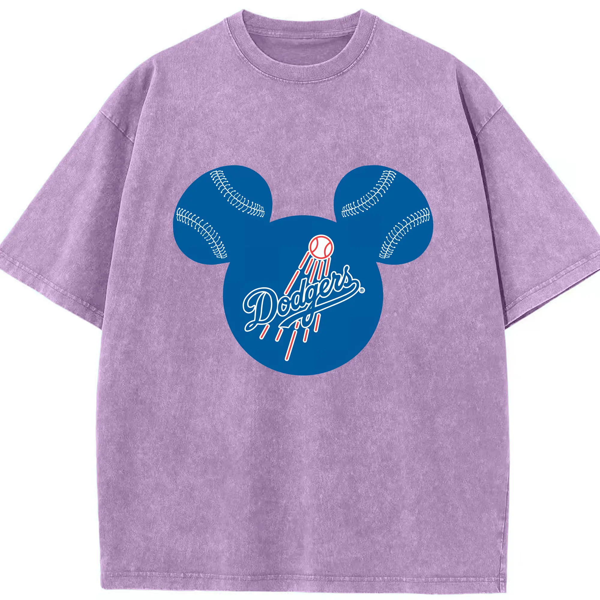 Los Angeles Dodgers Baseball Mickey Mouse - Washed Vintage Look 230g Cotton Oversized T-Shirt With Front Heat Transfer Print – Soft, Lightweight, Stylish Fit – Comfortable Casual Wear For Sports & Everyday Use