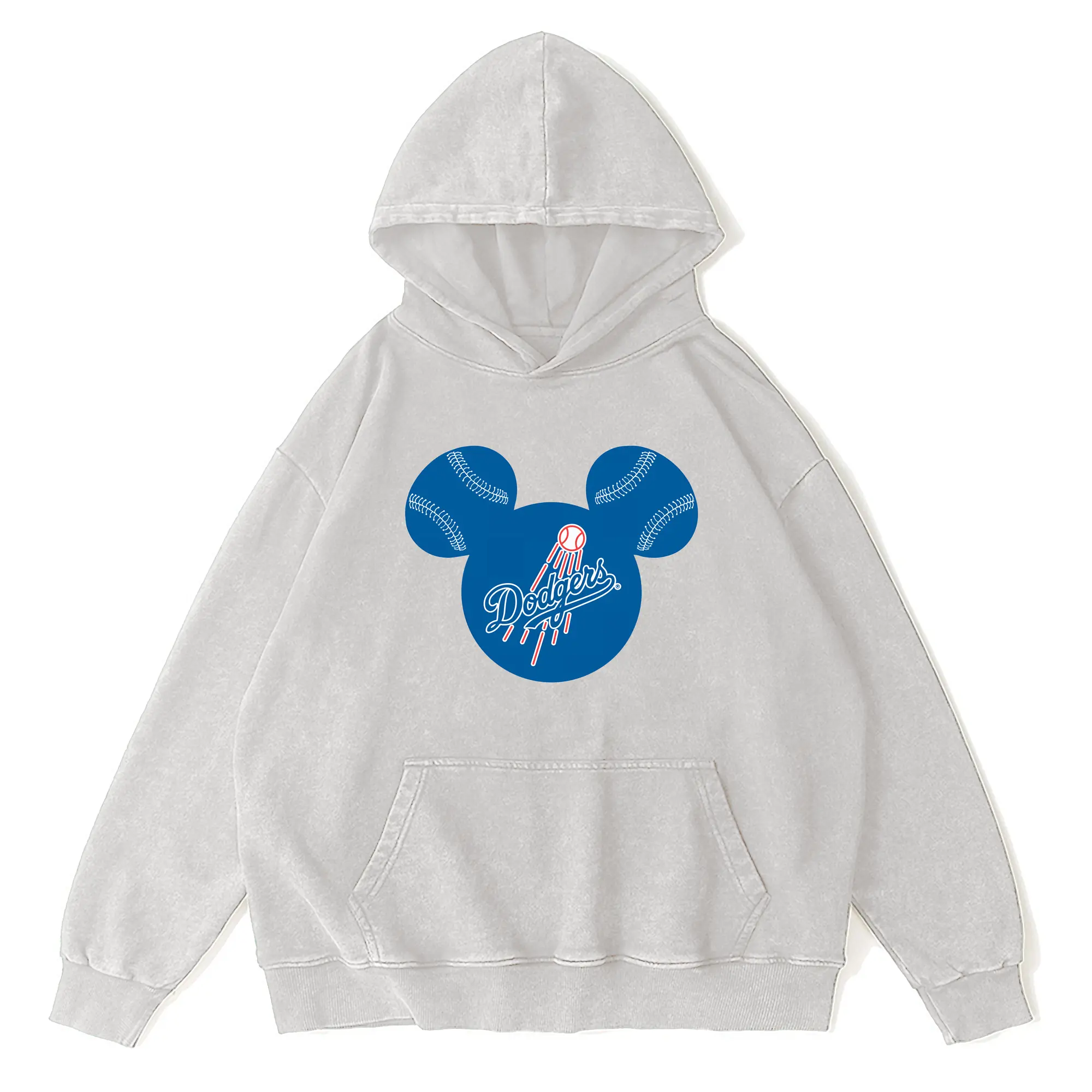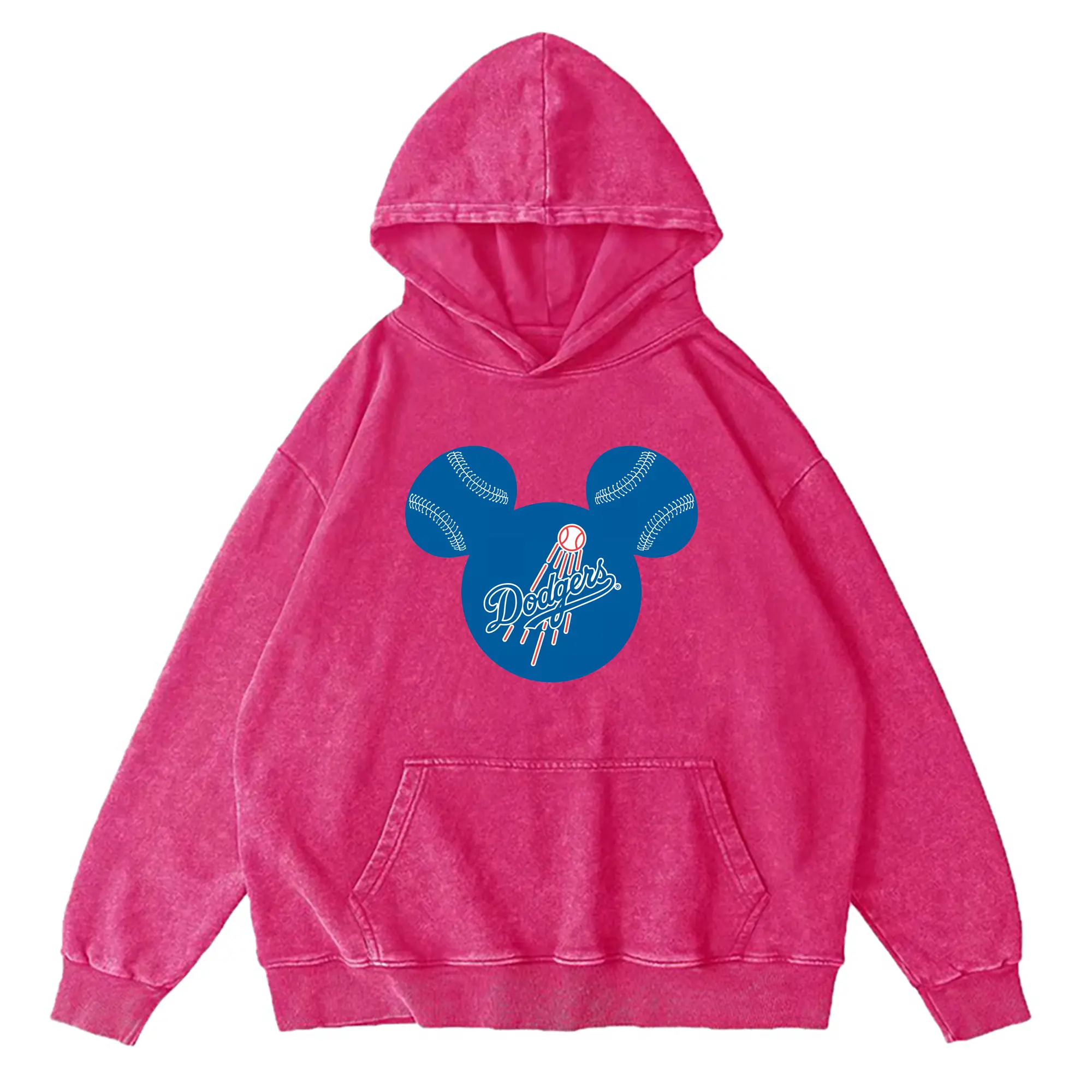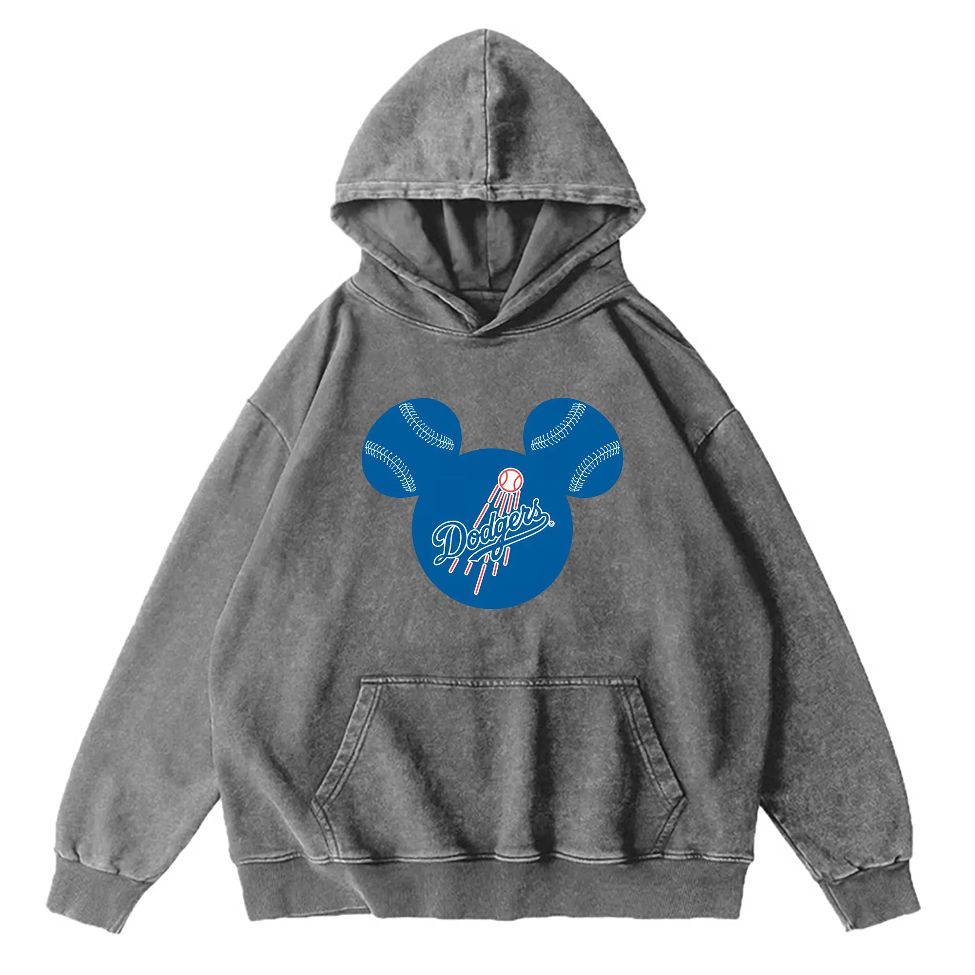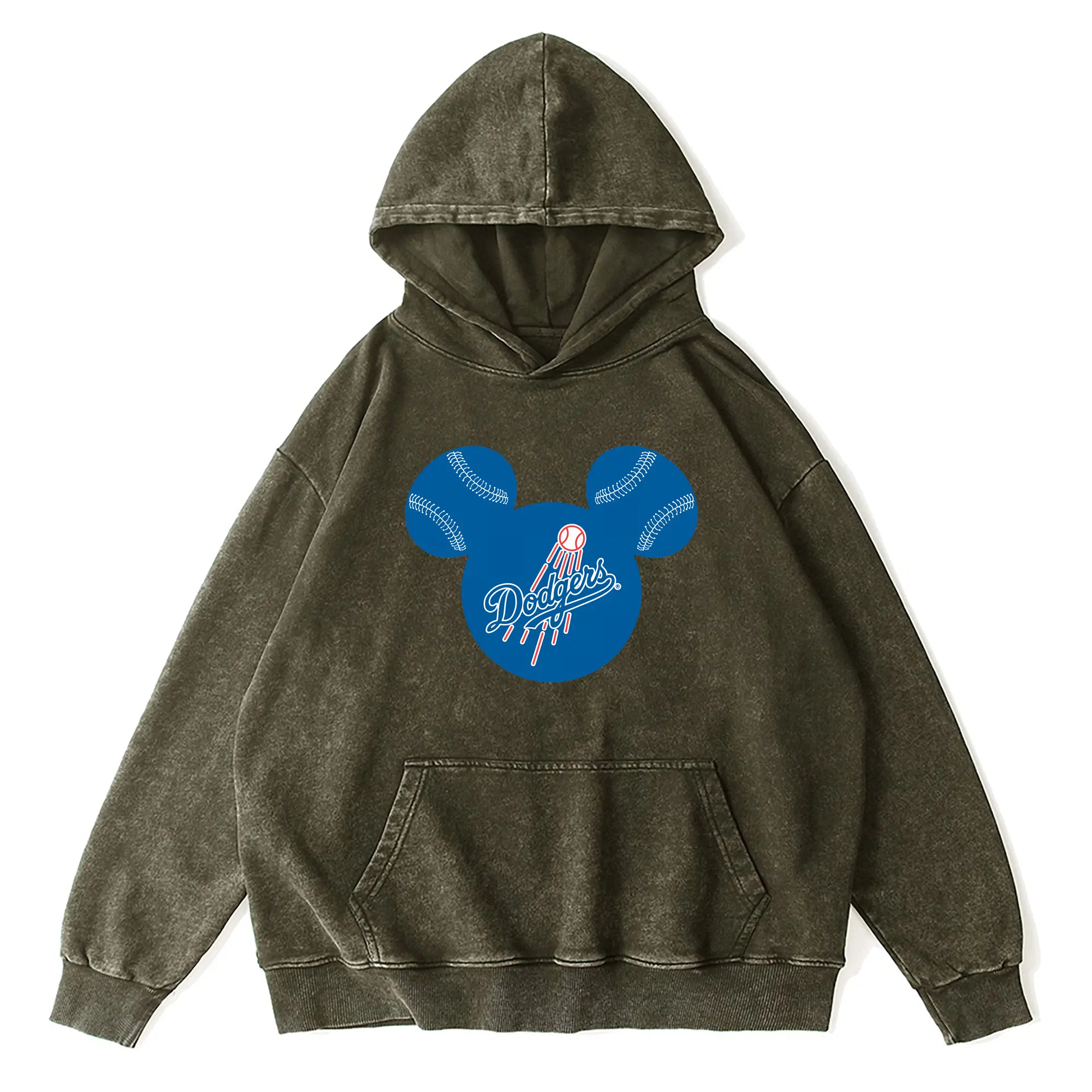 Los Angeles Dodgers Baseball Mickey Mouse - Vintage Washed Wax-Dyed Hoodie – 80% Cotton, 20% Polyester – Soft, Durable & Stylish – Perfect For Sports, Casual & Everyday Wear