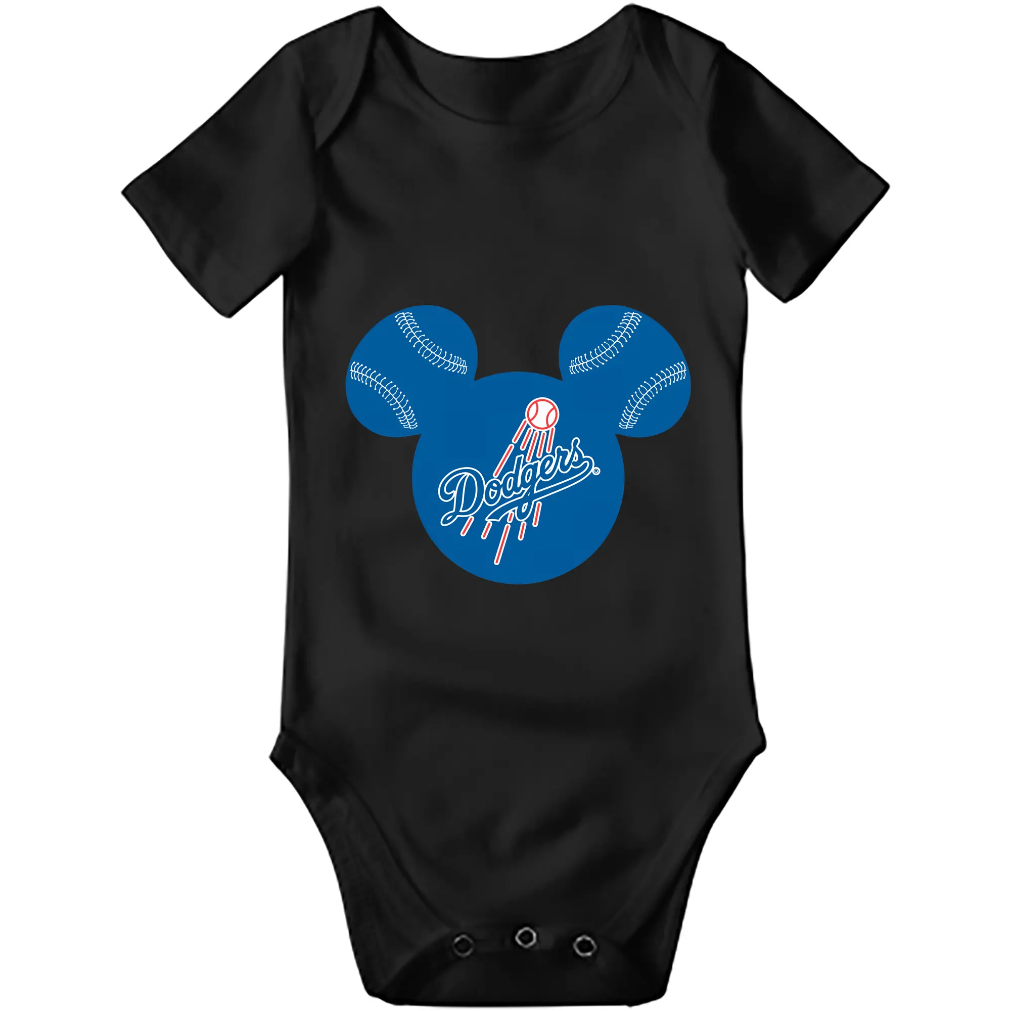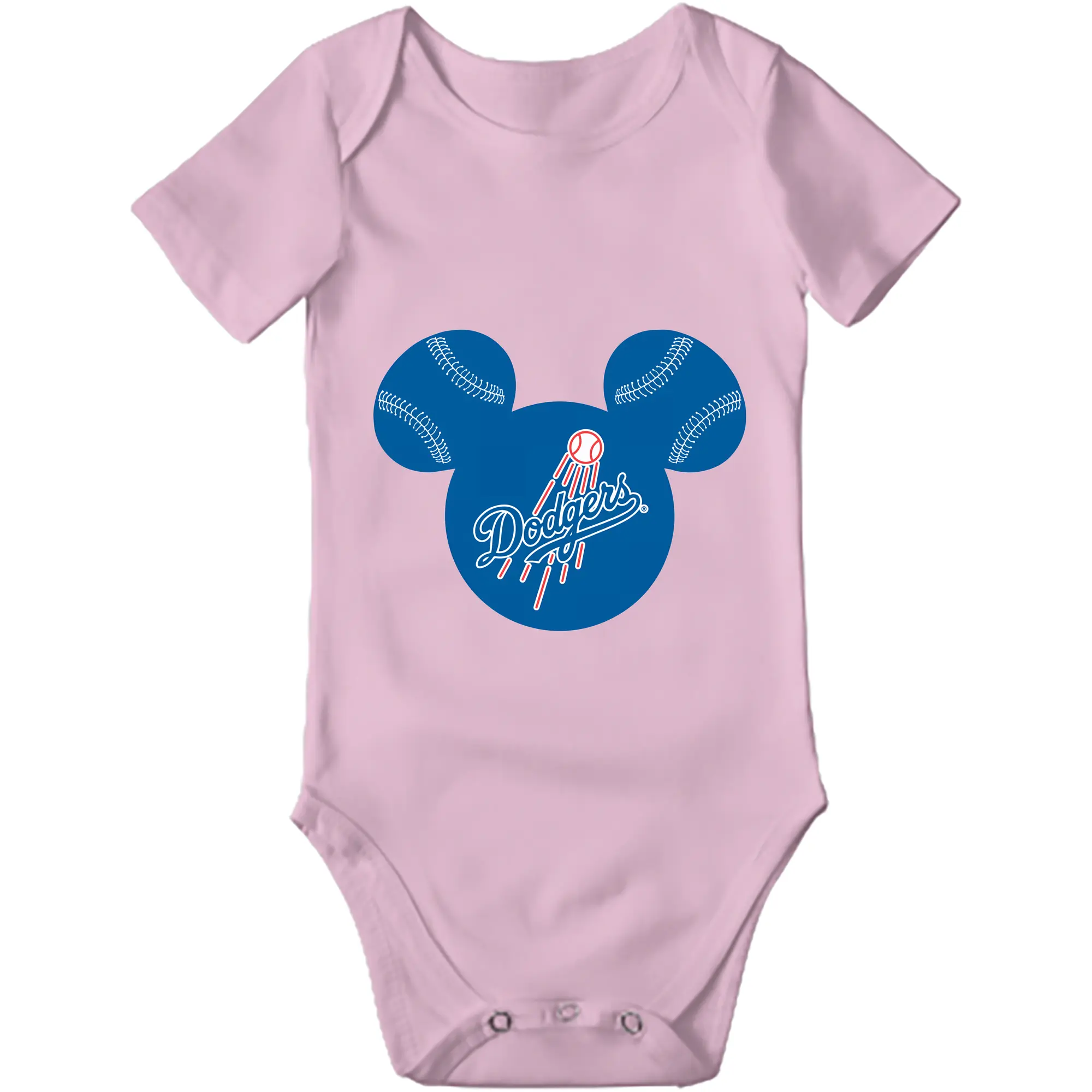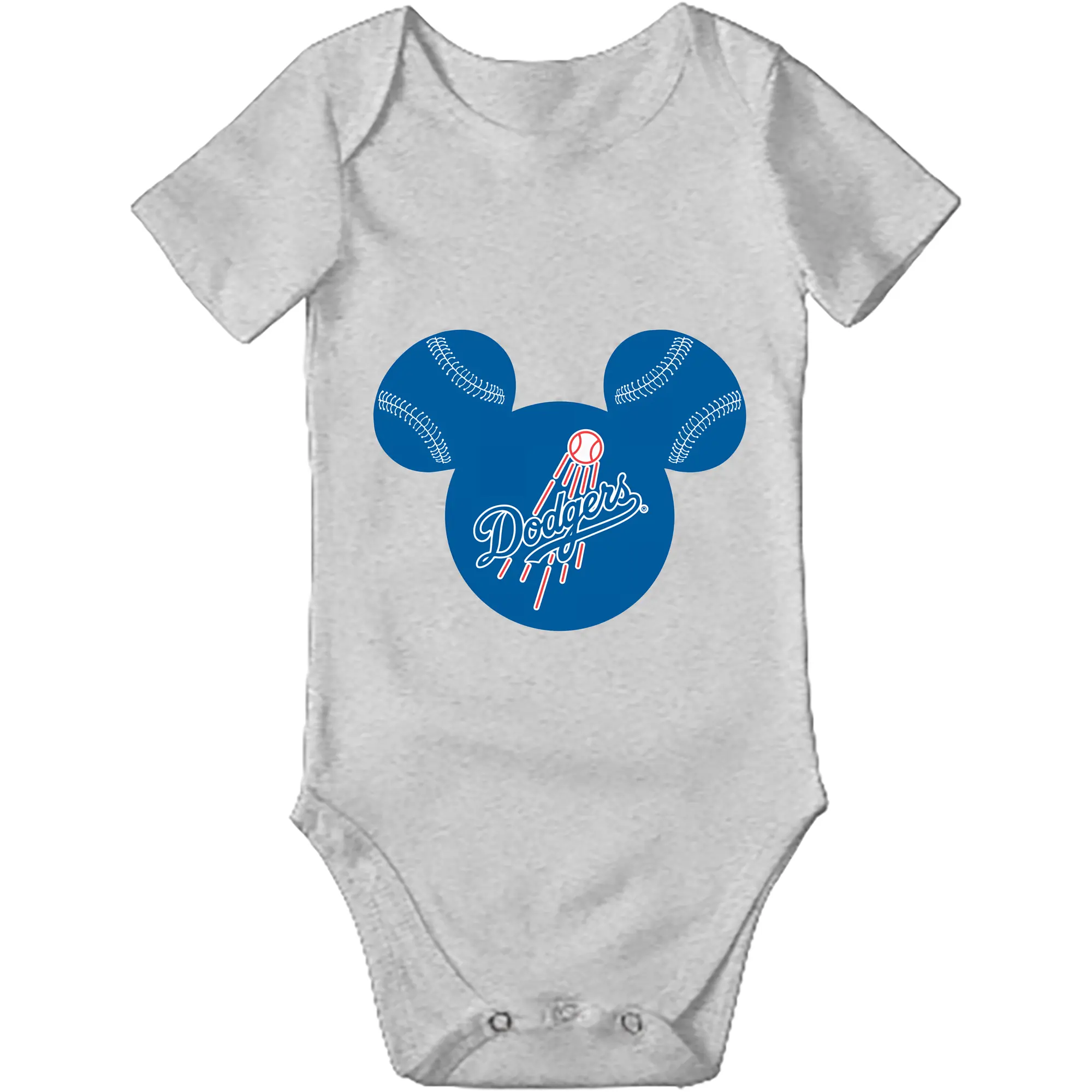Los Angeles Dodgers Baseball Mickey Mouse - Baby Short Sleeve Romper – 100% Cotton Soft & Breathable Digital Print Onesie With Easy Snap Closure And Envelope Shoulder – Comfortable For Daily Wear & Travel