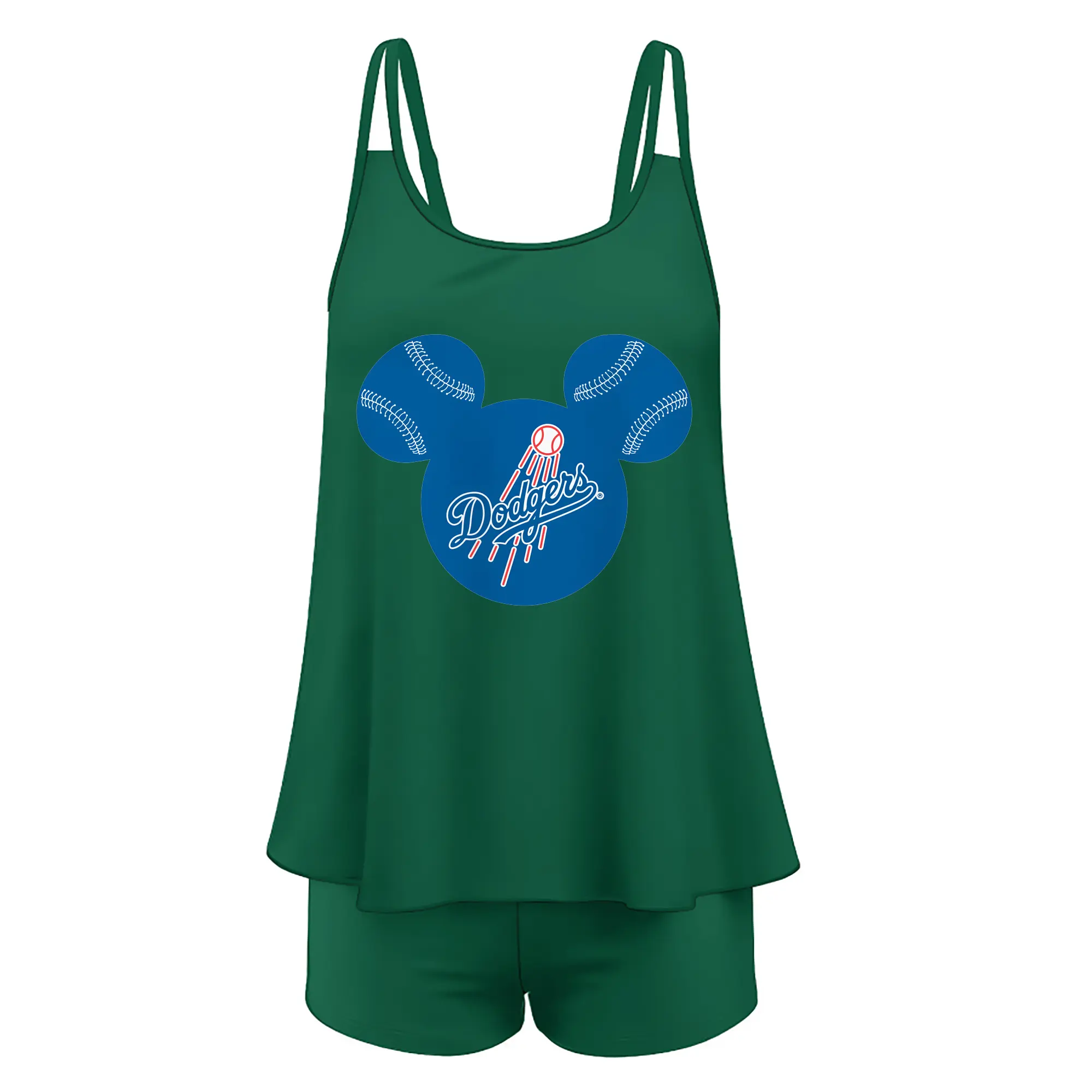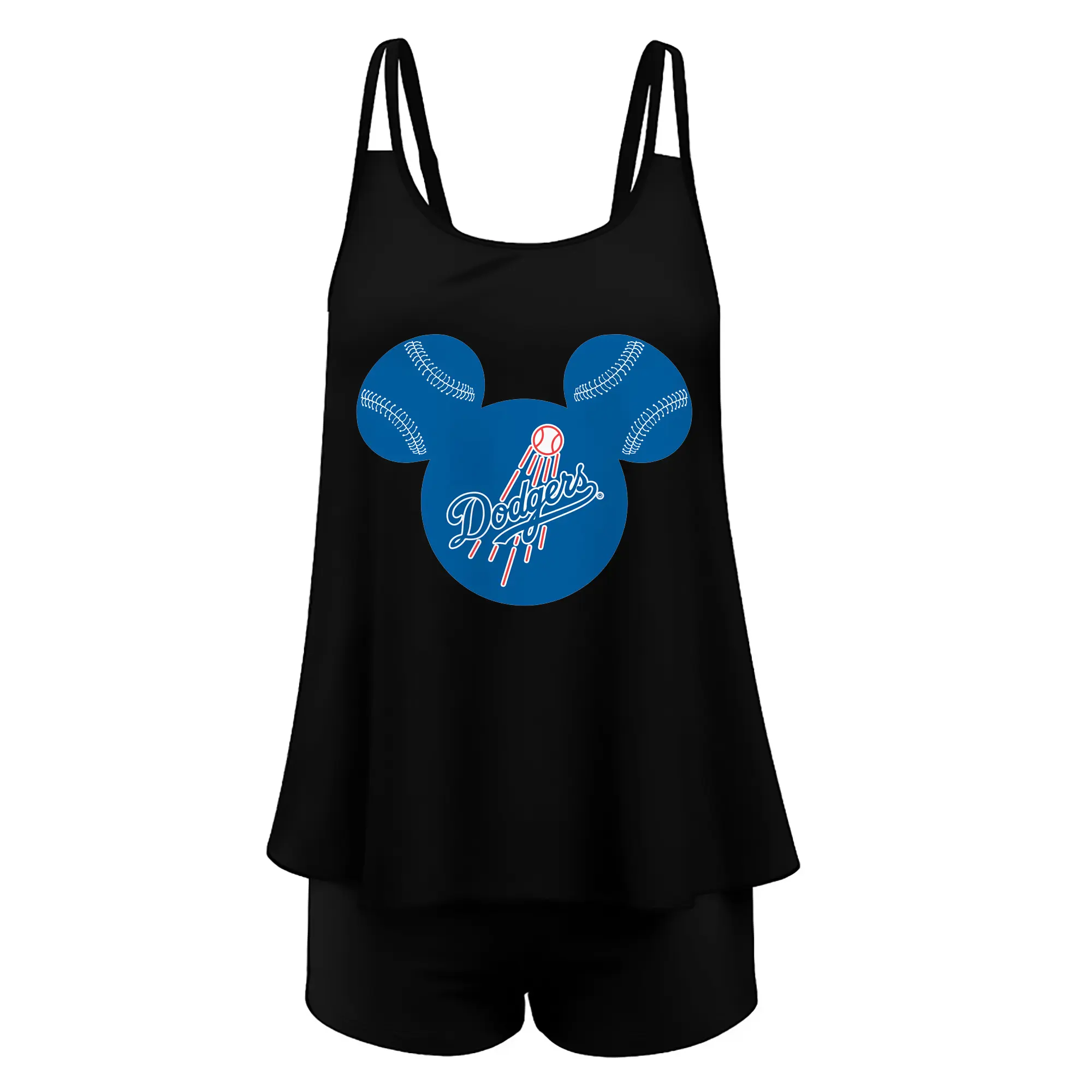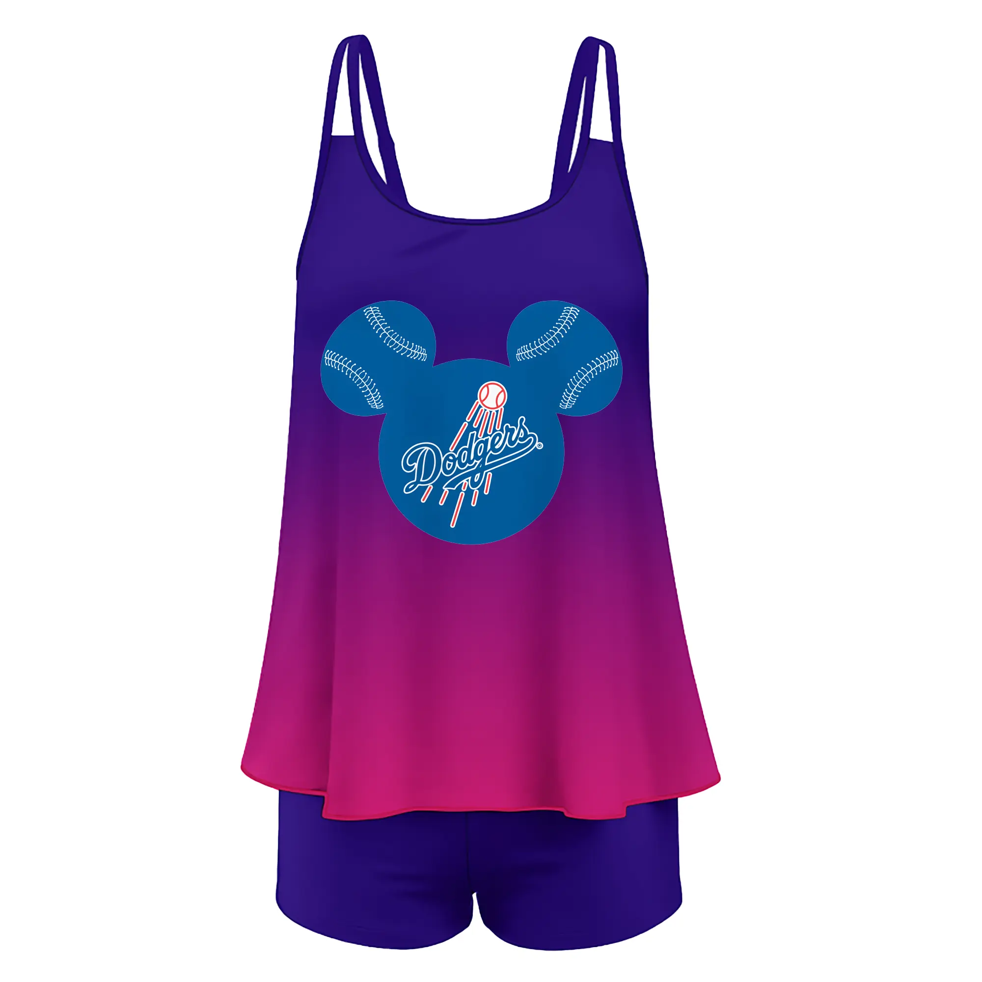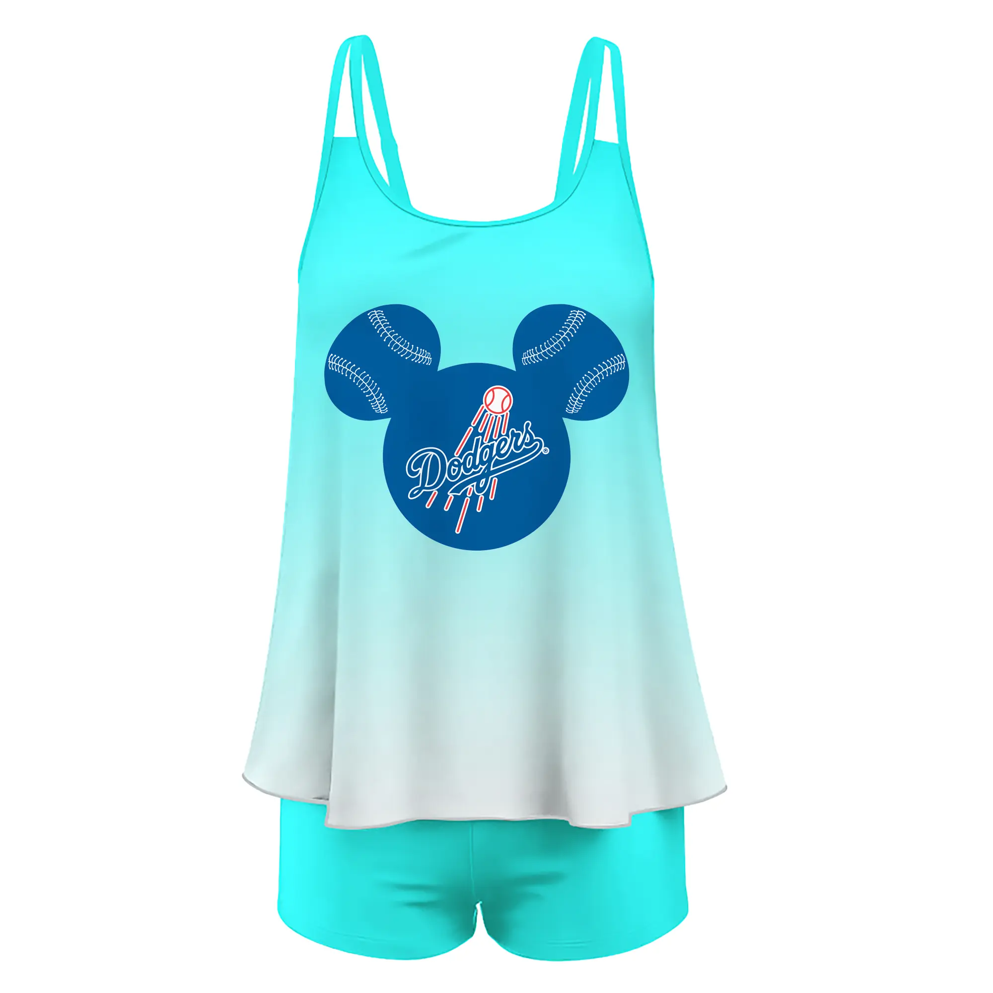 Los Angeles Dodgers Baseball Mickey Mouse - Women’s Heat Transfer Printed Two-Piece Swimsuit Set – Sexy Double Strap Bandeau Top & Boyshort Bottoms, Soft Nylon-Spandex – Perfect for Beach, Pool & Vacation