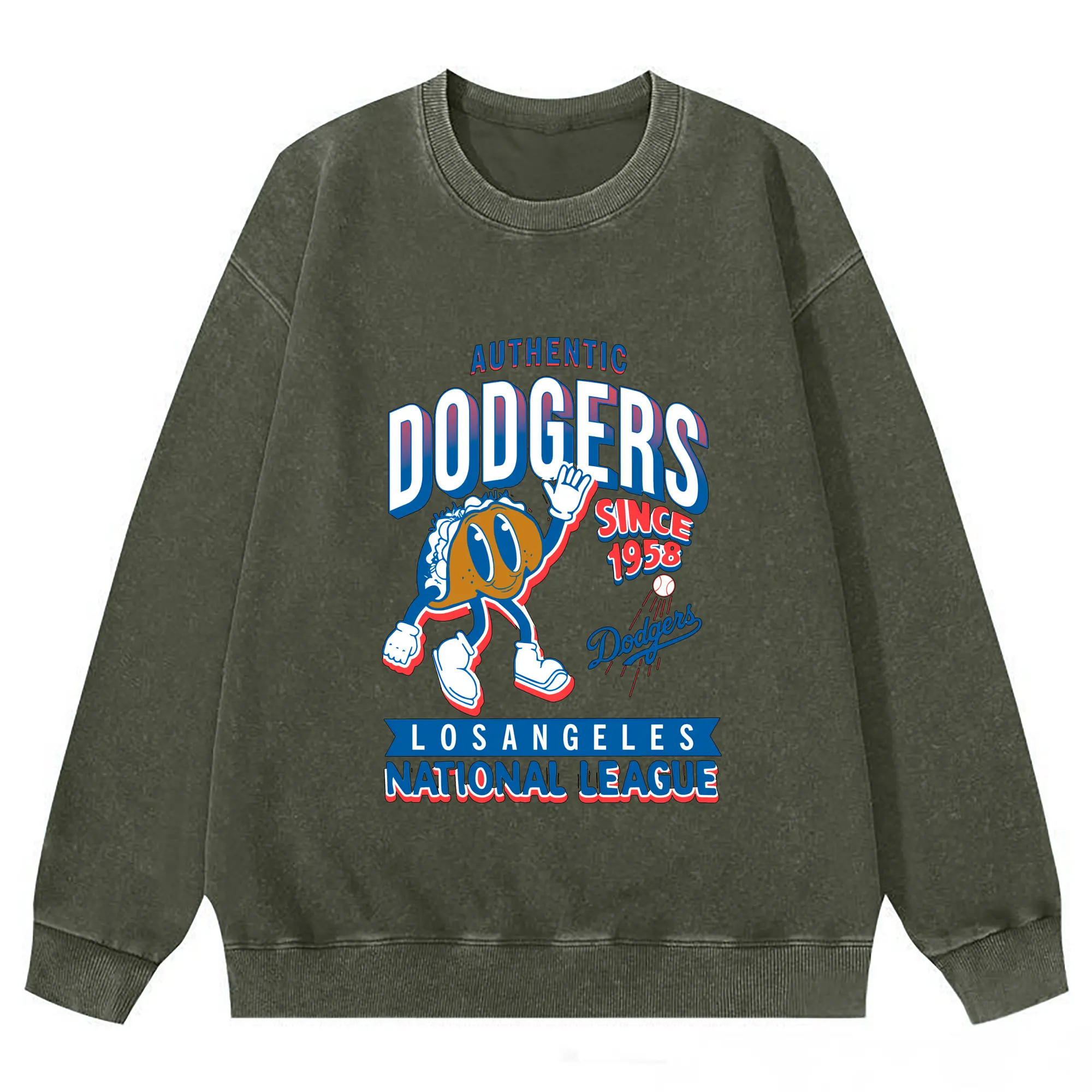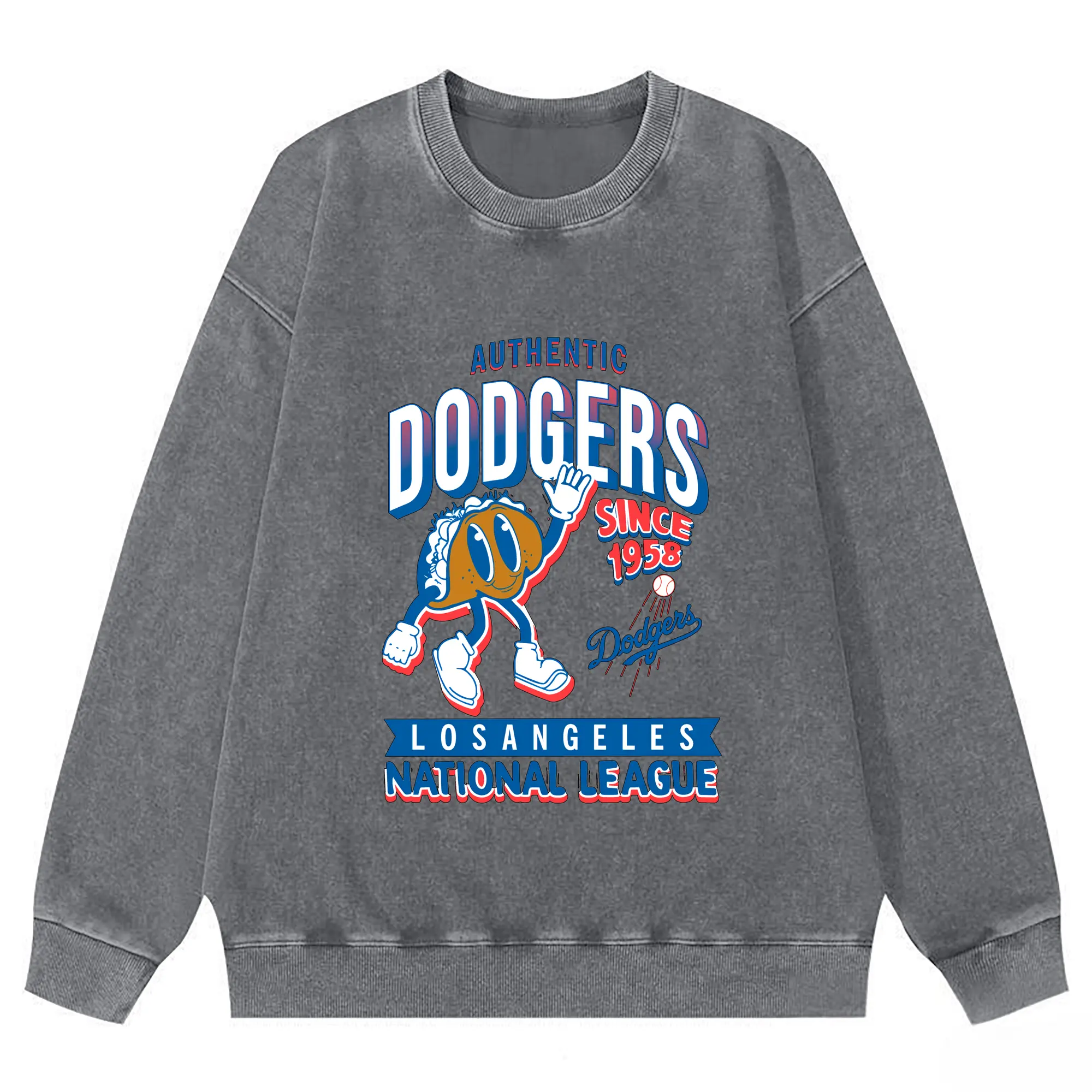 Los Angeles Dodgers Collection Food 2024 - Washed Wax-Dyed Vintage Crewneck Sweatshirt – 80% Cotton, 20% Polyester – Soft, Durable & Stylish – Ideal For Sports, Casual & Everyday Wear