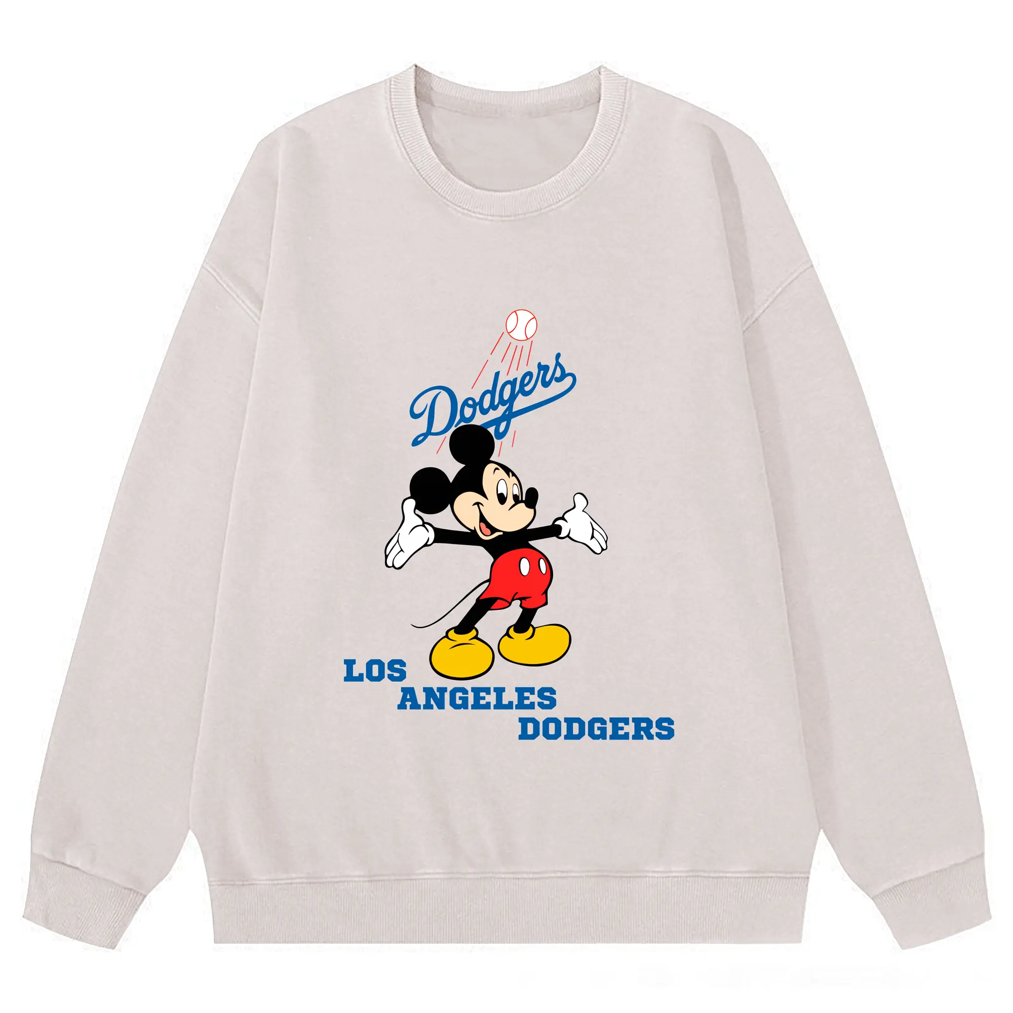 Los Angeles Dodgers Mickey Mouse Baseball - Washed Wax-Dyed Vintage Crewneck Sweatshirt – 80% Cotton, 20% Polyester – Soft, Durable & Stylish – Ideal For Sports, Casual & Everyday Wear