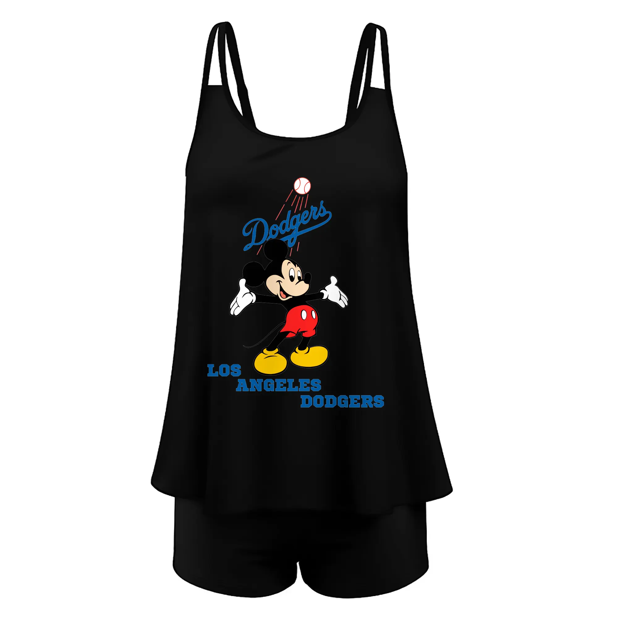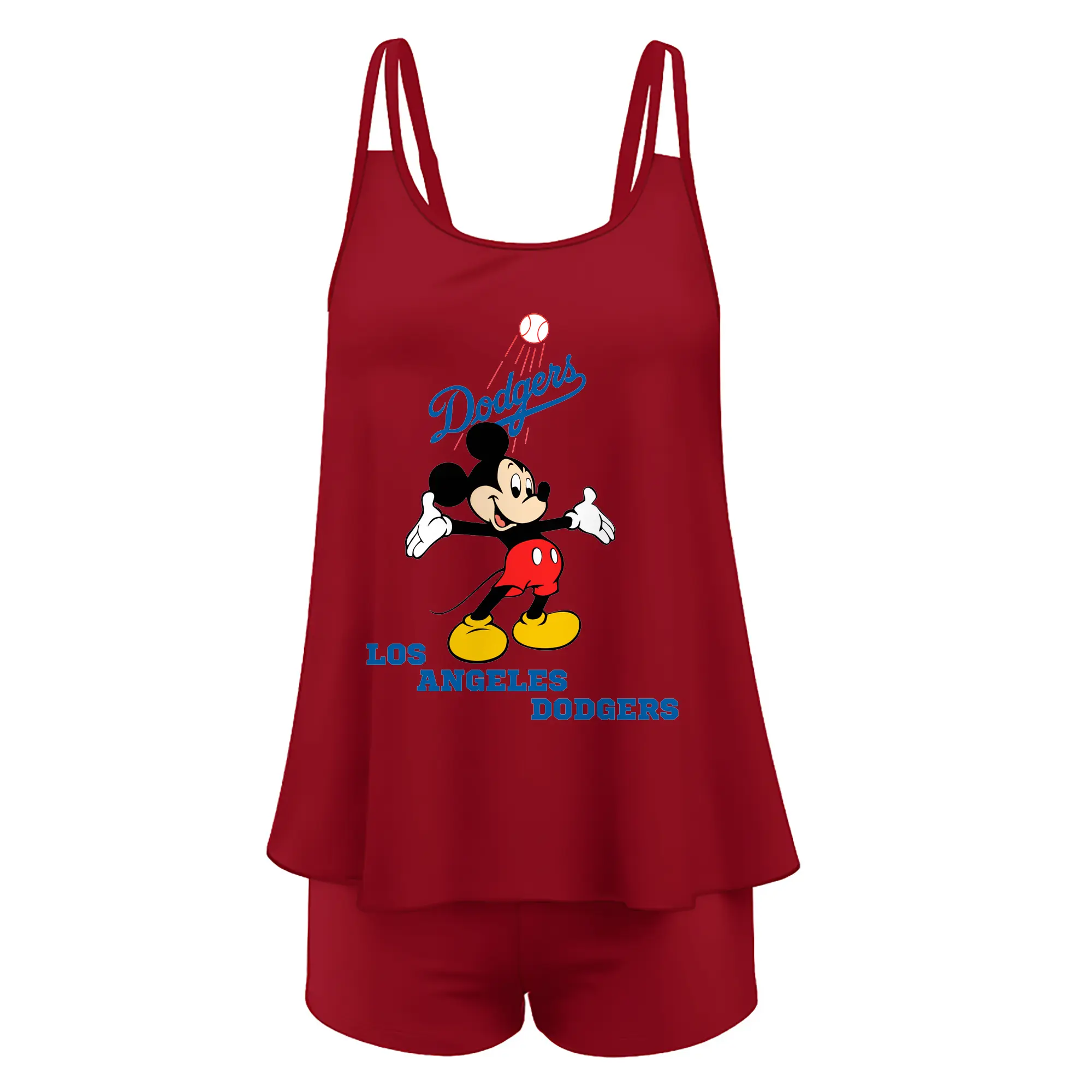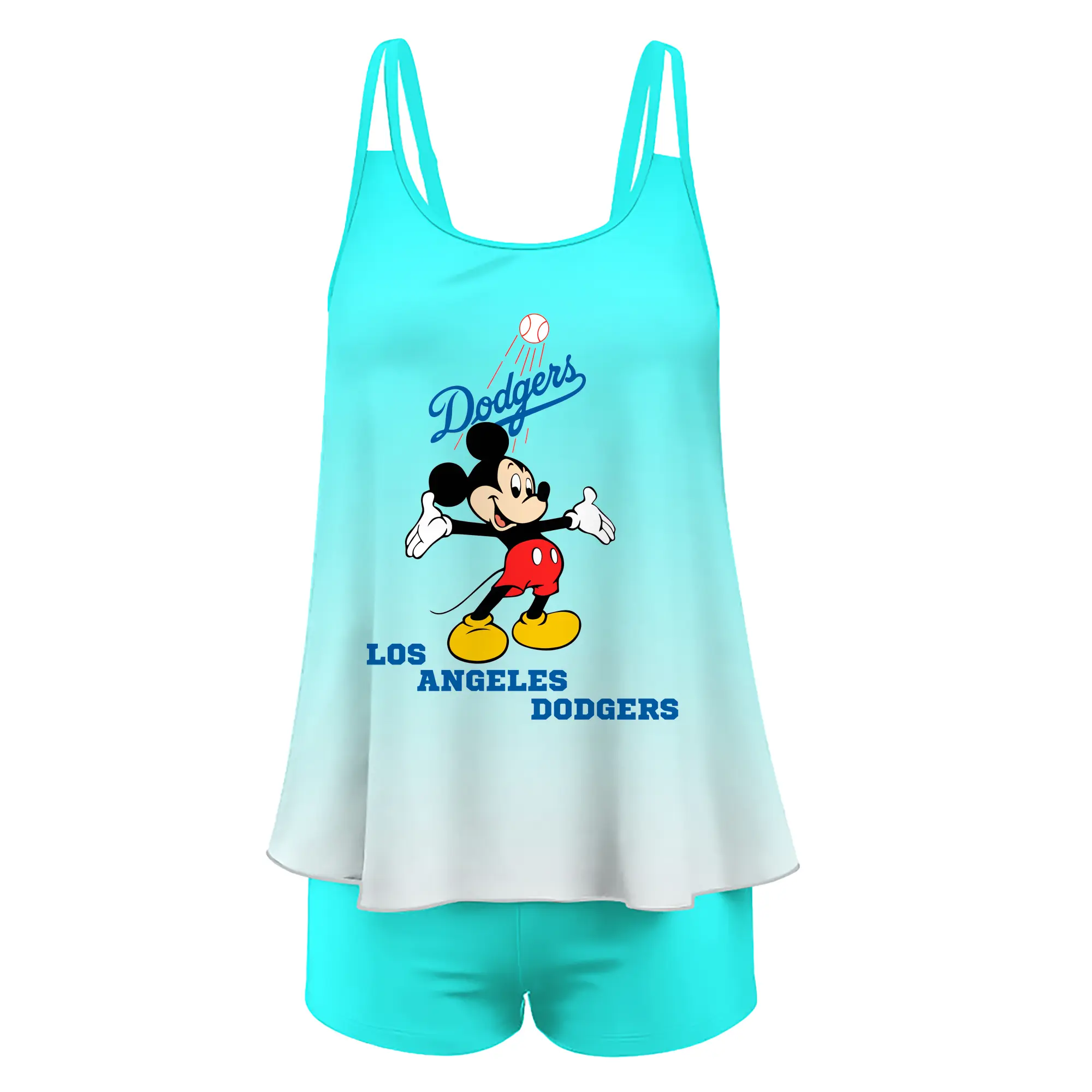 Los Angeles Dodgers Mickey Mouse Baseball - Women’s Heat Transfer Printed Two-Piece Swimsuit Set – Sexy Double Strap Bandeau Top & Boyshort Bottoms, Soft Nylon-Spandex – Perfect for Beach, Pool & Vacation