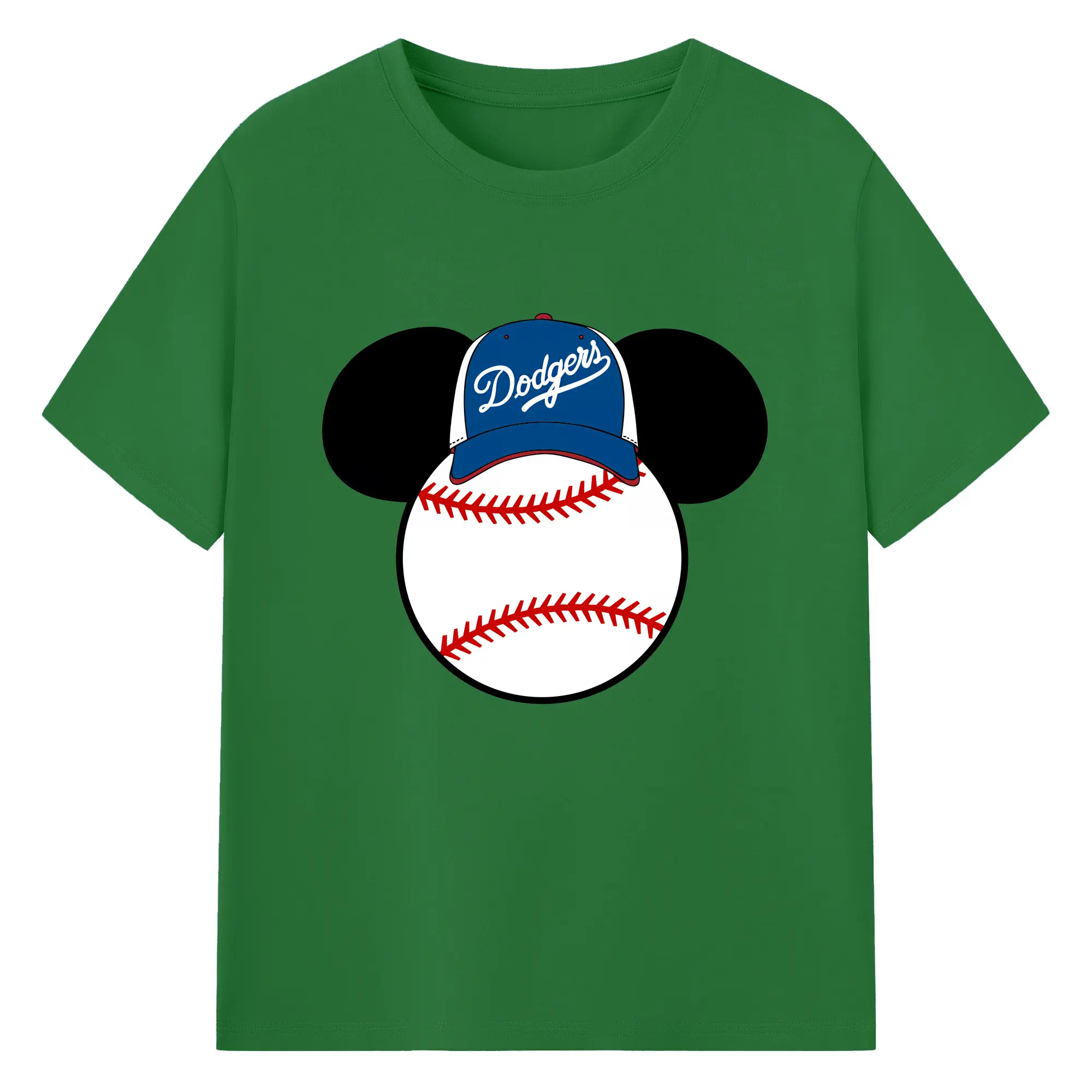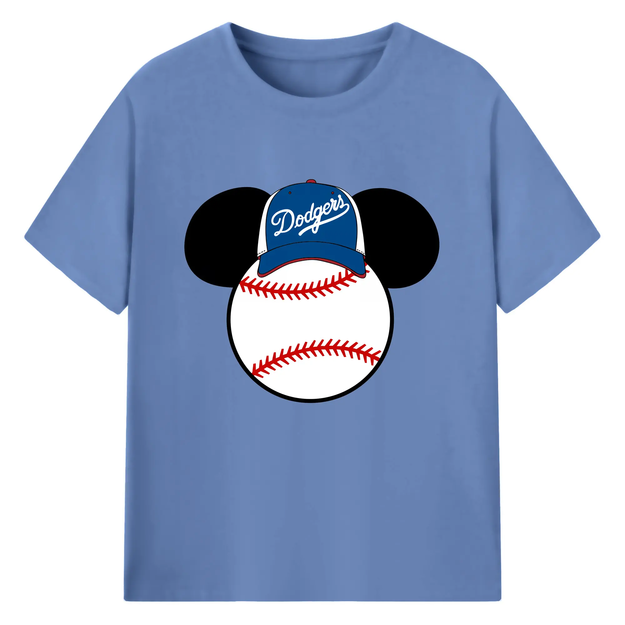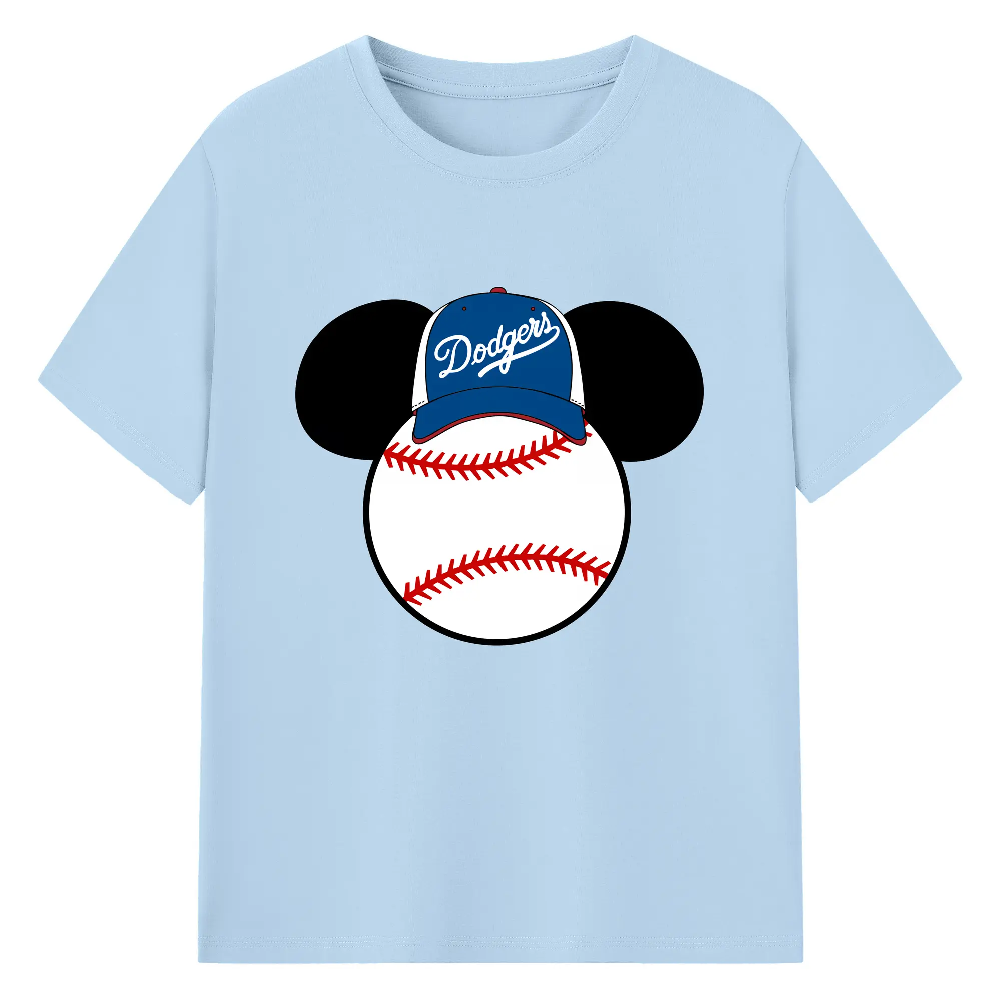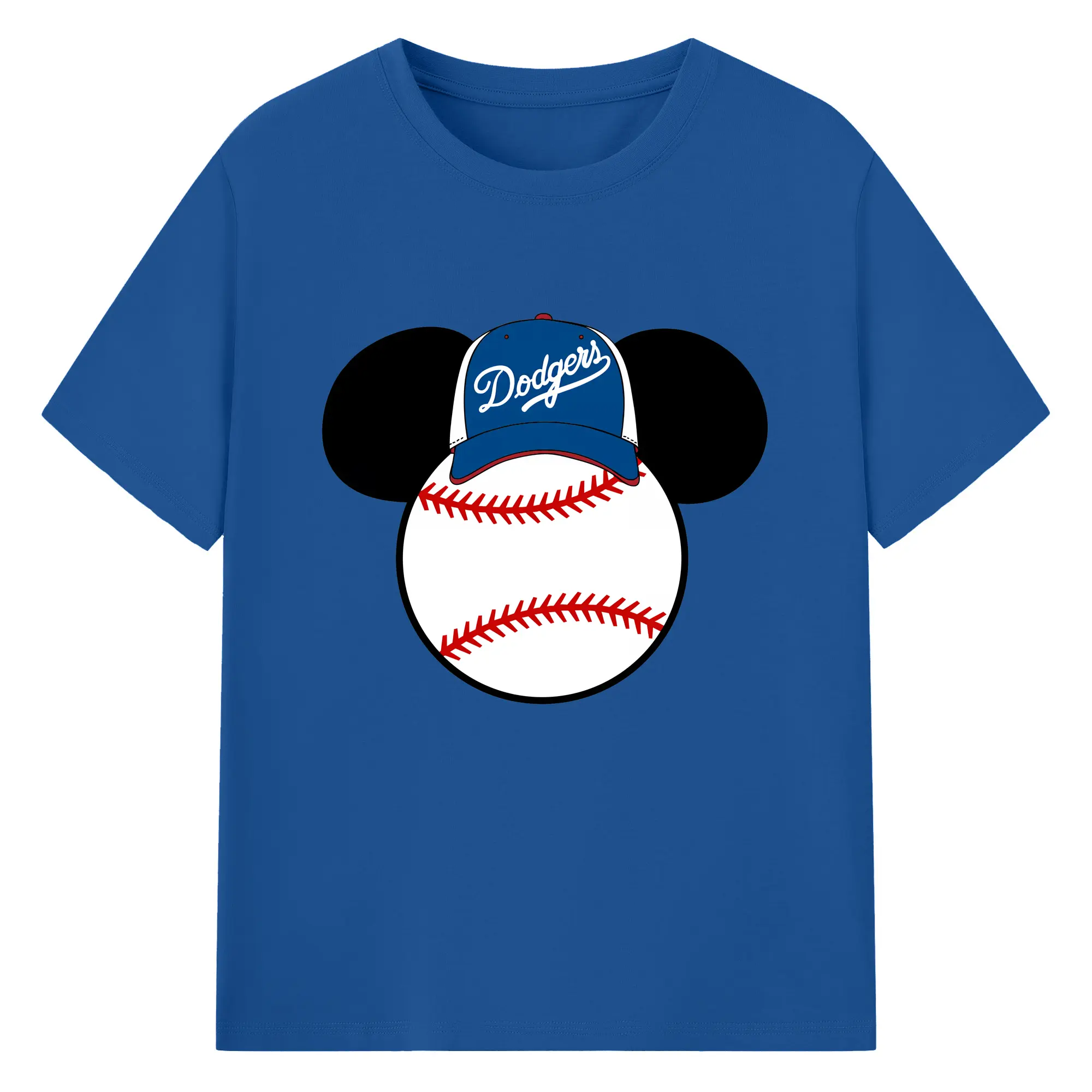 Los Angeles Dodgers Mickey Mouse Head - 180g Cotton T-Shirt With Front Heat Transfer Print – Soft, Lightweight, Fitted Design – Comfortable Casual Wear For Sports & Everyday Use