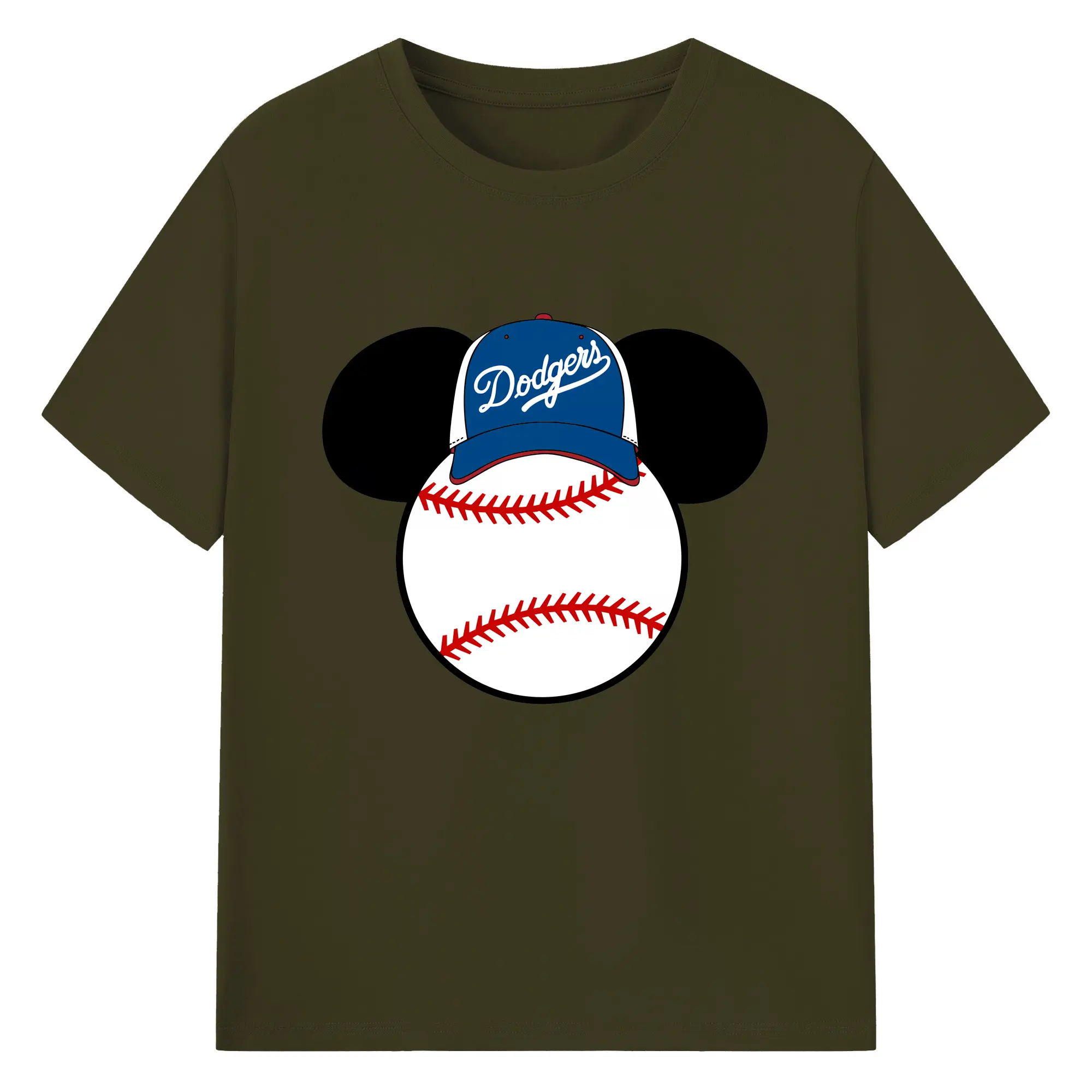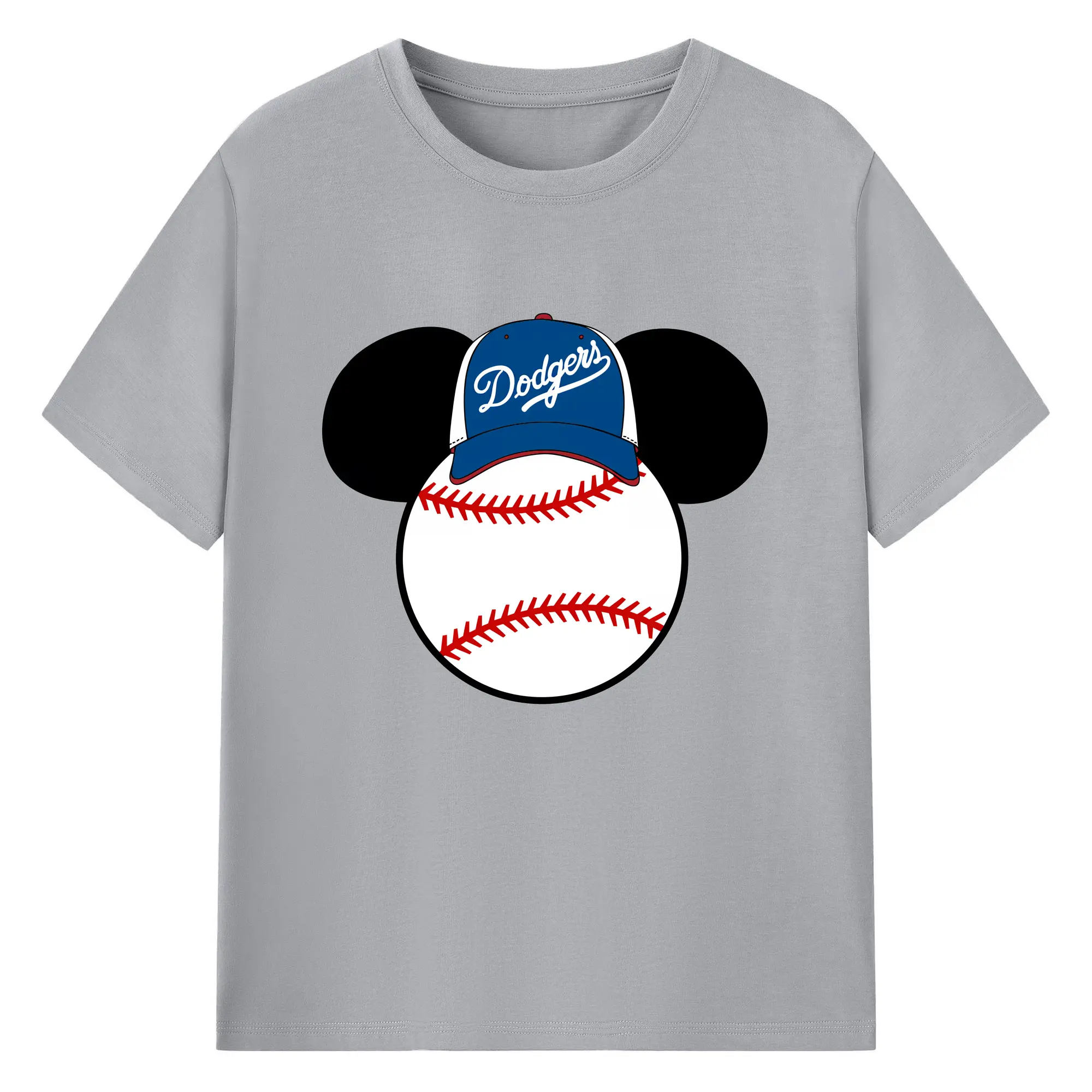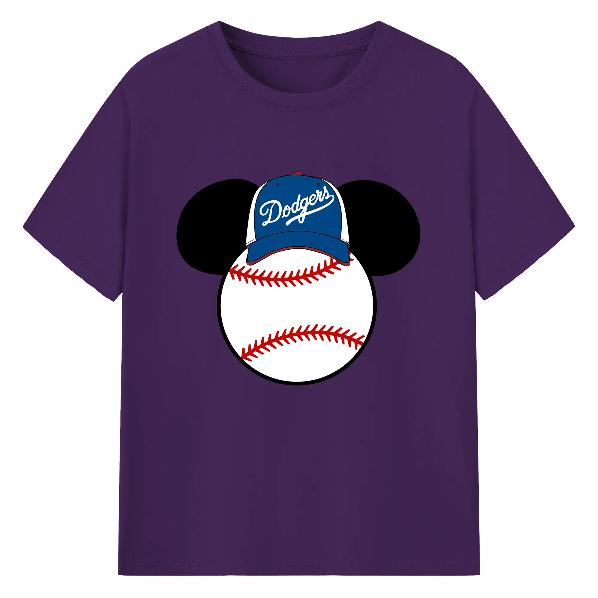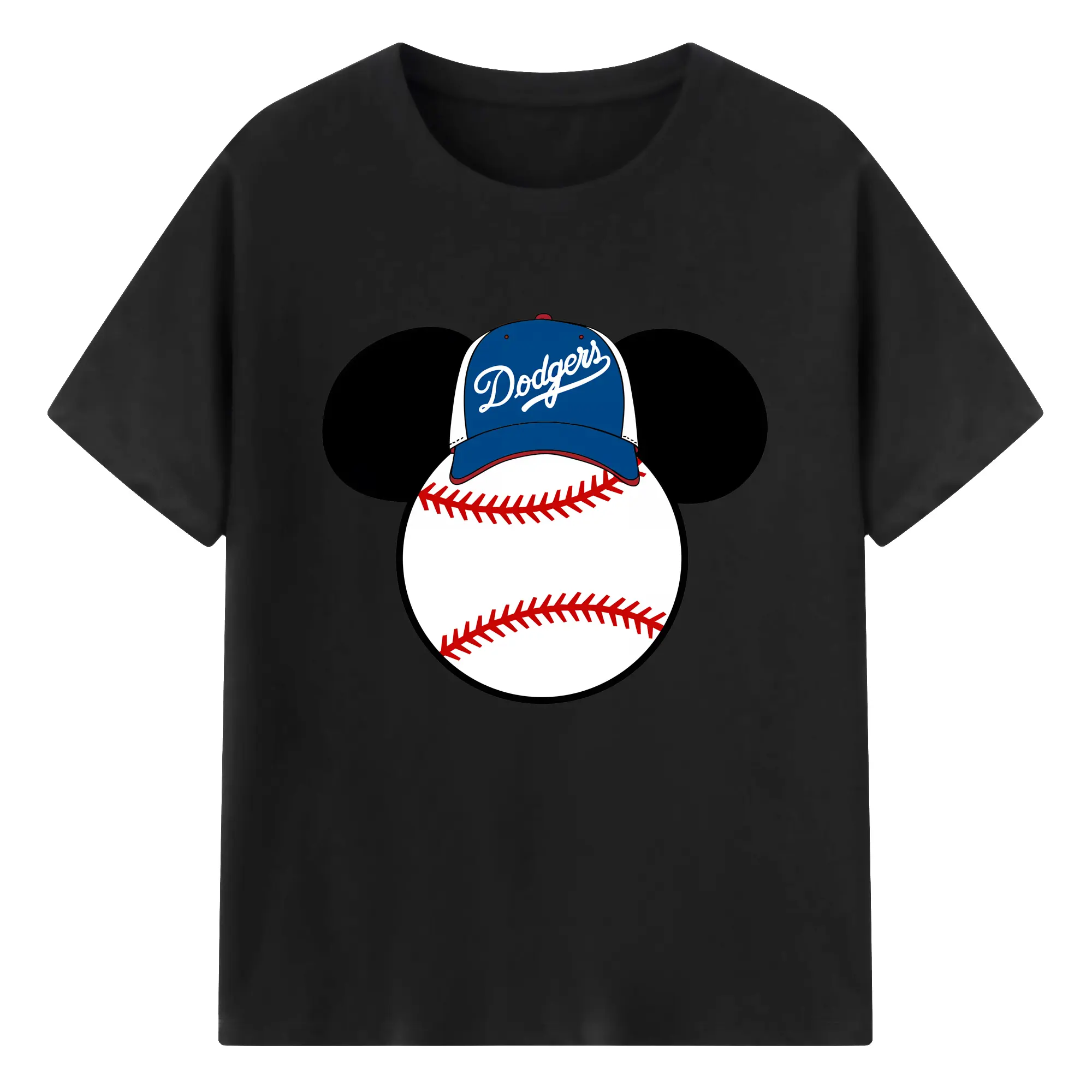 Los Angeles Dodgers Mickey Mouse Head - 180g Cotton T-Shirt With Front Heat Transfer Print – Soft, Lightweight, Fitted Design – Comfortable Casual Wear For Sports & Everyday Use
