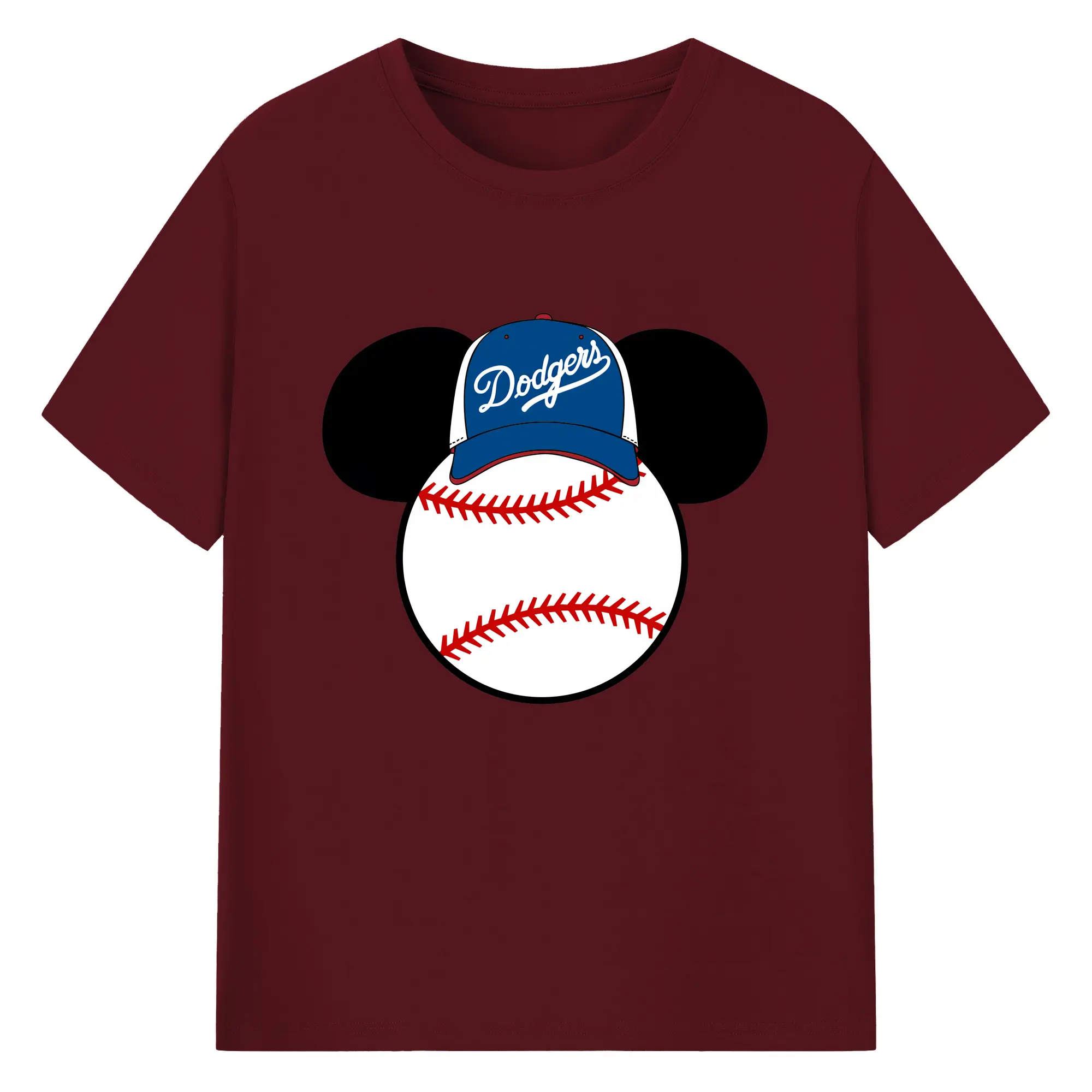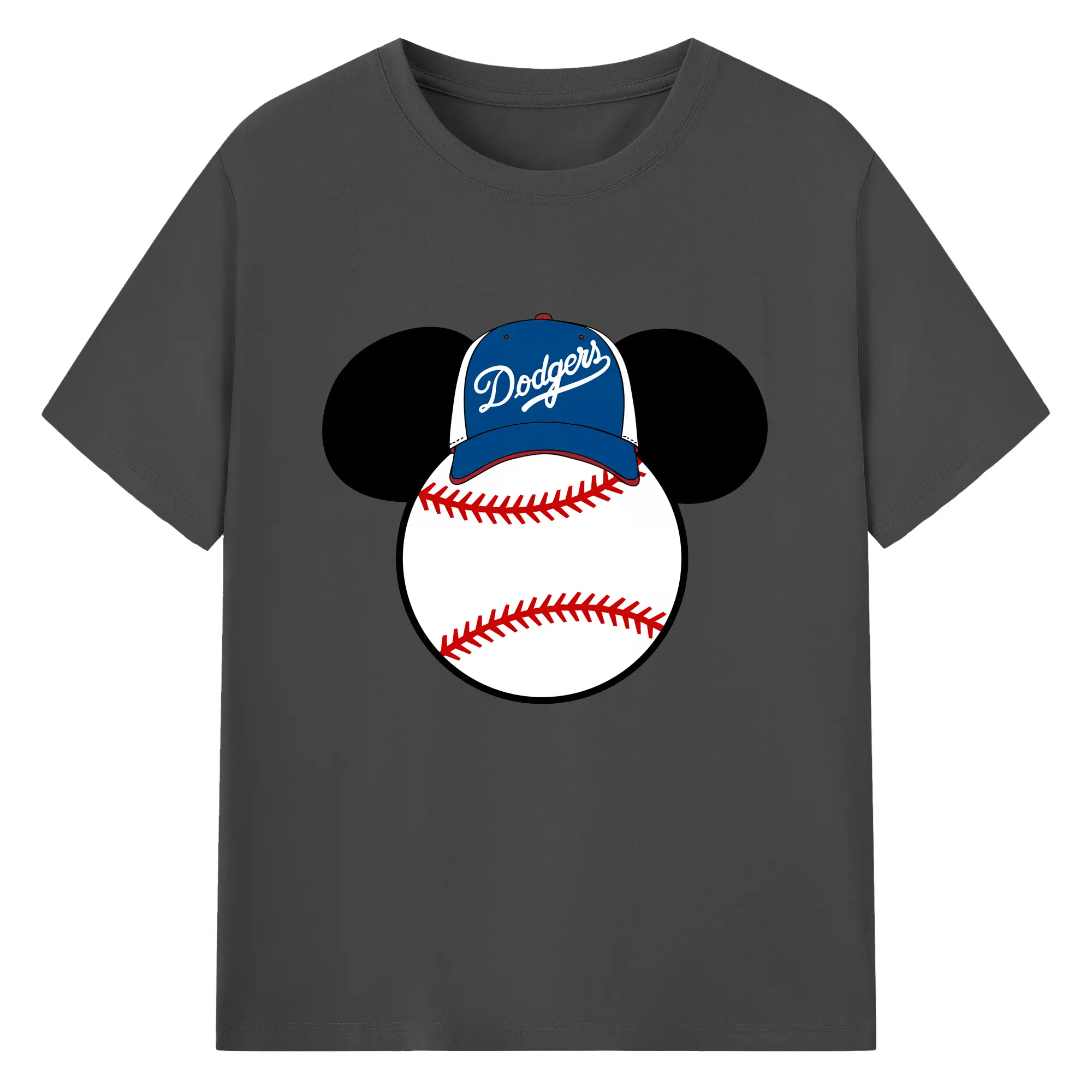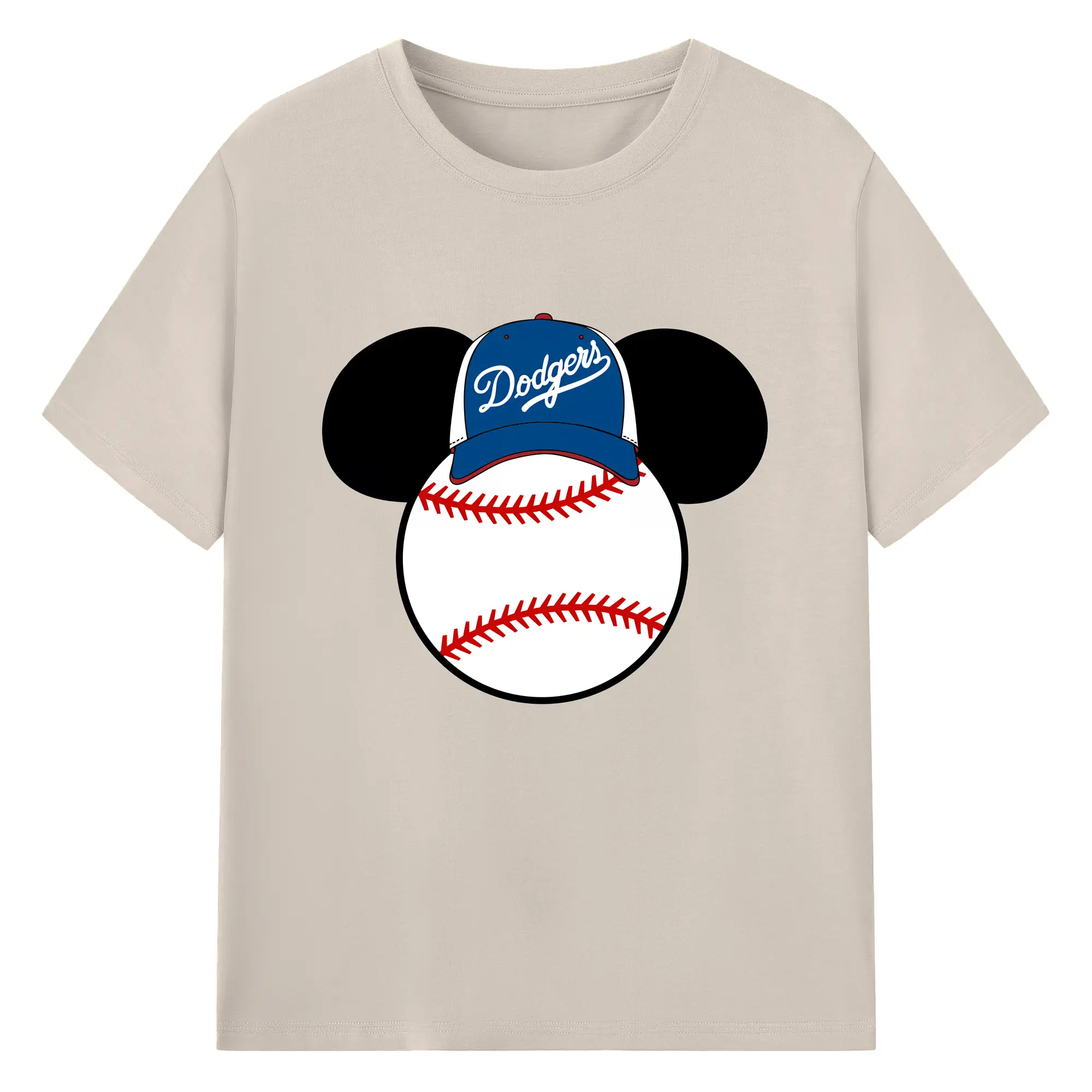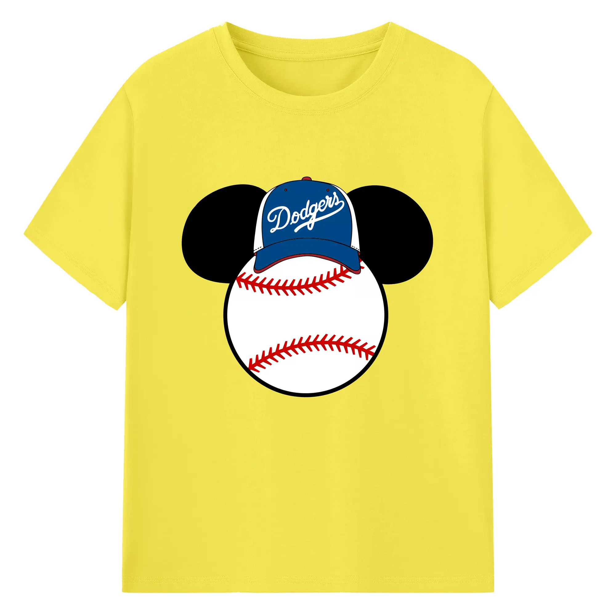 Los Angeles Dodgers Mickey Mouse Head - 180g Cotton T-Shirt With Front Heat Transfer Print – Soft, Lightweight, Fitted Design – Comfortable Casual Wear For Sports & Everyday Use