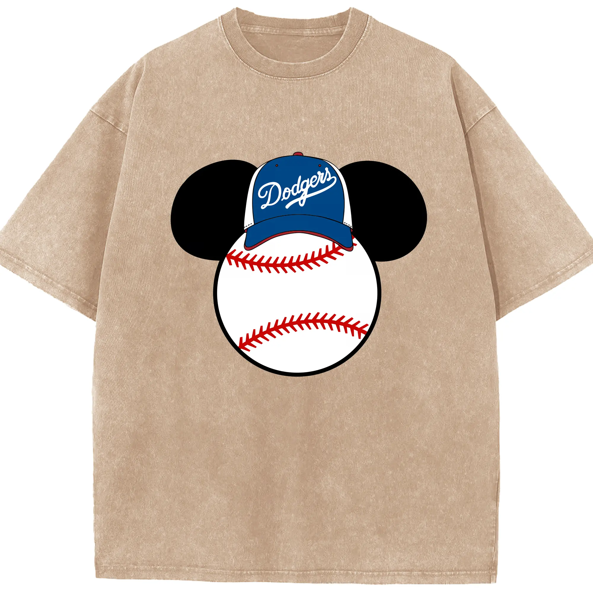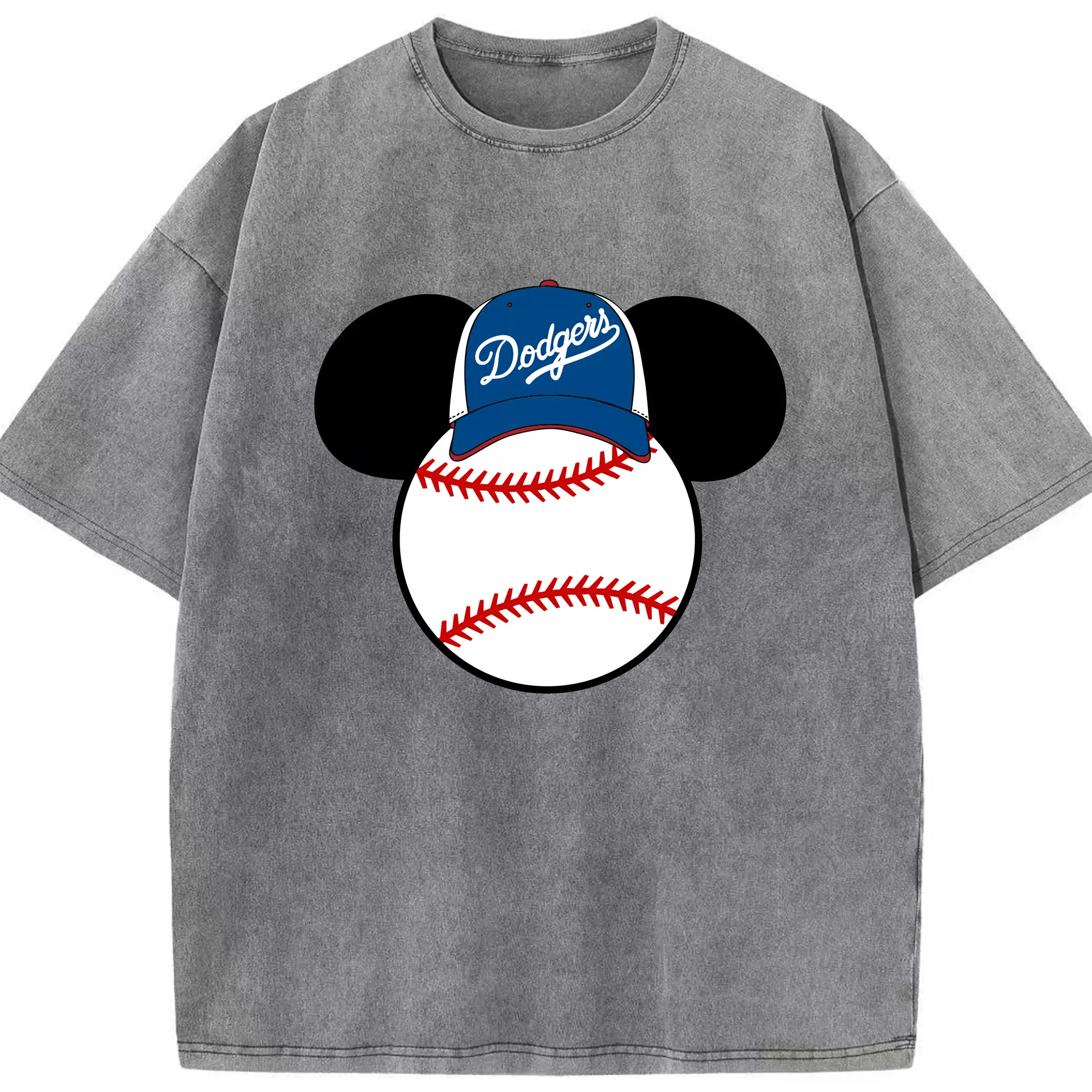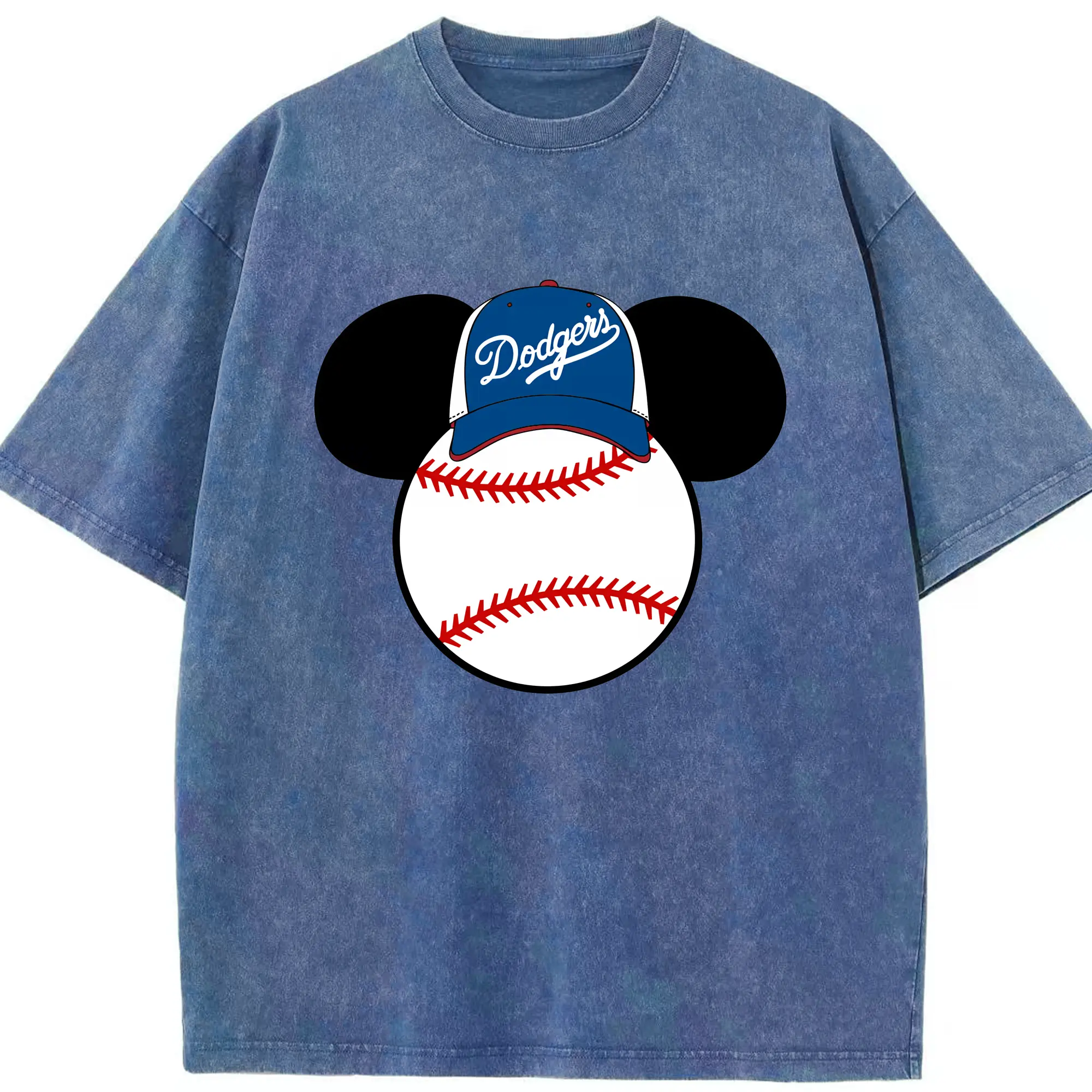 Los Angeles Dodgers Mickey Mouse Head - Washed Vintage Look 230g Cotton Oversized T-Shirt With Front Heat Transfer Print – Soft, Lightweight, Stylish Fit – Comfortable Casual Wear For Sports & Everyday Use