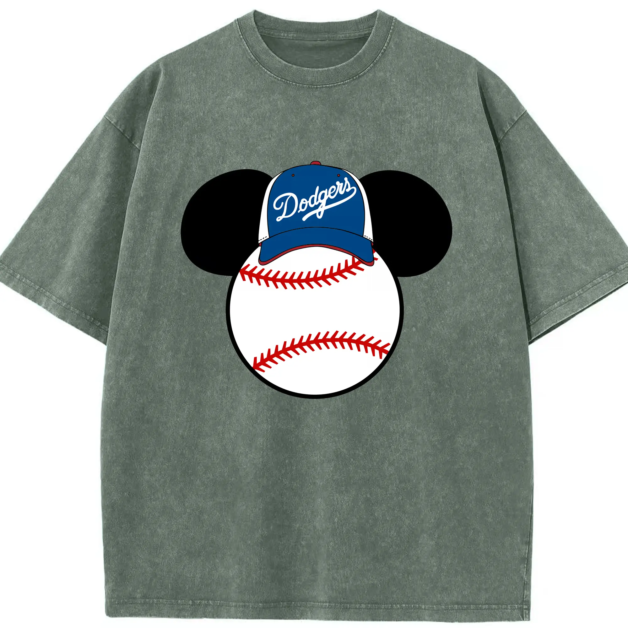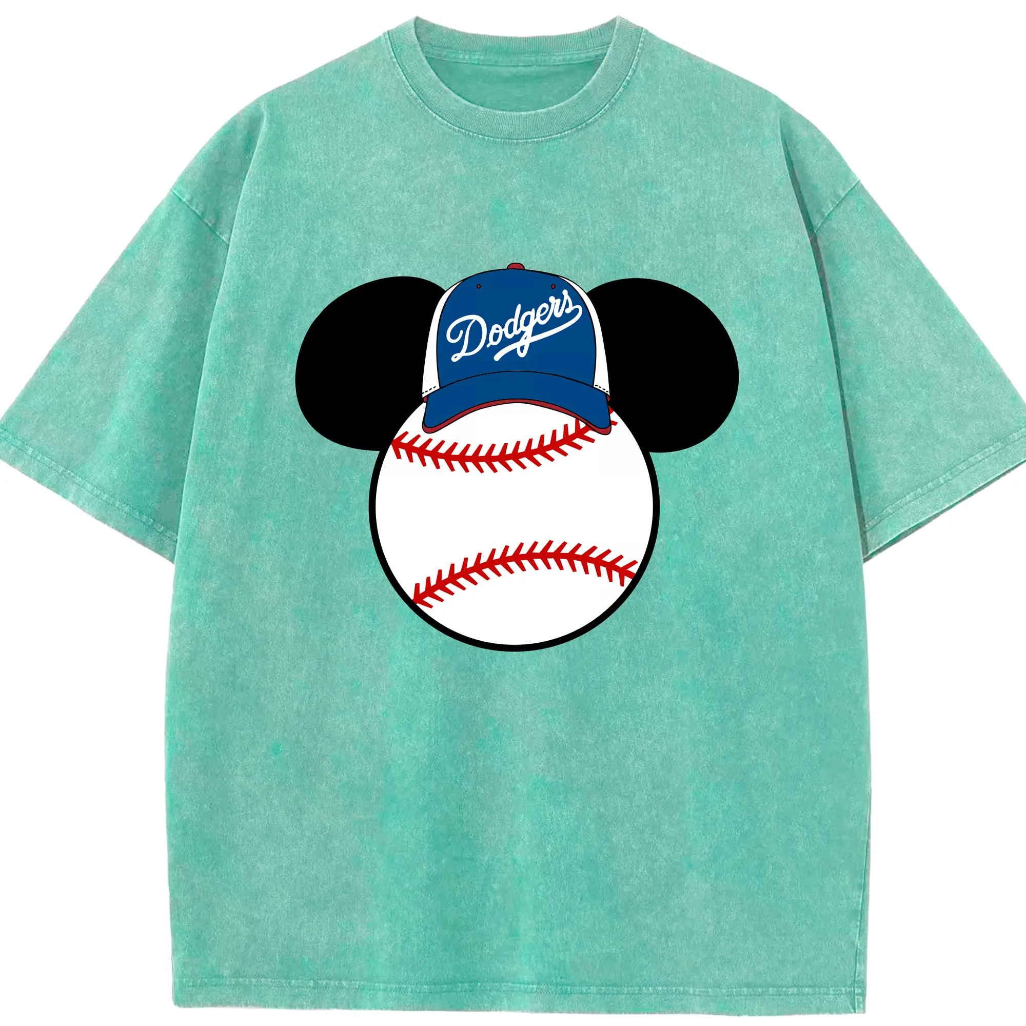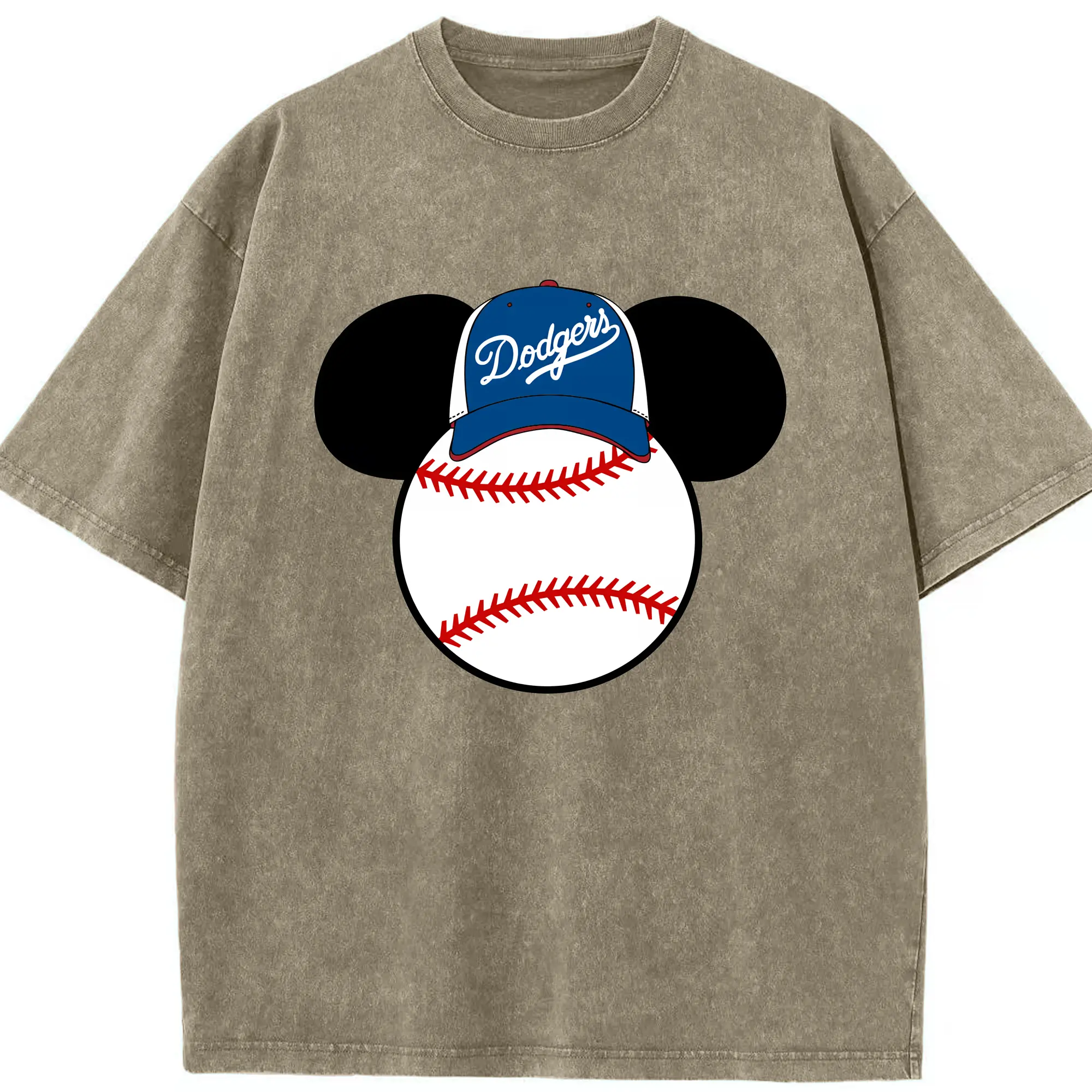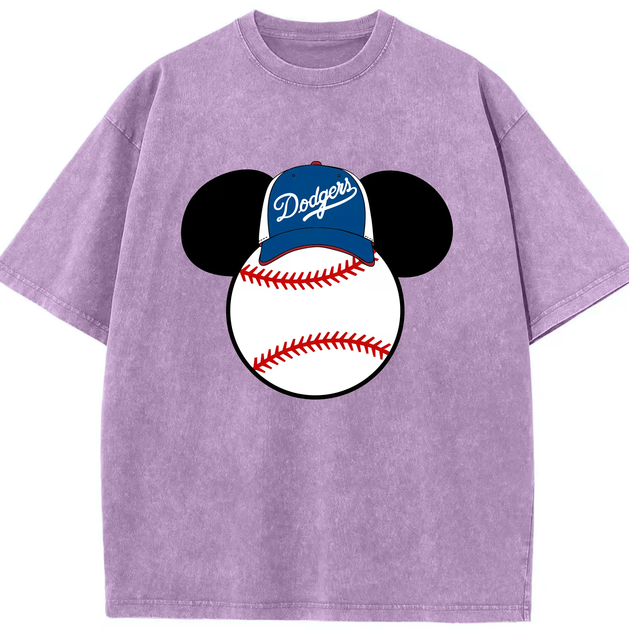 Los Angeles Dodgers Mickey Mouse Head - Washed Vintage Look 230g Cotton Oversized T-Shirt With Front Heat Transfer Print – Soft, Lightweight, Stylish Fit – Comfortable Casual Wear For Sports & Everyday Use
