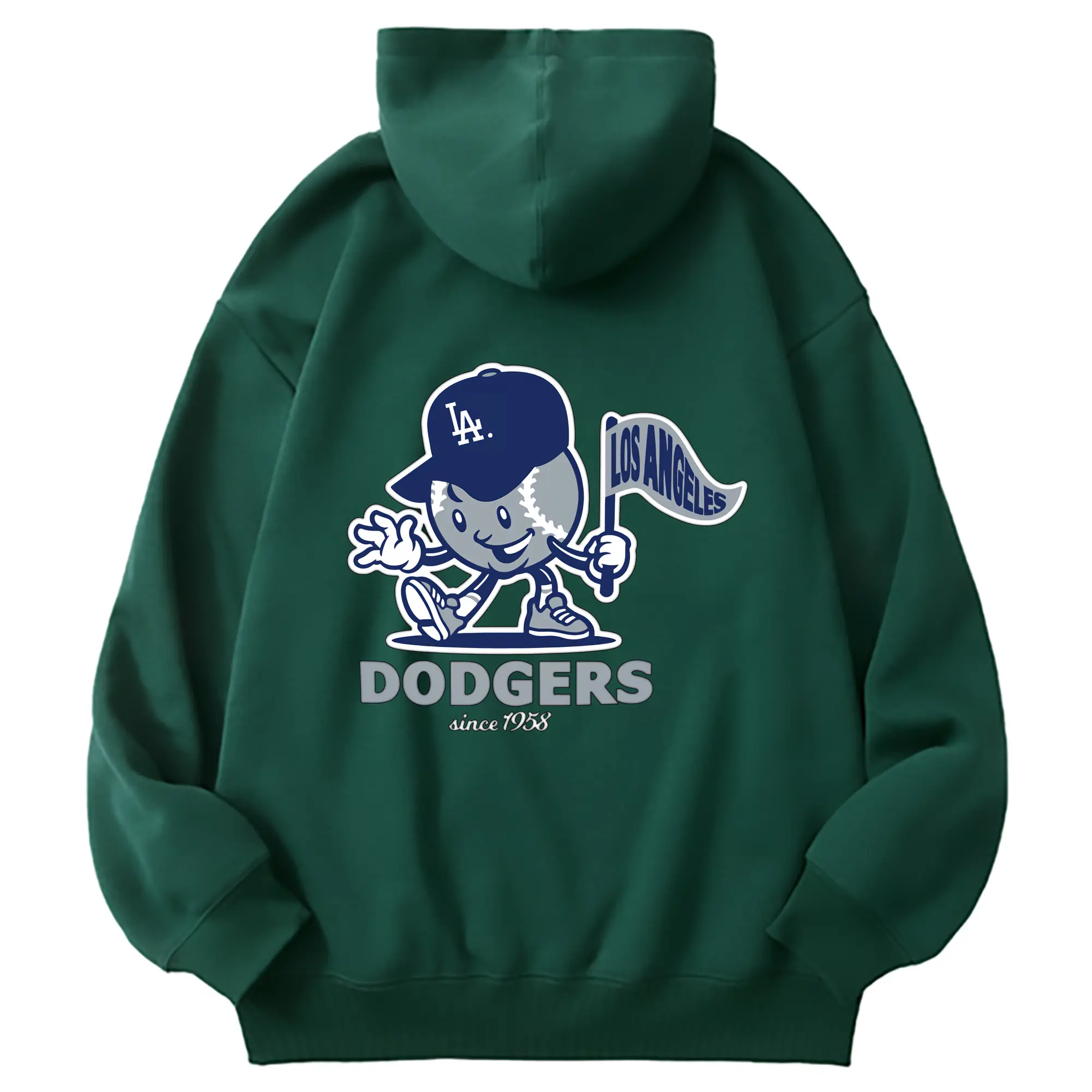 Los Angeles Dodgers Since 1958 Baseball - Premium Hoodie With Back Heat Transfer Print – 56.1% Cotton, 43.9% Polyester – Soft, Durable & Stylish – Perfect For Sports, Casual & Everyday Wear