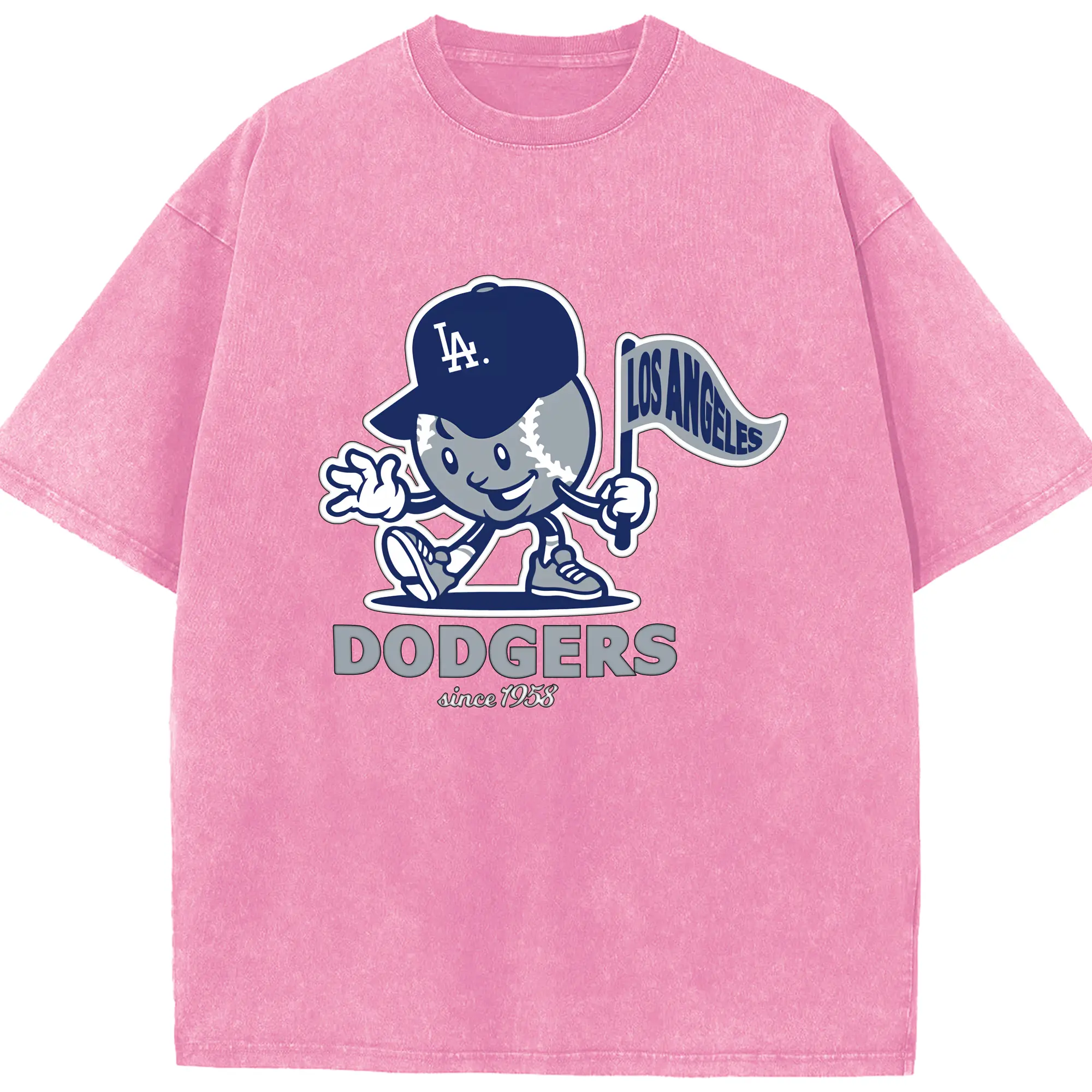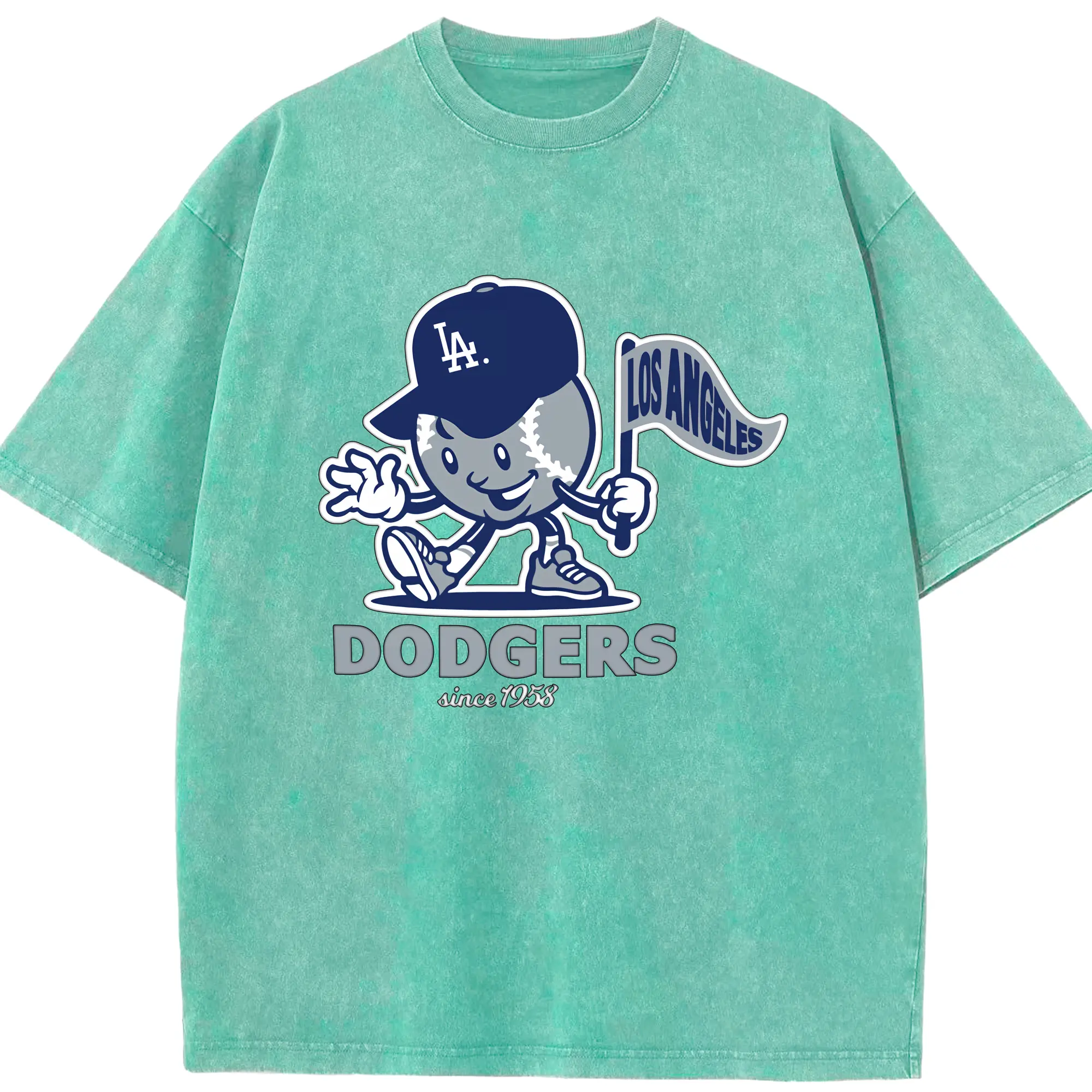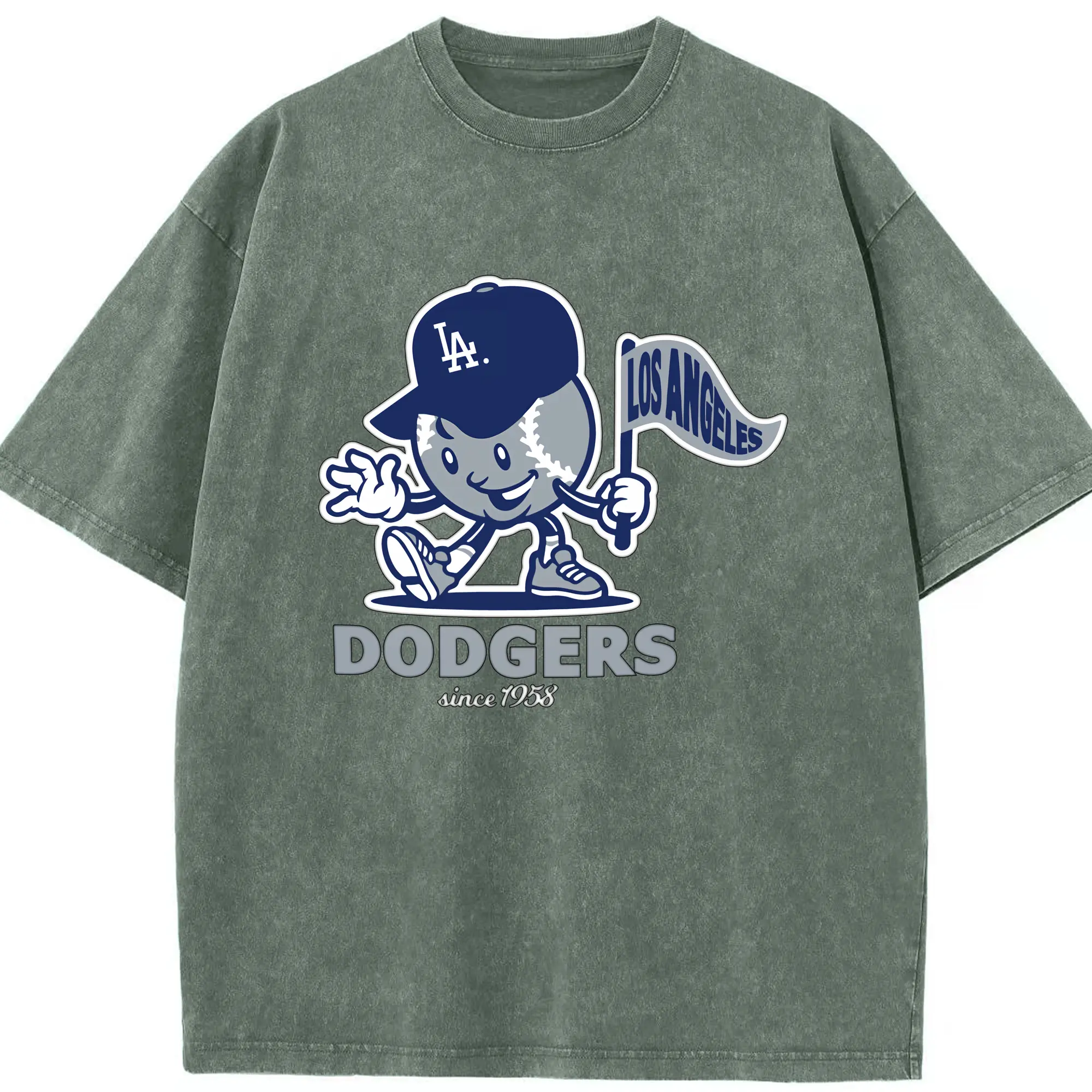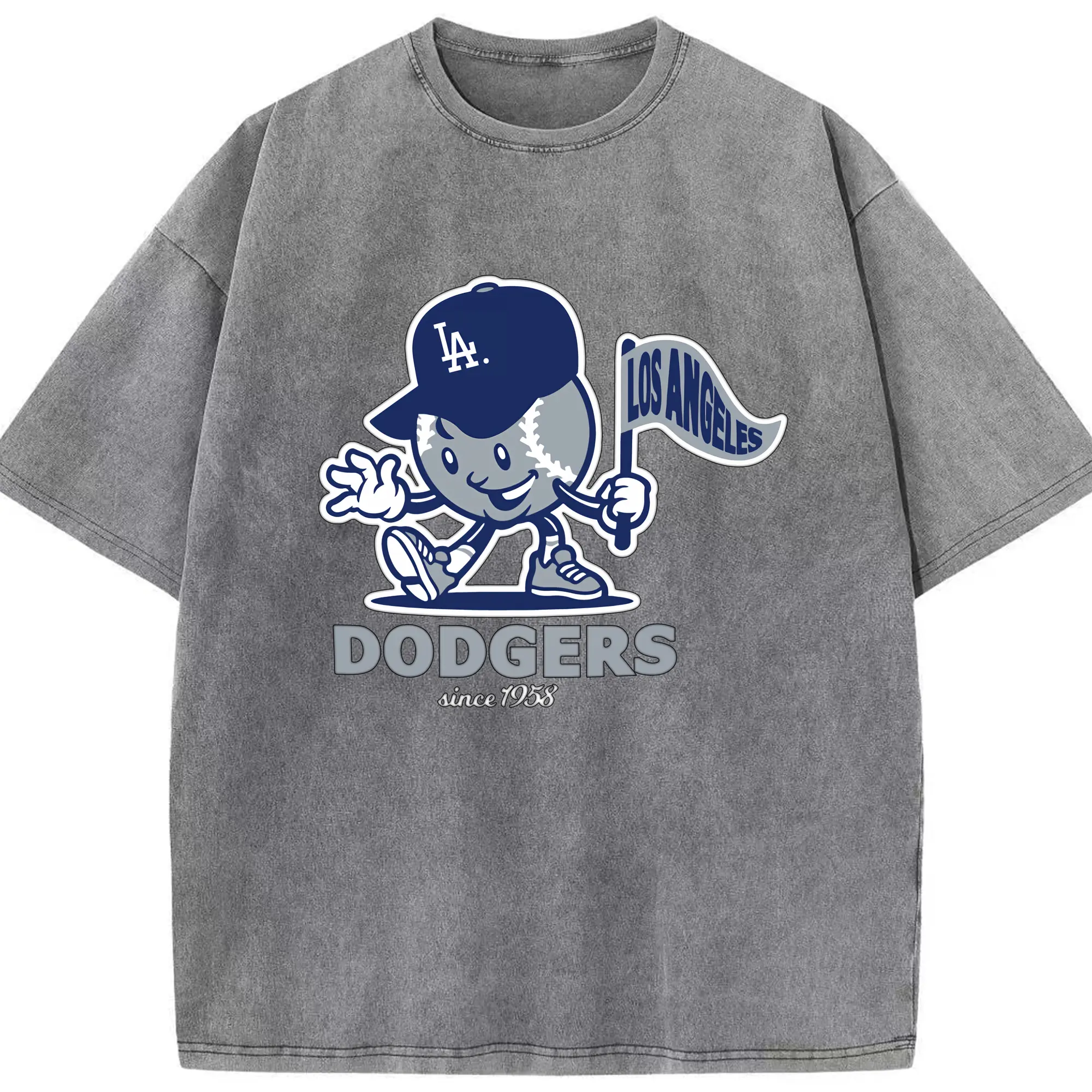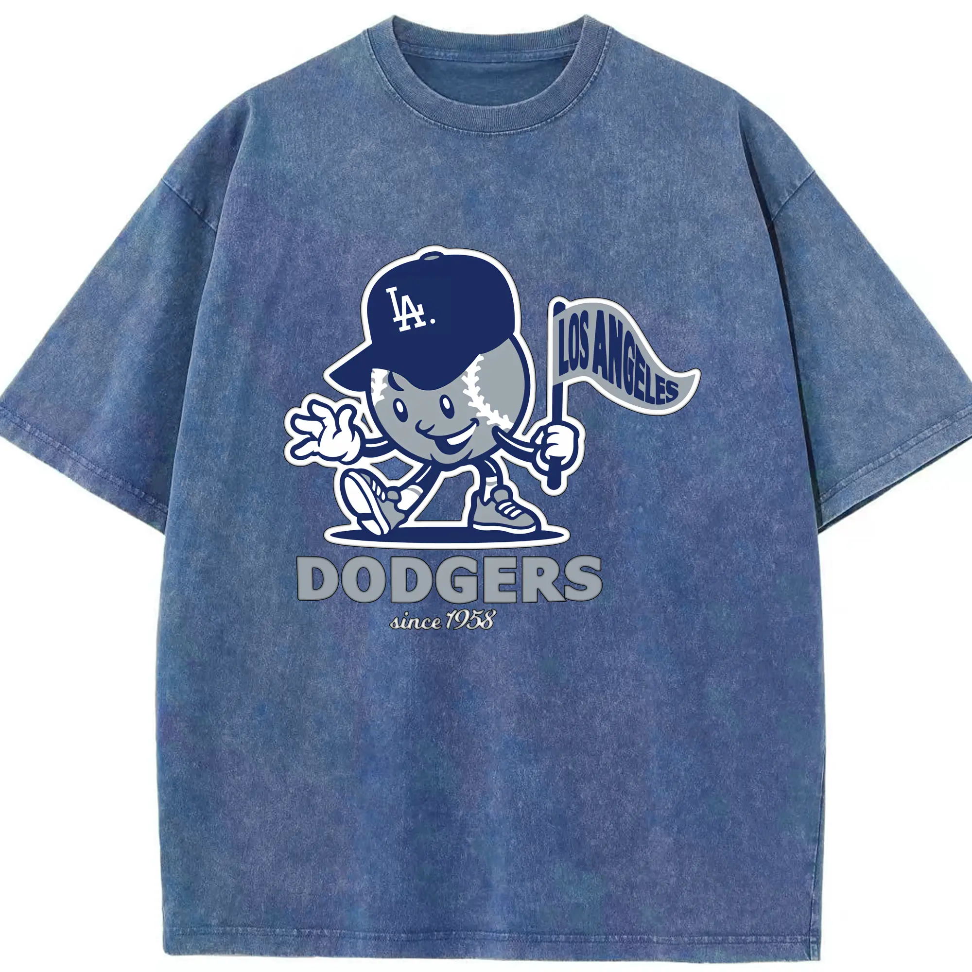 Los Angeles Dodgers Since 1958 Baseball - Washed Vintage Look 230g Cotton Oversized T-Shirt With Front Heat Transfer Print – Soft, Lightweight, Stylish Fit – Comfortable Casual Wear For Sports & Everyday Use