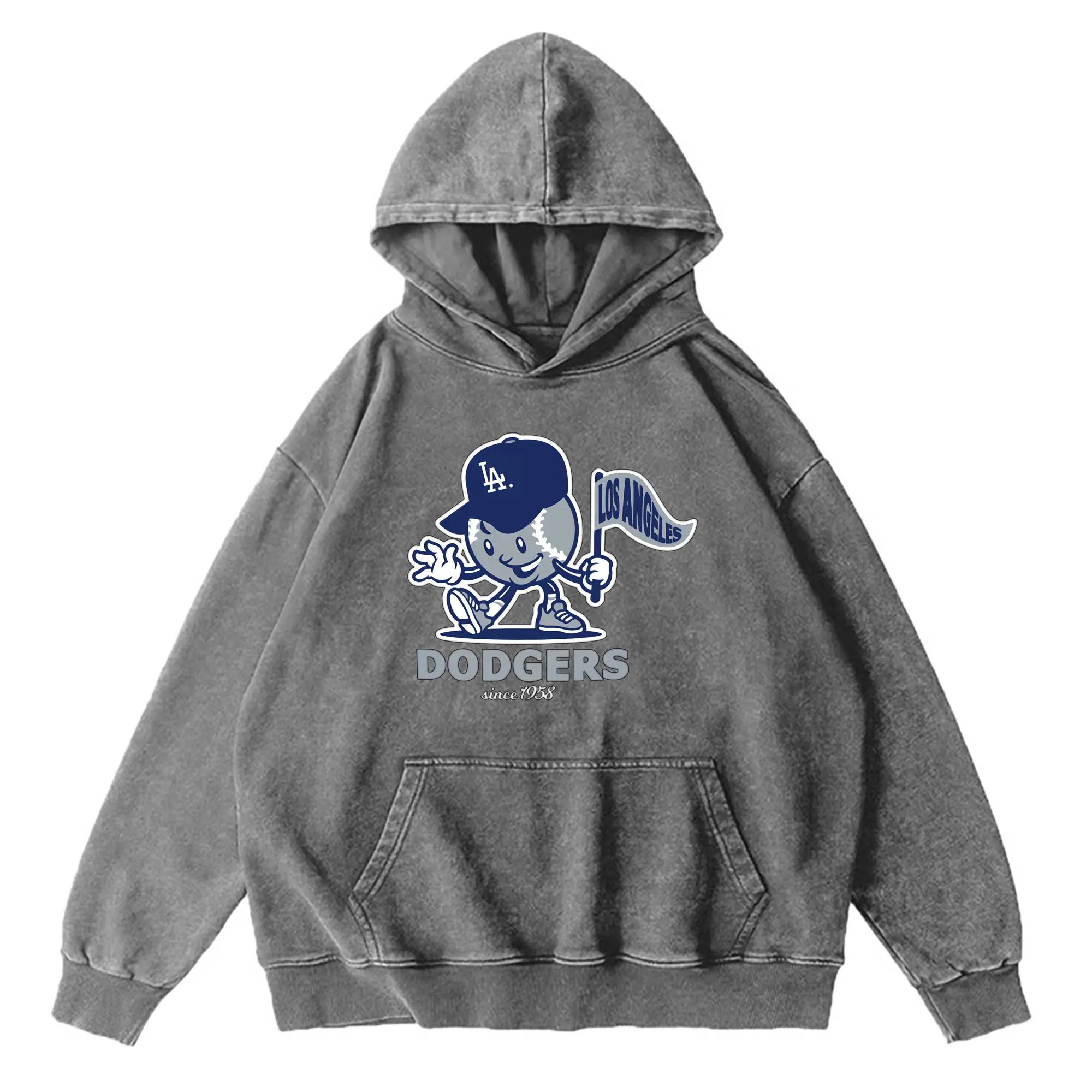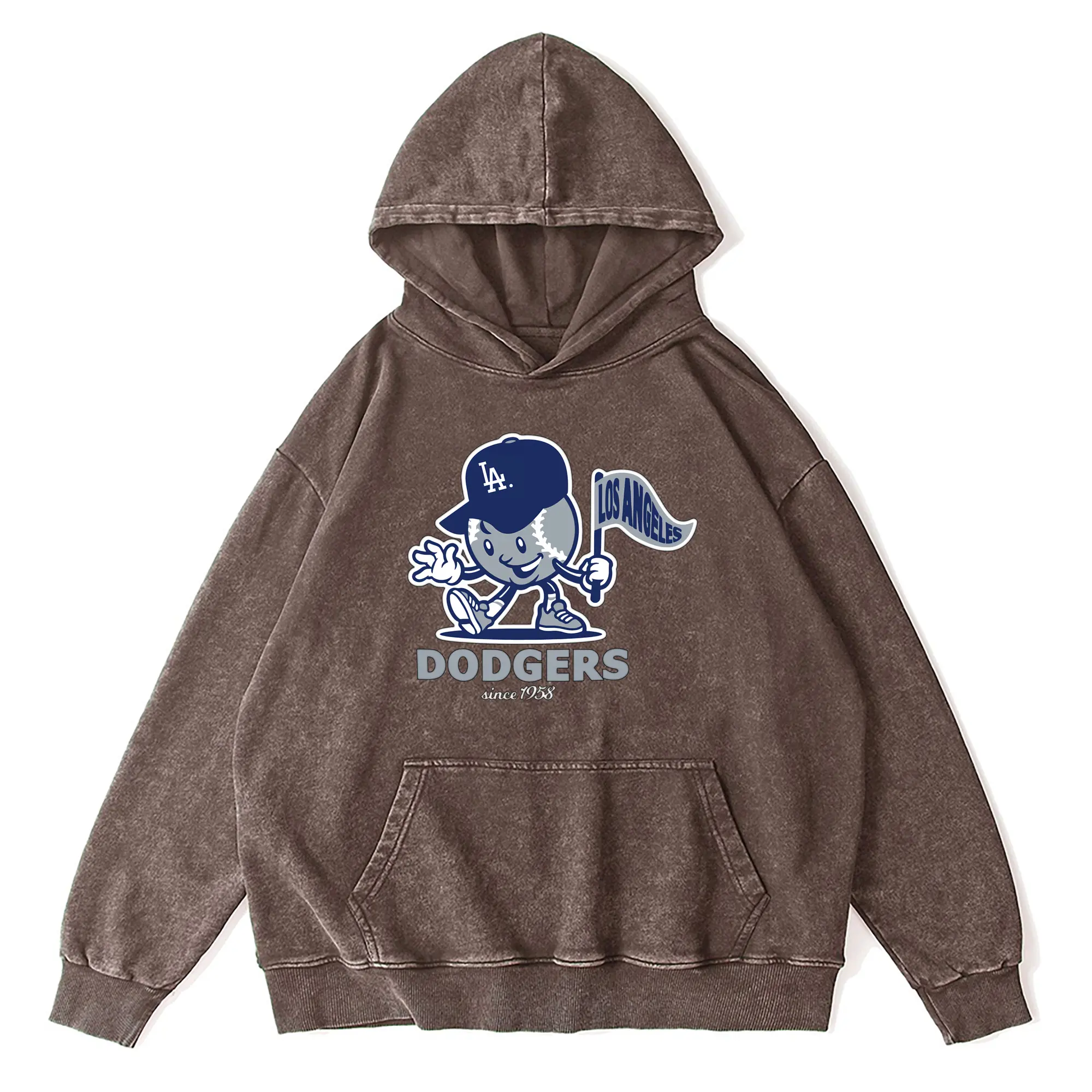 Los Angeles Dodgers Since 1958 Baseball - Vintage Washed Wax-Dyed Hoodie – 80% Cotton, 20% Polyester – Soft, Durable & Stylish – Perfect For Sports, Casual & Everyday Wear