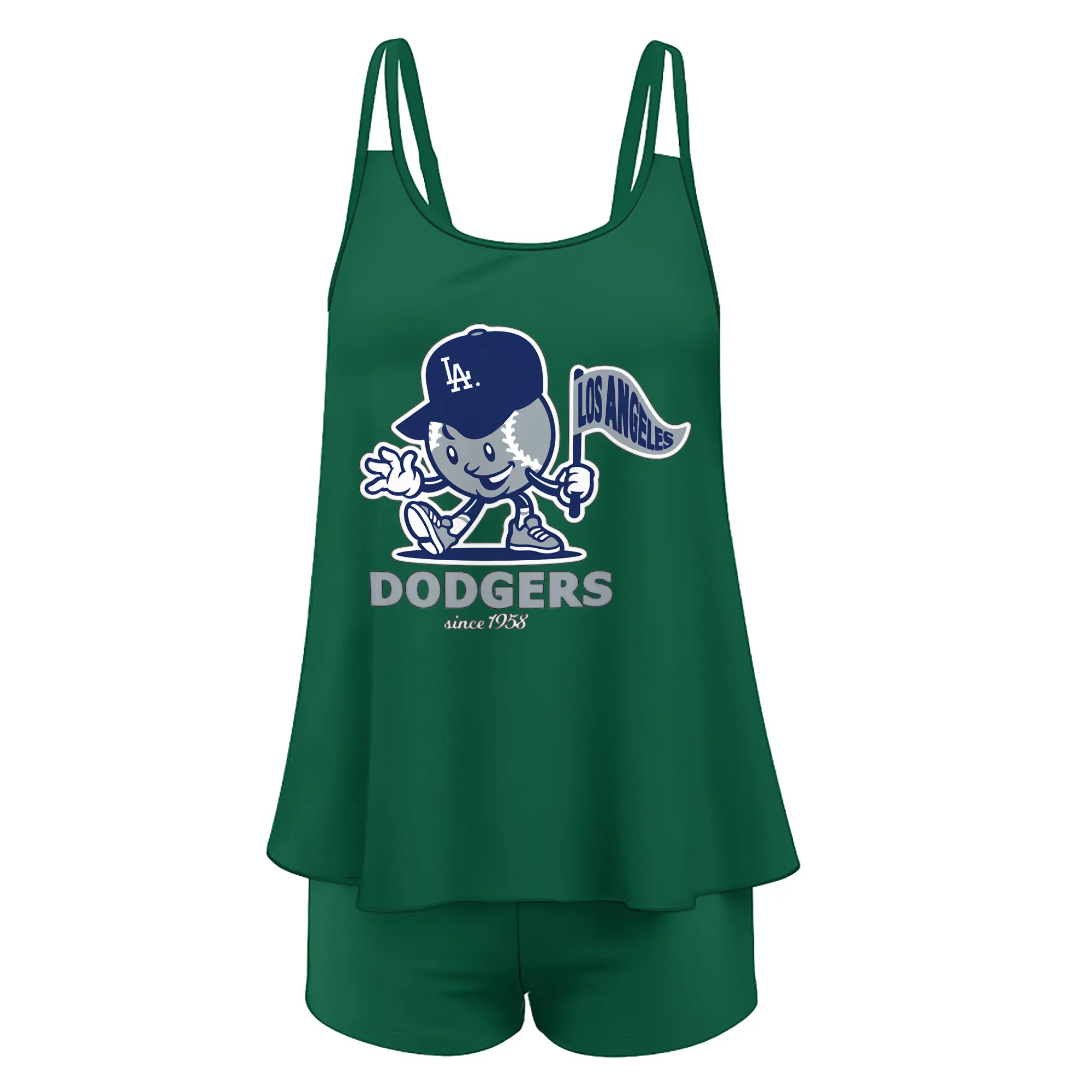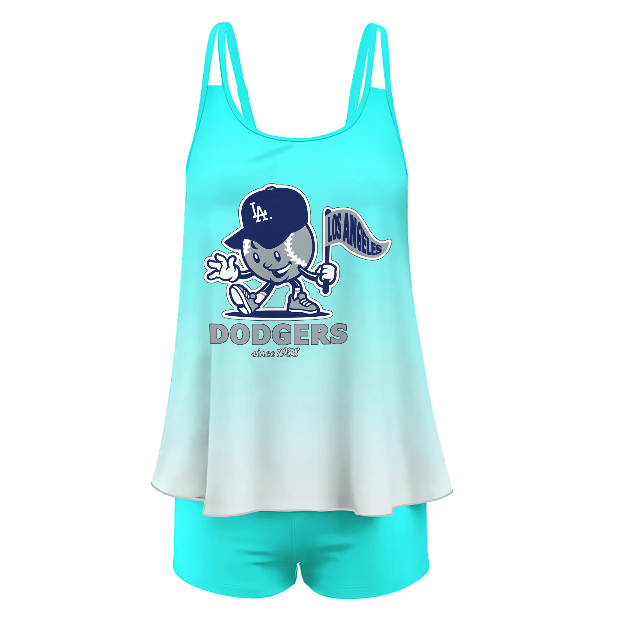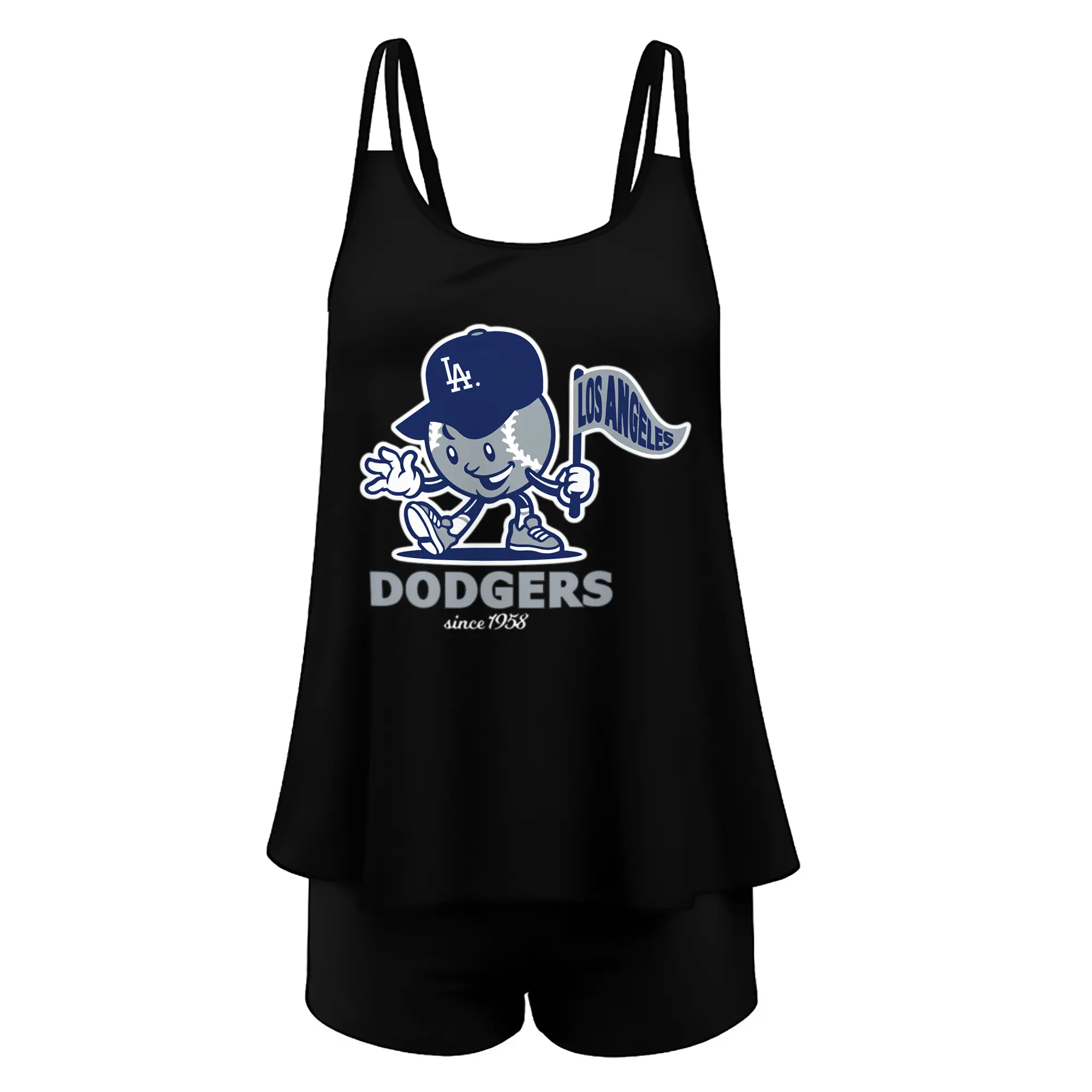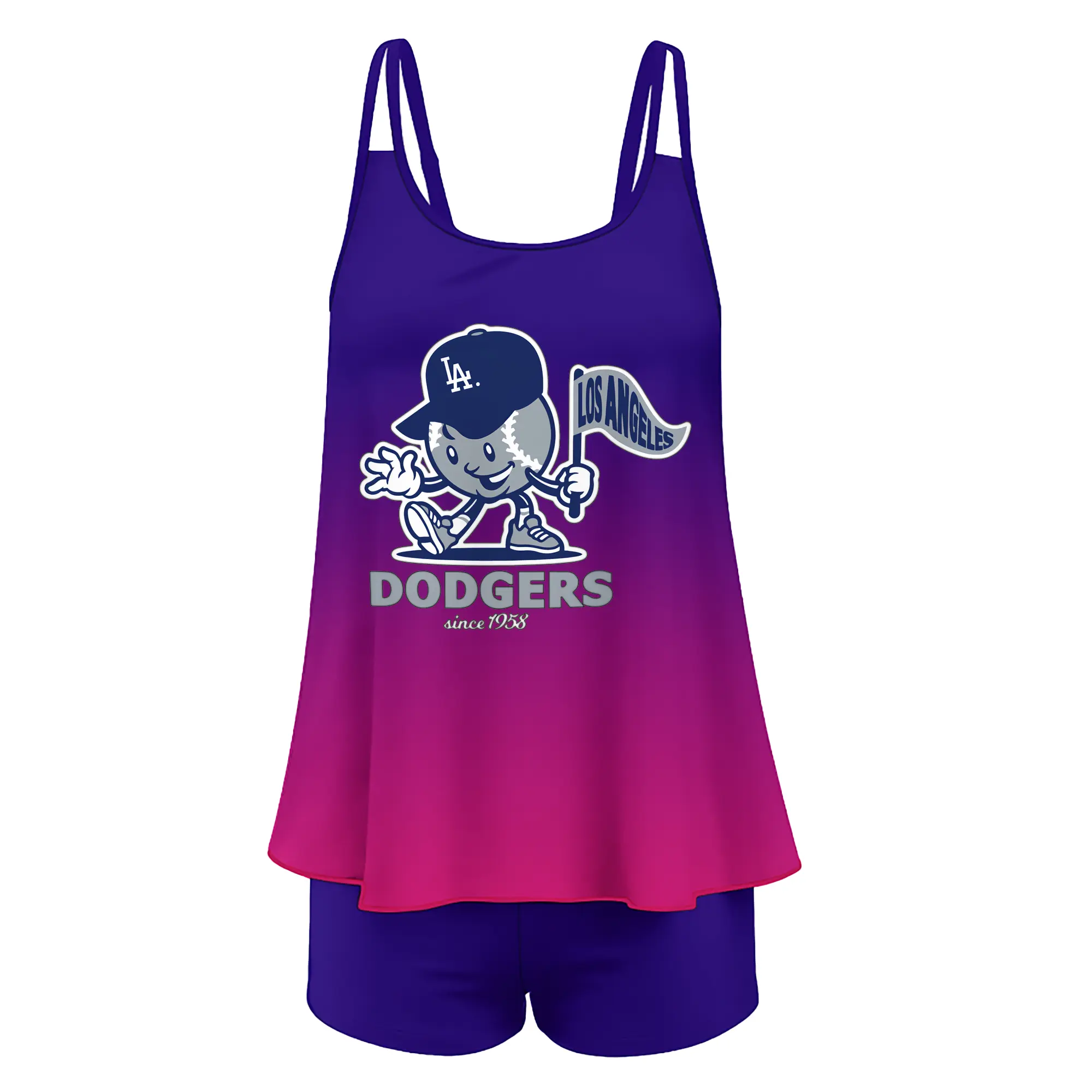 Los Angeles Dodgers Since 1958 Baseball - Women’s Heat Transfer Printed Two-Piece Swimsuit Set – Sexy Double Strap Bandeau Top & Boyshort Bottoms, Soft Nylon-Spandex – Perfect for Beach, Pool & Vacation