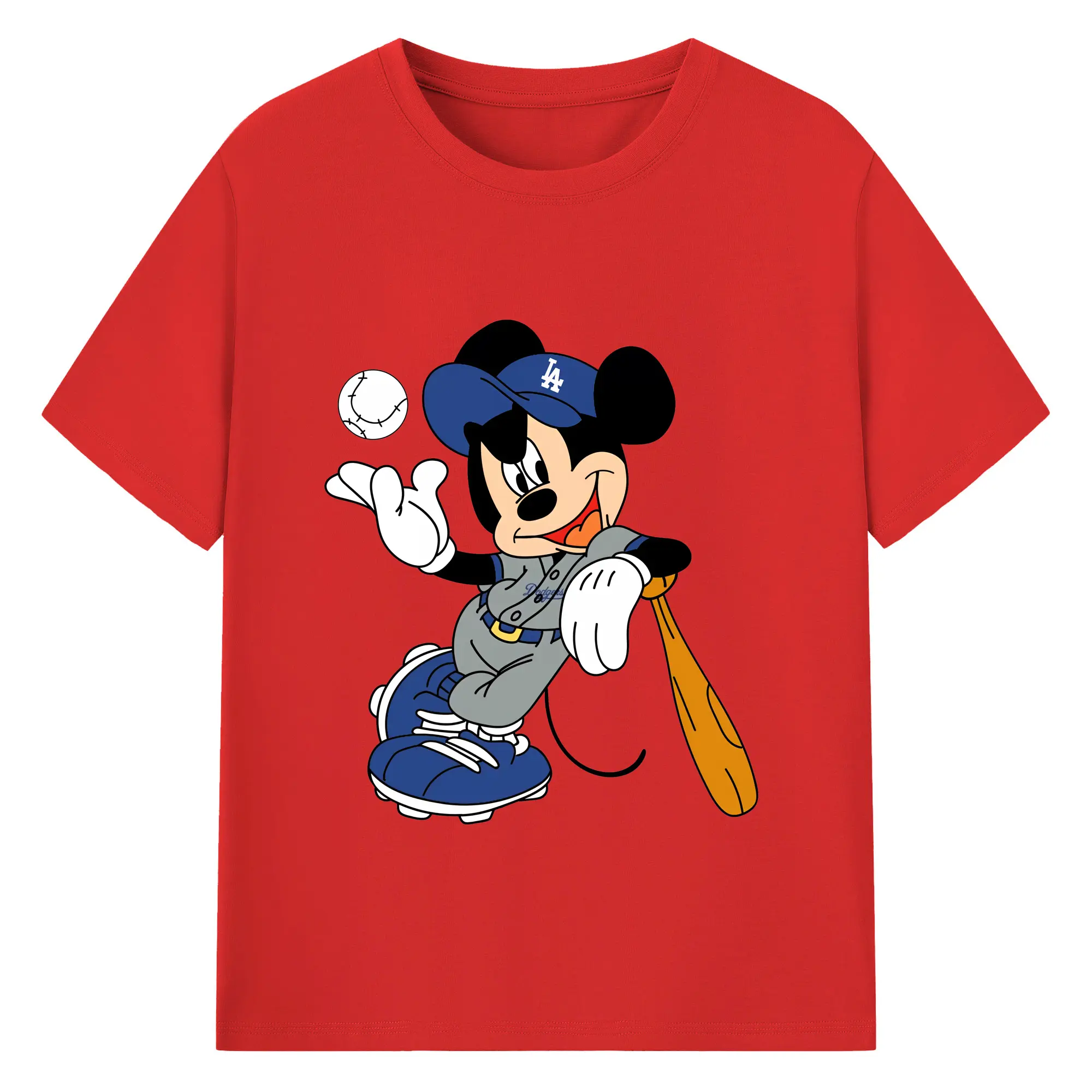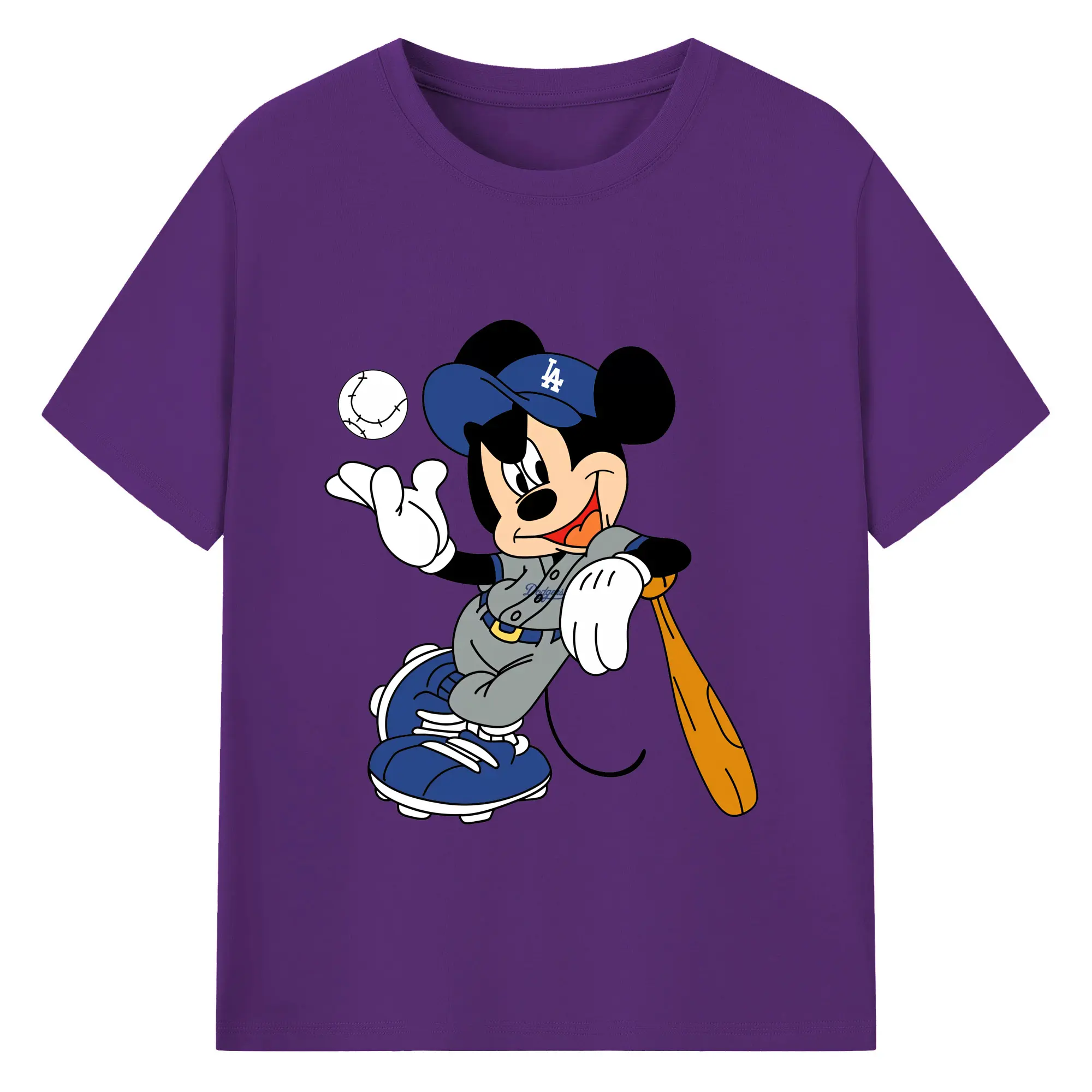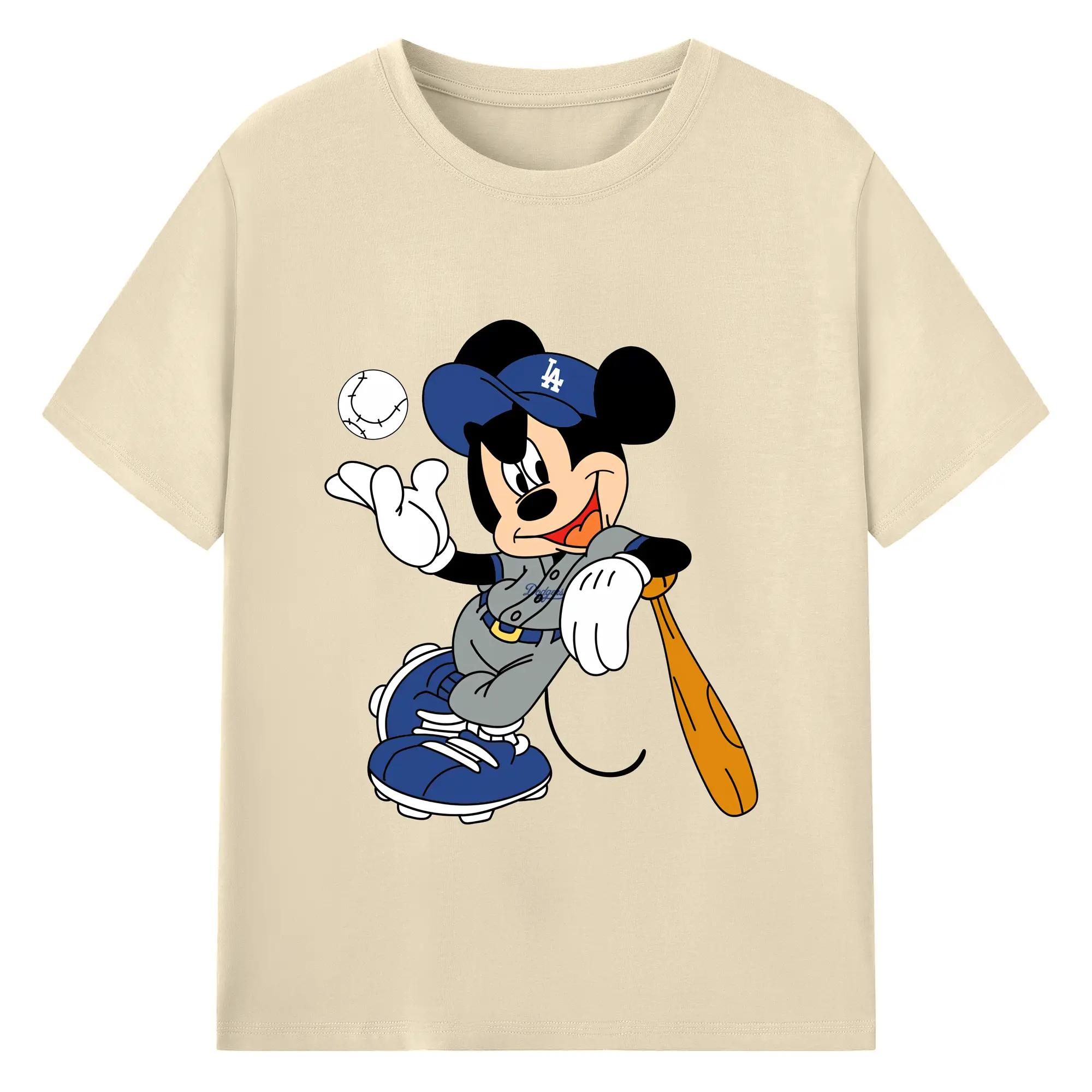 Mickey Mouse Los Angeles Dodgers 1 - Combed Cotton T-Shirt 180g With Front Heat Transfer Print – Soft, Lightweight, Fitted Design – Stylish Casual Wear For Sports & Everyday Use