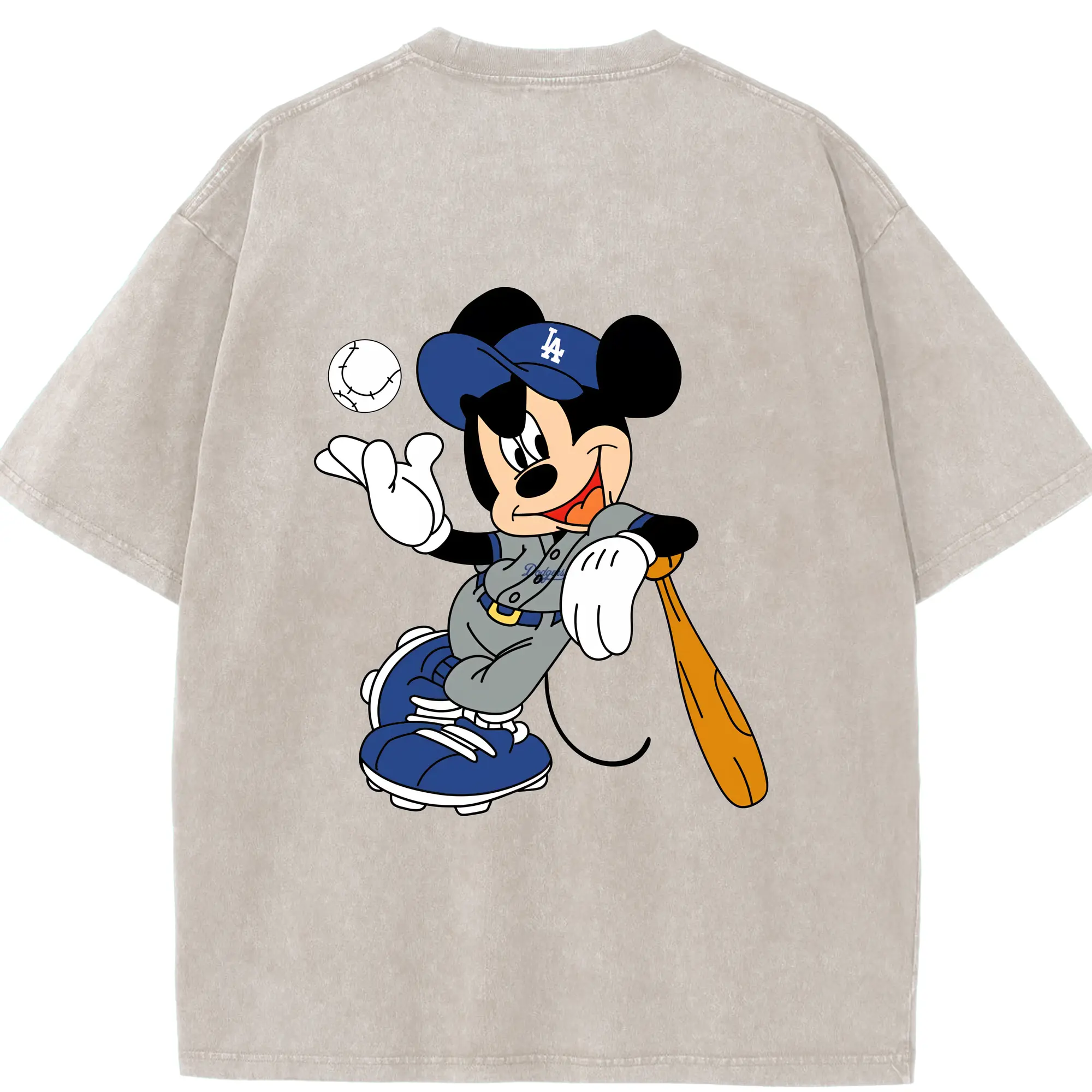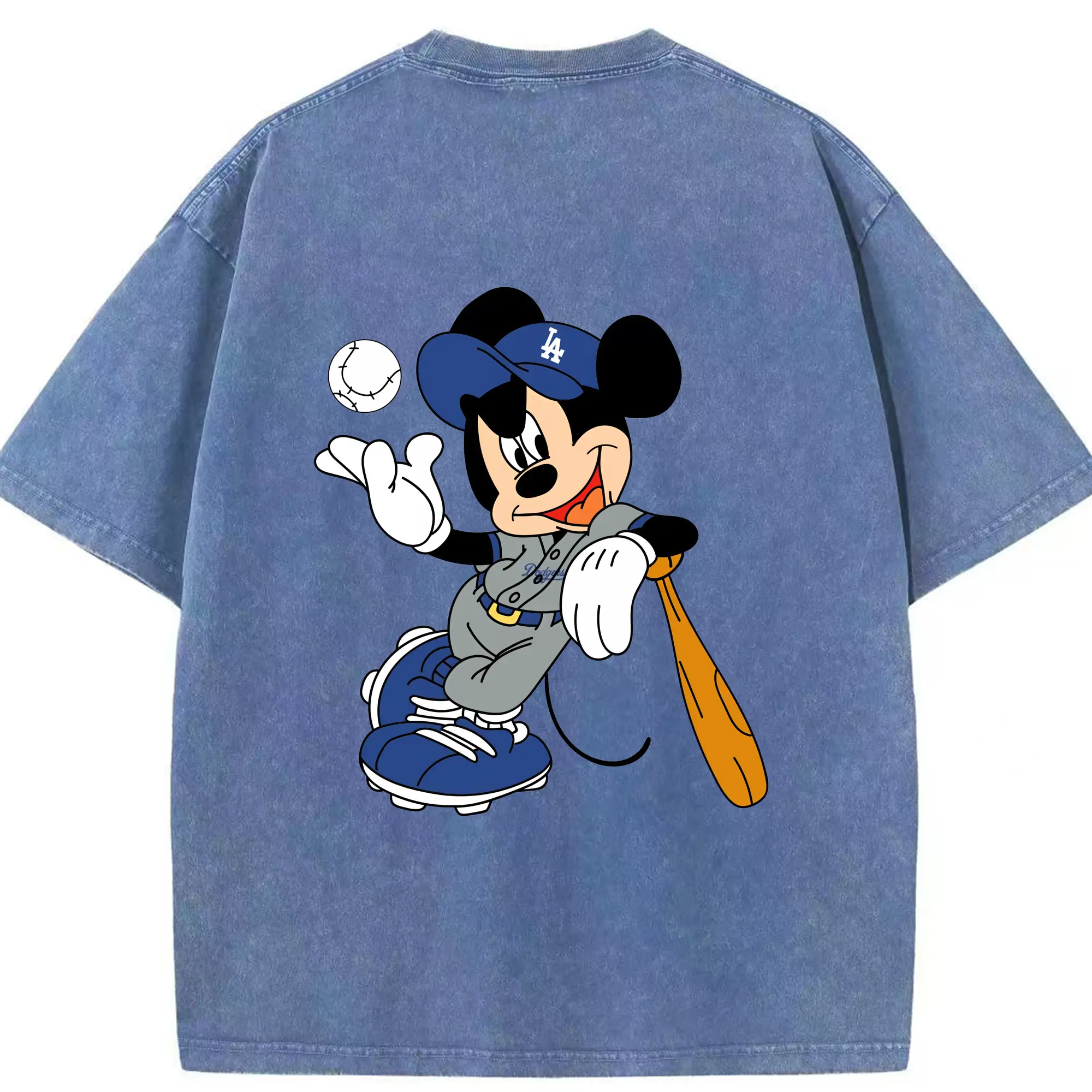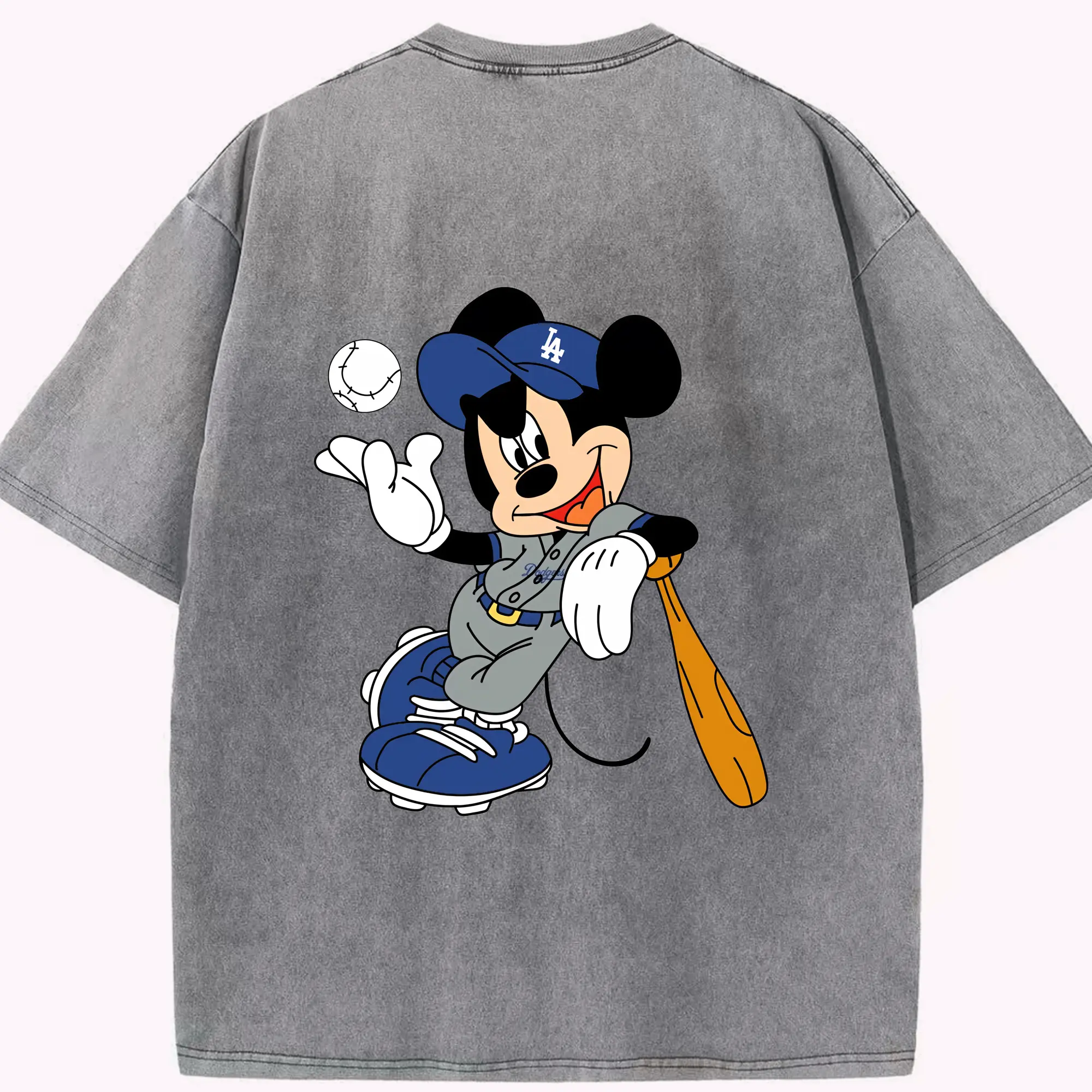 Mickey Mouse Los Angeles Dodgers 1 - Washed Vintage 230g Cotton Oversized T-Shirt With Back Heat Transfer Print – Soft, Lightweight & Stylish – Comfortable Casual Wear For Sports & Everyday Use