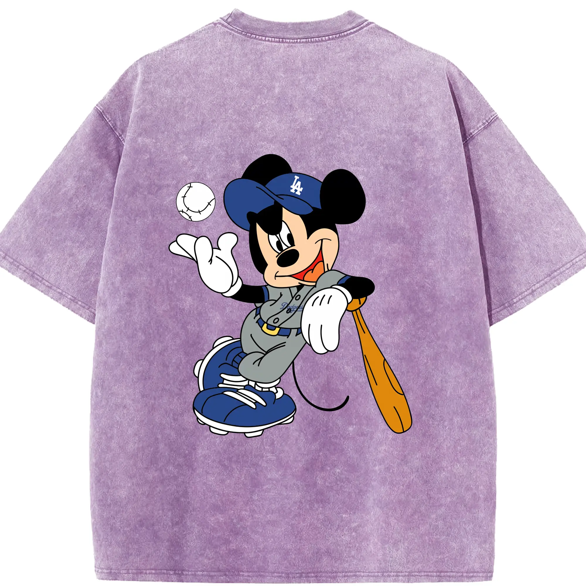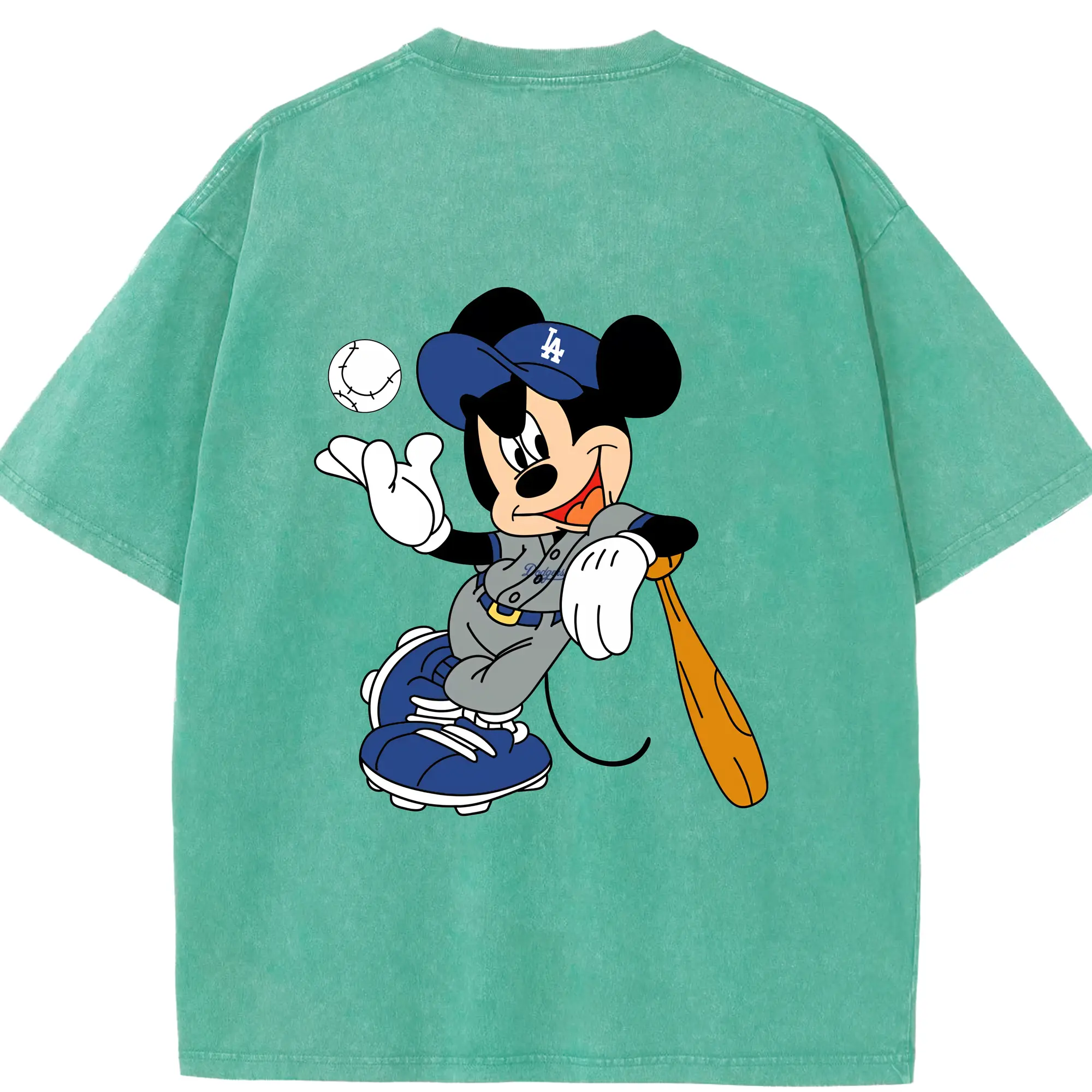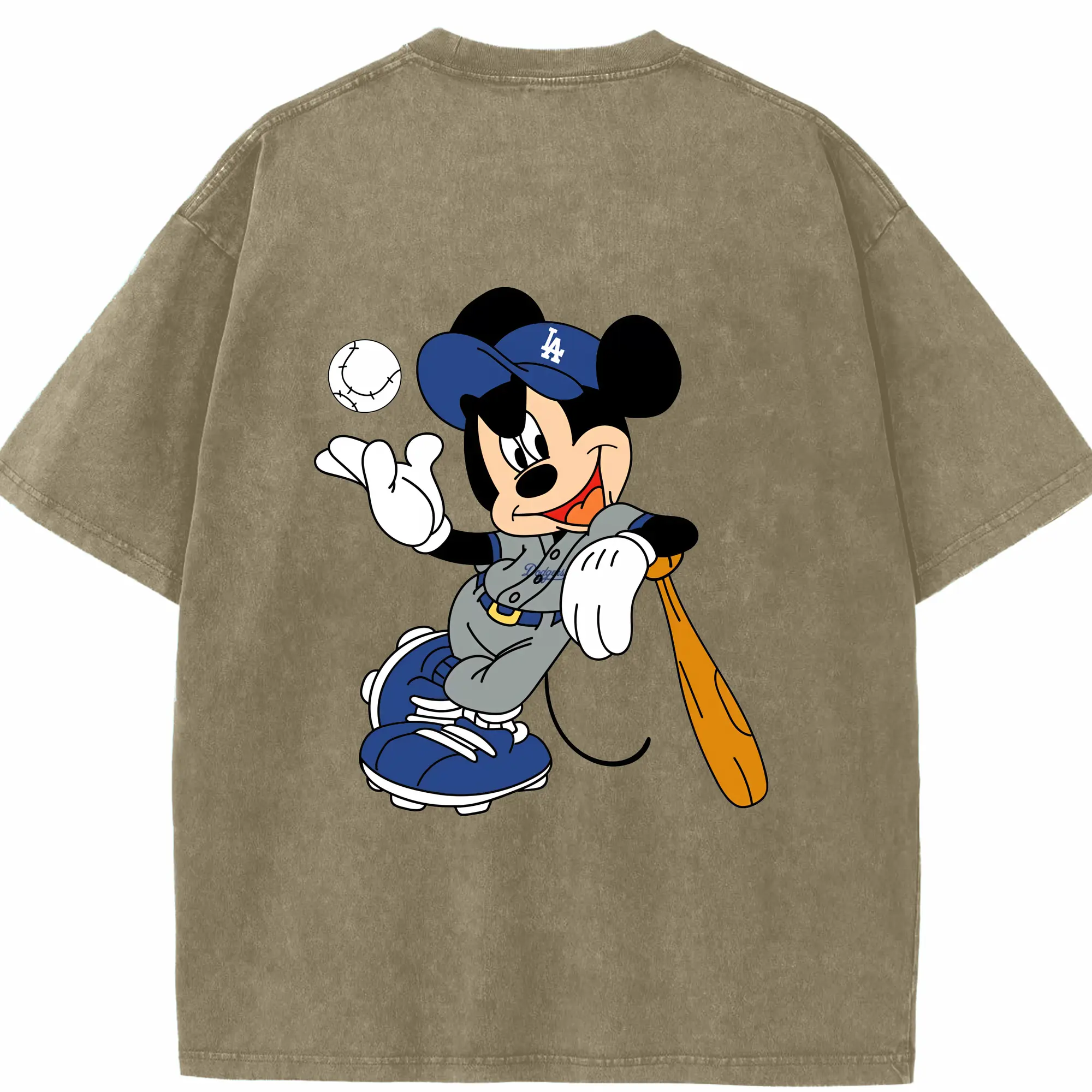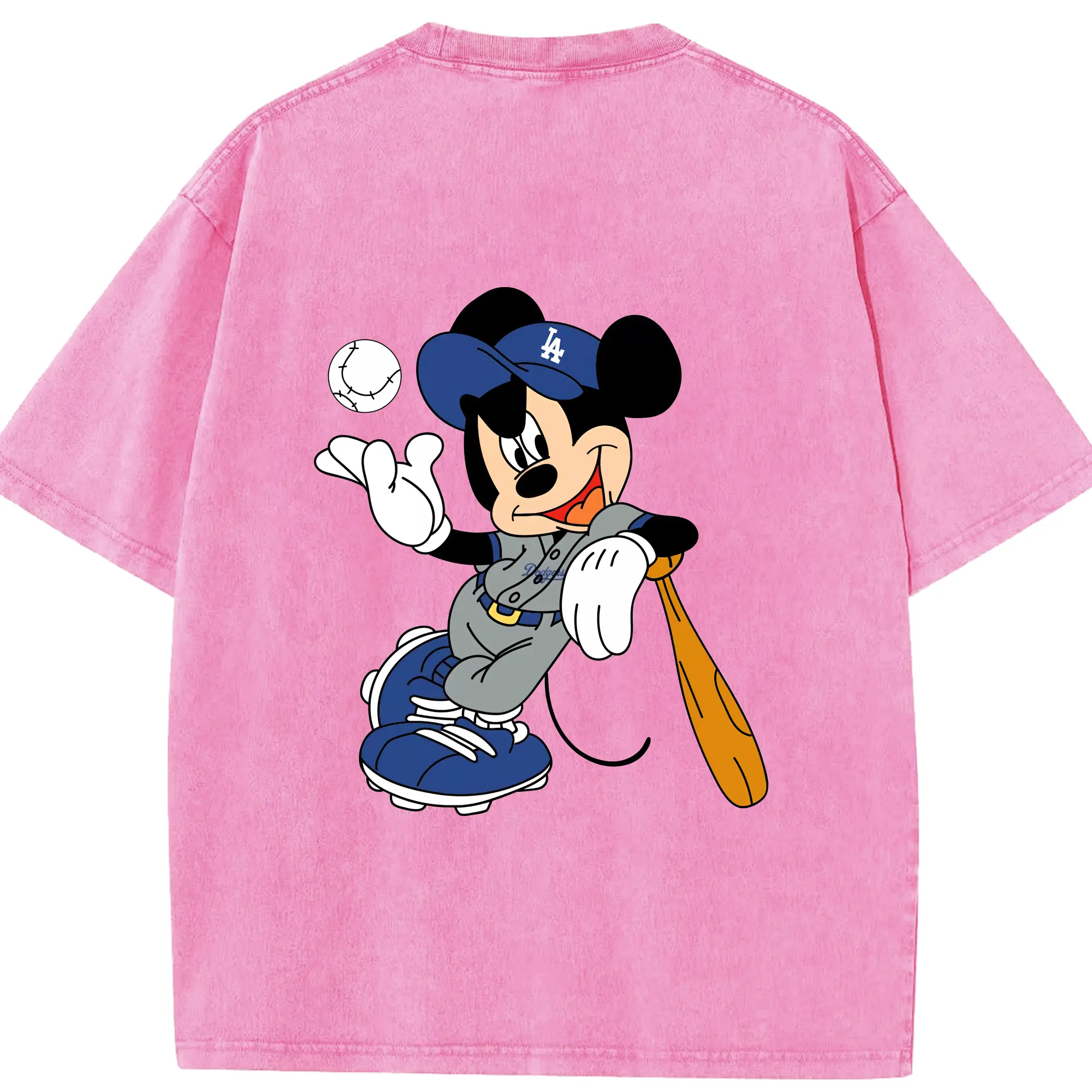 Mickey Mouse Los Angeles Dodgers 1 - Washed Vintage 230g Cotton Oversized T-Shirt With Back Heat Transfer Print – Soft, Lightweight & Stylish – Comfortable Casual Wear For Sports & Everyday Use