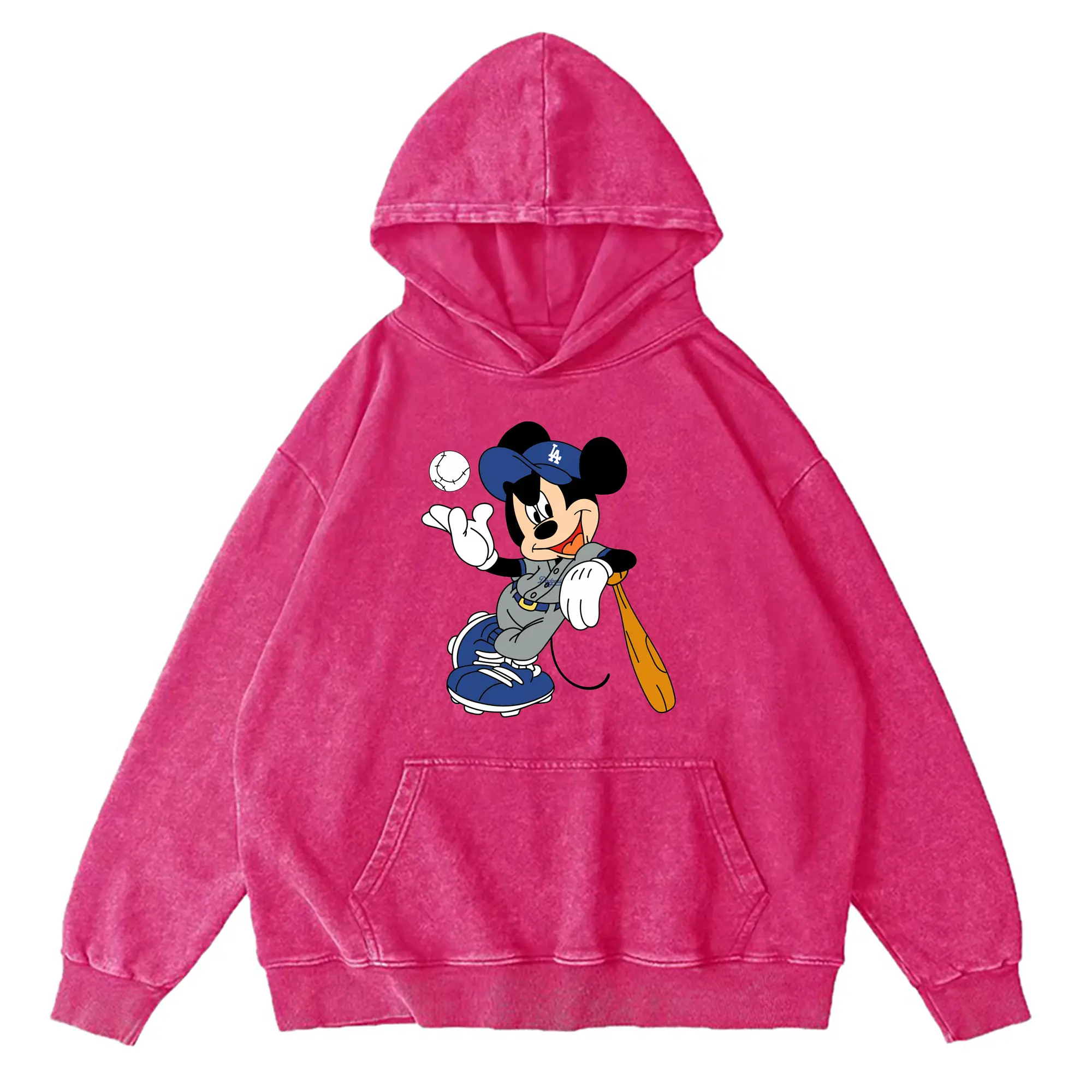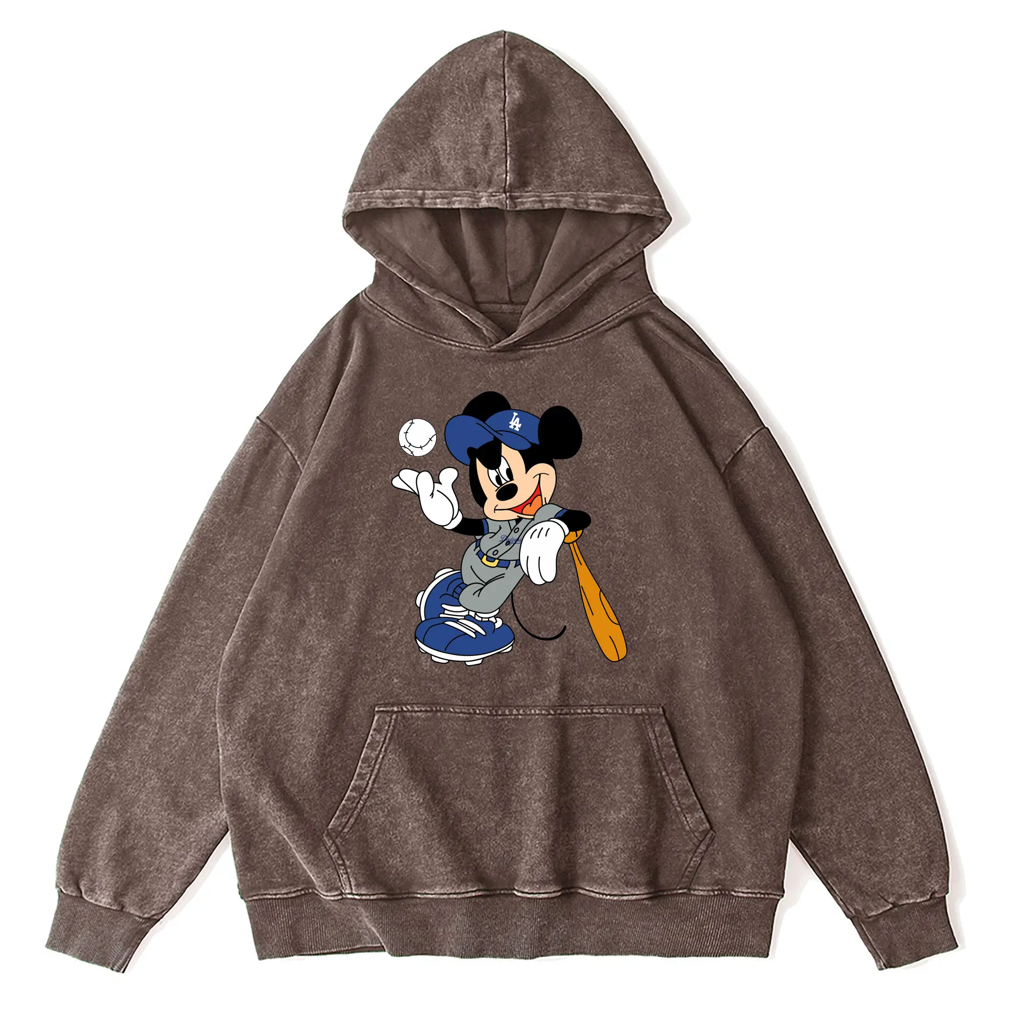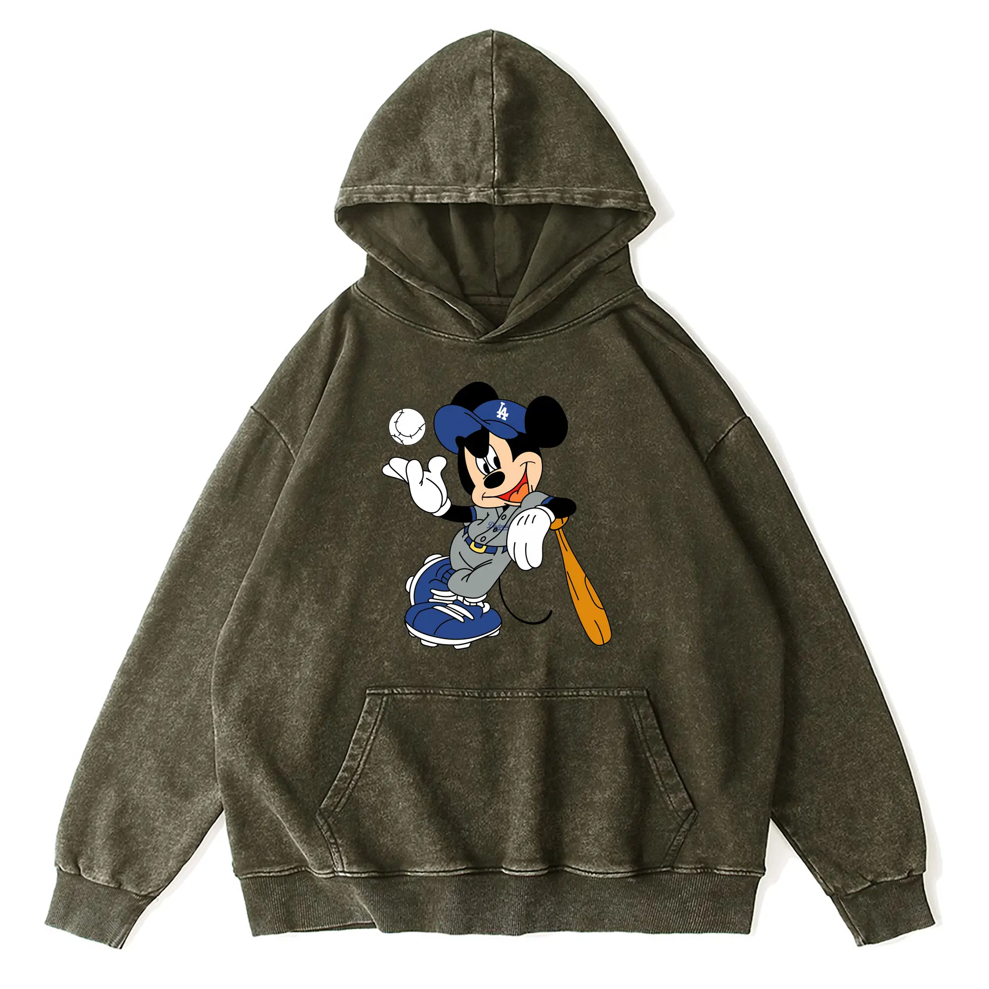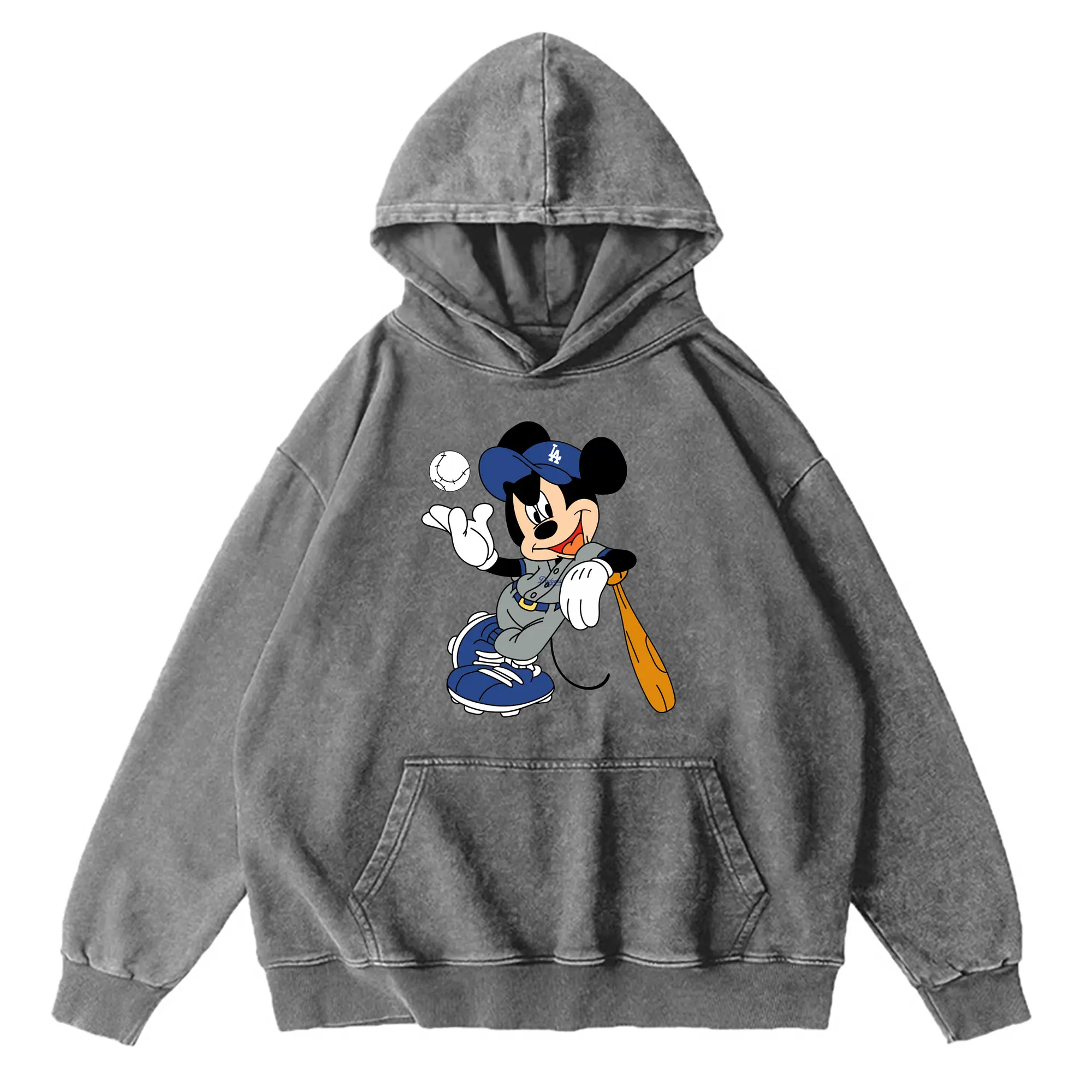Mickey Mouse Los Angeles Dodgers 1 - Vintage Washed Wax-Dyed Hoodie – 80% Cotton, 20% Polyester – Soft, Durable & Stylish – Perfect For Sports, Casual & Everyday Wear