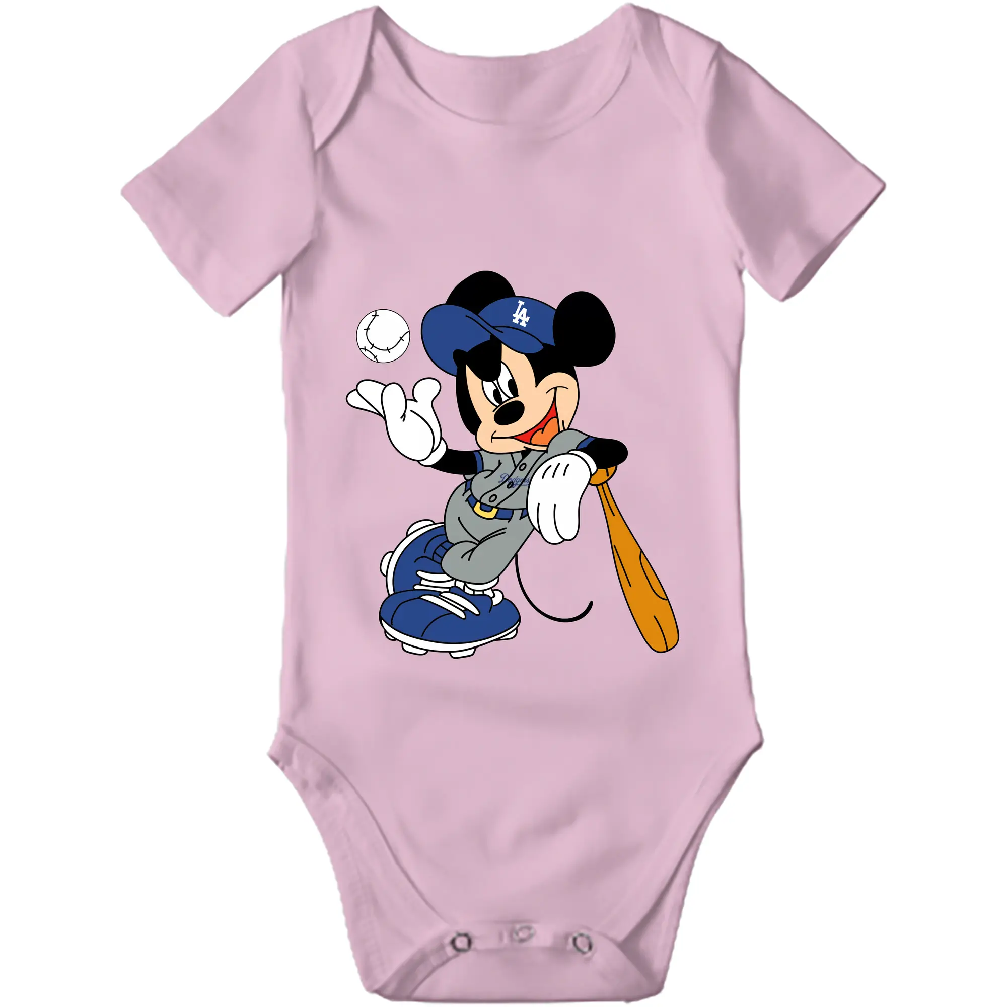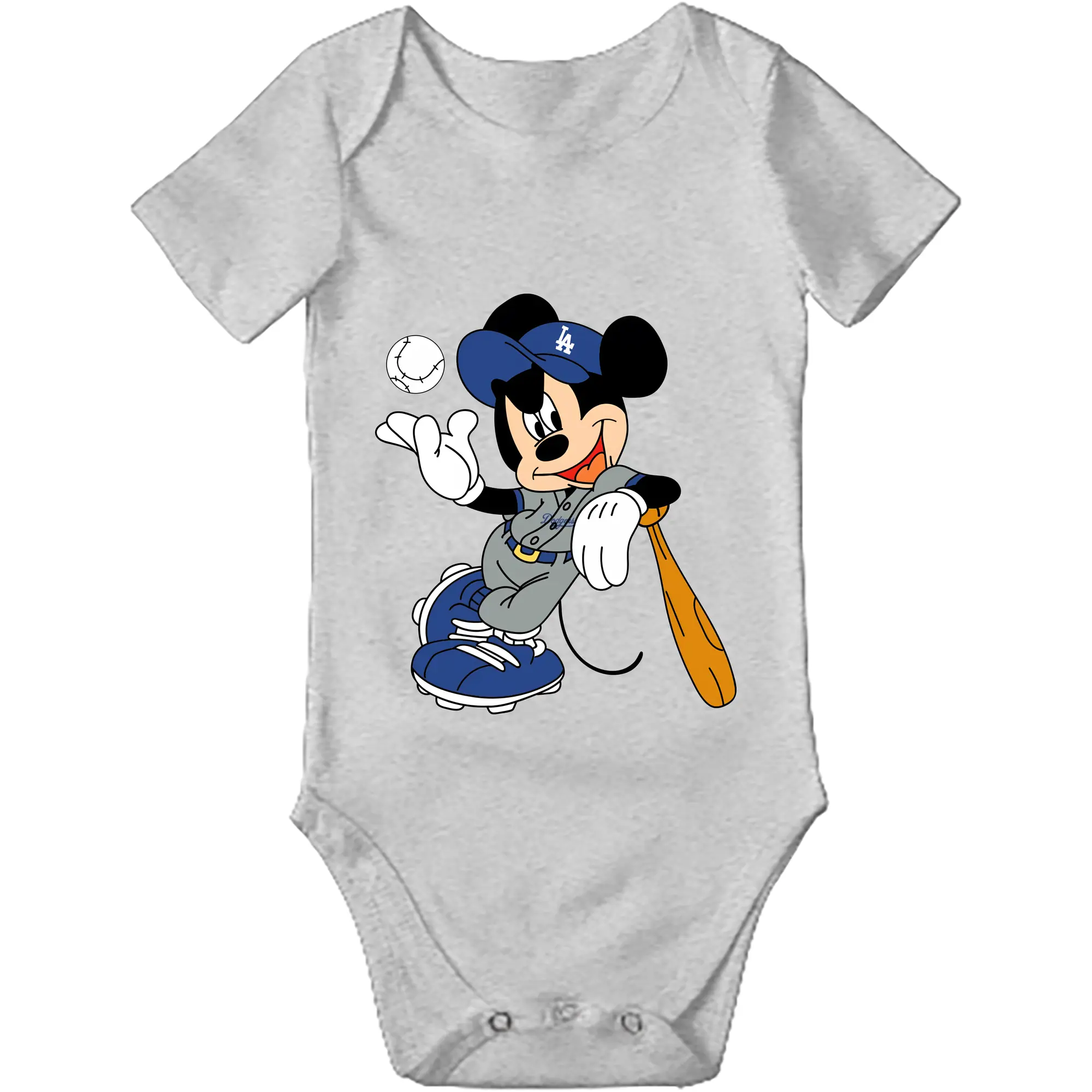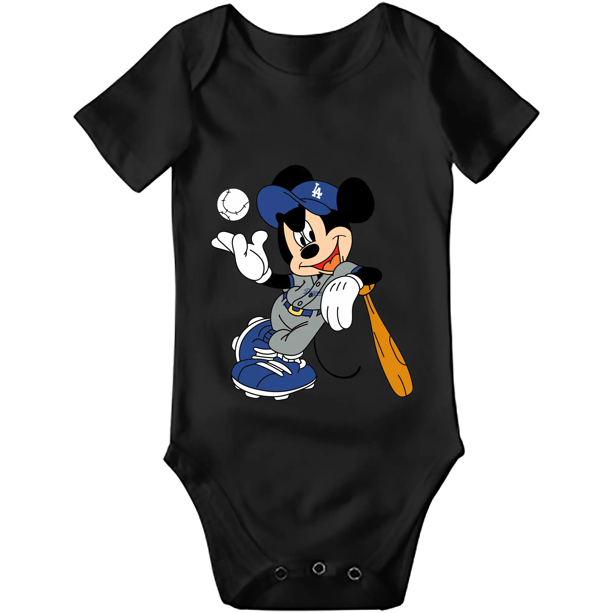 Mickey Mouse Los Angeles Dodgers 1 - Baby Short Sleeve Romper – 100% Cotton Soft & Breathable Digital Print Onesie With Easy Snap Closure And Envelope Shoulder – Comfortable For Daily Wear & Travel