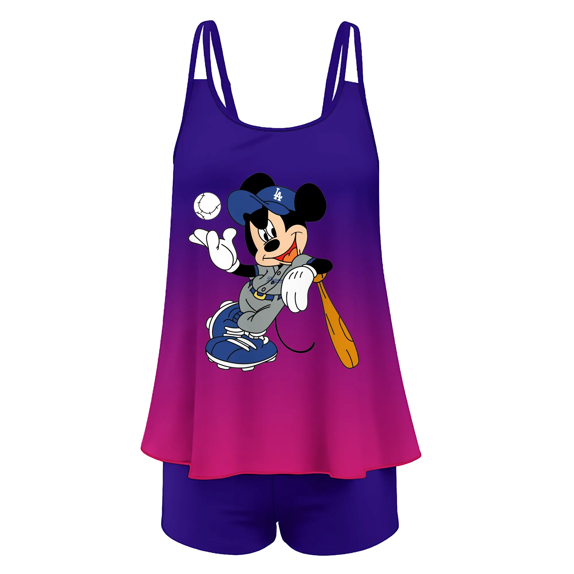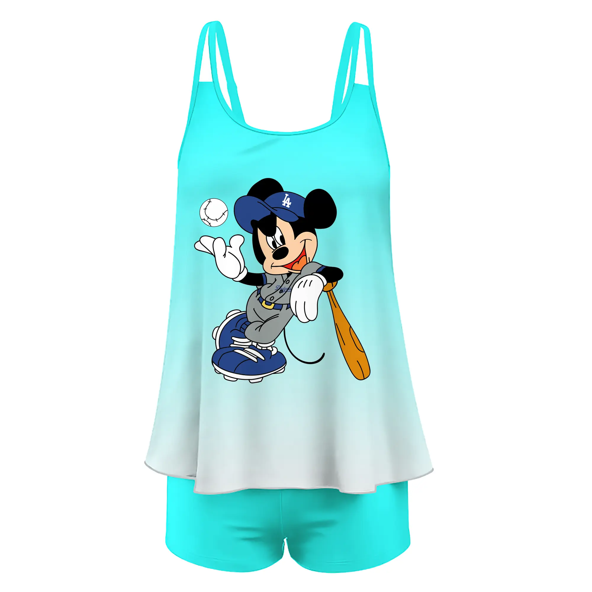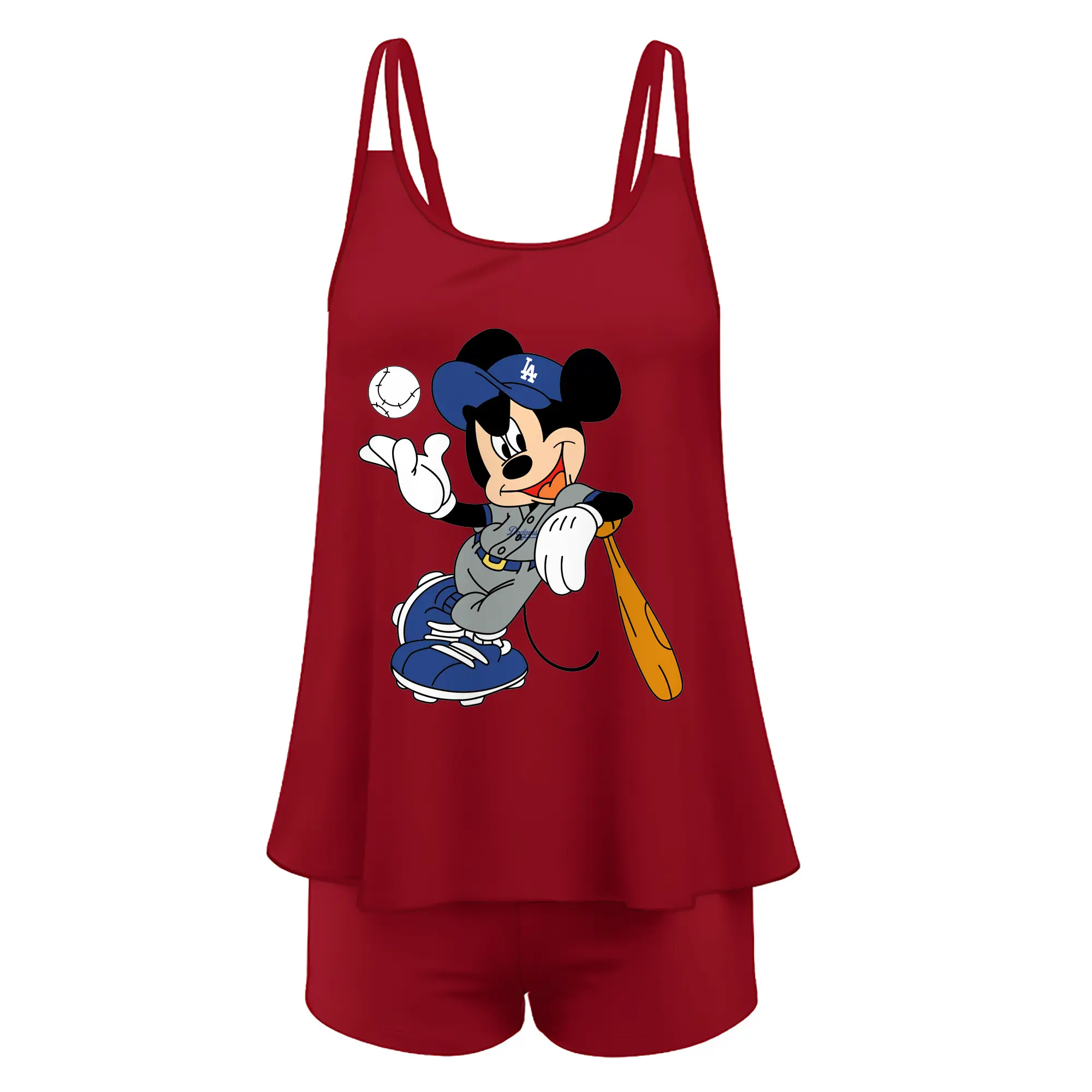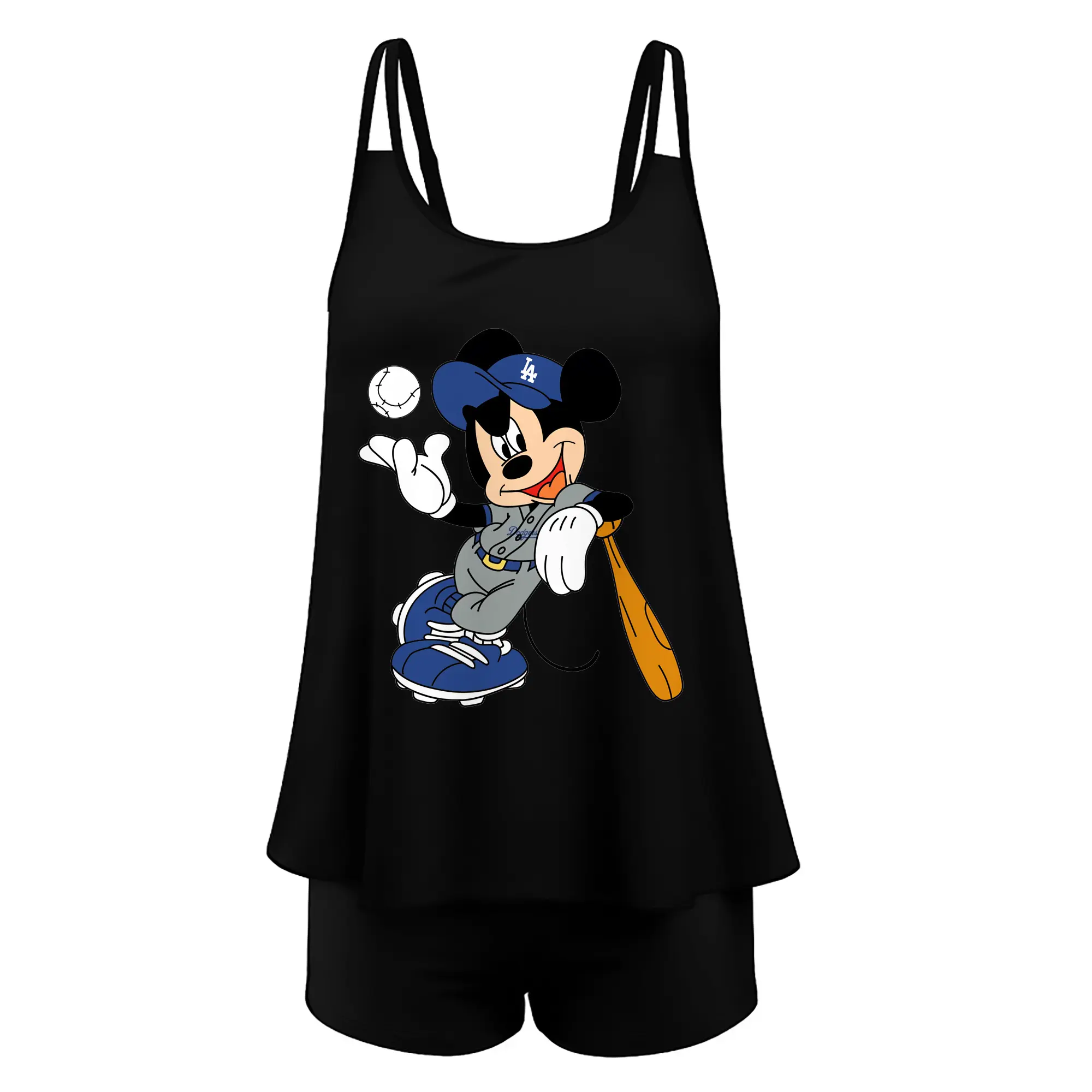 Mickey Mouse Los Angeles Dodgers 1 - Women’s Heat Transfer Printed Two-Piece Swimsuit Set – Sexy Double Strap Bandeau Top & Boyshort Bottoms, Soft Nylon-Spandex – Perfect for Beach, Pool & Vacation