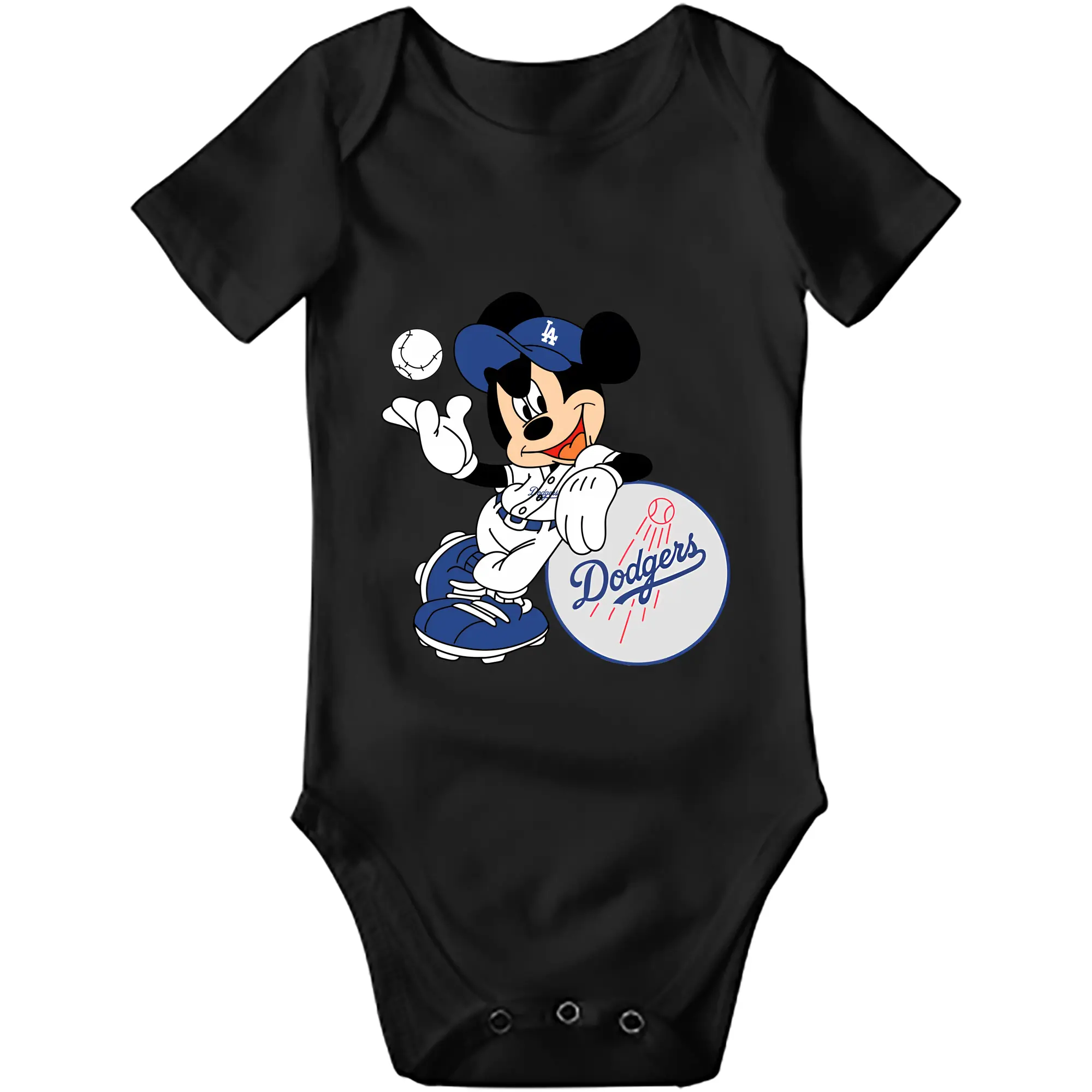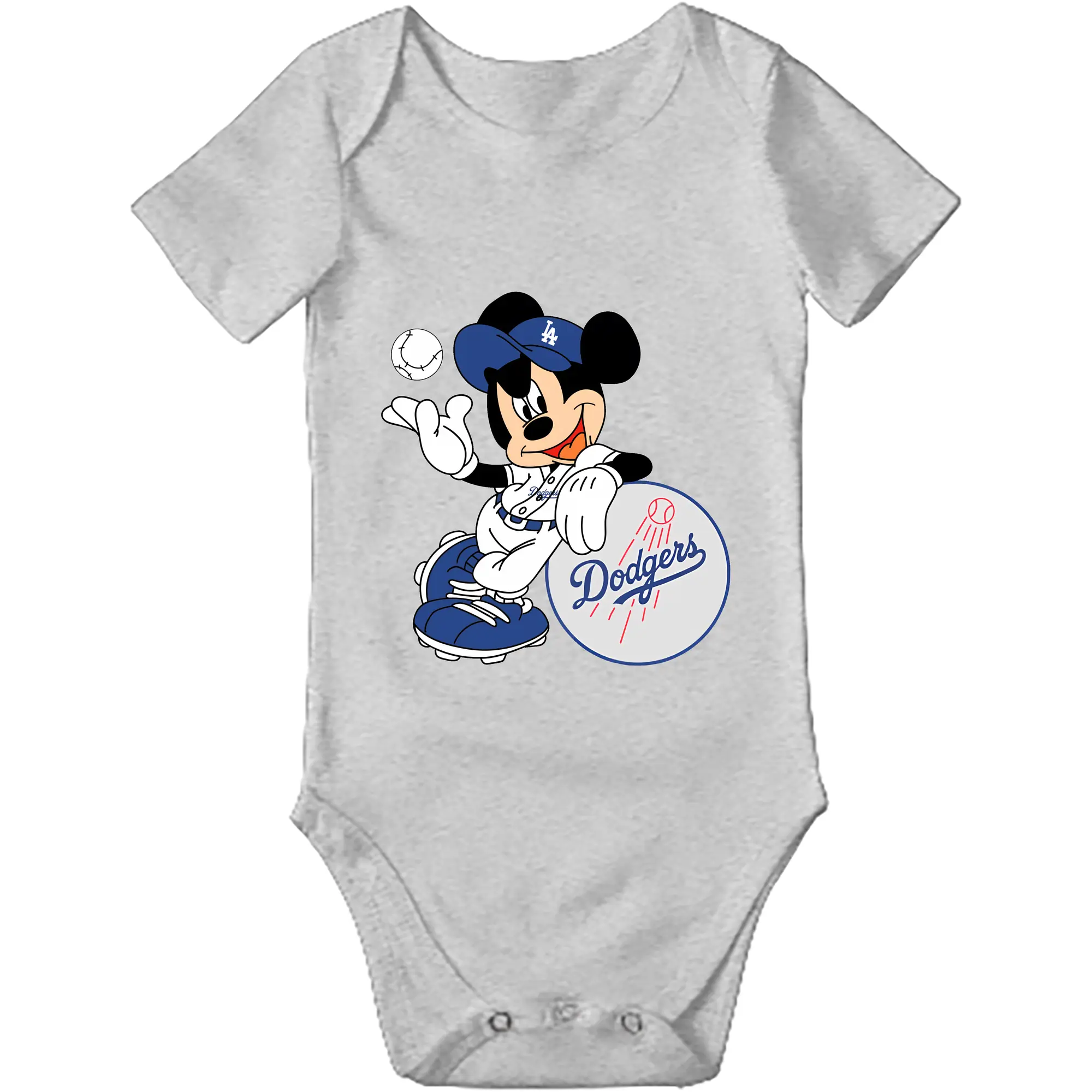 Mickey Mouse Los Angeles Dodgers - Baby Short Sleeve Romper – 100% Cotton Soft & Breathable Digital Print Onesie With Easy Snap Closure And Envelope Shoulder – Comfortable For Daily Wear & Travel