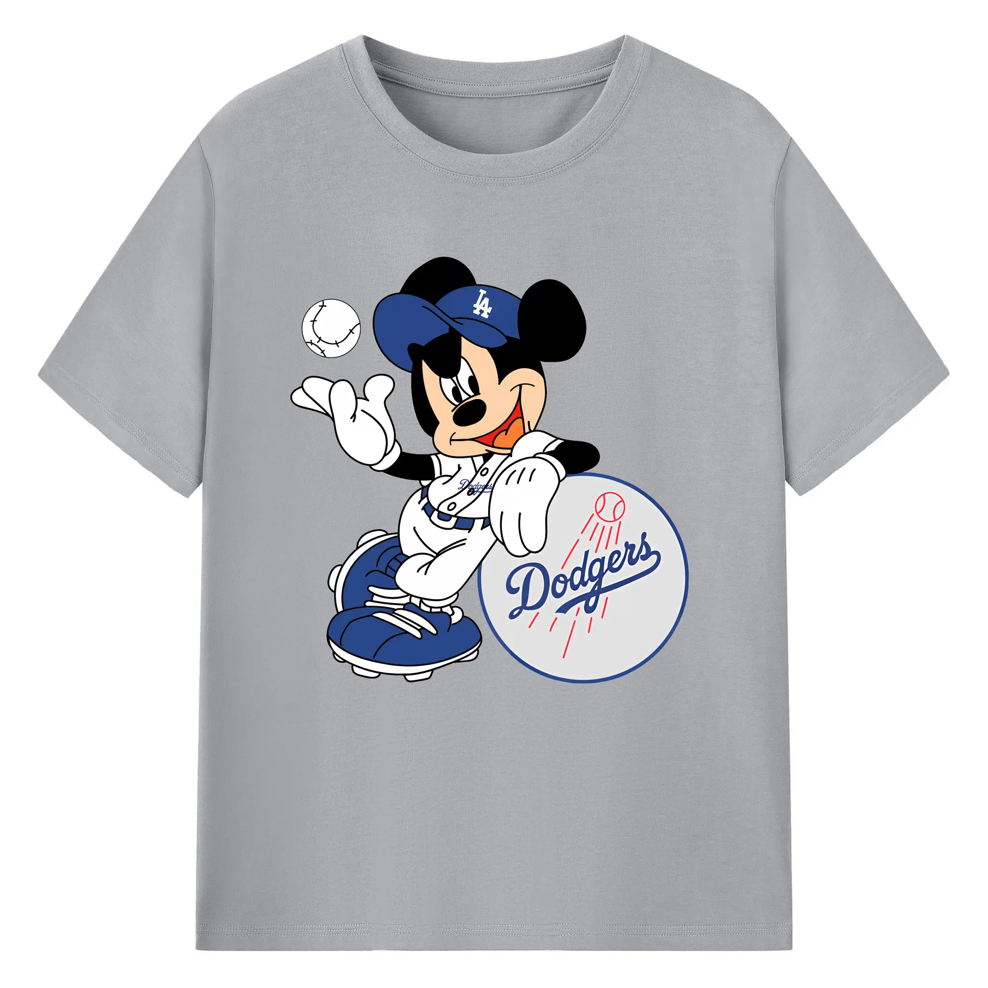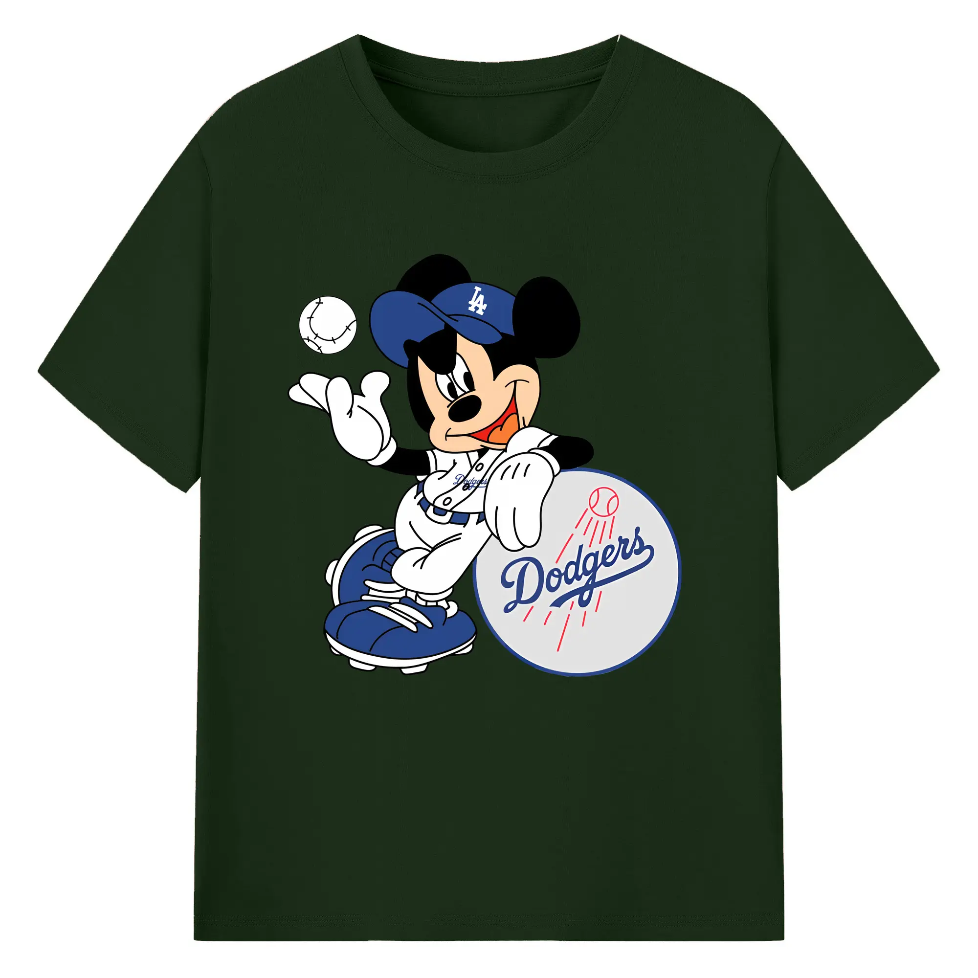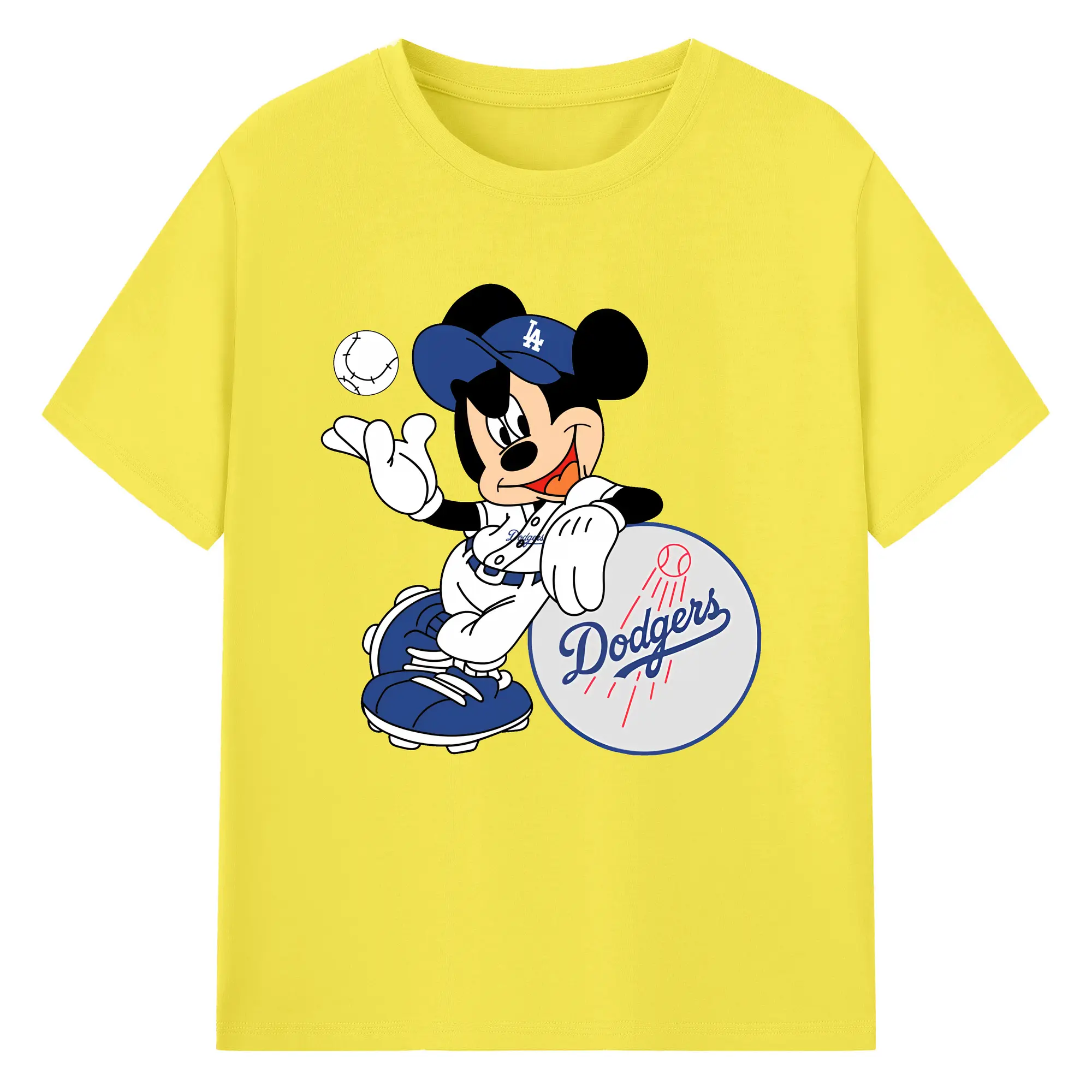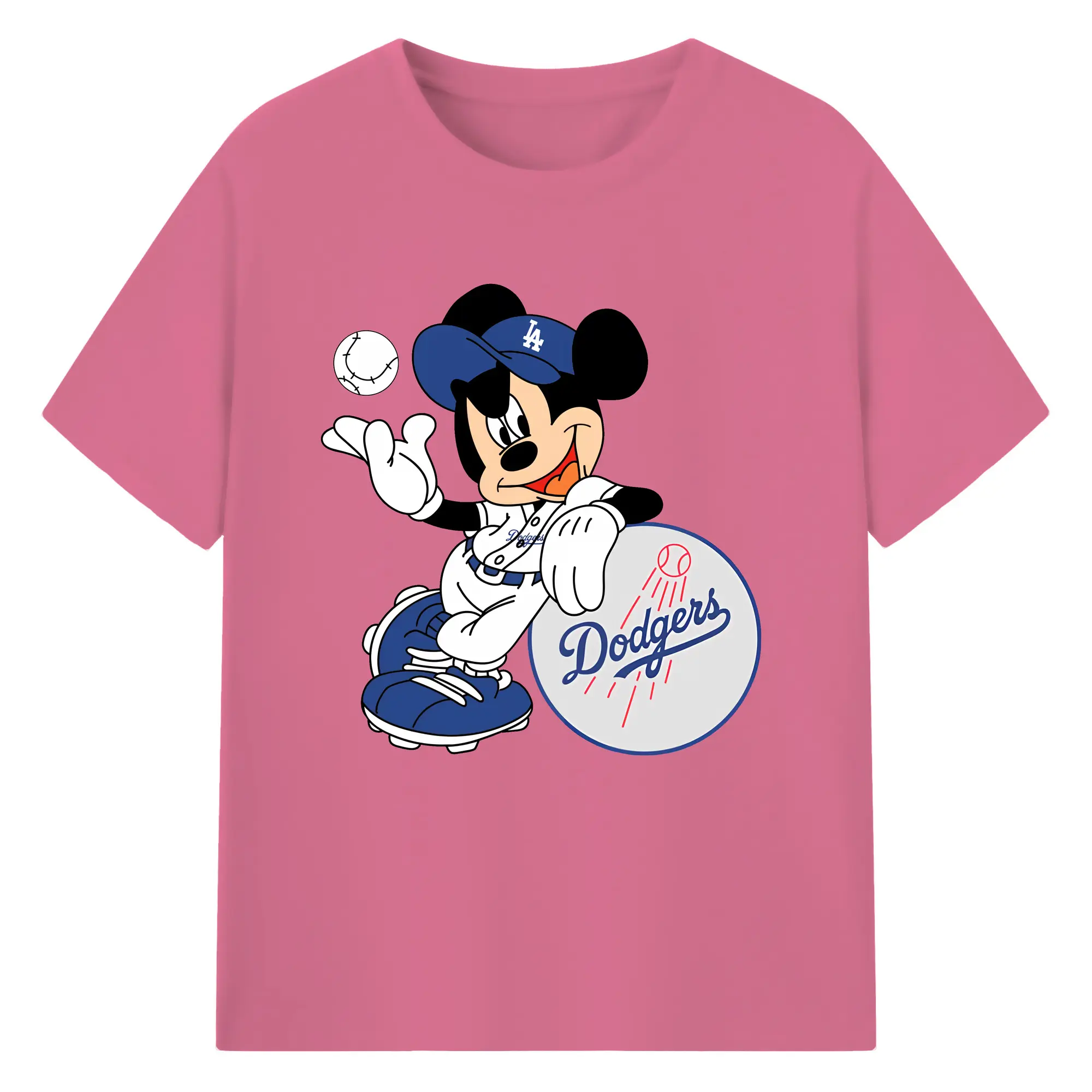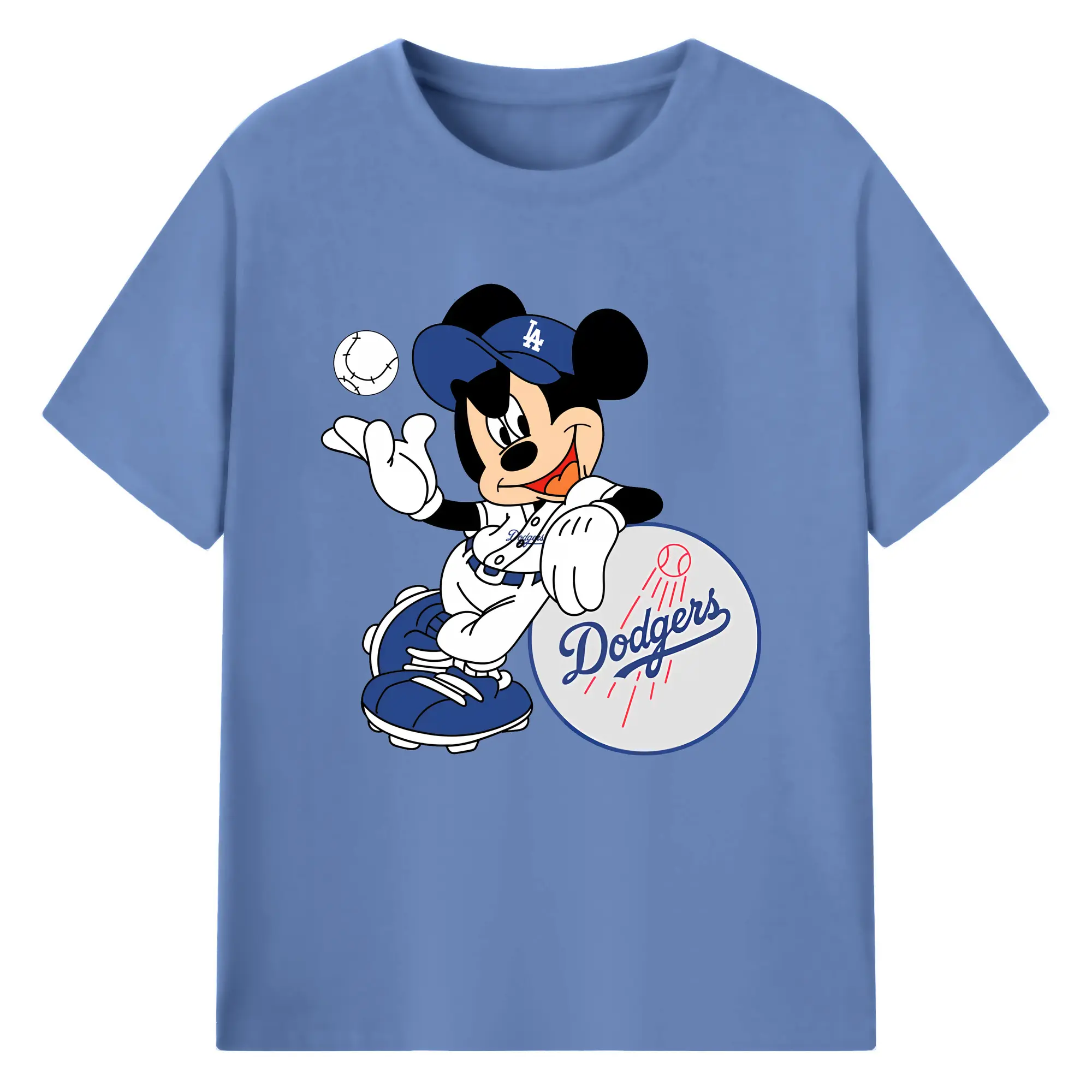 Mickey Mouse Los Angeles Dodgers - 180g Cotton T-Shirt With Front Heat Transfer Print – Soft, Lightweight, Fitted Design – Comfortable Casual Wear For Sports & Everyday Use