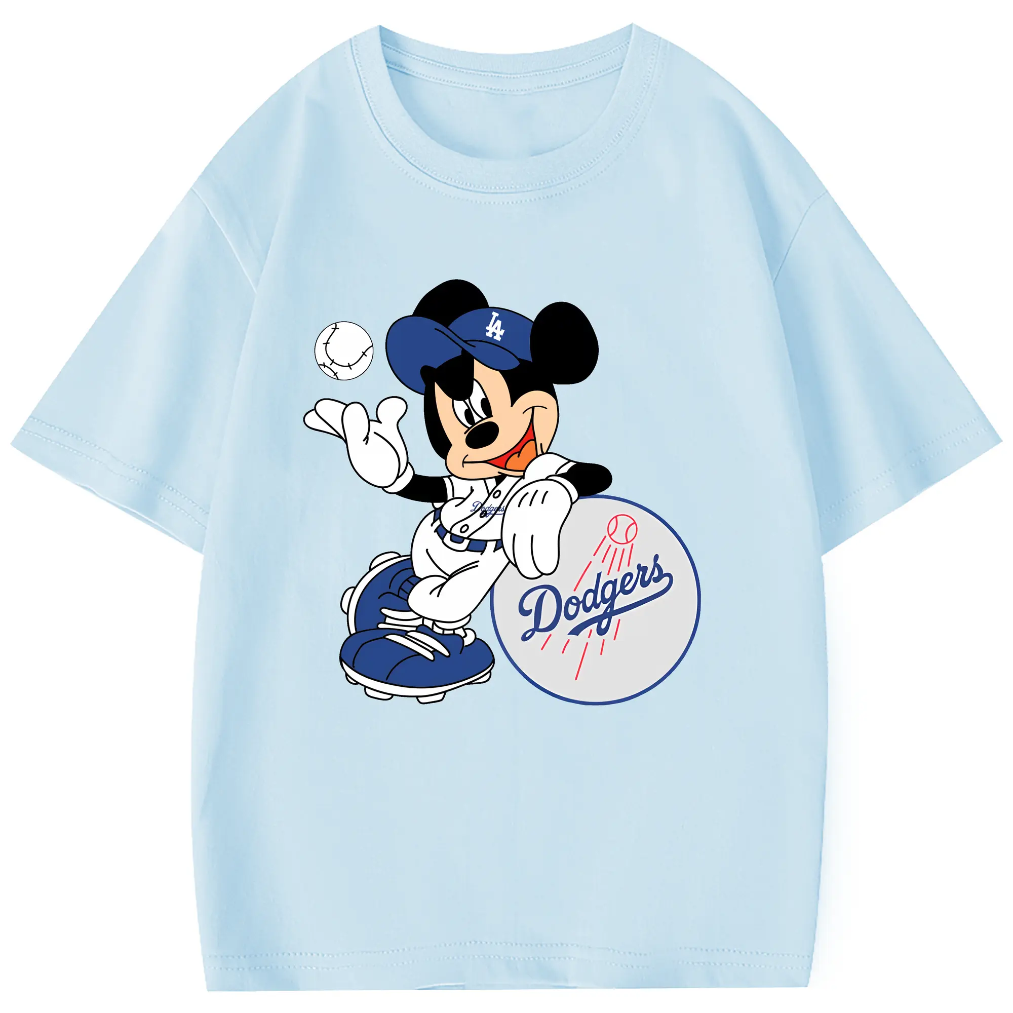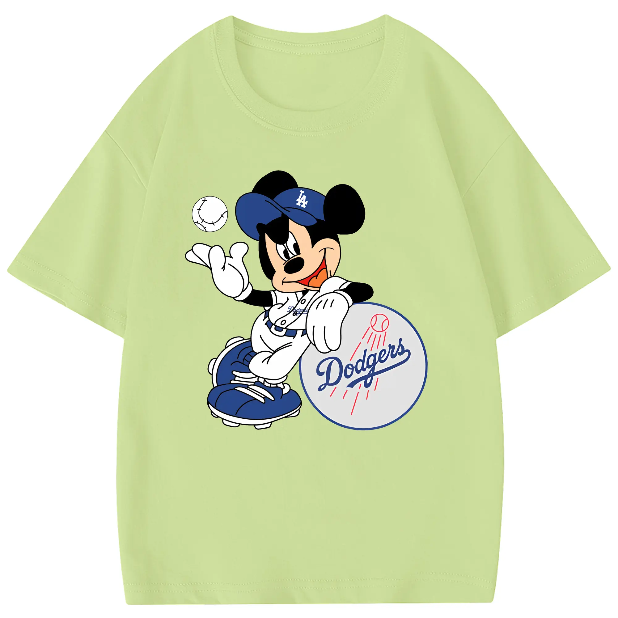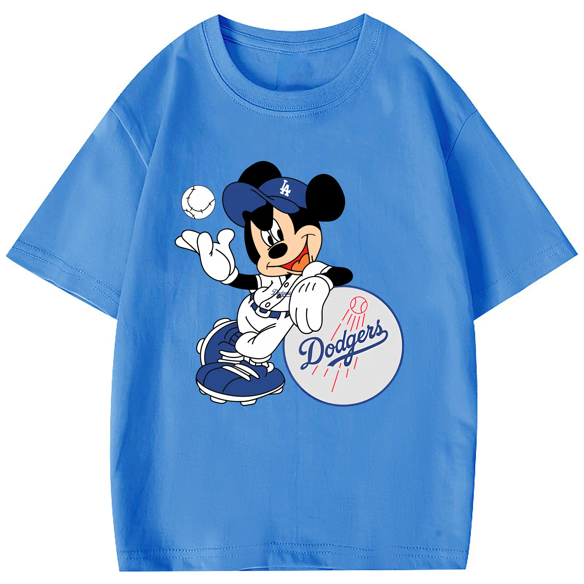 Mickey Mouse Los Angeles Dodgers - Combed Cotton Kids T-Shirt 180g With Front Heat Transfer Print – Soft, Lightweight, Side-Seamed Design – Stylish And Comfortable Casual Wear For Everyday Activities
