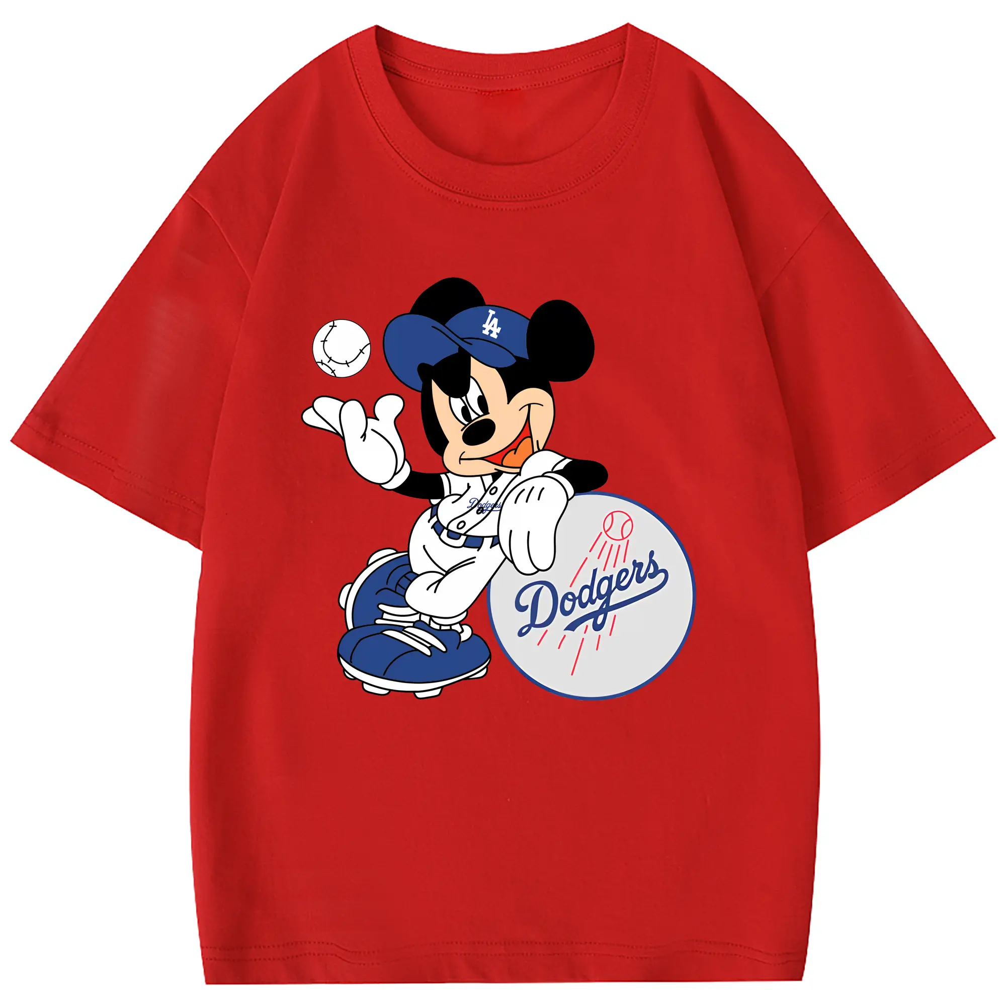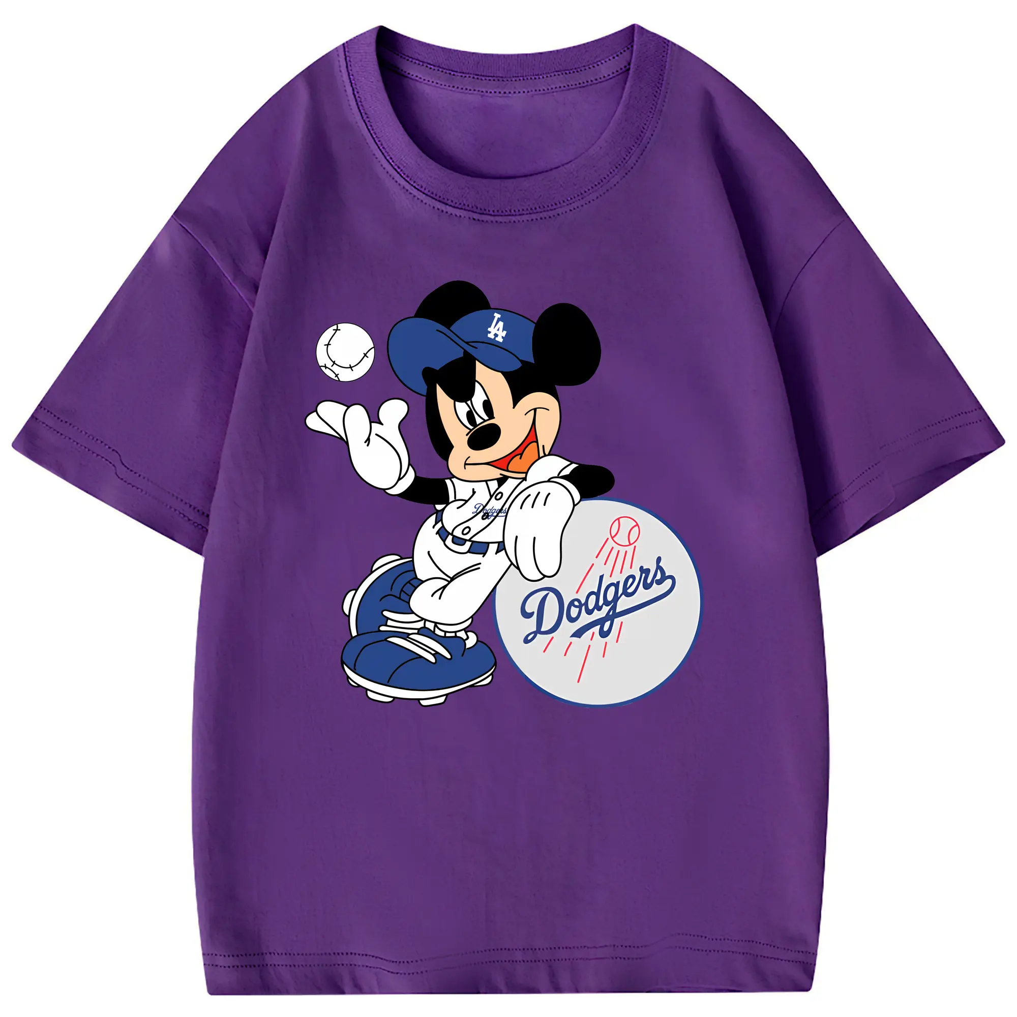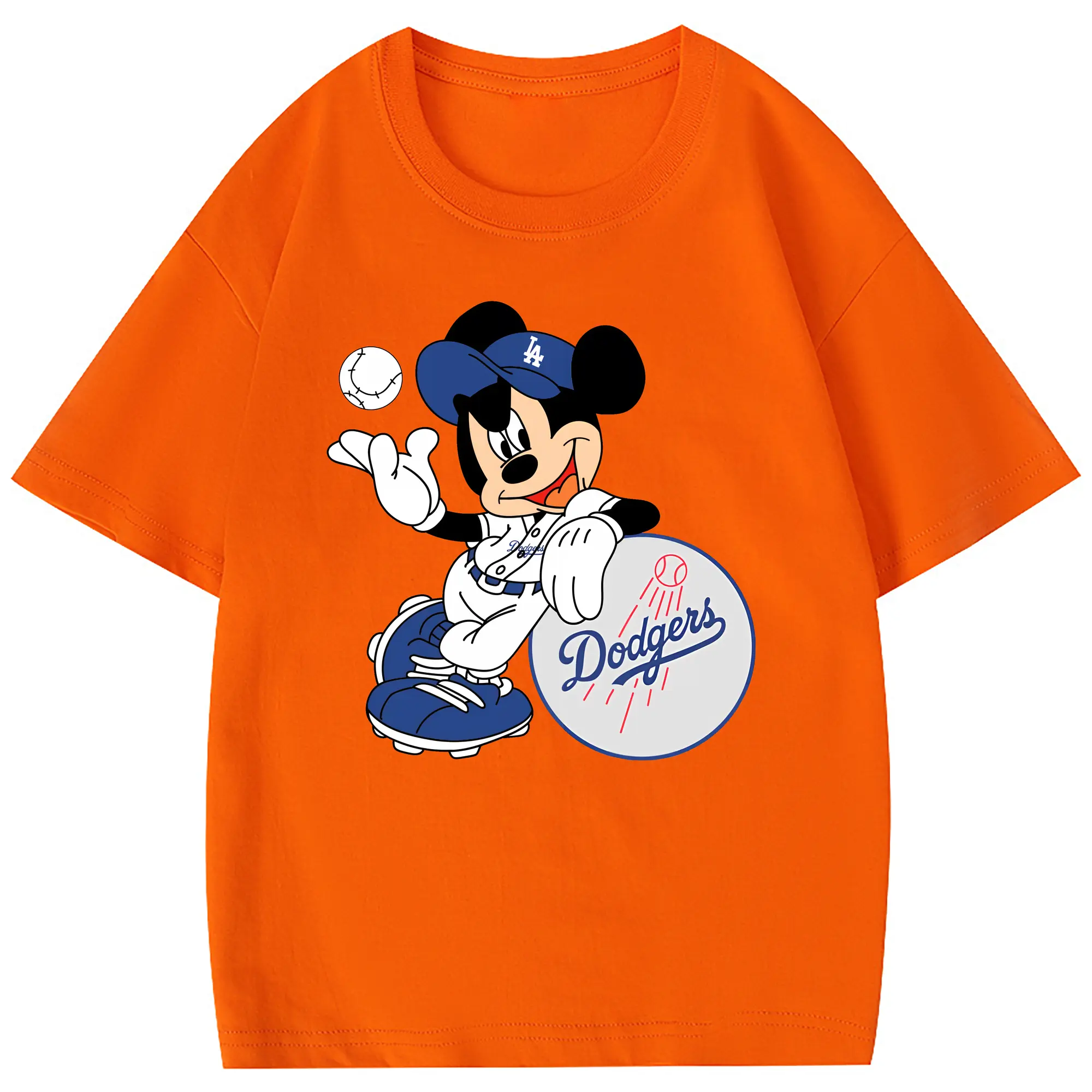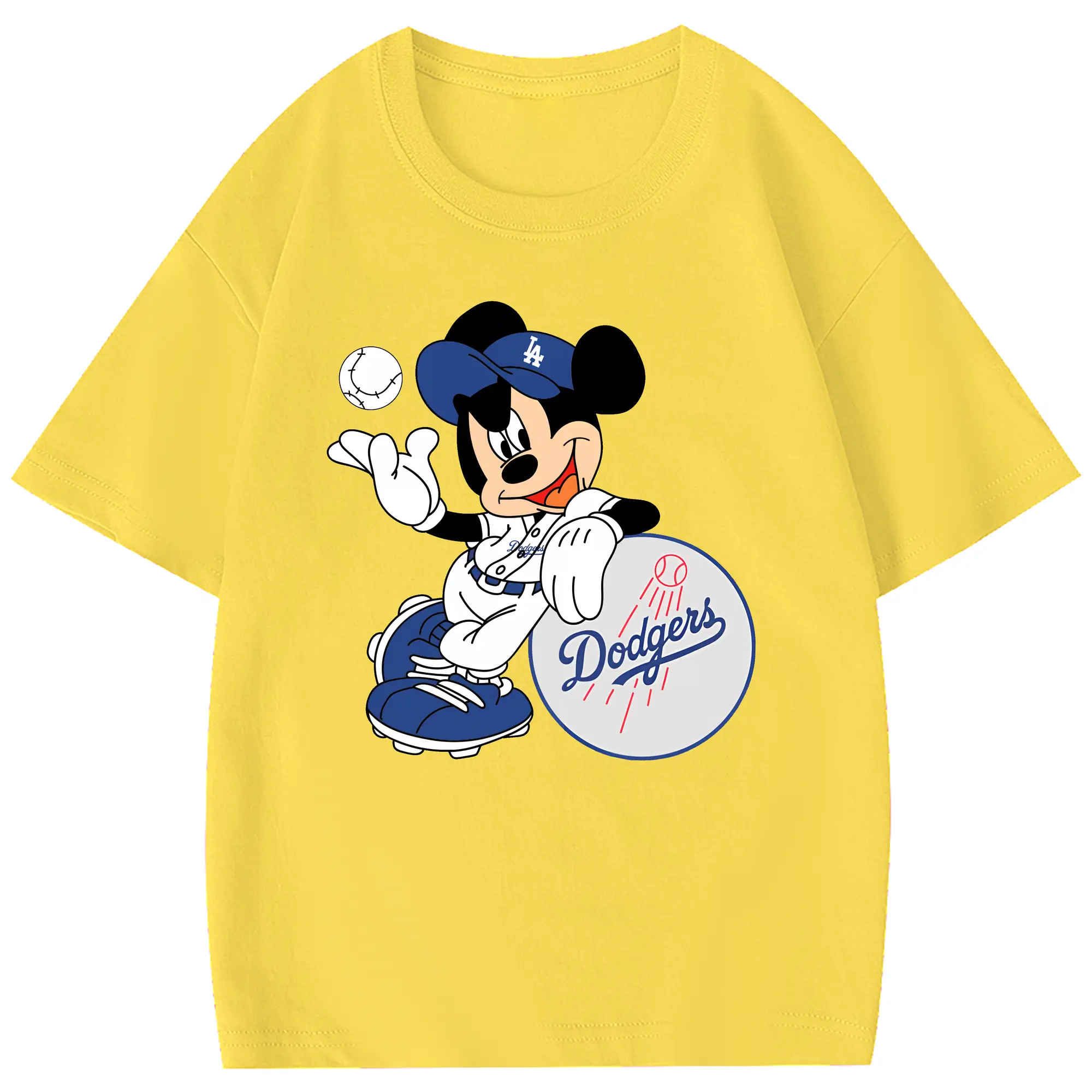 Mickey Mouse Los Angeles Dodgers - Combed Cotton Kids T-Shirt 180g With Front Heat Transfer Print – Soft, Lightweight, Side-Seamed Design – Stylish And Comfortable Casual Wear For Everyday Activities