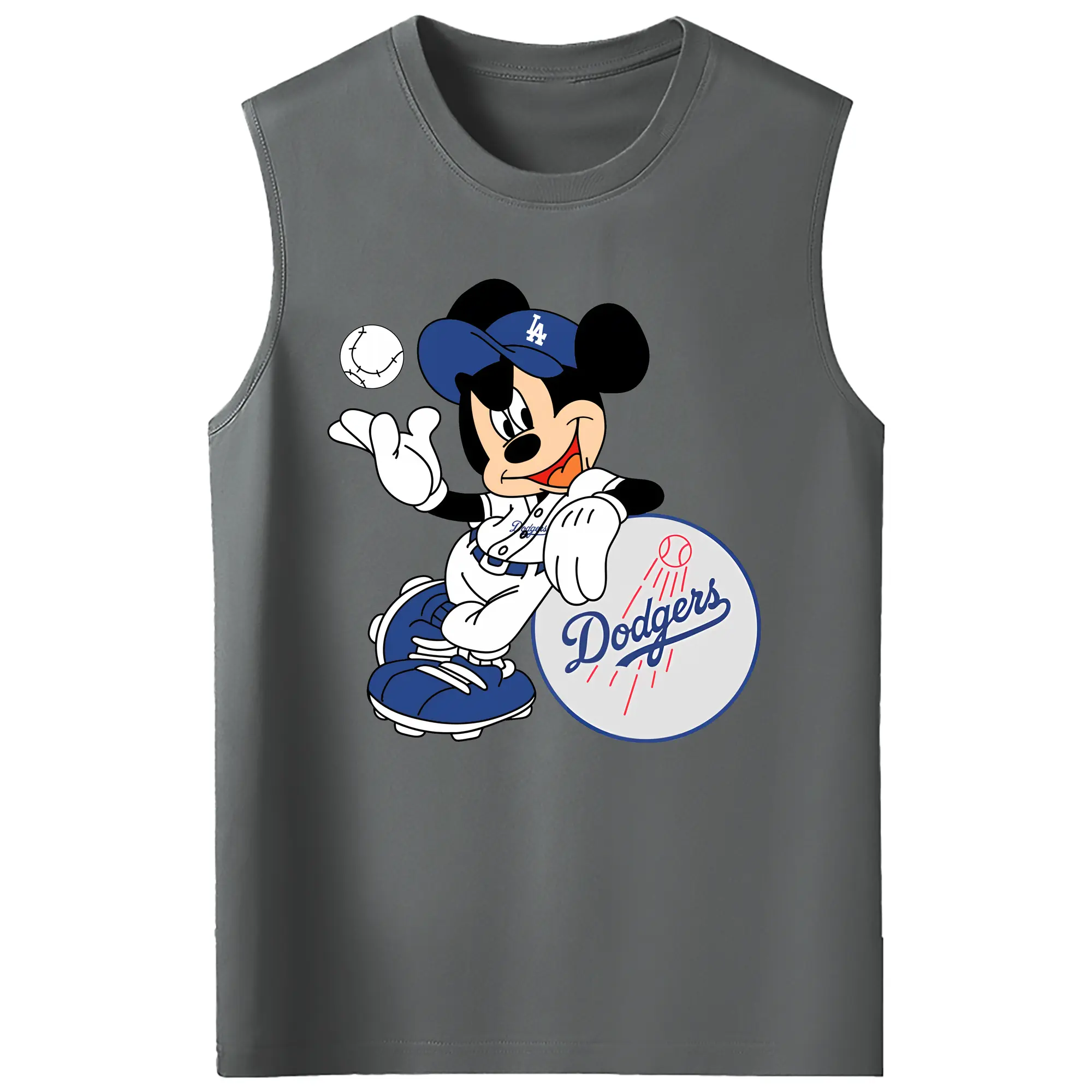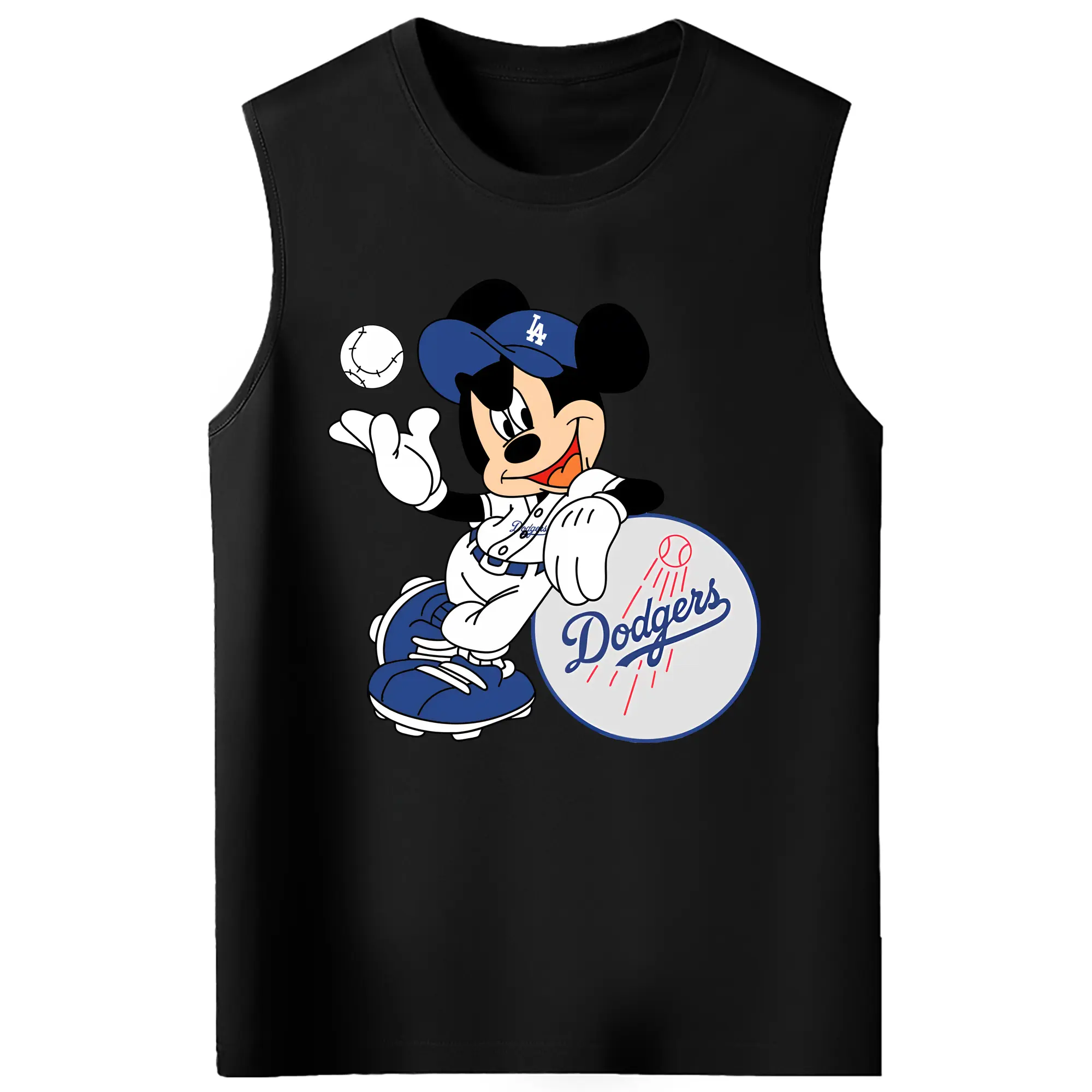 Mickey Mouse Los Angeles Dodgers - 210g Combed Cotton Tank Top With Front Heat Transfer Print – Soft, Lightweight, Fitted Design – Stylish & Comfortable Casual Wear For Sports & Everyday Use