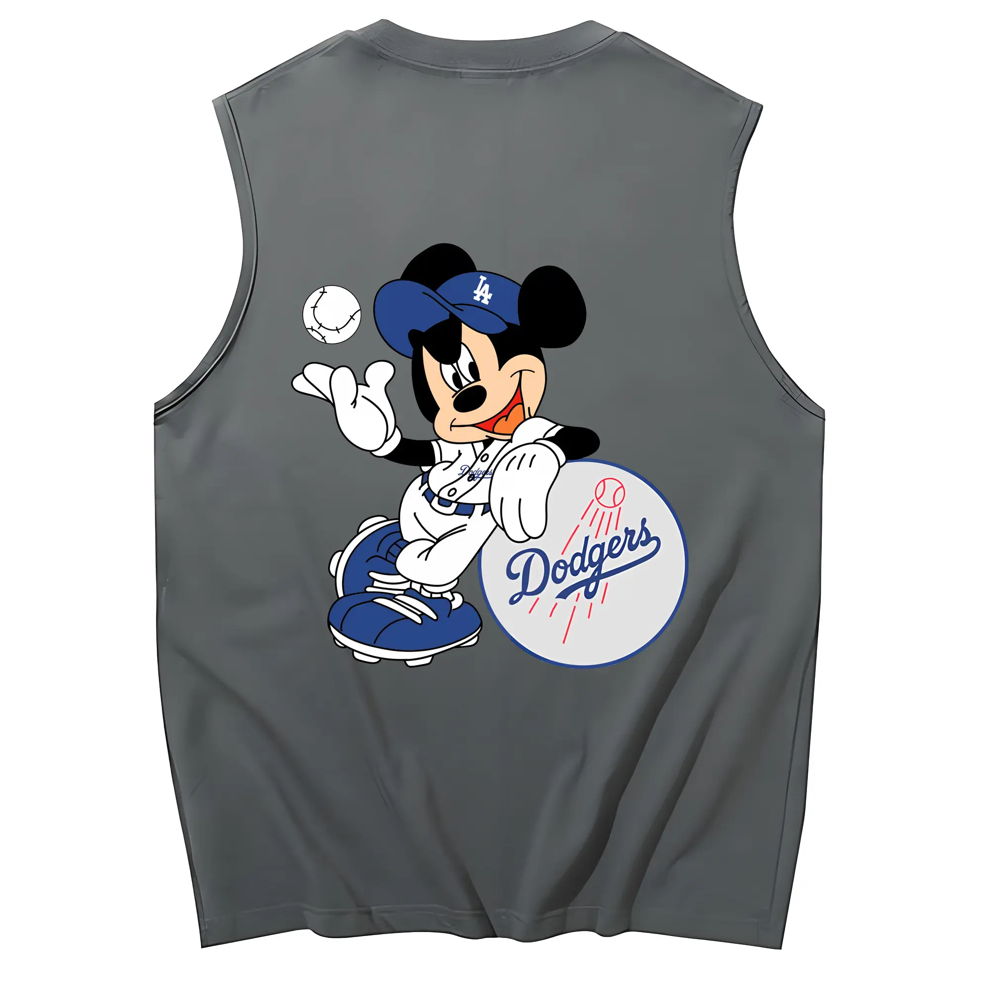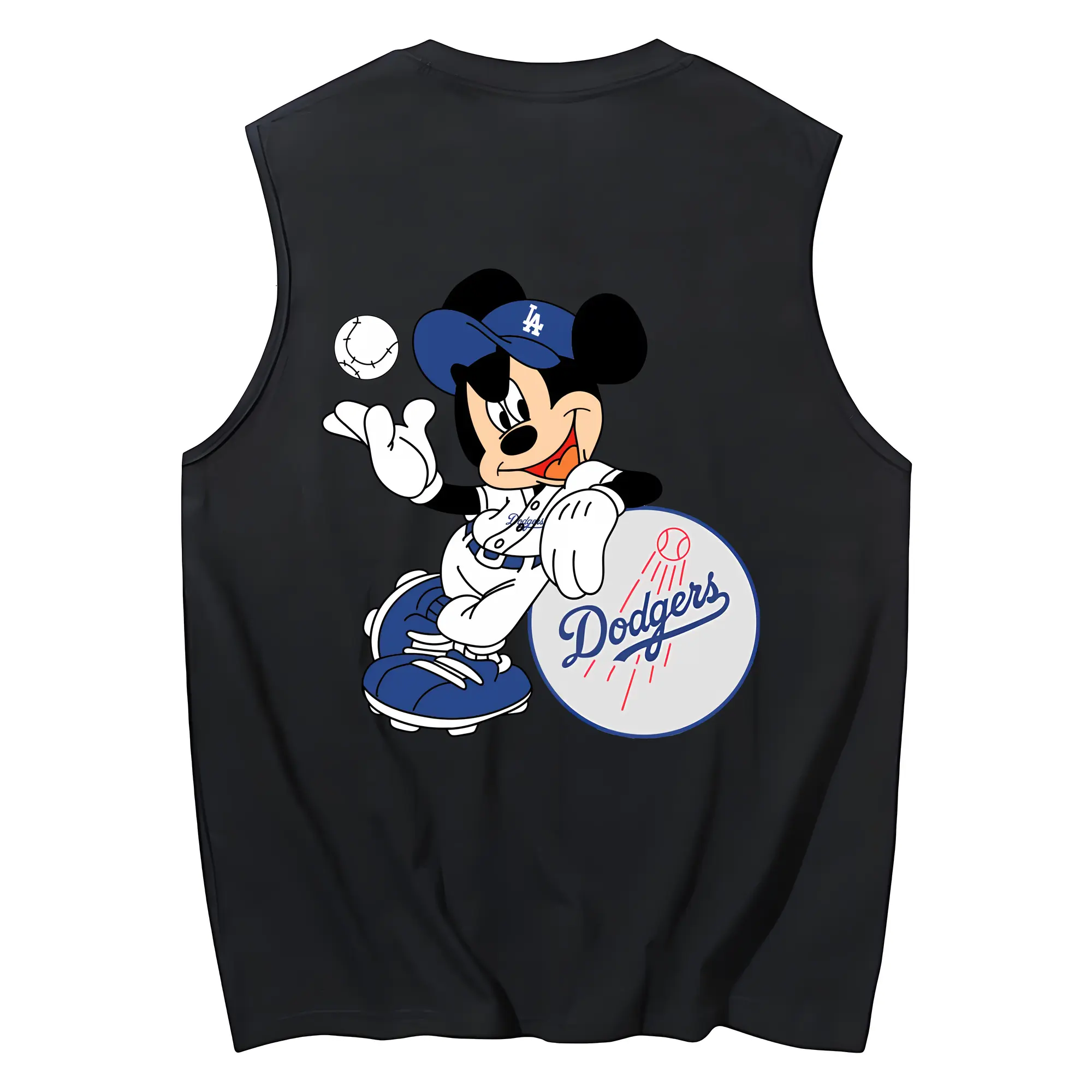 Mickey Mouse Los Angeles Dodgers - 230g Pure Cotton Tank Top With Back Heat Transfer Print – Soft, Lightweight, Fitted Design – Stylish & Comfortable Casual Wear For Sports & Everyday Use