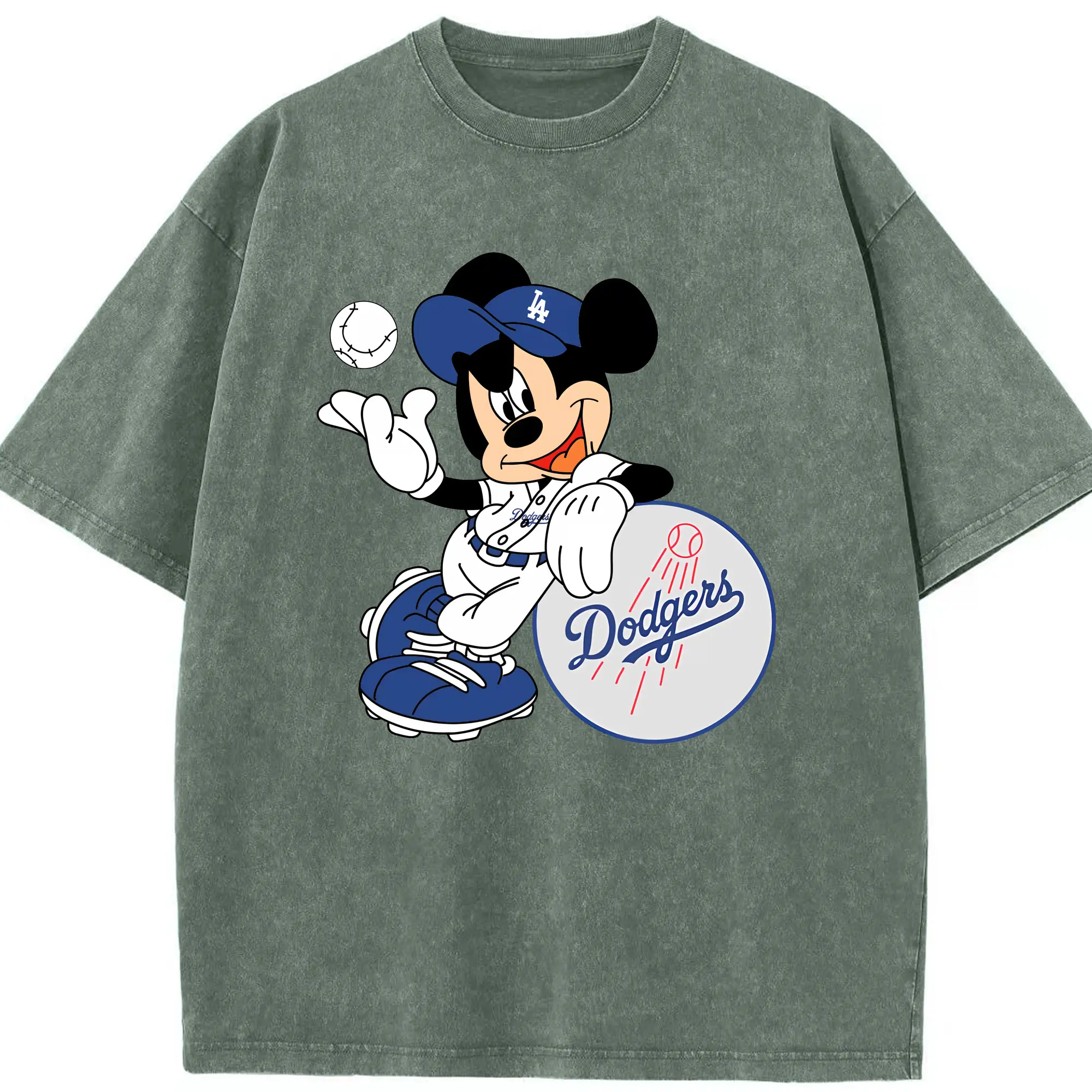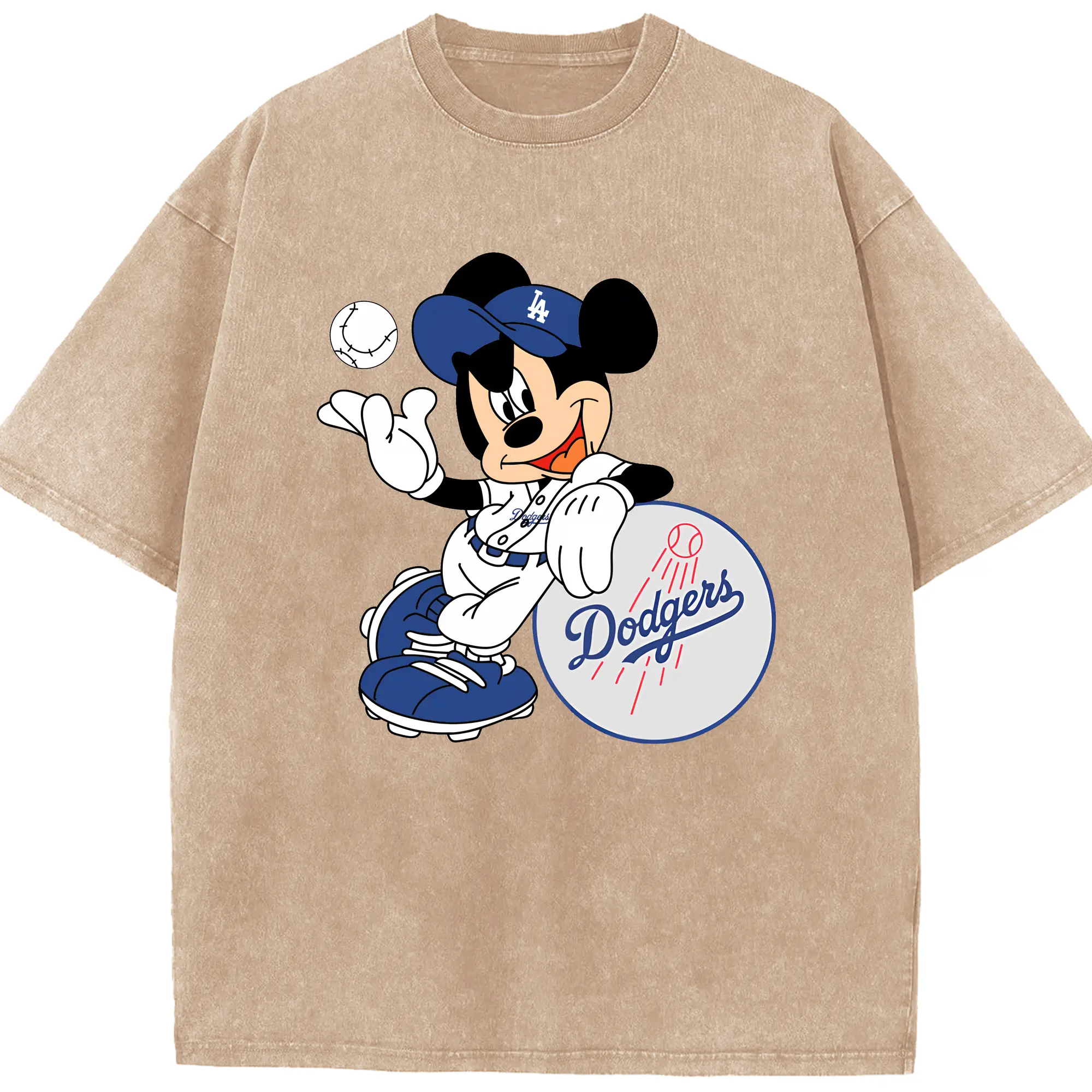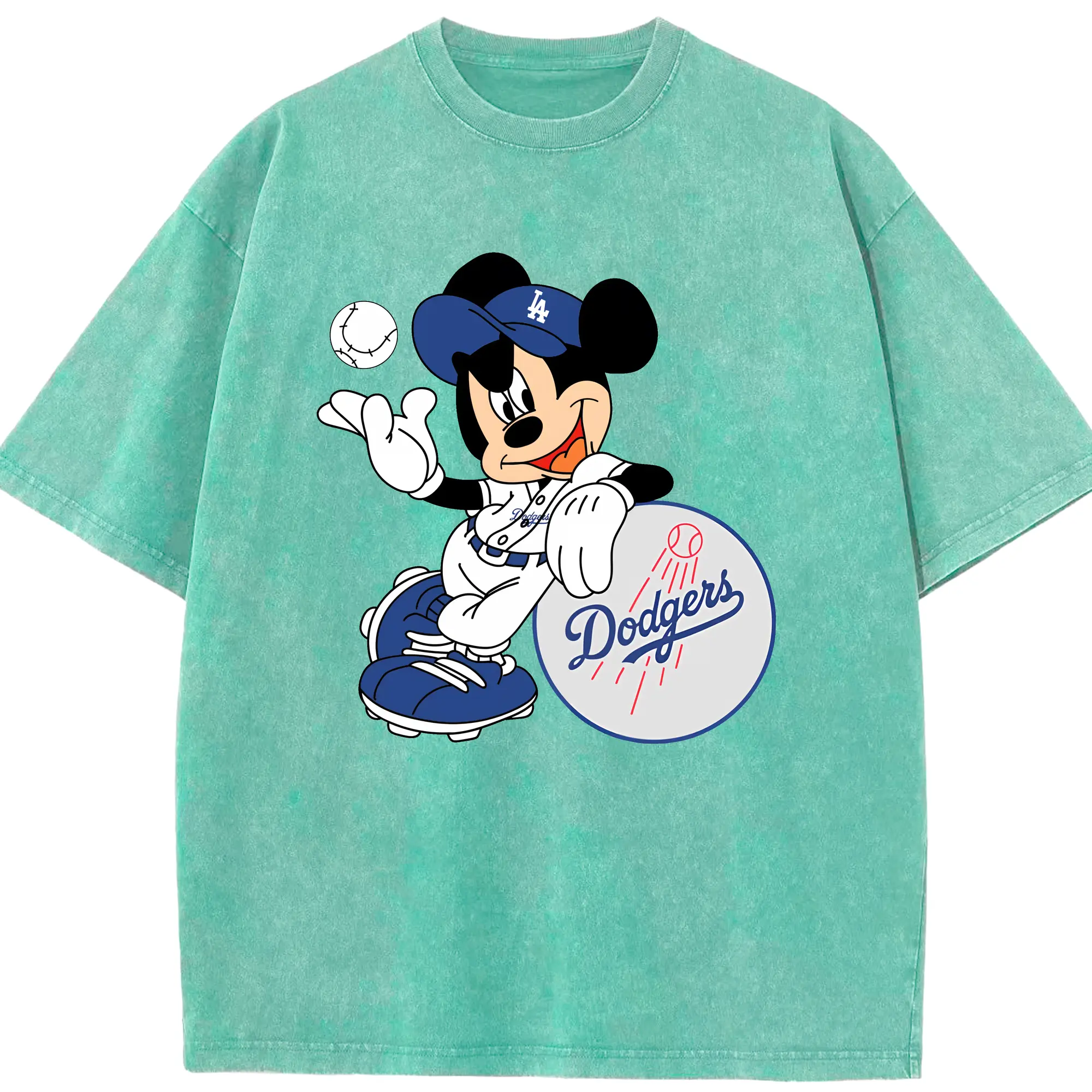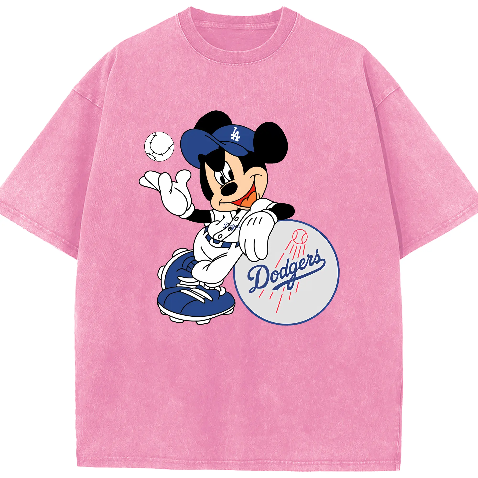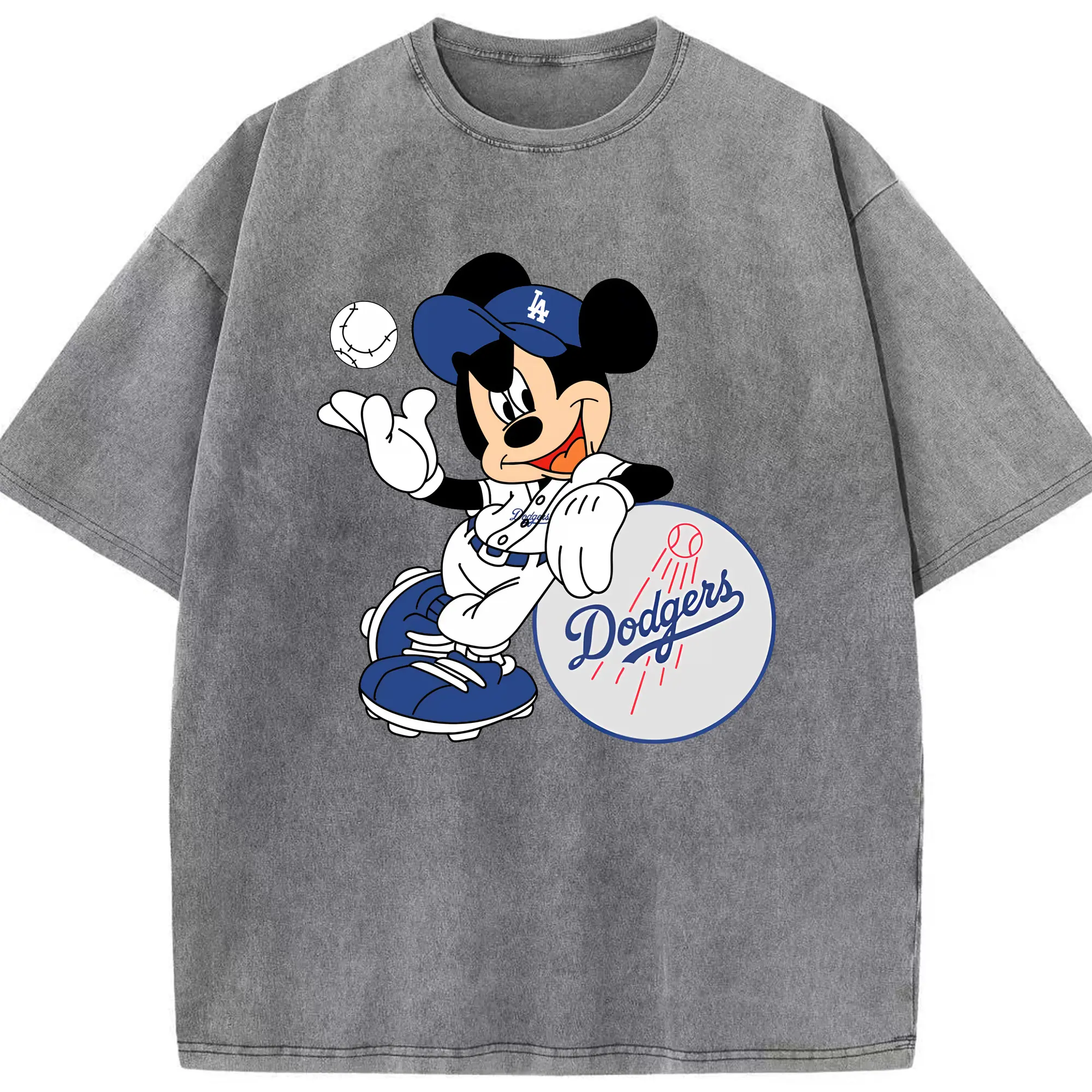 Mickey Mouse Los Angeles Dodgers - Washed Vintage Look 230g Cotton Oversized T-Shirt With Front Heat Transfer Print – Soft, Lightweight, Stylish Fit – Comfortable Casual Wear For Sports & Everyday Use