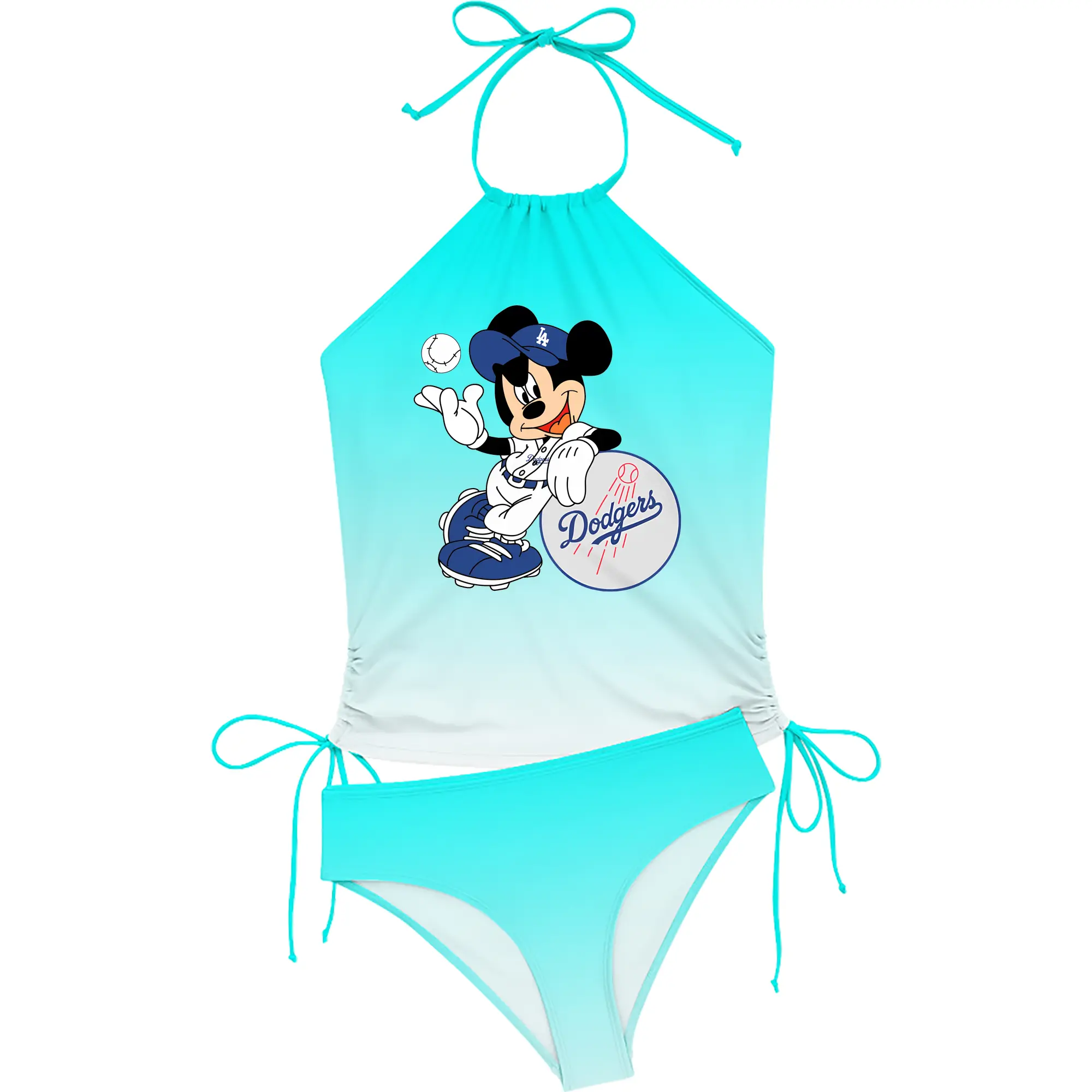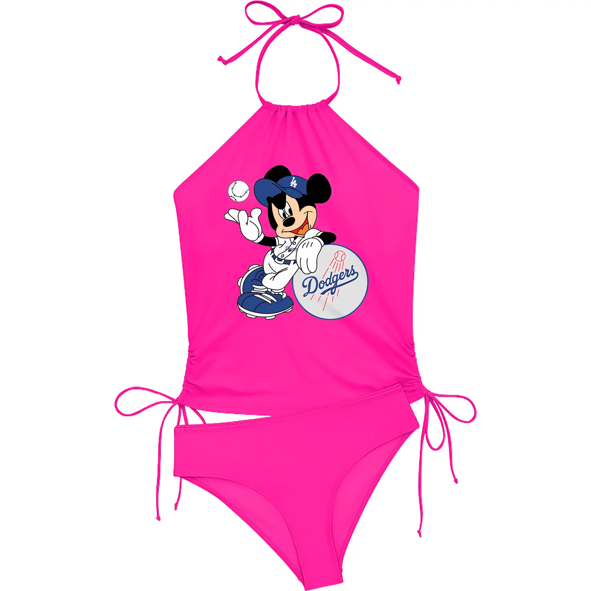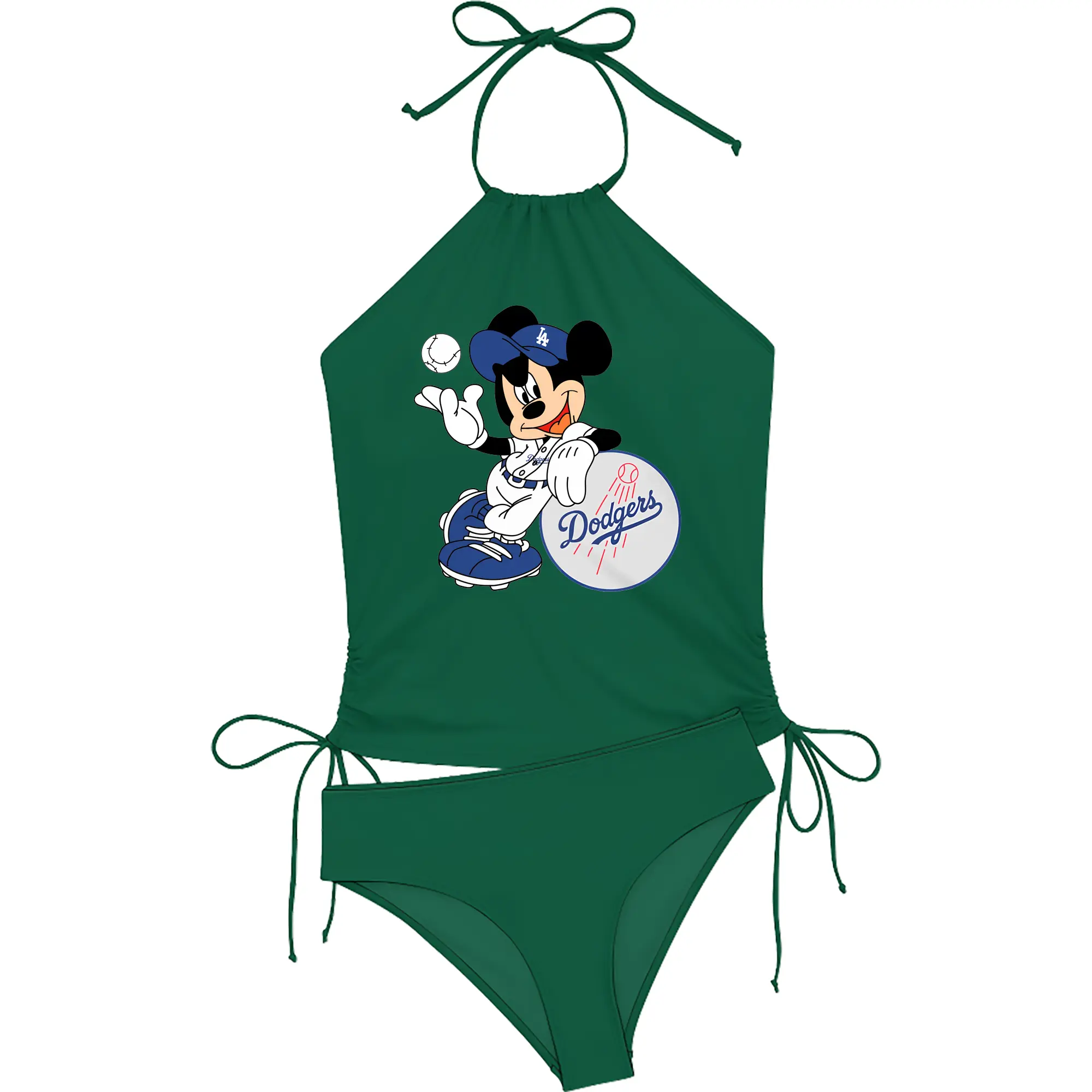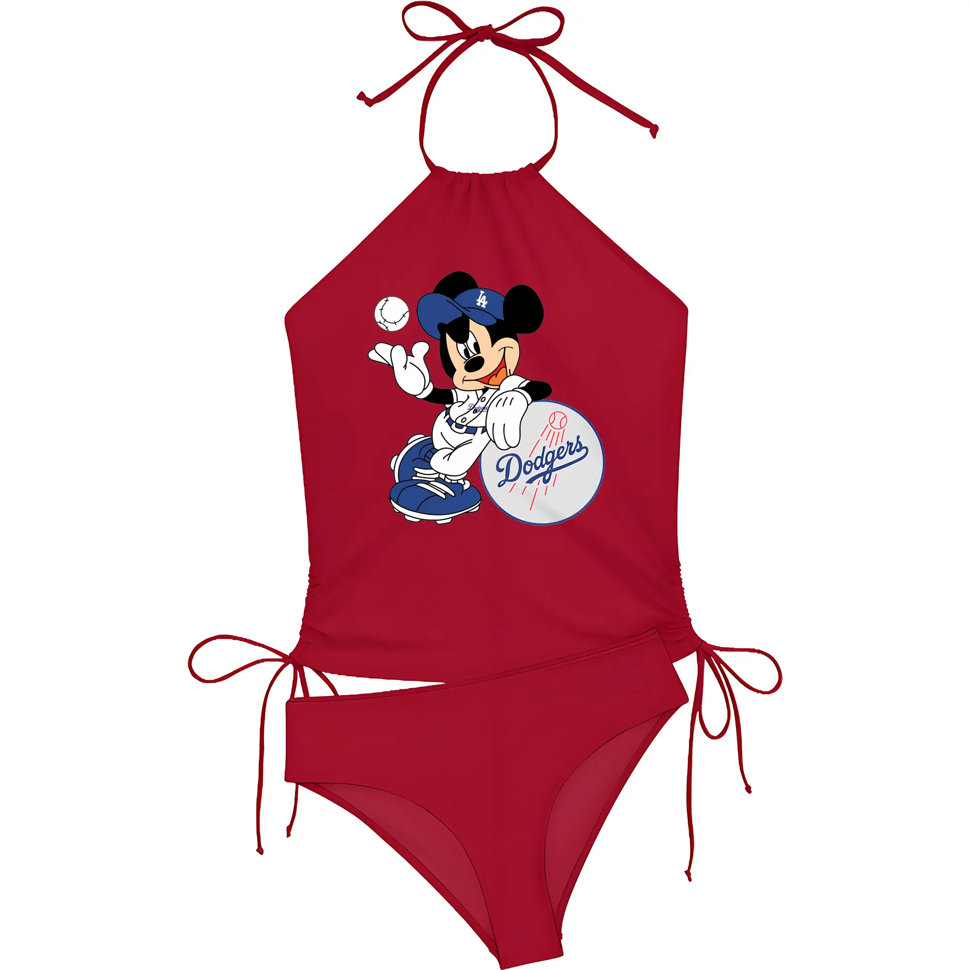 Mickey Mouse Los Angeles Dodgers - Women's Heat Transfer Printed Two-Piece Bikini Set – Sexy One-Shoulder Top & Triangle Bottom, Soft Nylon-Spandex – Perfect for Beach, Pool & Vacation