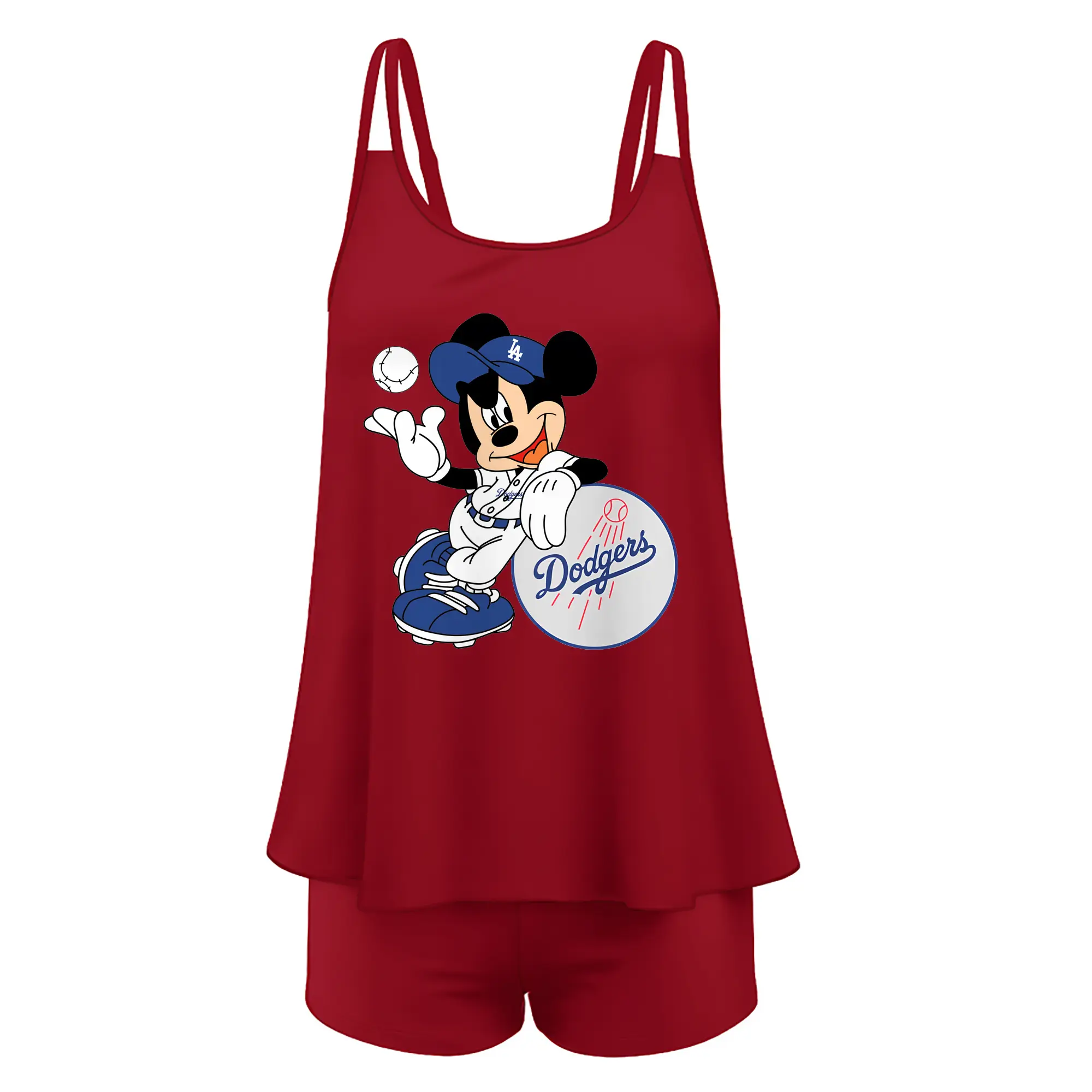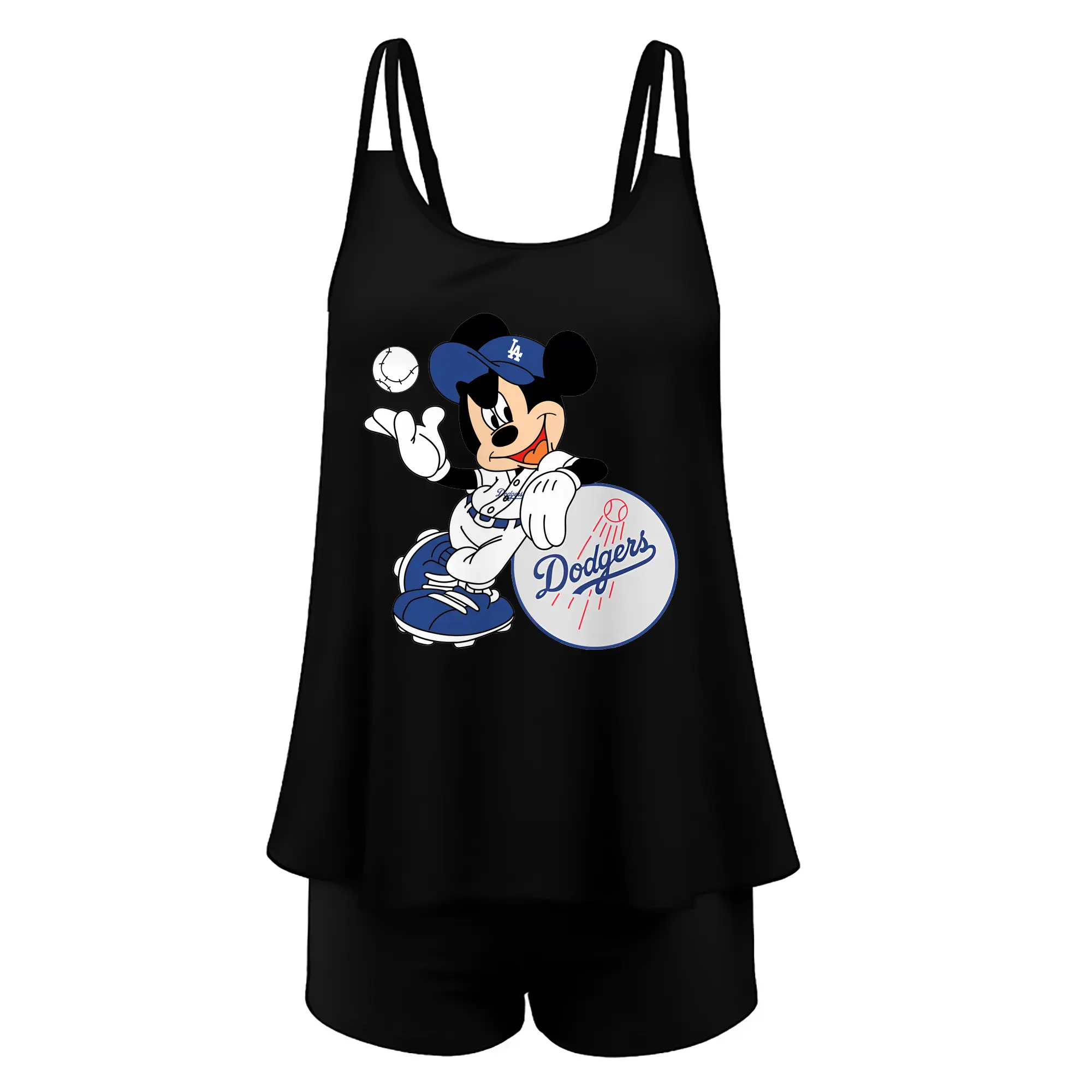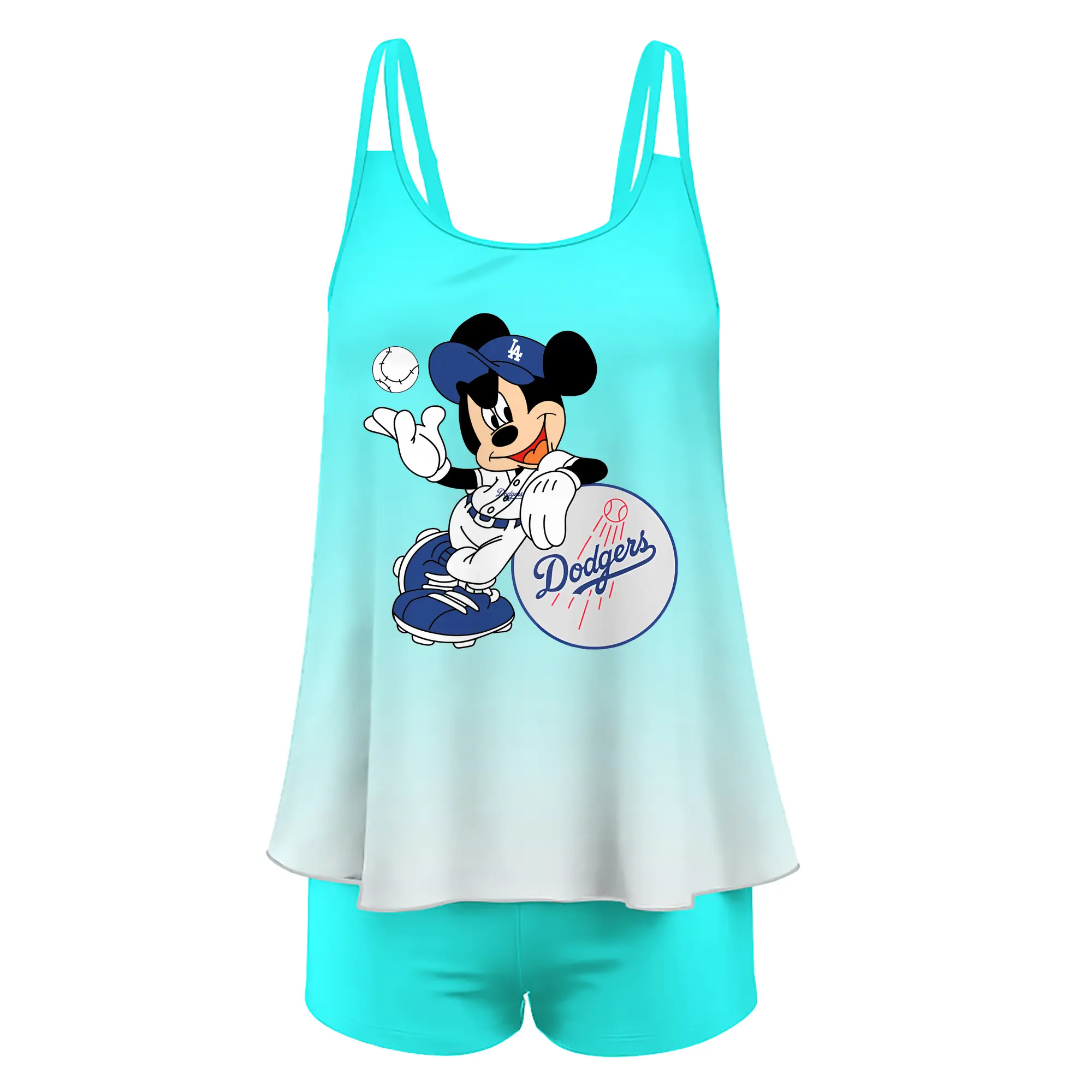 Mickey Mouse Los Angeles Dodgers - Women’s Heat Transfer Printed Two-Piece Swimsuit Set – Sexy Double Strap Bandeau Top & Boyshort Bottoms, Soft Nylon-Spandex – Perfect for Beach, Pool & Vacation