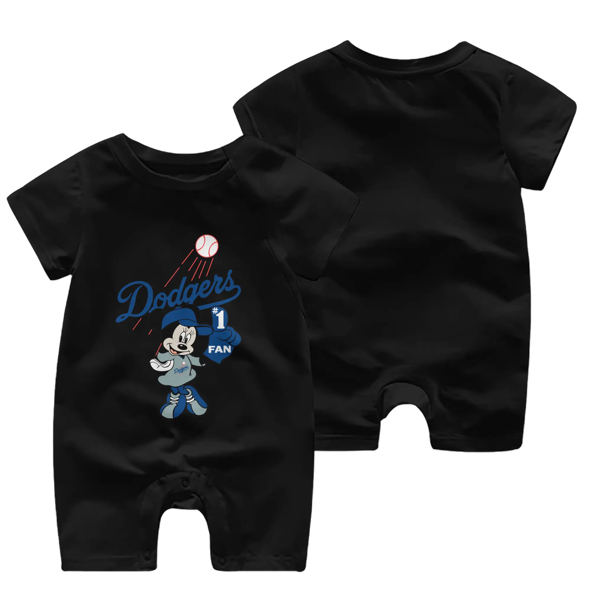 Minnie Mouse Los Angeles Dodgers Baseball - Baby Short Sleeve Onesie – 100% Cotton Soft & Breathable Digital Print Romper – Double-Sided Print, Snap Closure For Easy Diaper Changes – Comfortable For Boys & Girls
