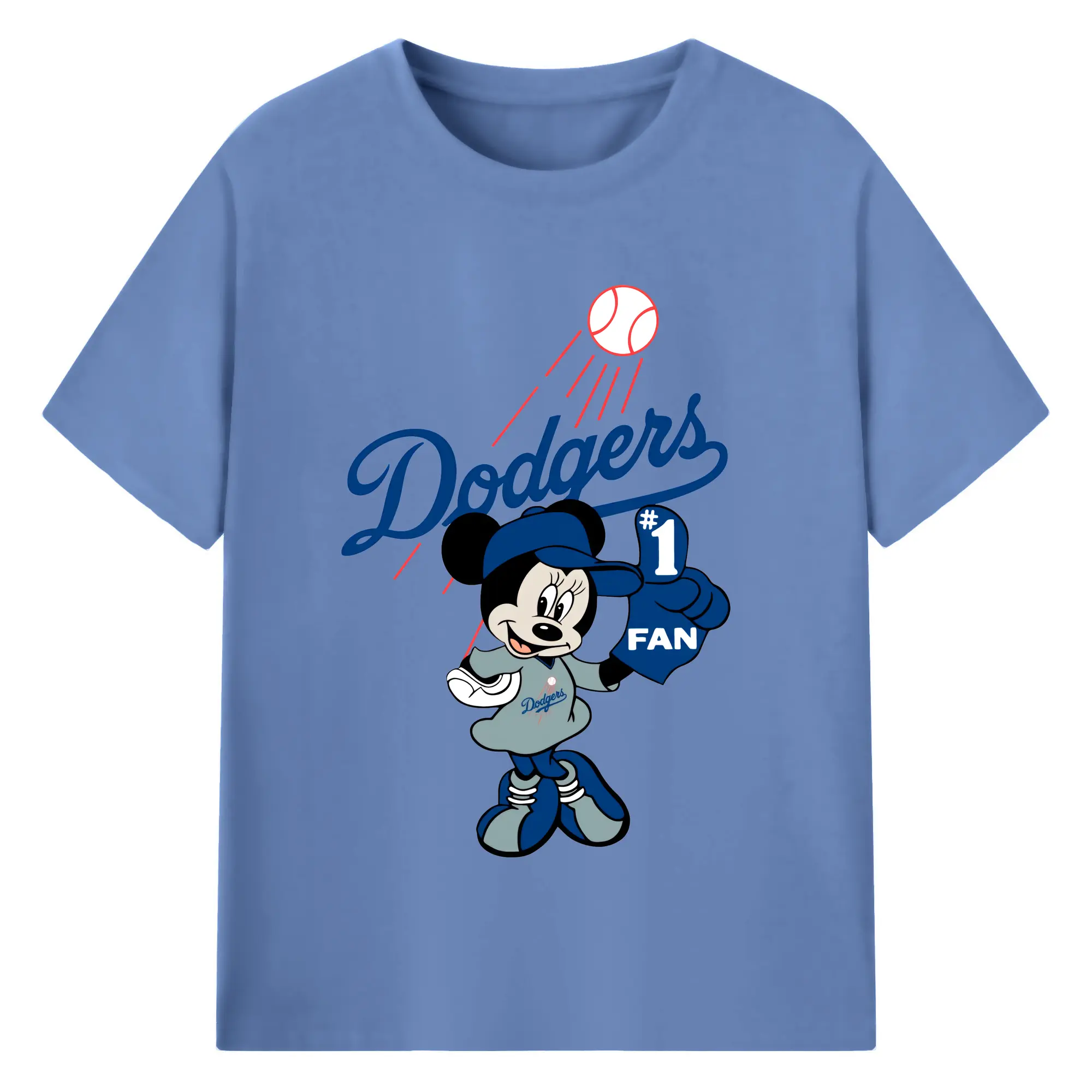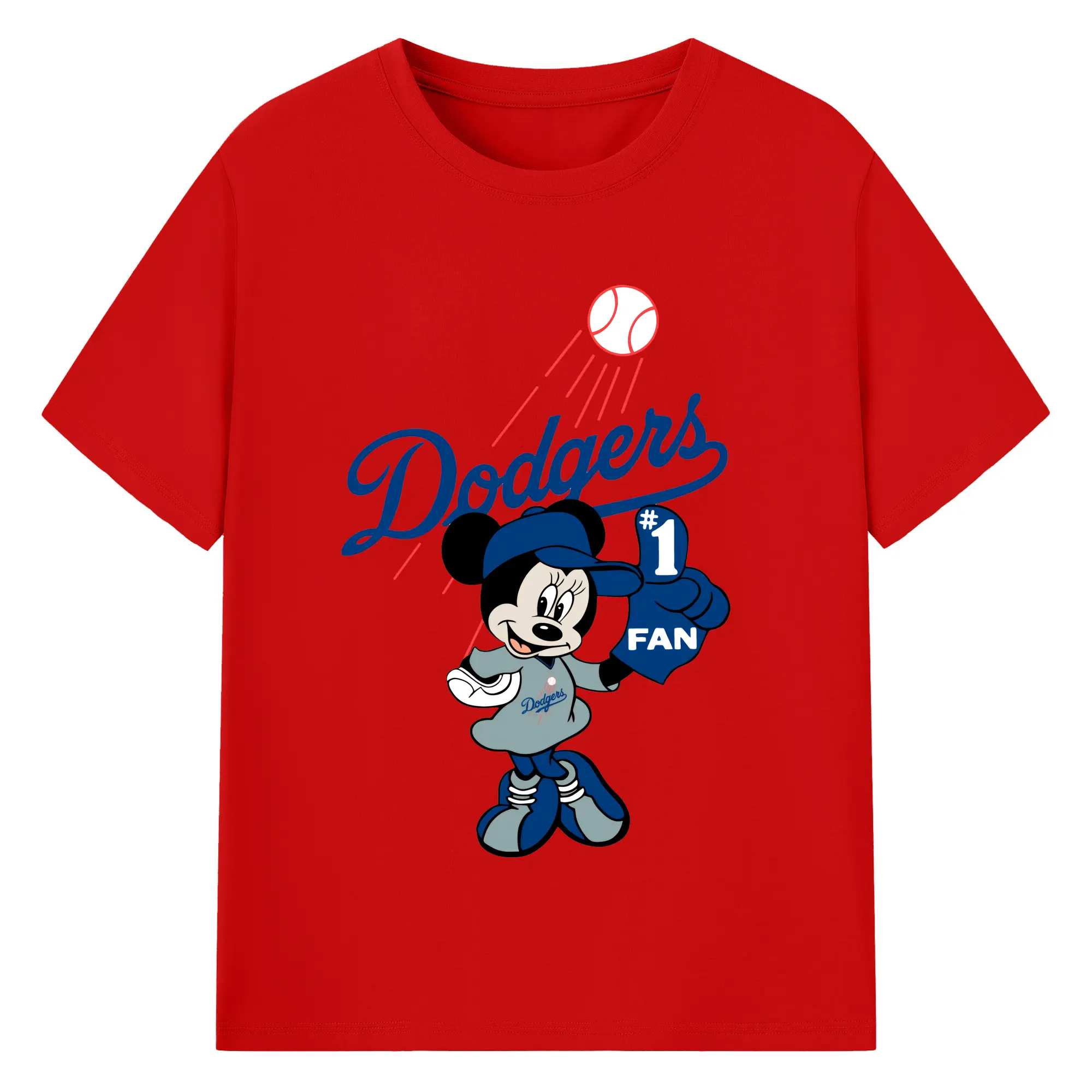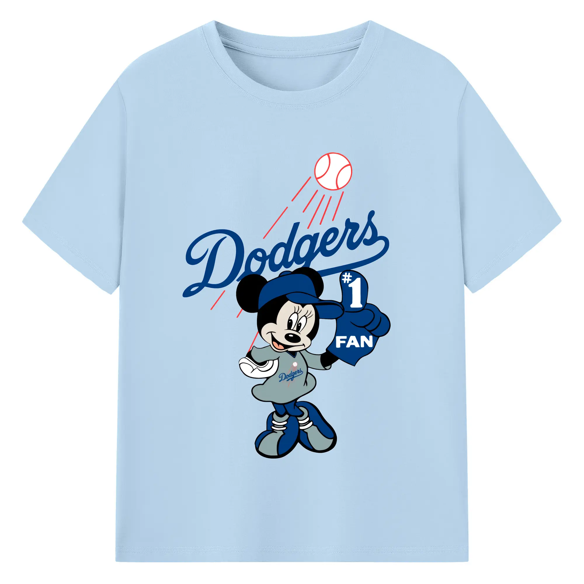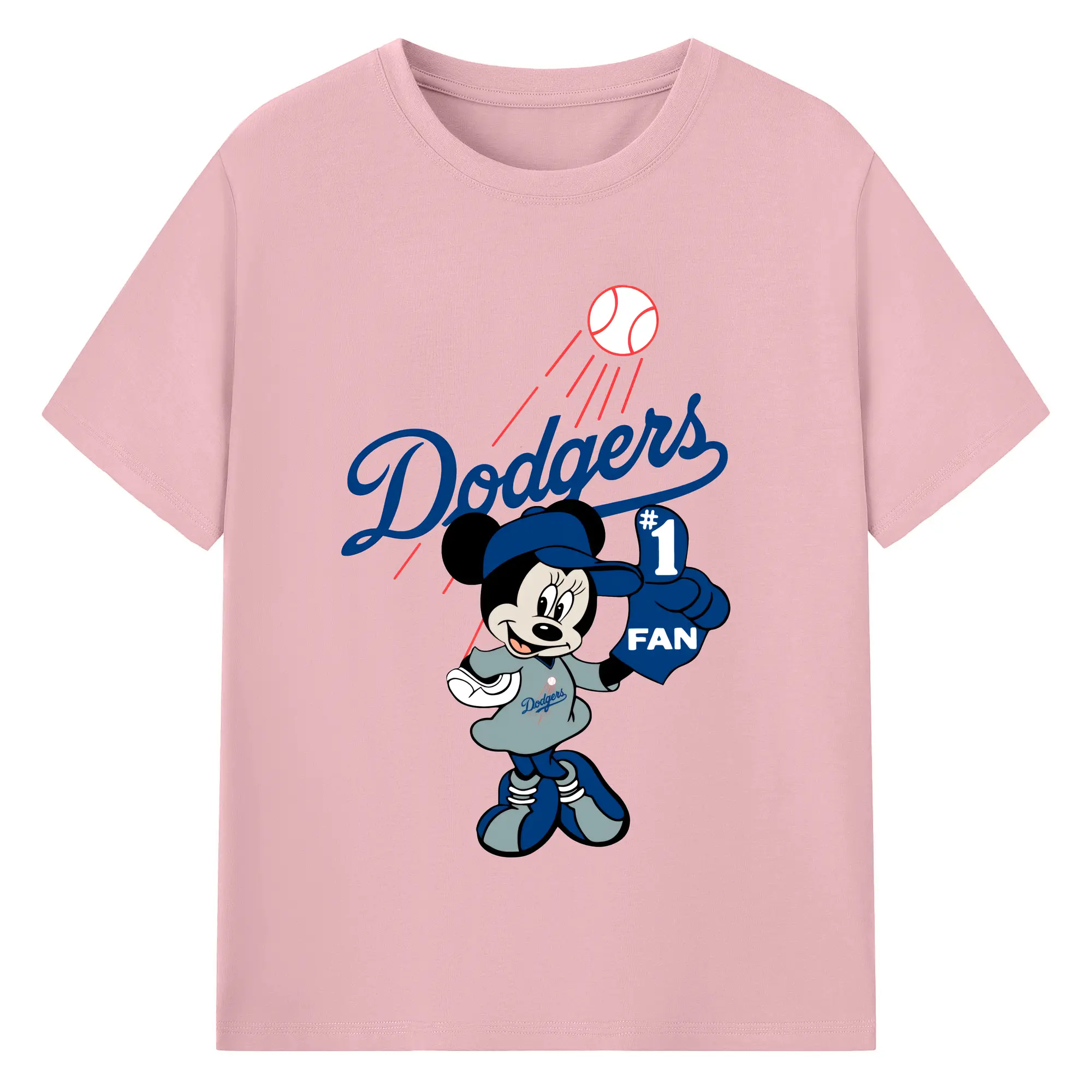 Minnie Mouse Los Angeles Dodgers Baseball - 180g Cotton T-Shirt With Front Heat Transfer Print – Soft, Lightweight, Fitted Design – Comfortable Casual Wear For Sports & Everyday Use