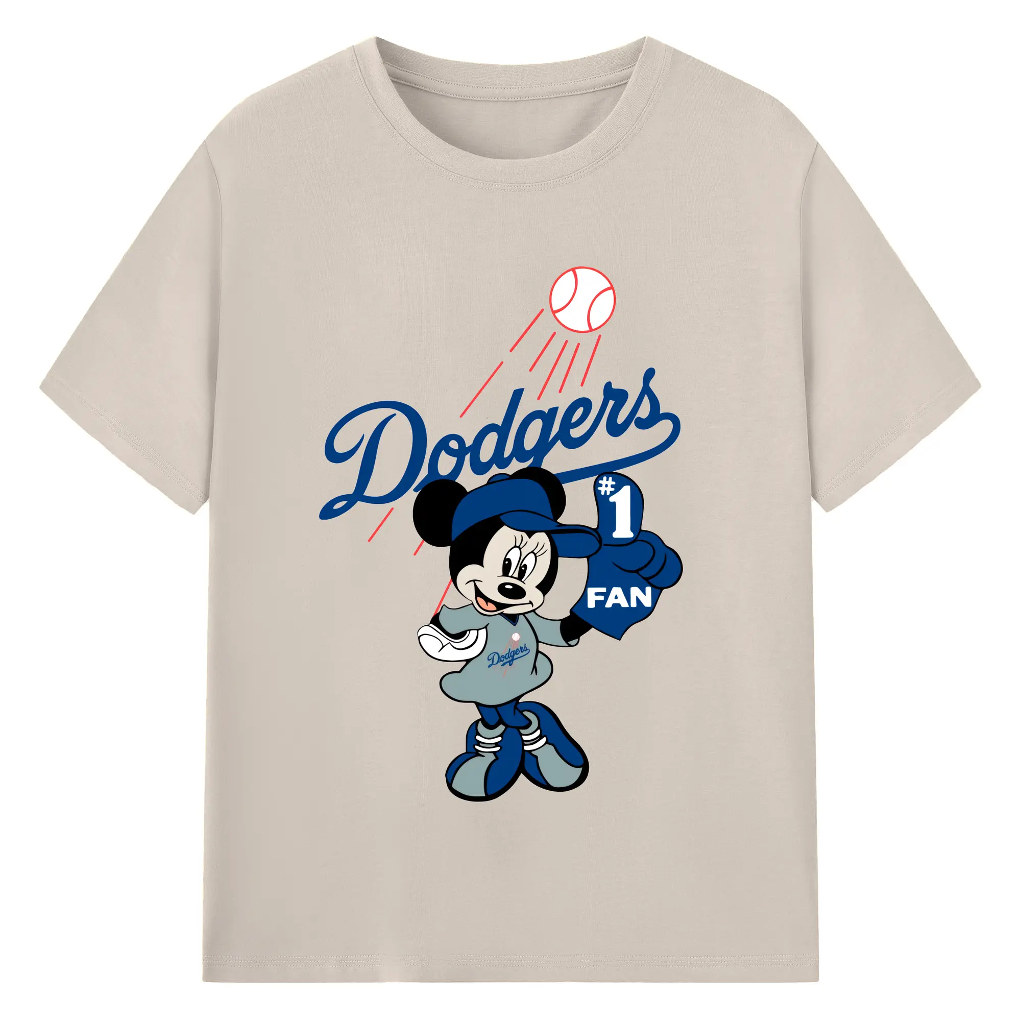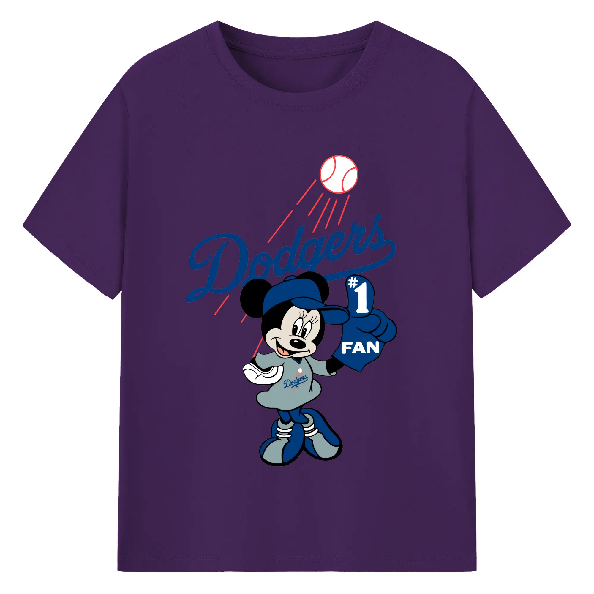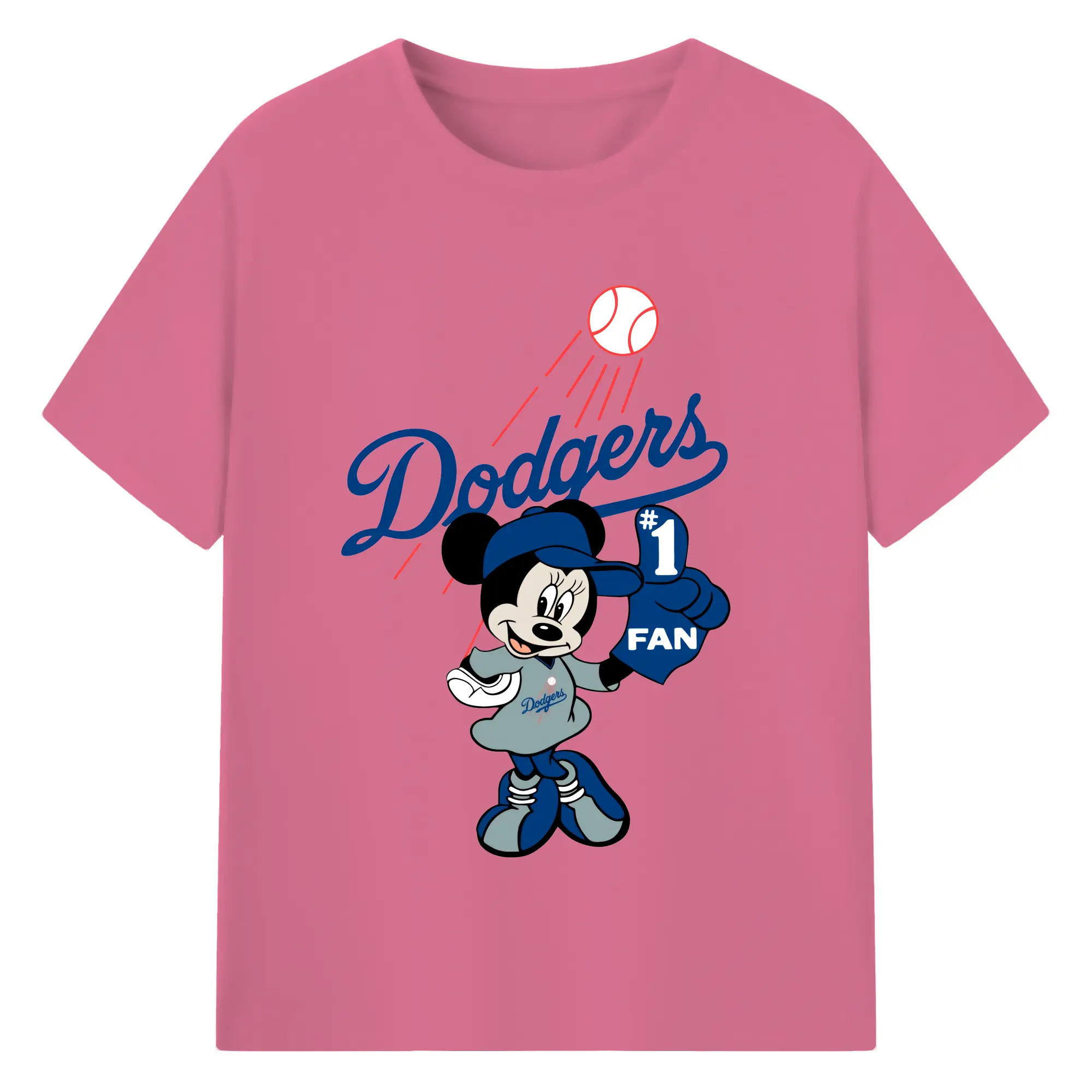 Minnie Mouse Los Angeles Dodgers Baseball - 180g Cotton T-Shirt With Front Heat Transfer Print – Soft, Lightweight, Fitted Design – Comfortable Casual Wear For Sports & Everyday Use
